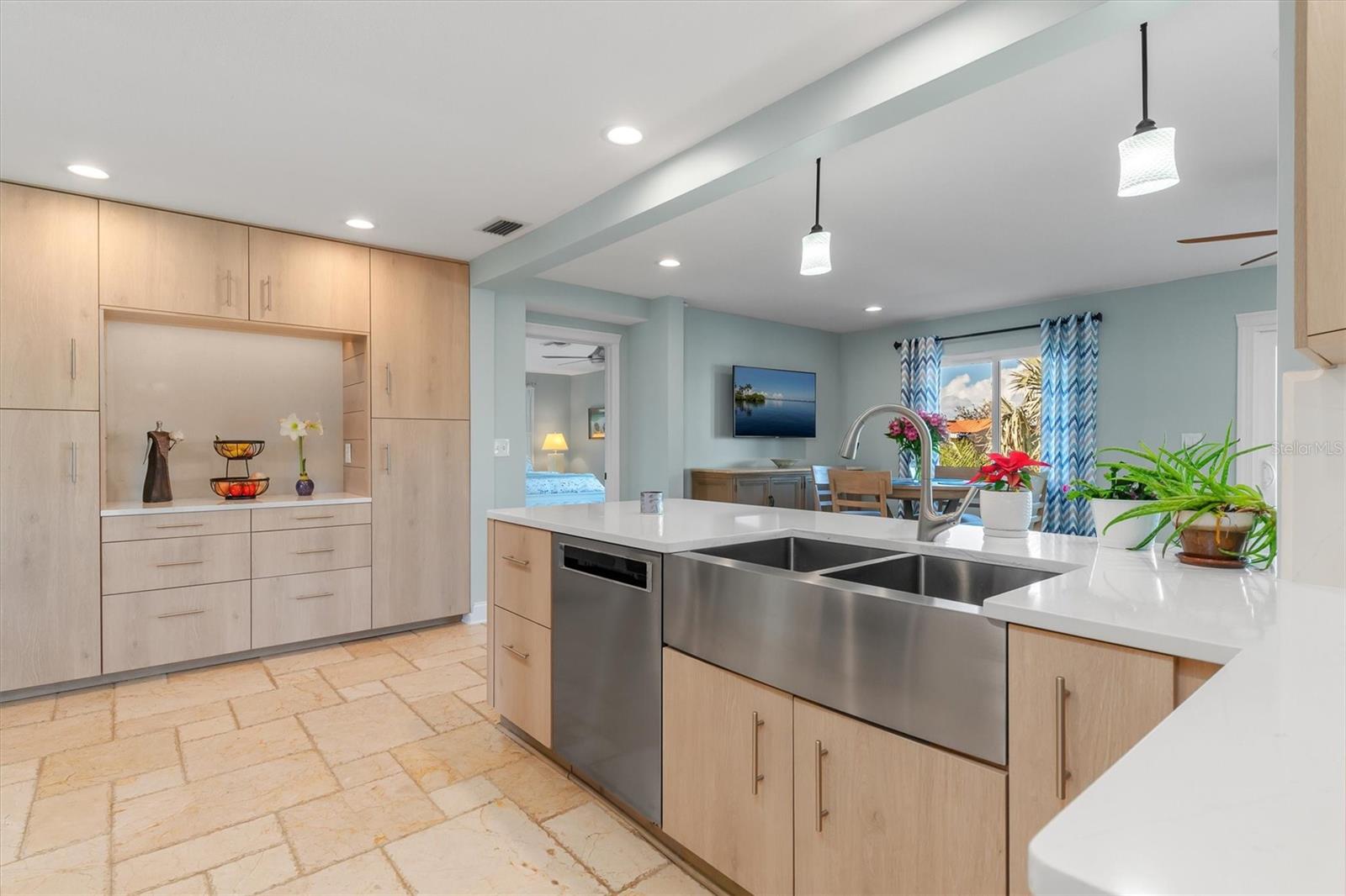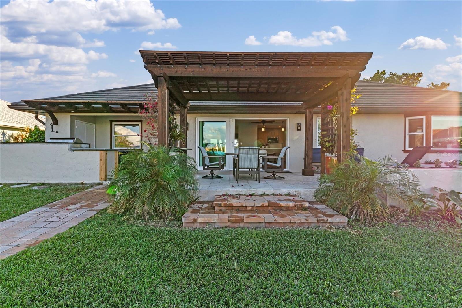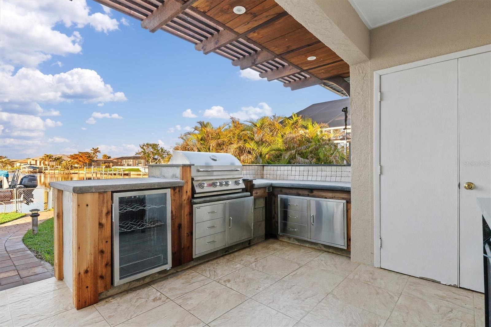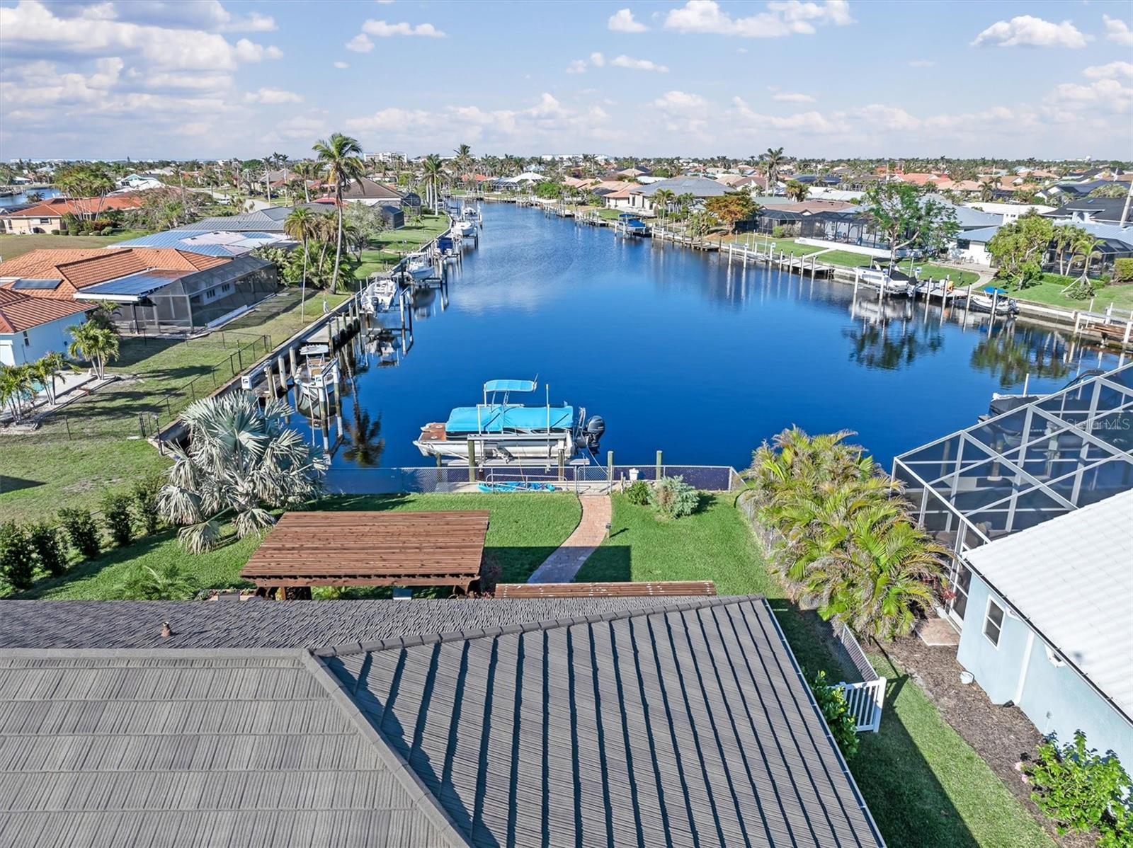SEE VIRTUAL TOUR 1 FOR WALK-THROUGH AND TOUR 2 FOR 3-D FLOOR PLAN. Exquisite waterfront home in Punta Gorda Isles – completely updated and move-in ready (high and dry, with no damage from recent hurricanes). Featuring an array of modern upgrades, including NEW ROOF, NEW PLUMBING, NEW ELECTRICAL, NEW PAVERS, NEW OUTDOOR KITCHEN, NEW DOCK, NEW GARAGE DOOR/OPENER, NEW IRRIGATION, and NEW INTERIOR AND EXTERIOR LIGHTING, this home offers both elegant functionality and the ultimate in resort-style living. As you arrive, the meticulously landscaped yard greets you with a newly paved driveway and walkway leading to a serene water fountain and quaint garden welcoming you to step inside, where you will find that every detail has been thoughtfully addressed, creating a stylish and inviting space that feels brand-new. The bright and airy living room features a glistening 15-ft bay window, flooding the open floor plan with natural light. Adjacent to the living room, the dining room, two guest bedrooms, and a guest bathroom provide comfort and flexibility for family or guests. The chef-inspired kitchen is a true centerpiece, boasting a breakfast bar, soft-close cabinets, and modern stainless-steel appliances, including a double drop-in stainless sink. The upgraded lighting and fans throughout the home enhance the light and breezy atmosphere. The primary suite, set apart from the guest bedrooms for added privacy, offers tranquil waterfront views and a luxurious ensuite bathroom. Enjoy an extended dual-sink vanity with ample storage, and a walk-in shower designed for relaxation. Unwind in the expansive Florida room and breakfast nook, both overlooking the long canal views. Step outside through hurricane-impact triple sliders to your private outdoor oasis, featuring a 25' x 13' patio with a new custom outdoor kitchen. This space is equipped with a built-in grill, beverage fridge, stainless steel storage, cedar accents, and artistic concrete countertops. Dine under the cedar pergola, soak up the sun, or relax in the shade while savoring the breeze. A paved walkway leads to your 30-ft concrete dock with water, electricity, and an oversized 13,000-lb boat lift stationed alongside more than 60-ft of city-maintained concrete seawall. With quick access to Charlotte Harbor, the Peace River, and the Gulf of Mexico, this home is a boater’s dream. Additional highlights include a spacious laundry room with storage and utility sink, and a custom workshop in the garage. The oversized lot offers ample space for a pool or spa, should you wish to enhance your outdoor experience further. Located in the heart of Punta Gorda Isles, you will be just minutes from Fishermen’s Village, Isles Yacht Club, Ponce and Gilchrist parks, historic downtown Punta Gorda, waterfront dining, and over 18 miles of biking and walking paths. World-class boating, fishing, golfing, and water sports are all at your fingertips, with average winter temperatures in the mid-70s. Easy access to I-75, US-41 and the Punta Gorda Airport, just 15 minutes away, serving over 60 destinations, adds to this property’s appeal. There is room to ADD A POOL, if the buyer so desires. Take advantage of this opportunity to own a truly spectacular waterfront home where every detail has been perfected. PRICED TO SELL, be sure to ask for the Home Features sheet, and schedule your private showing today!