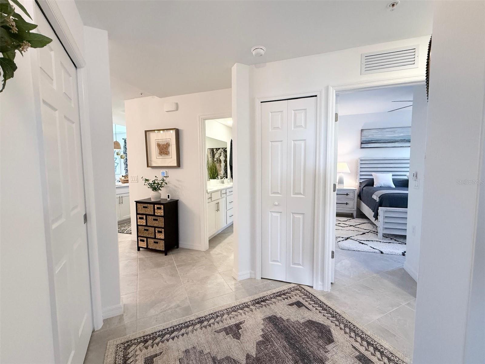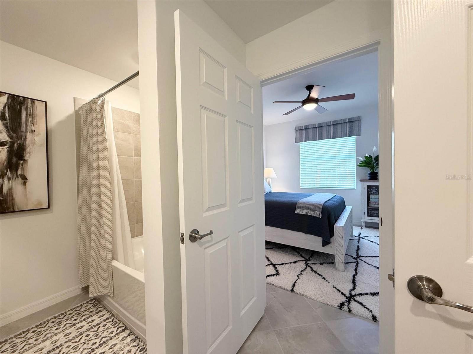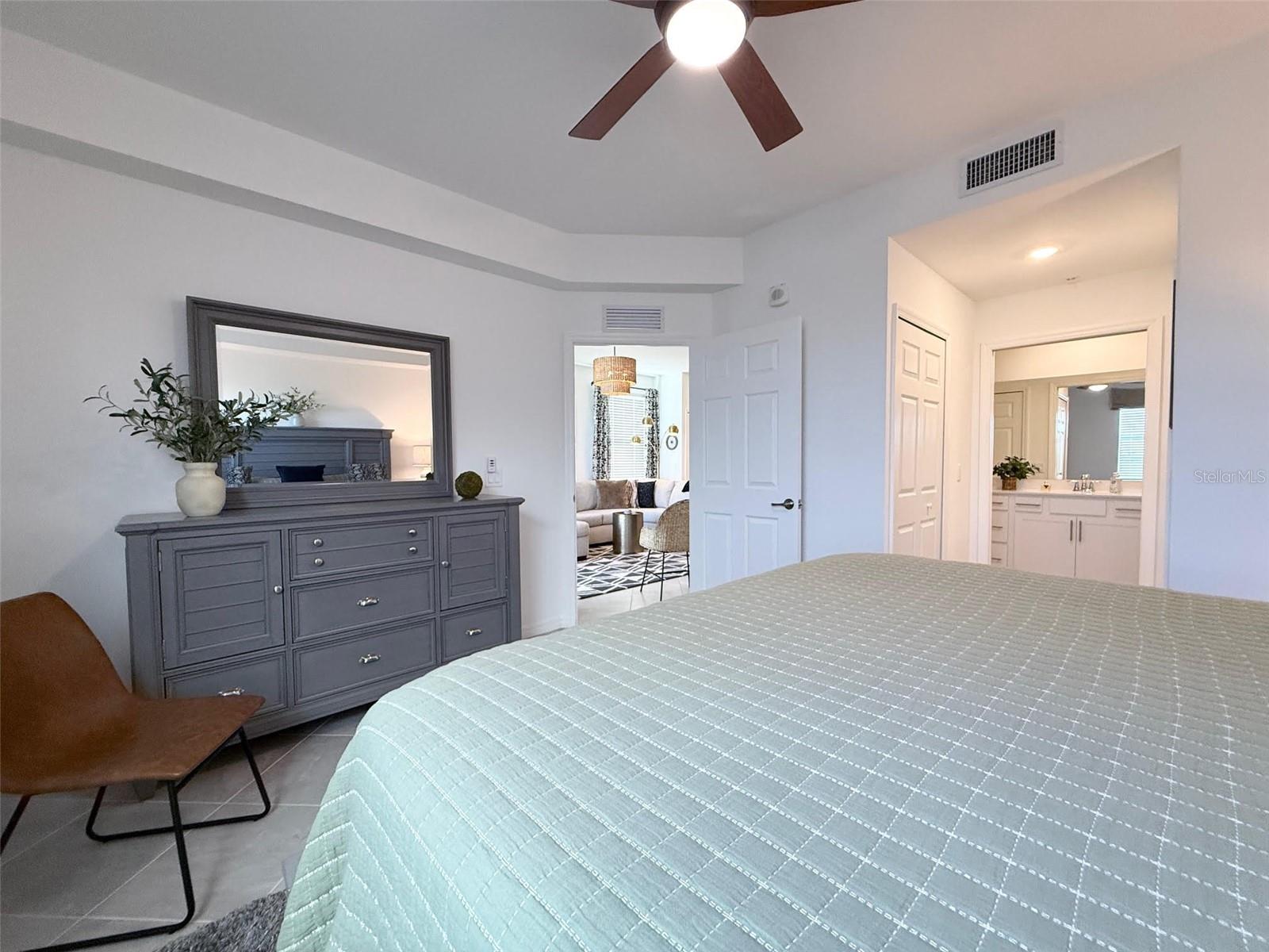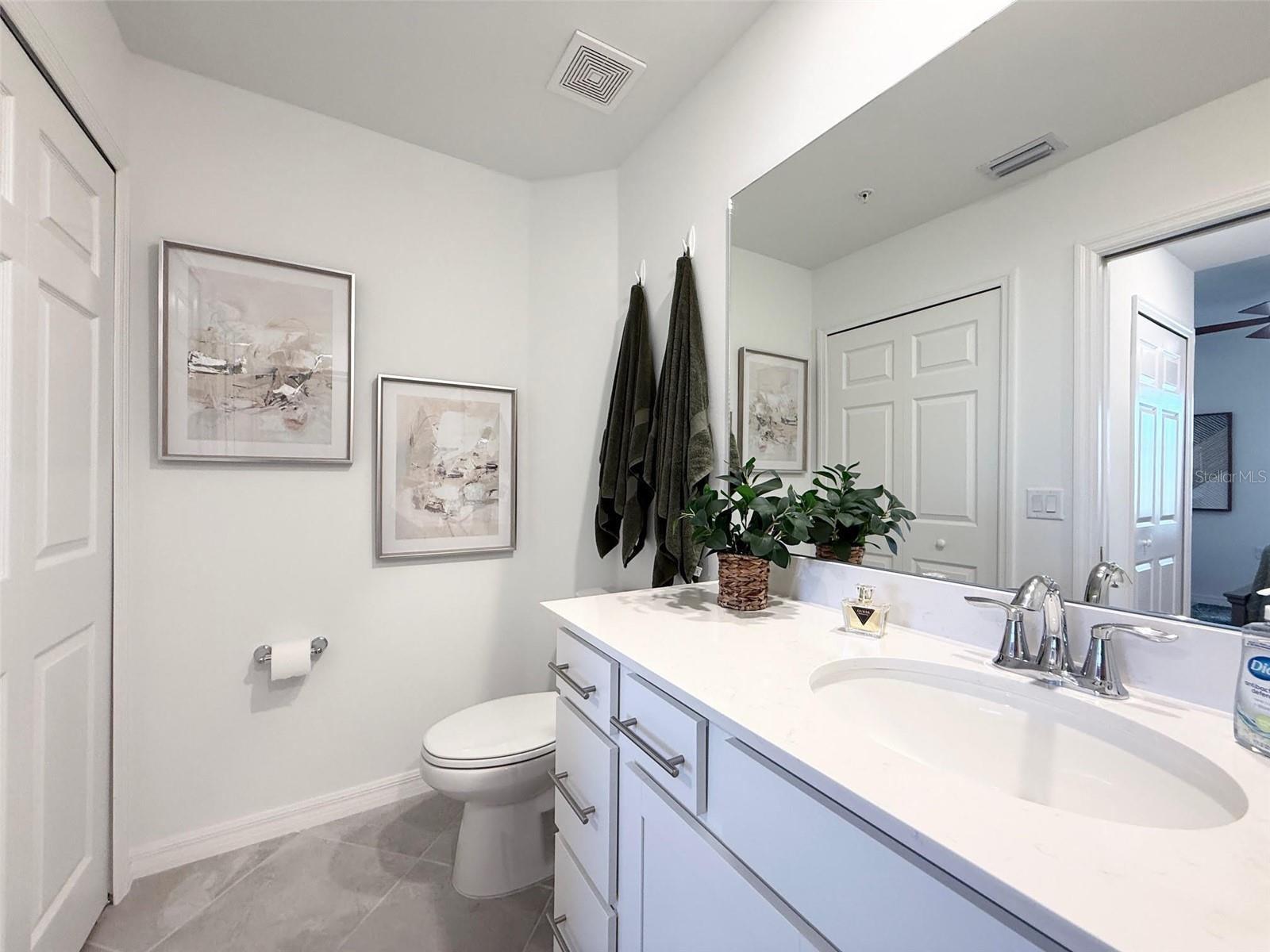 A turnkey opportunity! Everything you see is included! This beautifully furnished and decorated first floor end unit has 3 large bedrooms and 2 baths. Includes tile flooring throughout, quartz countertops with white shaker cabinets, all appliances including washer and dryer, custom lighting and ceiling fans with dimmers, window treatments and blinds, impact windows and doors, SmartHome features with security, screened patio with beautiful golf course views, separate storage room outside and dedicated carport parking. Includes the Social Membership in Babcock National.