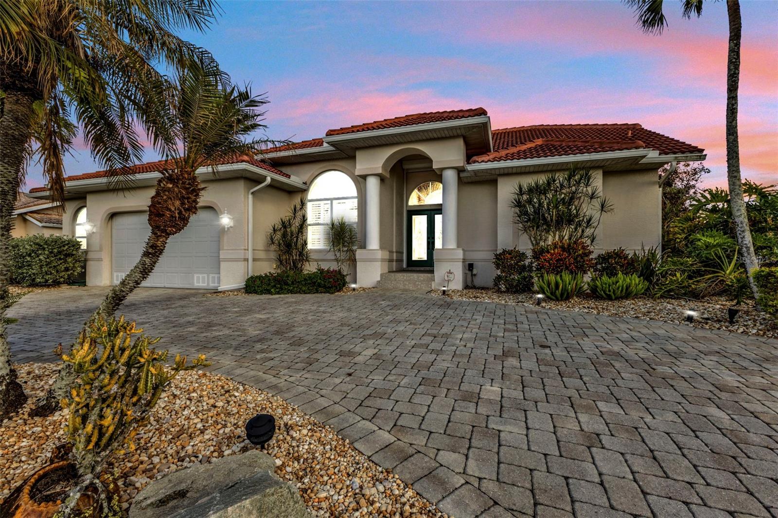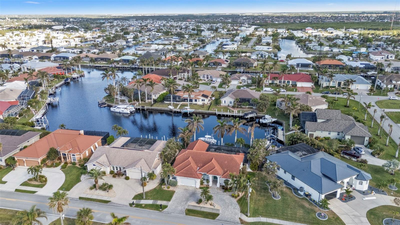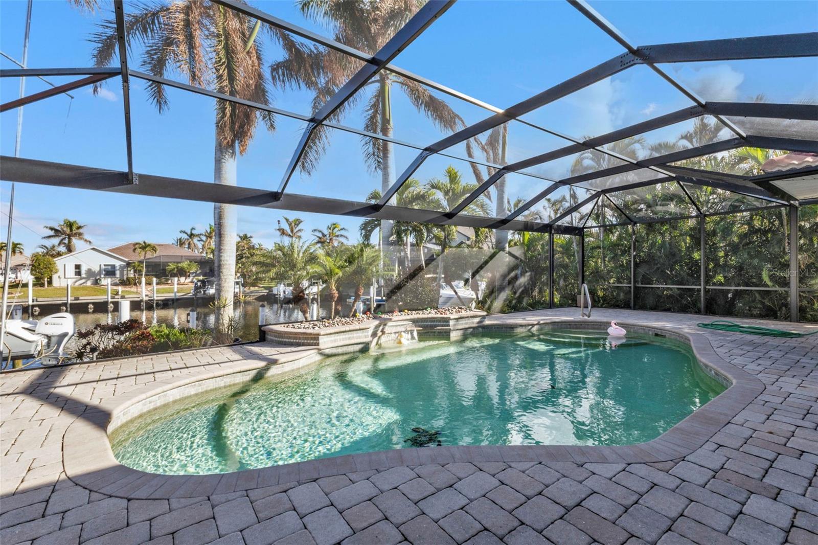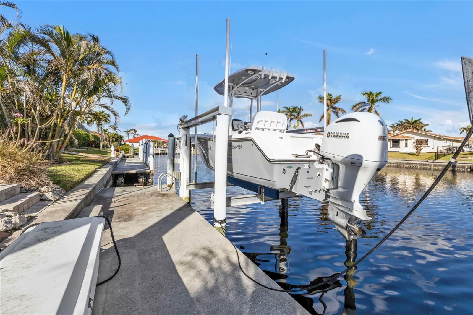 Custom Waterfront Paradise with Sailboat Access in Punta Gorda Isles! Perfectly situated on a serene canal with direct access to Charlotte Harbor and beyond! This custom-built 3-bedroom, 2-bathroom home is a true Florida gem, offering luxury, comfort, and stunning water views. Enter through the leaded double-entry doors into a beautifully designed space featuring tile flooring throughout, volume ceilings, and an open floor plan that seamlessly blends indoor and outdoor living. The spacious living and dining areas have panoramic views of the pool, lanai, and canal, setting the tone for relaxation and entertainment. The chef’s kitchen boasts granite countertops, a breakfast bar, stainless steel appliances, and a sunny dining nook perfect for casual meals. The living room is filled with natural light with large windows and sliding glass doors, creating a warm and inviting atmosphere. The luxurious king-size master suite features a spacious sitting area, dual closets, and an en-suite bathroom complete with a jetted tub, walk-in shower, dual sinks, and a private water closet. The split-bedroom floor plan ensures privacy, with two large guest bedrooms on the opposite side of the home. One guest room even includes a Murphy bed, ideal for flexible use of the space. Step outside to your tropical oasis, where pocketing sliding glass doors open to the expansive lanai and pool area. The saltwater pool system, updated in 2024, is perfect for year-round enjoyment, while the paver deck and lush landscaping create a private retreat. Brand new pool heater added in 2025. Oversized garage has ample workspace and storage for all of your projects. A 55’ concrete dock with water, electric, and a 6,000 lb. boat lift are steps away, making boating a breeze. Additional highlights include, 2019 Roof and impact windows for peace of mind, lanai has hurricane shutters on an inside track, circular paver driveway for added curb appeal. Located in the heart of Punta Gorda Isles, this home is close to restaurants, shops, and entertainment, while offering the ultimate in waterfront living. Don’t wait—schedule your private showing today and start living your best Florida life!