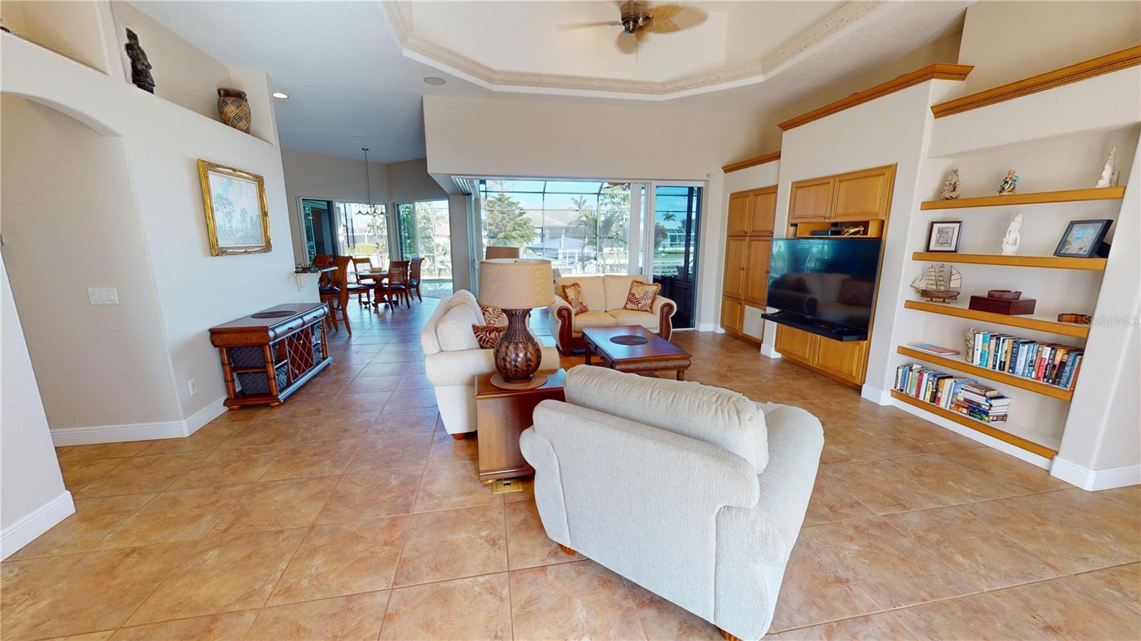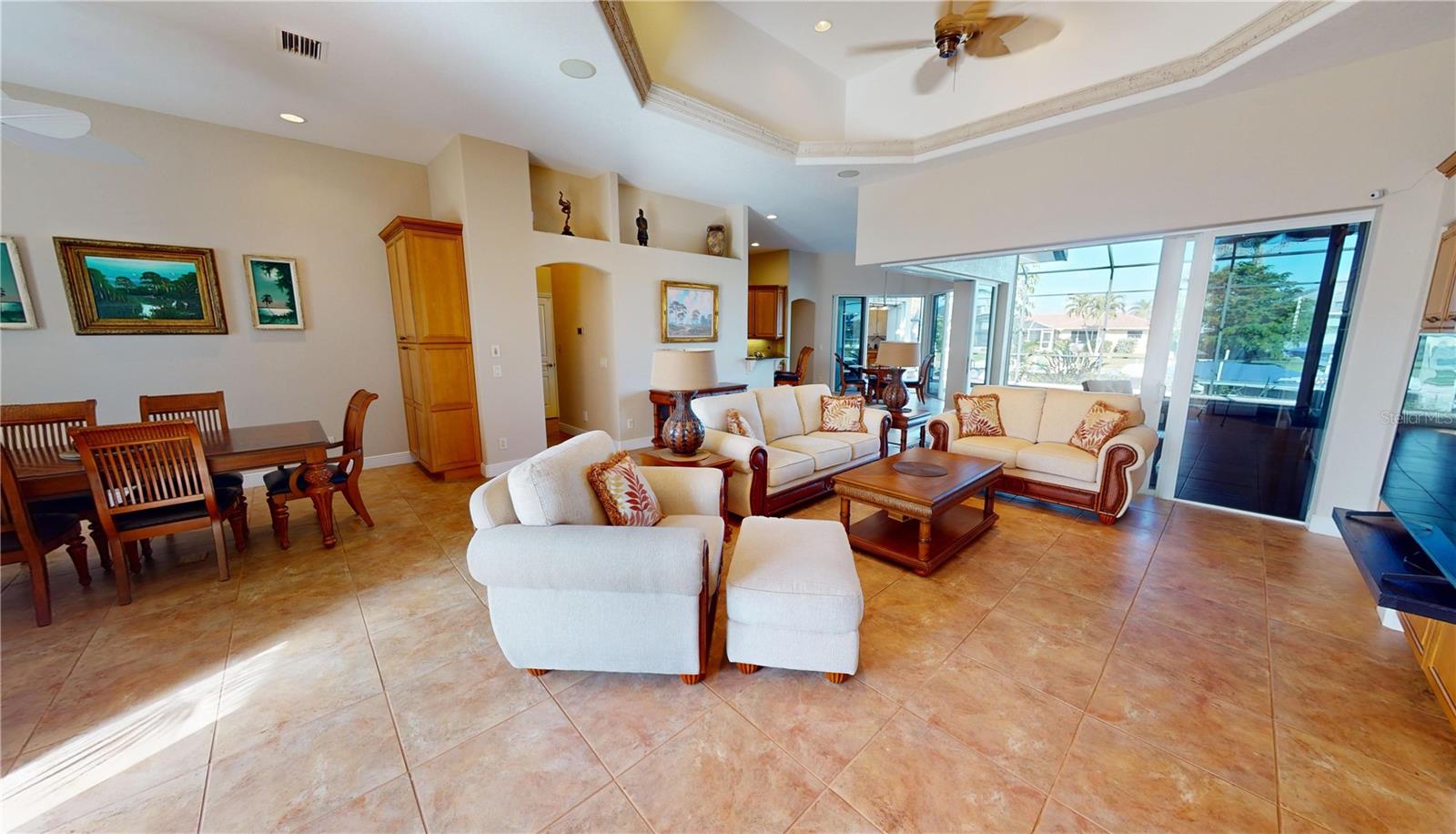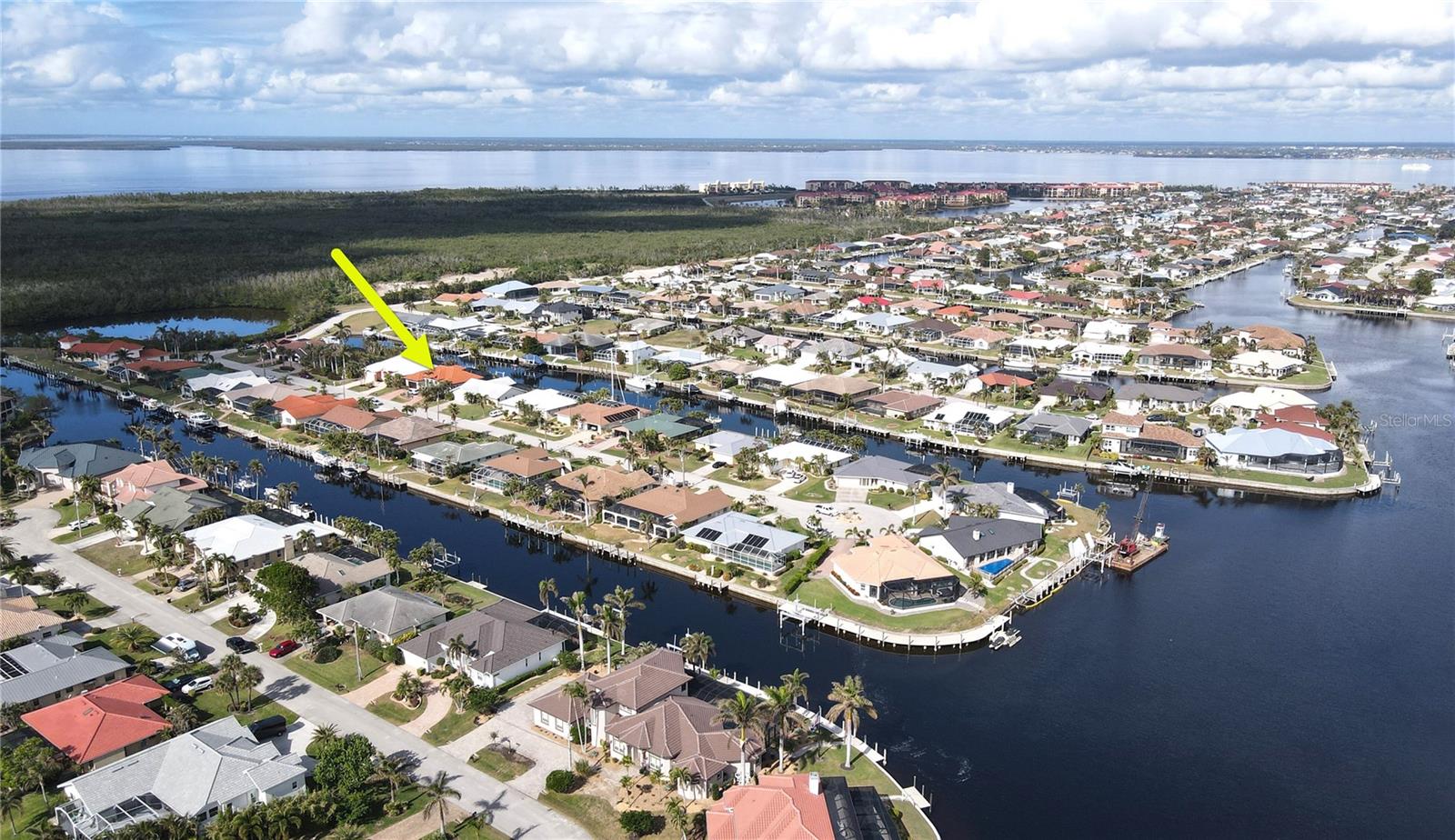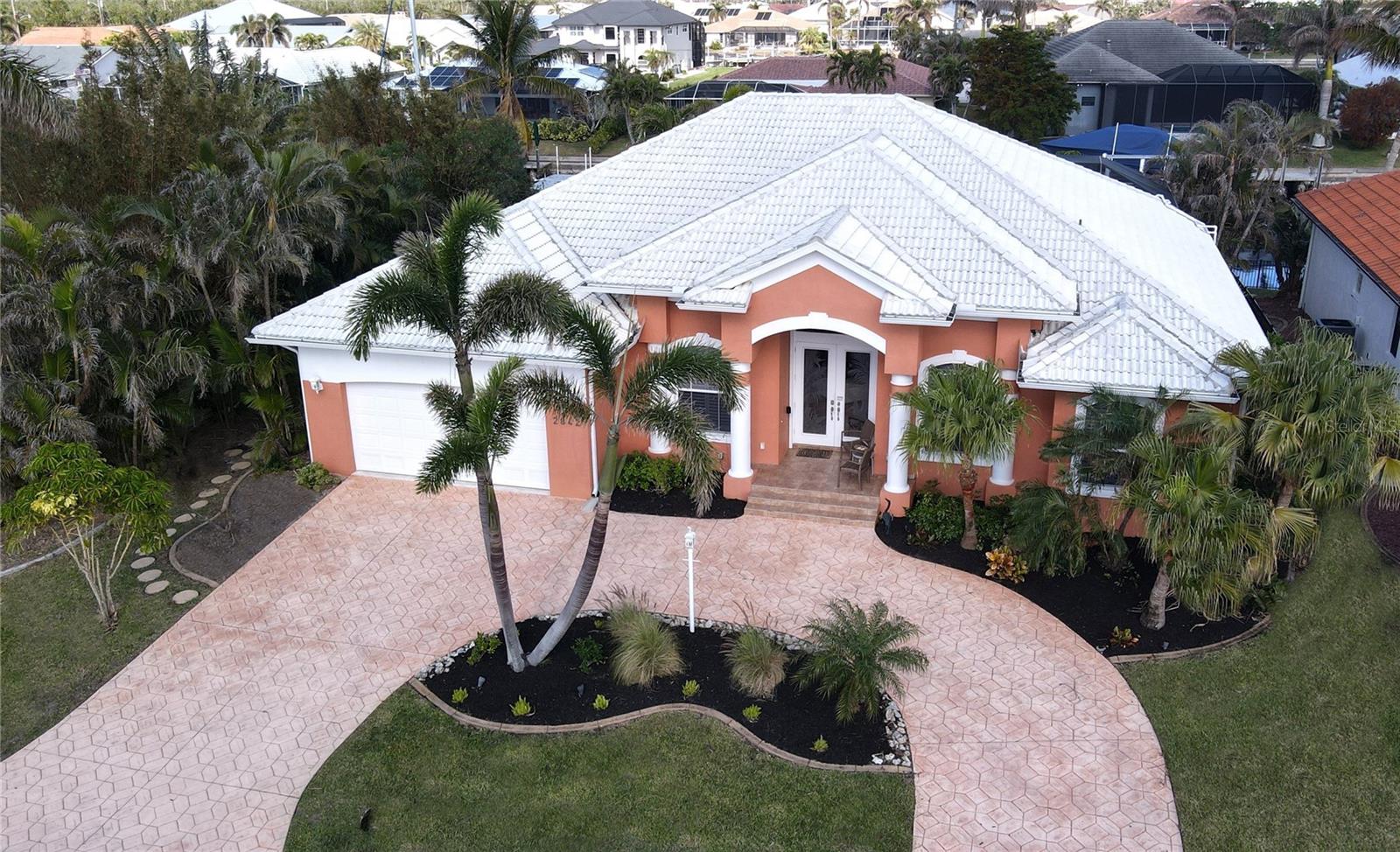 **PRICE IMPROVEMENT**PLEASE ENJOY THE 3D INTERACTIVE VIRTUAL TOUR ASSOCIATED WITH THIS LISTING – Welcome home to Punta Gorda, Florida and the unique boating community of Punta Gorda Isles. Situated on a 120' x 80' canal front lot, just 10 minutes from the open waters of Charlotte Harbor and the Gulf of Mexico beyond, is where you'll find this beautifully maintained, 2450 square foot, three-bedroom + Den, two-bath executive home. Built remarkably strong by Fero Construction in 2007, this residence enjoys an open, great room plan with soaring 11-foot tray ceilings and 8-foot tall corner glass sliders, providing 23 feet of unobstructed access to the screened waterfront pool enclosure. Open to the great room, the home's kitchen sports ample granite counters and Maplewood cabinetry, a closet pantry, a breakfast bar and a great view of the pool area. The primary en-suite bedroom, located on the opposite side of the house from the two guest rooms for added privacy, has two walk-in closets and a spacious bath with dual sinks, a shower and garden tub. The vast screened pool enclosure measures over 1530 square feet in size, 390-feet of which is under roof. This outdoor tropical oasis has direct access from the primary bedroom, living room, kitchen dinette and one of the two guest bedrooms, and it sports a 38' x 12’ foot heated (solar/heat pump) pool, a kitchenette and a storage closet. Beyond the pool enclosure is 80-feet of city-maintained seawall, which enjoys a 60-foot concrete dock with water, electrical service and an electric 10,000-pound boat lift. Other notable features include a two-car attached garage with overhead storage and A/C, ManaBloc central plumbing, a central vacuum system, built-in ceiling speakers in most rooms and full window storm protection. From this location, you are but 1.3 miles from Ponce De Leon Park, 2.6 miles from the Fisherman's Village entertainment complex, 3.2 miles from historic downtown Punta Gorda and just 7 miles from Punta Gorda Airport (PGD). This home represents an excellent find and a preferred area at an ideal price. Walk through this listing now, and click on the interactive 3D virtual tour.