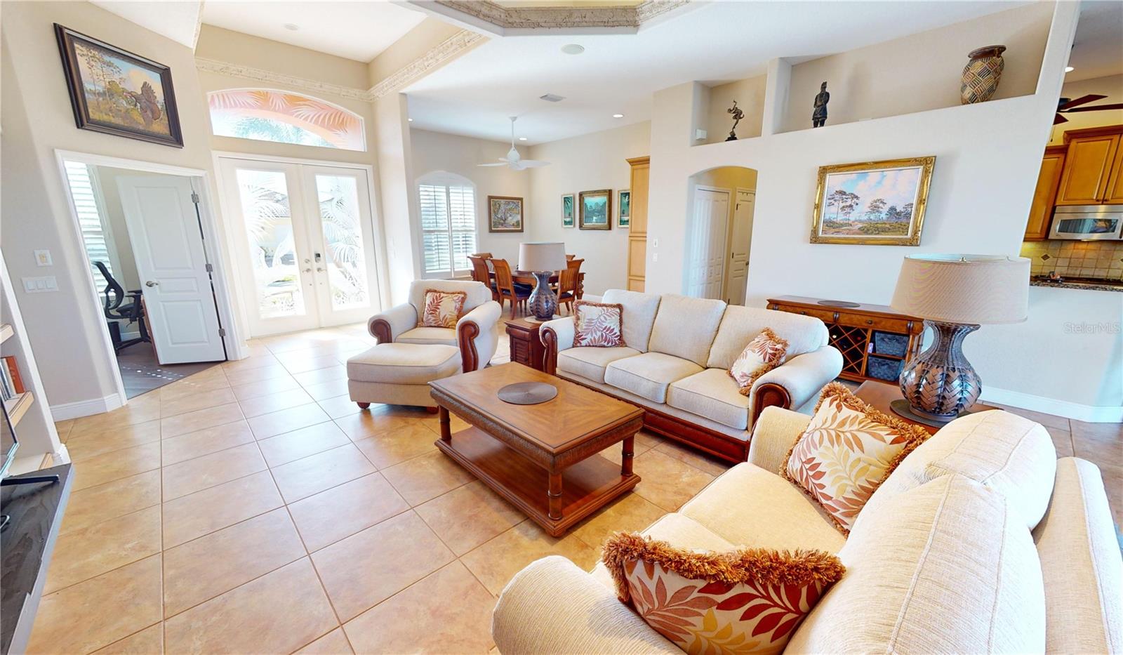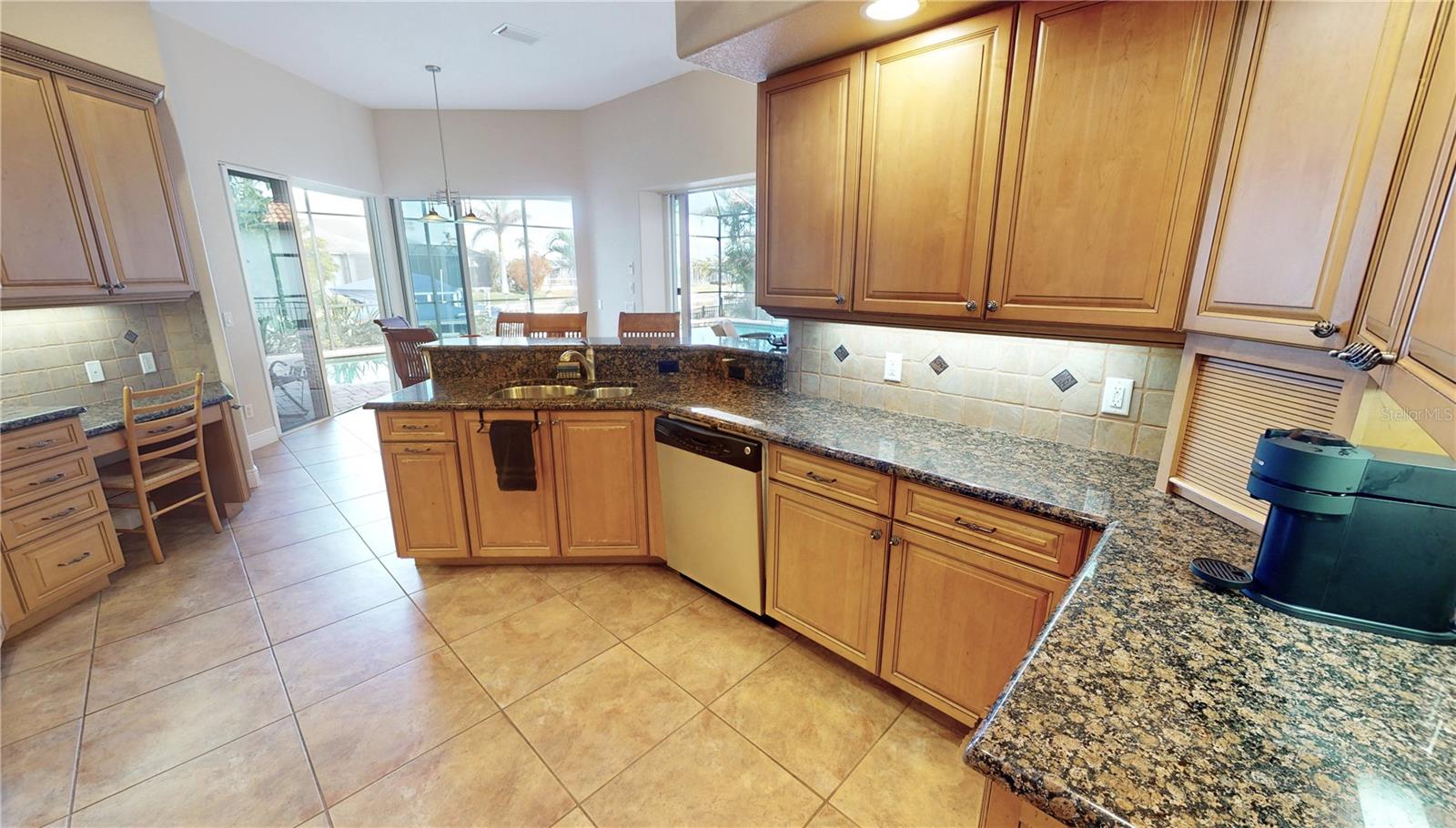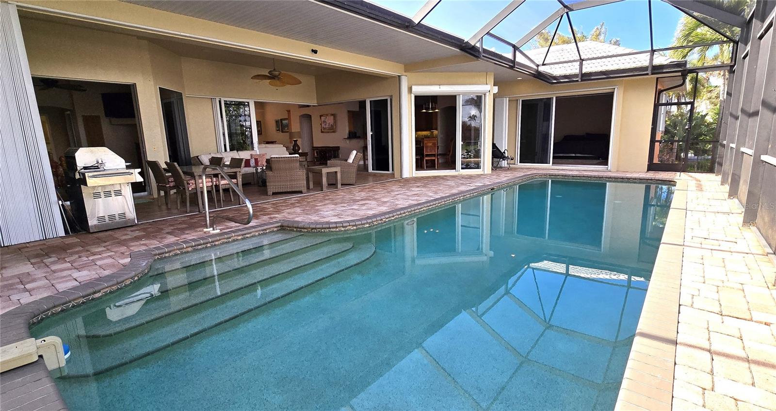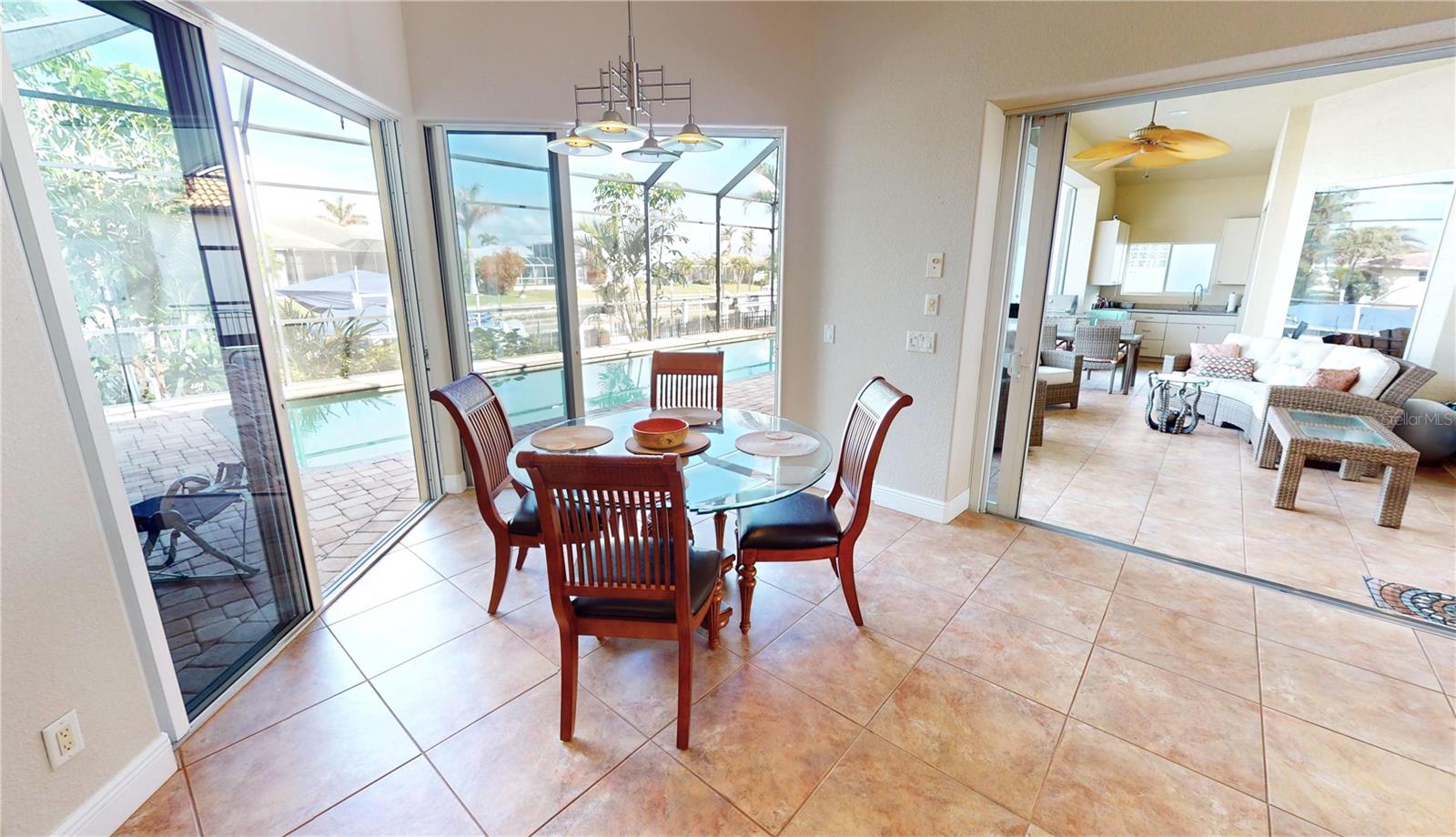 **PRICE IMPROVEMENT**PLEASE ENJOY THE 3D INTERACTIVE VIRTUAL TOUR ASSOCIATED WITH THIS LISTING – Welcome home to Punta Gorda, Florida and the unique boating community of Punta Gorda Isles. Situated on a 120' x 80' canal front lot, just 10 minutes from the open waters of Charlotte Harbor and the Gulf of Mexico beyond, is where you'll find this beautifully maintained, 2450 square foot, three-bedroom + Den, two-bath executive home. Built remarkably strong by Fero Construction in 2007, this residence enjoys an open, great room plan with soaring 11-foot tray ceilings and 8-foot tall corner glass sliders, providing 23 feet of unobstructed access to the screened waterfront pool enclosure. Open to the great room, the home's kitchen sports ample granite counters and Maplewood cabinetry, a closet pantry, a breakfast bar and a great view of the pool area. The primary en-suite bedroom, located on the opposite side of the house from the two guest rooms for added privacy, has two walk-in closets and a spacious bath with dual sinks, a shower and garden tub. The vast screened pool enclosure measures over 1530 square feet in size, 390-feet of which is under roof. This outdoor tropical oasis has direct access from the primary bedroom, living room, kitchen dinette and one of the two guest bedrooms, and it sports a 38' x 12’ foot heated (solar/heat pump) pool, a kitchenette and a storage closet. Beyond the pool enclosure is 80-feet of city-maintained seawall, which enjoys a 60-foot concrete dock with water, electrical service and an electric 10,000-pound boat lift. Other notable features include a two-car attached garage with overhead storage and A/C, ManaBloc central plumbing, a central vacuum system, built-in ceiling speakers in most rooms and full window storm protection. From this location, you are but 1.3 miles from Ponce De Leon Park, 2.6 miles from the Fisherman's Village entertainment complex, 3.2 miles from historic downtown Punta Gorda and just 7 miles from Punta Gorda Airport (PGD). This home represents an excellent find and a preferred area at an ideal price. Walk through this listing now, and click on the interactive 3D virtual tour.