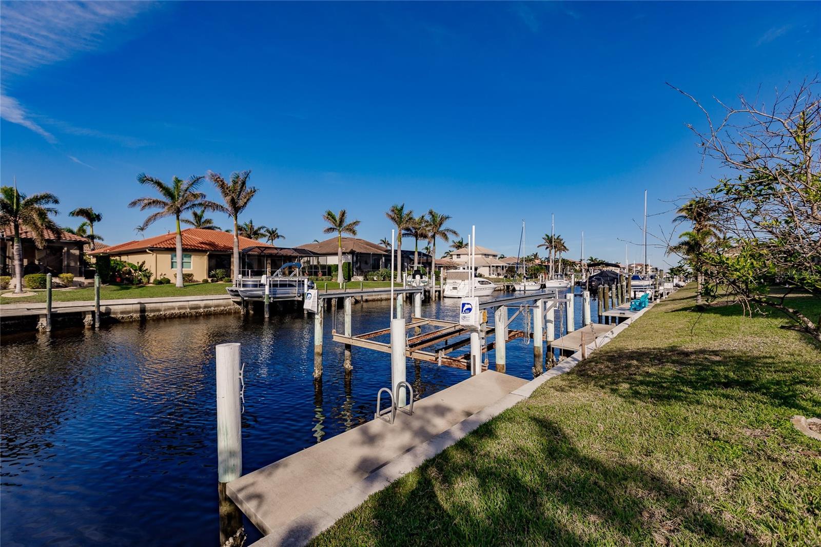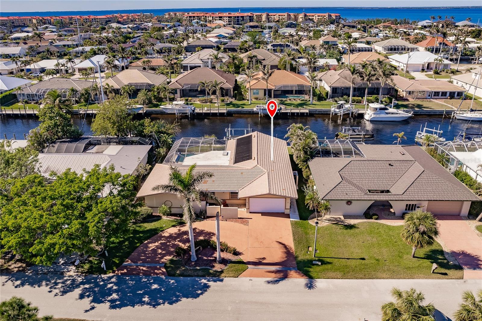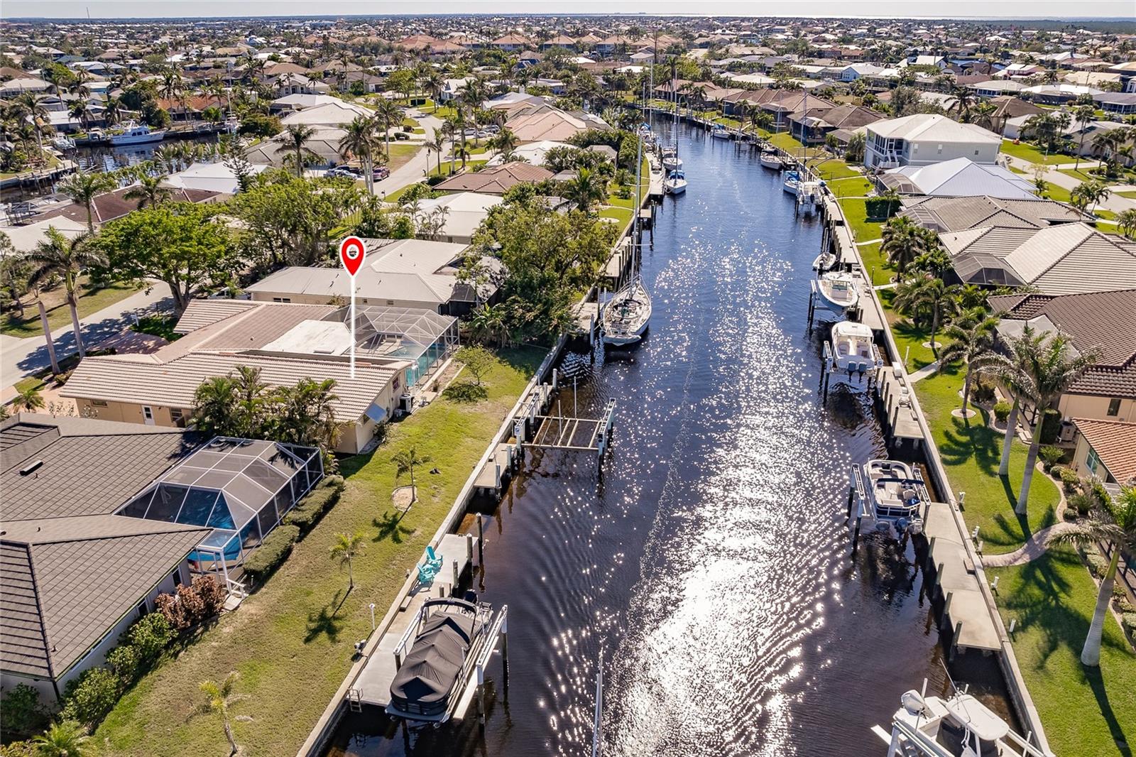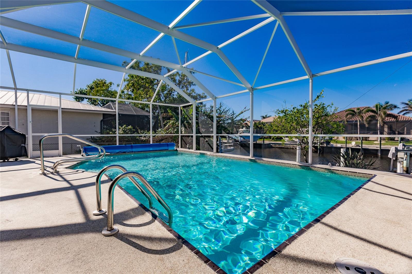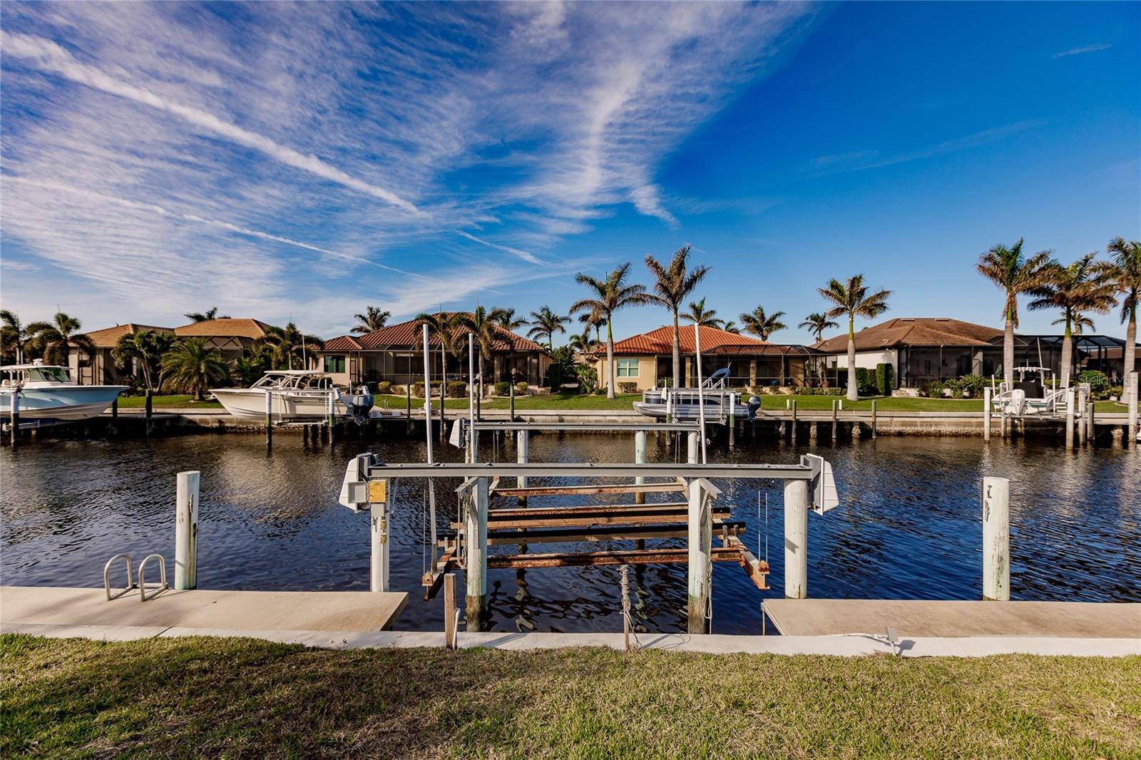 Need room for your extended family and guests? This true 4 bedroom, 2.5 bath, sailboat waterfront pool home in the waterfront community of Punta Gorda Isles is just what you have been searching for. Spectacular view of wide waterway with 80 feet of water frontage with direct access to Charlotte Harbor – only minutes away and then on to the blue waters of the Gulf of Mexico. There are 2 concrete docks and a 10,000 lb boat lift. So, bring your boat! Hop in your boat and be in Charlotte Harbor for a day of world class fishing or island hopping to the many barrier islands. With over 2400 square feet of living space there’s plenty of room for family and friends with great room, family room, dining area, spacious kitchen, and extended lanai. This home offers bright and open floor plan with new decorator light and fan fixtures, new wood plank luxury vinyl flooring in main living areas, and color accent walls. The wall-to-wall sliders in the great room lead out to the lanai and pool area bringing the outdoors into your living area. Great for entertaining! The kitchen is a culinary enthusiast’s dream with stainless appliances including 4-door fridge, built in oven and microwave, and breakfast bar that opens to the main living areas and pass through window to the lanai for easy entertaining. There’s ample storage with closets and pantries throughout the home and walk in closets in the 2nd and 4th bedroom. The owner’s suite also has a walk-in closet and en suite bath that will be your private retreat with his and hers sinks and glass enclosed shower. Enjoy lazing in your beautiful, heated pool overlooking the expansive waterway. The extended wood beamed lanai will be great for entertaining, and you will spend many hours enjoying the Florida wildlife, fish, and waterfowl that abound in this area. And with the western view you will enjoy gorgeous sunsets. The huge, dedicated laundry room is equipped with overhead cabinets, counter, and front-load washer & dryer. Other key features fresh interior paint, new luxury vinyl wood plank flooring in main living areas, updated guest bath, include irrigation system, concrete seawall maintained by the City of Punta Gorda, and public water & sewer for convenience and reliability. Impressive curb appeal with tile roof, landscape curbing and decorative rock, double door front entry, and mature palms. Proximity to local beaches, dining, shopping, and golf courses makes this property ideal for the Florida lifestyle. Also, easy access to public parks with bike and walking trails and picnic areas, and boat ramps providing access to many waterways, beautiful Charlotte Harbor, the Peace and Myakka Rivers, and the Gulf of Mexico. You are just minutes to historic downtown Punta Gorda and popular Fishermen’s Village with quaint shops and cafes. Quiet waterfront community, yet all conveniences and amenities nearby. This one is a real gem. So, put this beautiful home on your list! **PLEASE ENJOY THE 3D INTERACTIVE VIRTUAL TOUR ASSOCIATED WITH THIS LISTING.