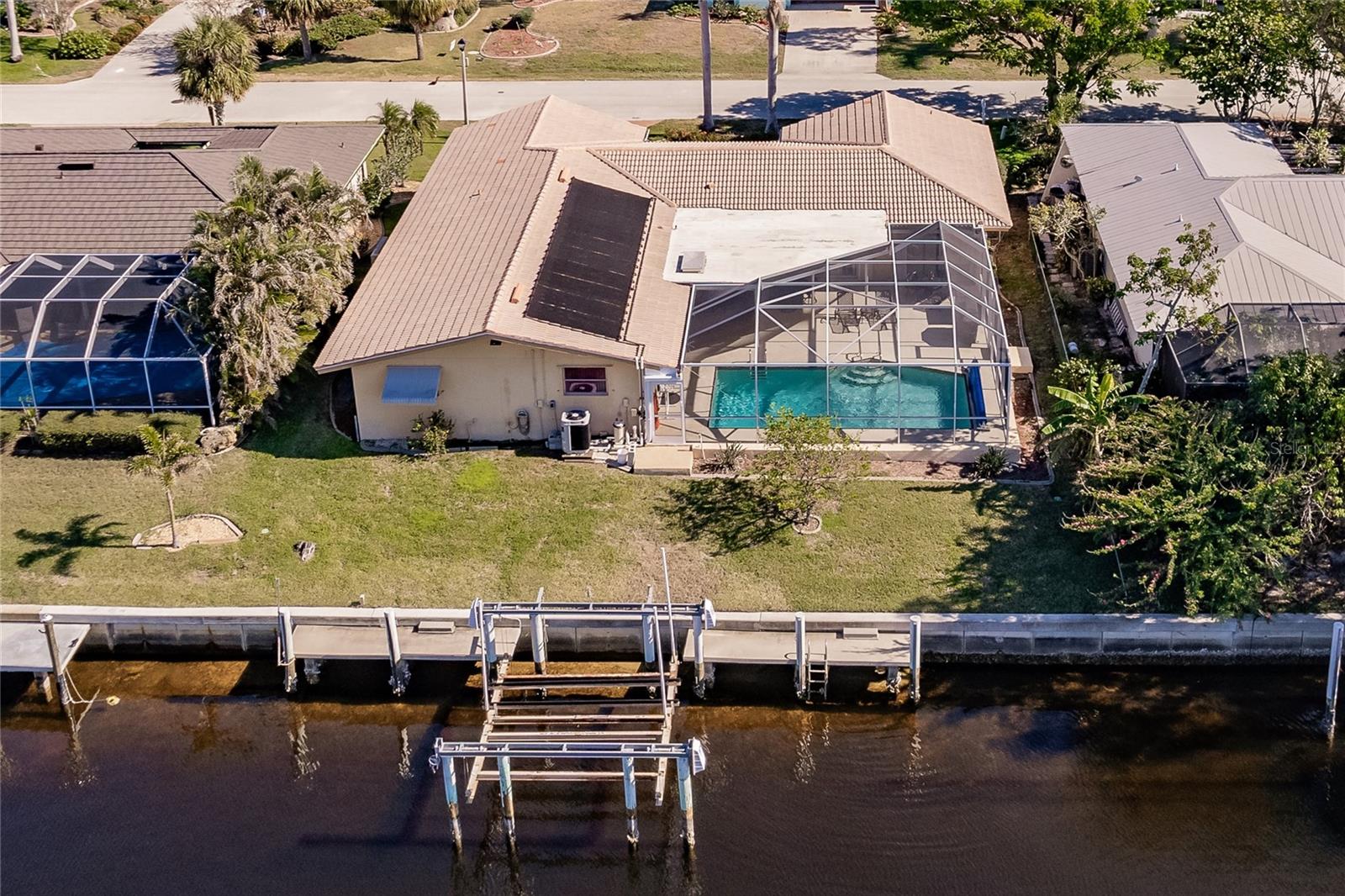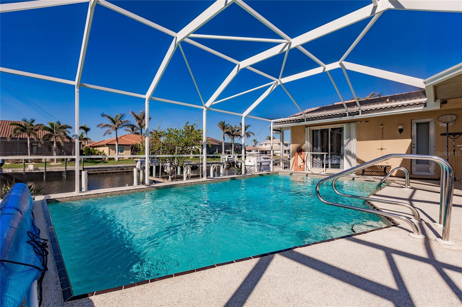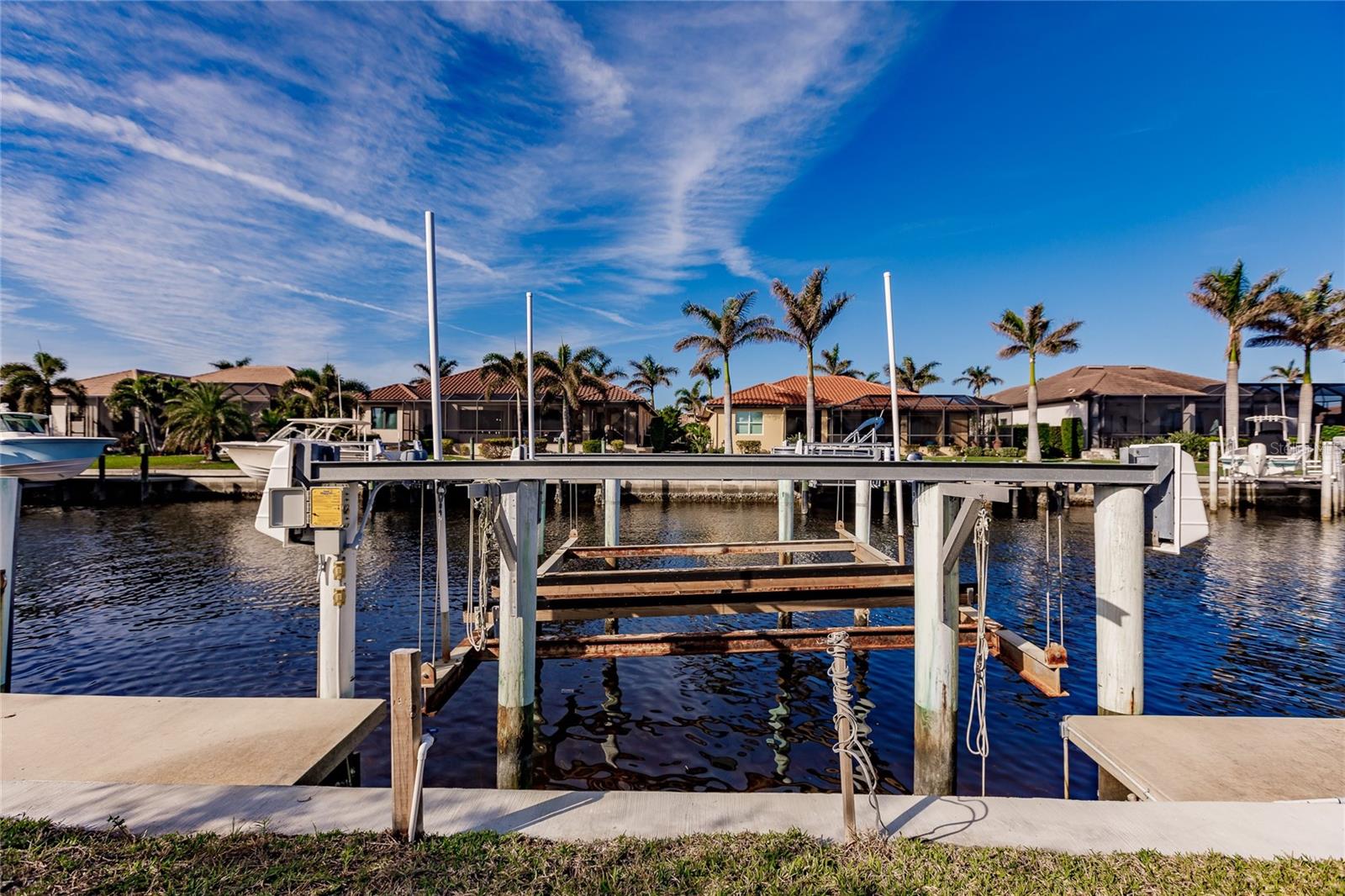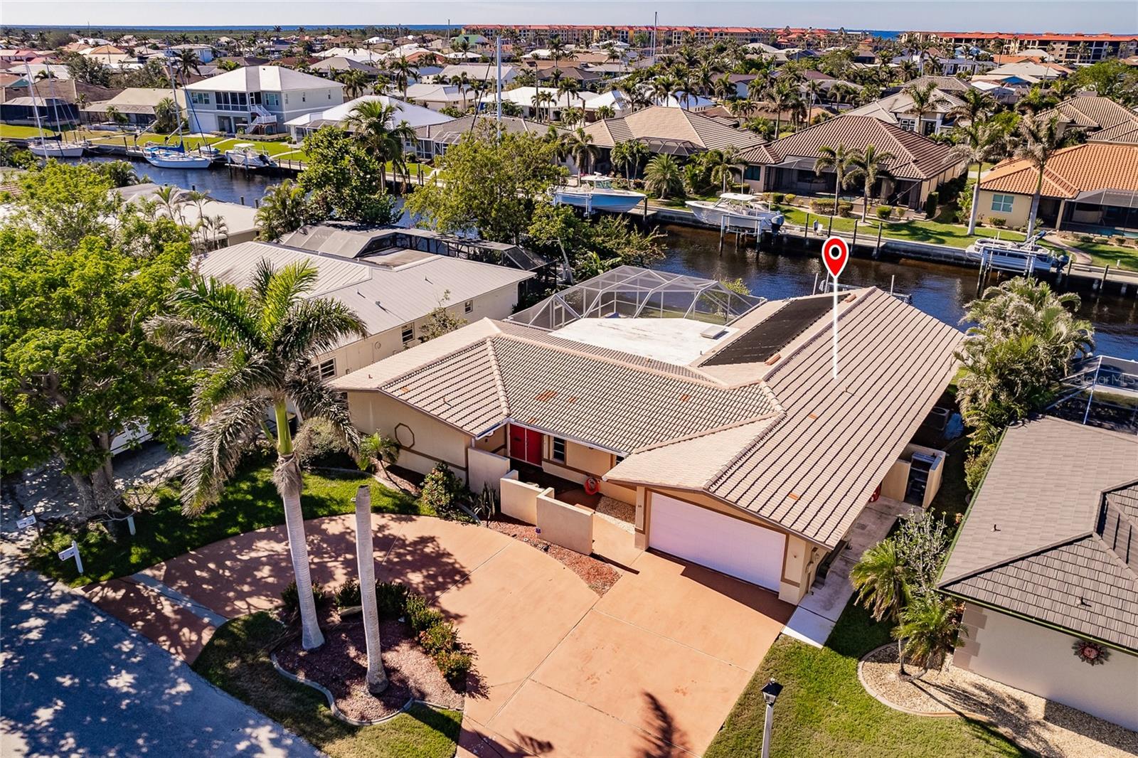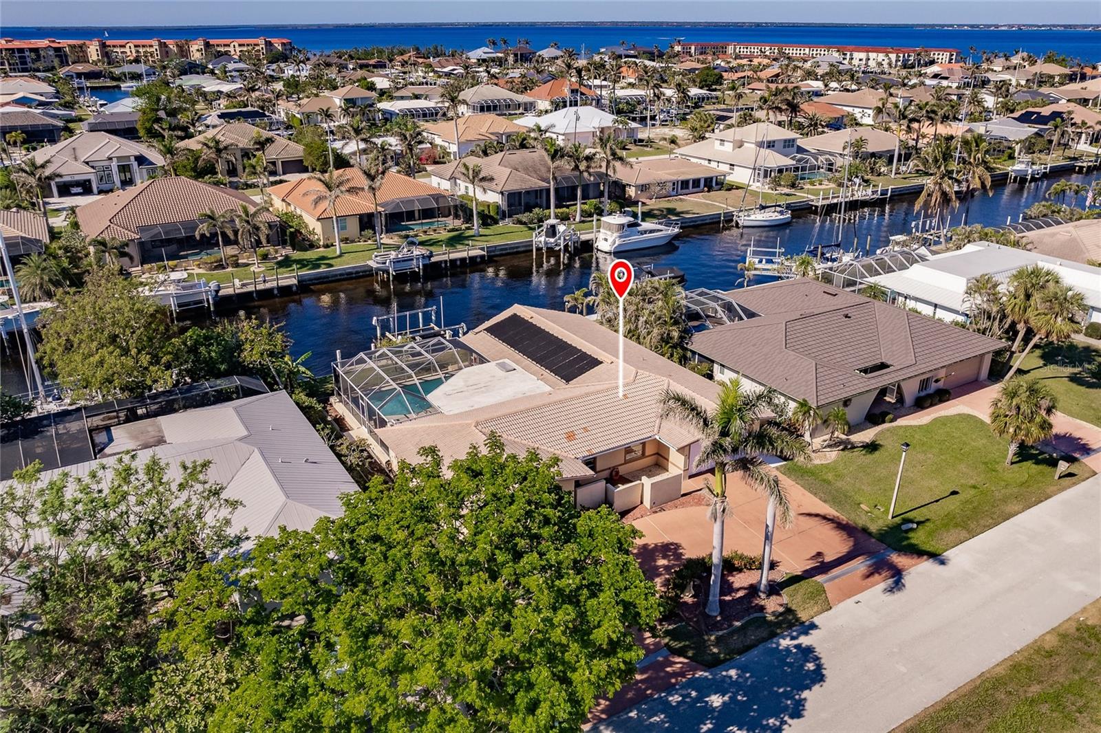 Need room for your extended family and guests? This true 4 bedroom, 2.5 bath, sailboat waterfront pool home in the waterfront community of Punta Gorda Isles is just what you have been searching for. Spectacular view of wide waterway with 80 feet of water frontage with direct access to Charlotte Harbor – only minutes away and then on to the blue waters of the Gulf of Mexico. There are 2 concrete docks and a 10,000 lb boat lift. So, bring your boat! Hop in your boat and be in Charlotte Harbor for a day of world class fishing or island hopping to the many barrier islands. With over 2400 square feet of living space there’s plenty of room for family and friends with great room, family room, dining area, spacious kitchen, and extended lanai. This home offers bright and open floor plan with new decorator light and fan fixtures, new wood plank luxury vinyl flooring in main living areas, and color accent walls. The wall-to-wall sliders in the great room lead out to the lanai and pool area bringing the outdoors into your living area. Great for entertaining! The kitchen is a culinary enthusiast’s dream with stainless appliances including 4-door fridge, built in oven and microwave, and breakfast bar that opens to the main living areas and pass through window to the lanai for easy entertaining. There’s ample storage with closets and pantries throughout the home and walk in closets in the 2nd and 4th bedroom. The owner’s suite also has a walk-in closet and en suite bath that will be your private retreat with his and hers sinks and glass enclosed shower. Enjoy lazing in your beautiful, heated pool overlooking the expansive waterway. The extended wood beamed lanai will be great for entertaining, and you will spend many hours enjoying the Florida wildlife, fish, and waterfowl that abound in this area. And with the western view you will enjoy gorgeous sunsets. The huge, dedicated laundry room is equipped with overhead cabinets, counter, and front-load washer & dryer. Other key features fresh interior paint, new luxury vinyl wood plank flooring in main living areas, updated guest bath, include irrigation system, concrete seawall maintained by the City of Punta Gorda, and public water & sewer for convenience and reliability. Impressive curb appeal with tile roof, landscape curbing and decorative rock, double door front entry, and mature palms. Proximity to local beaches, dining, shopping, and golf courses makes this property ideal for the Florida lifestyle. Also, easy access to public parks with bike and walking trails and picnic areas, and boat ramps providing access to many waterways, beautiful Charlotte Harbor, the Peace and Myakka Rivers, and the Gulf of Mexico. You are just minutes to historic downtown Punta Gorda and popular Fishermen’s Village with quaint shops and cafes. Quiet waterfront community, yet all conveniences and amenities nearby. This one is a real gem. So, put this beautiful home on your list! **PLEASE ENJOY THE 3D INTERACTIVE VIRTUAL TOUR ASSOCIATED WITH THIS LISTING.