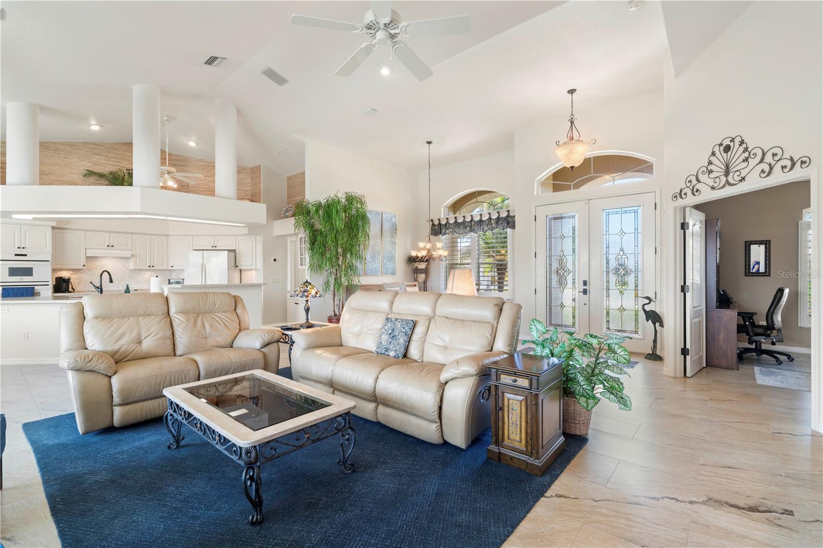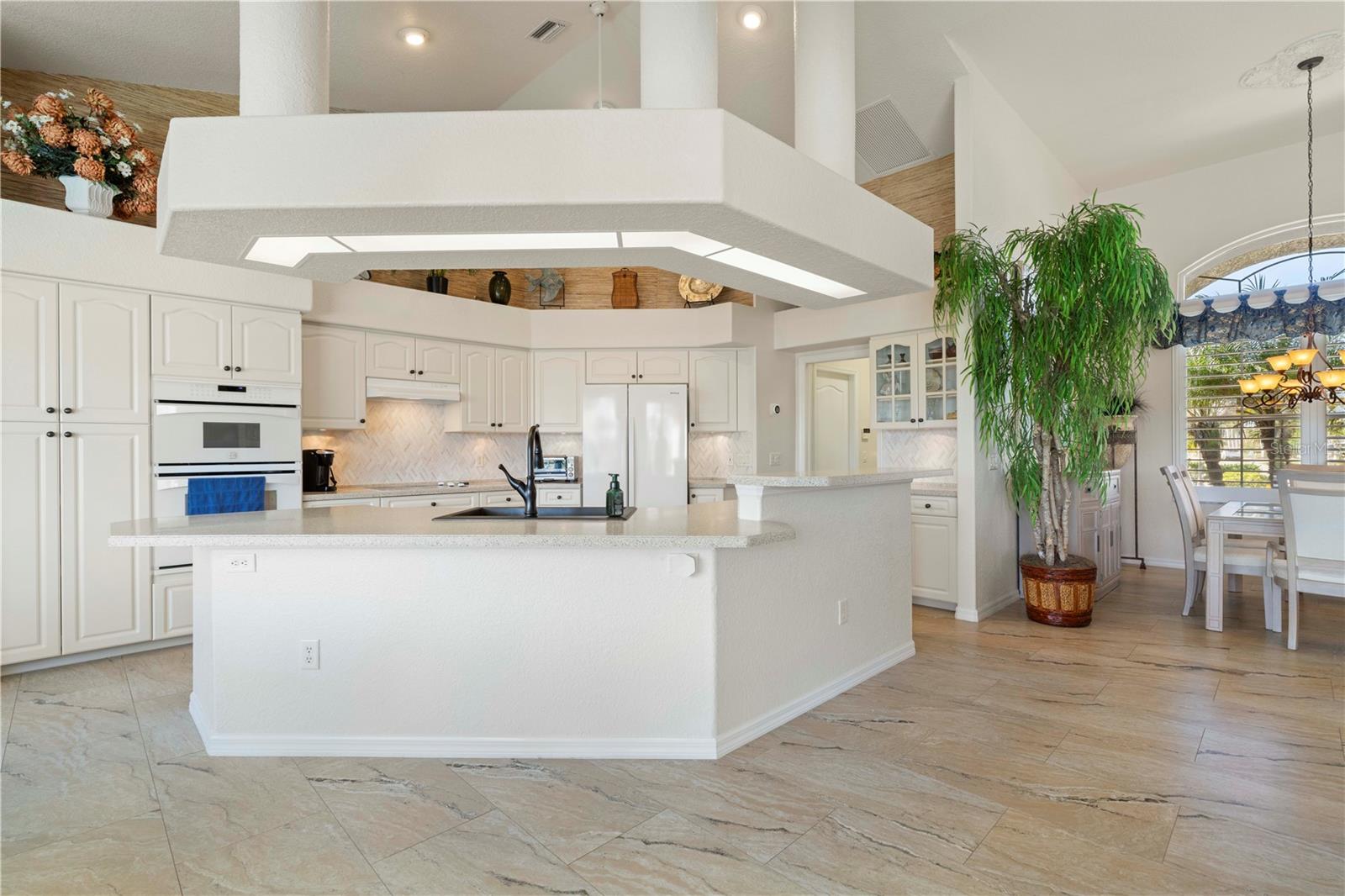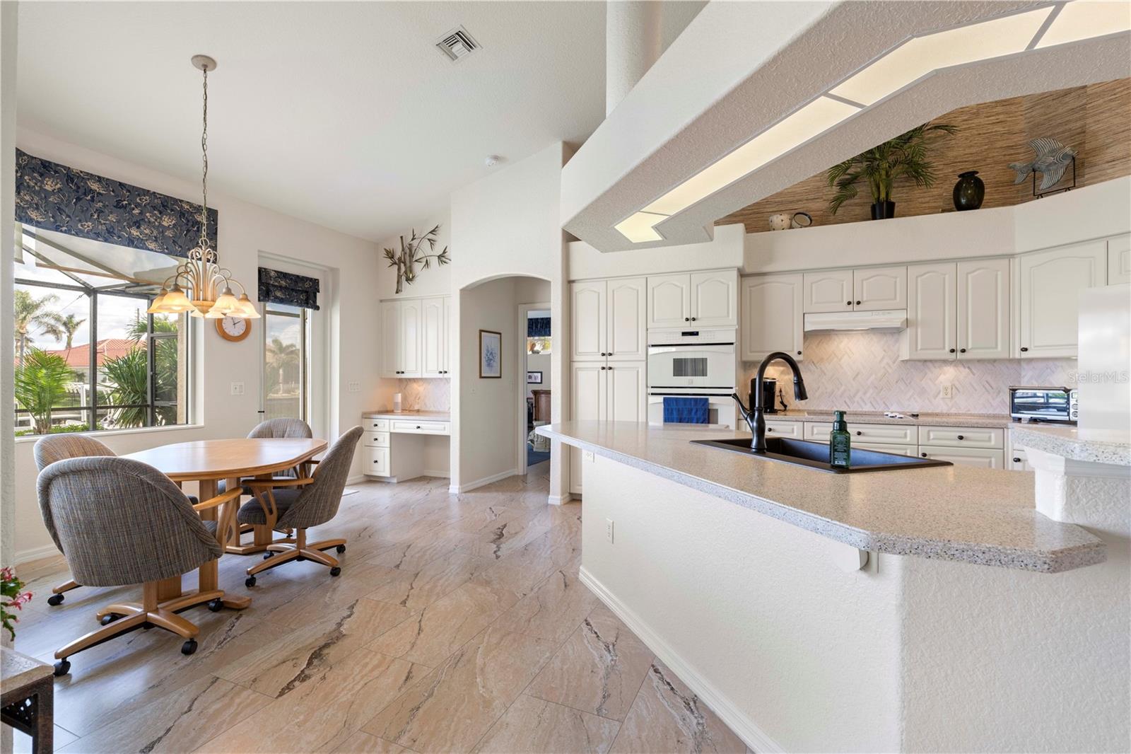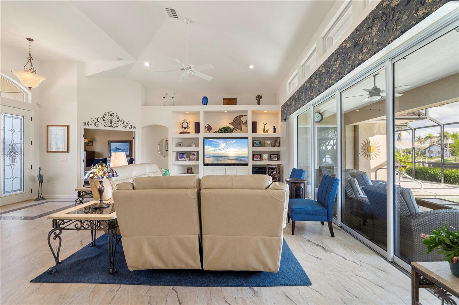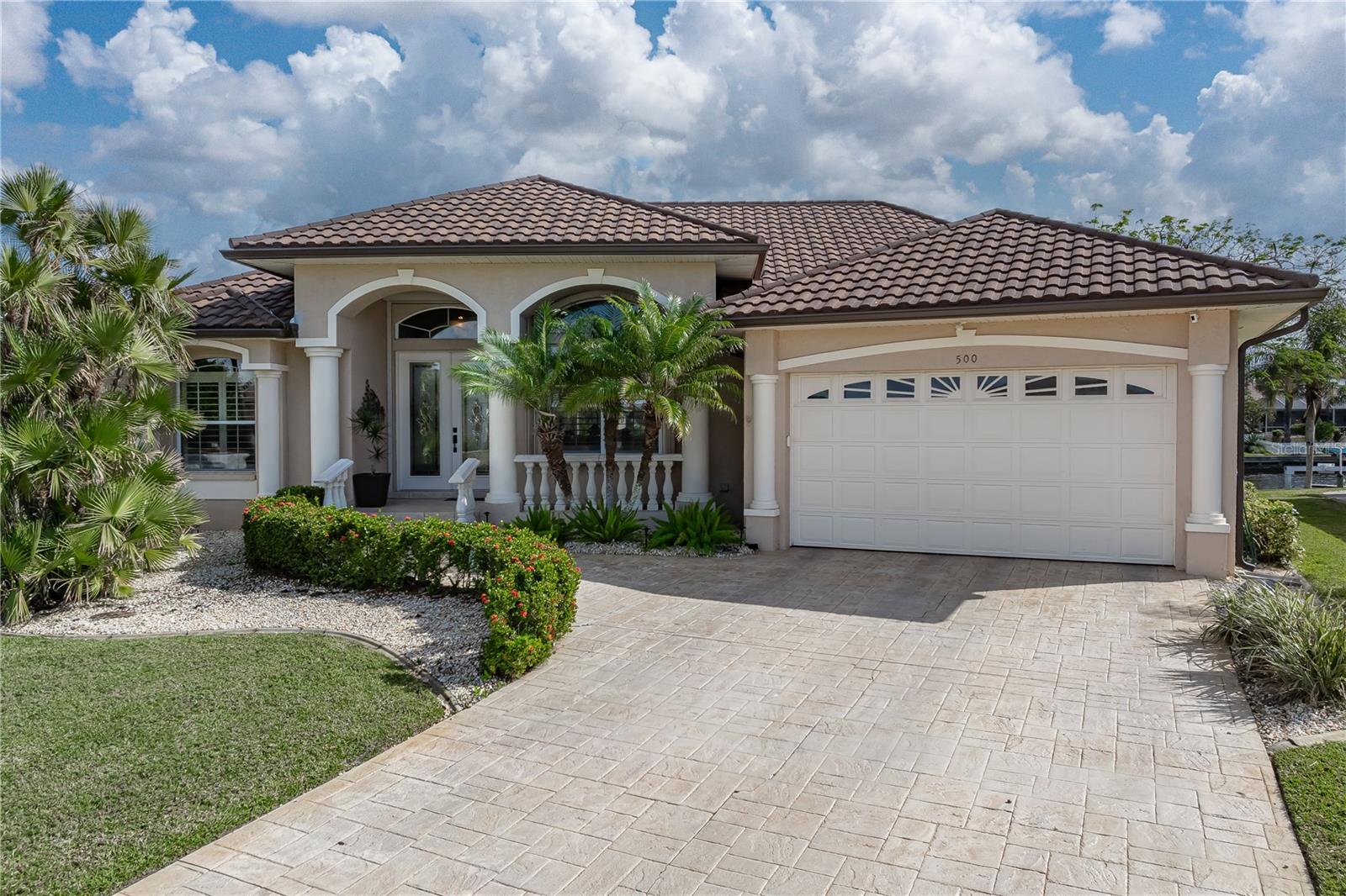 CUSTOM WATERFRONT HOME IN BSI ON KEY LOT W/**NEW METAL TILE ROOF AND NEW ENERGY EFFICIENT AC ** & 140 FT OF SEAWALL! Check out this 3 bed/2 bath, waterfront home w/over 2,200 sq ft of living space in the deed-restricted waterfront & golf community of Burnt Store Isles. Home is located on a quiet cul-de-sac surrounded by friendly neighbors. The interior of the home is bright & airy w/walls of sliding glass doors & large picture windows in almost every room. Architectural details include soaring cathedral ceilings, porcelain tile flooring throughout the main living areas as well as the guest bedroom/den, decorative plant shelves, rectangular transom windows in great room, gourmet kitchen w/adjacent breakfast nook & inviting outdoor living area. The great room features a built-in entertainment center w/lighted display shelves & disappearing sliding glass doors that extend the living space out onto the lanai. Centrally located kitchen offers a wraparound, multi-level breakfast bar, built-in convection oven/convection microwave, cook-top range w/hood plus ample cabinet & counter space. Almost all of the cabinets have pull-out shelves. The kitchen also features a tile back splash & under cabinet lighting. Lots of space for entertaining w/a formal dining area & large breakfast nook. Breakfast nook boasts a mitered aquarium glass window & built-in desk. The master suite offers walk-out access to the lanai, a spa-like master bath & oversized walk-in closet. The master bath has dual sinks, a large linen closet, private WC, a corner tub plus a tile & glass walk-in shower. The split bedroom offers large guest rooms. One guest room has walk-out access to the lanai w/pool & canal views while the other doubles as a home office/den. The guest bath features a combination tub/shower & linen closet. Outside, the lanai offers an in-ground, heated pool & lots of room for outdoor entertaining w/covered seating area & a sun deck off to the side by the outdoor shower & pool storage closet. Sit back & enjoy the canal view - watch as boats & the occasional dolphin or manatee wander past. Two doors from the screened lanai lead out to the fenced back yard. A concrete walkway leads to the 45 ft extended concrete dock w/12,000 lb boat lift. Boat lift perfectly positioned off to the side so as not to block the water view. Water & electric hook-ups are available dockside. Set off on your latest maritime adventure from your own backyard & start enjoying some of the best fishing & boating SW Florida has to offer. Other amenities include whole-house hurricane protection w/accordion shutters, water softener, attached oversized two car garage w/workshop & well-maintained tropical landscaping. Burnt Store Isles has an optional HOA & optional boat club both w/active social calendars. AC - Sept 2025 - Brand New. Boat for sale separately.