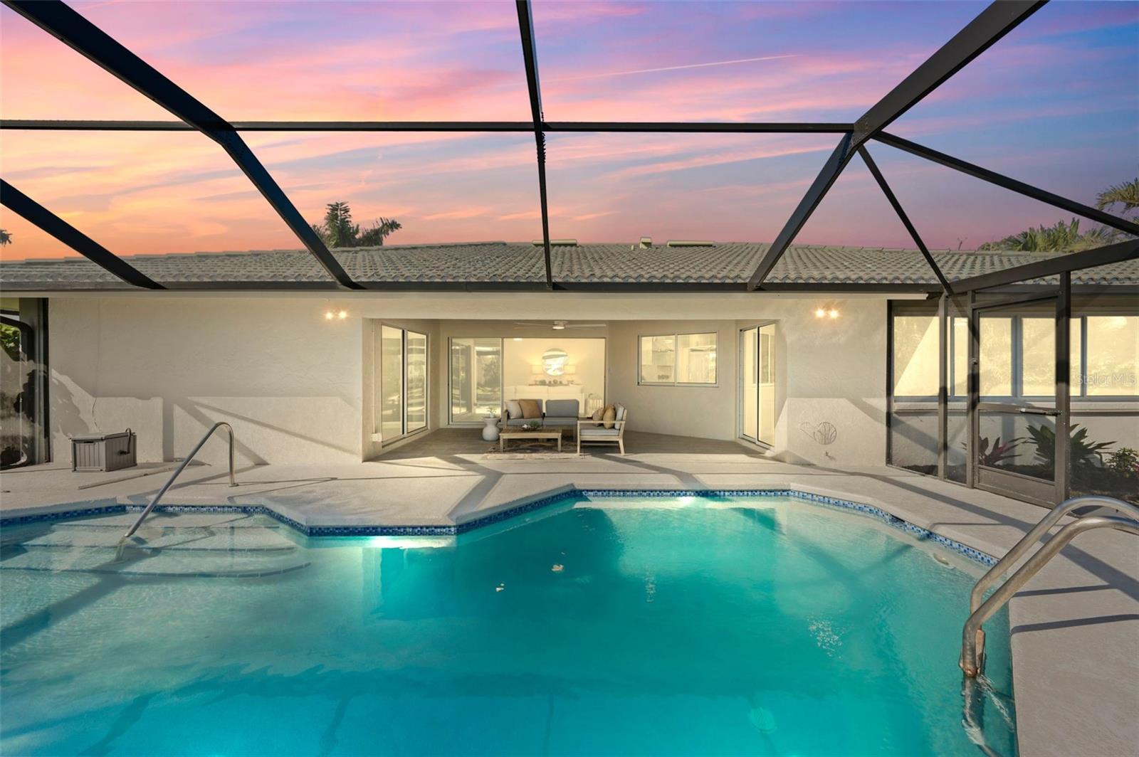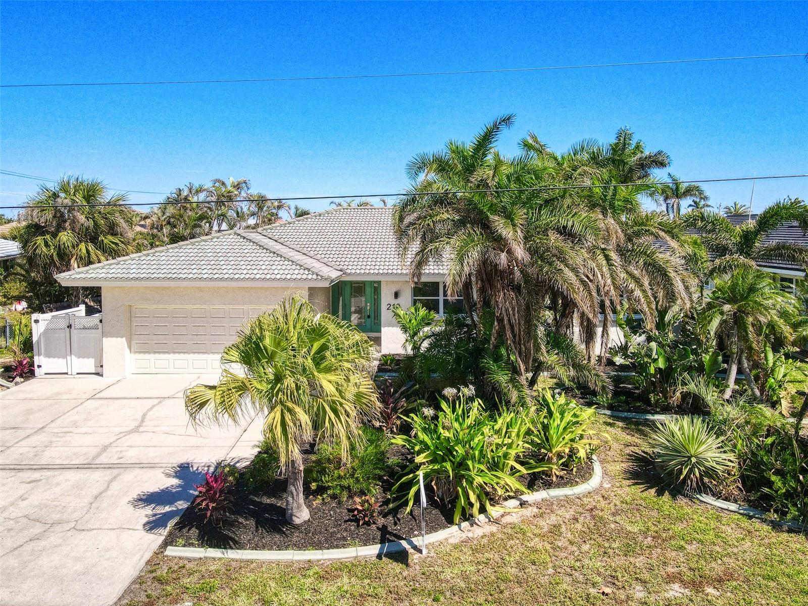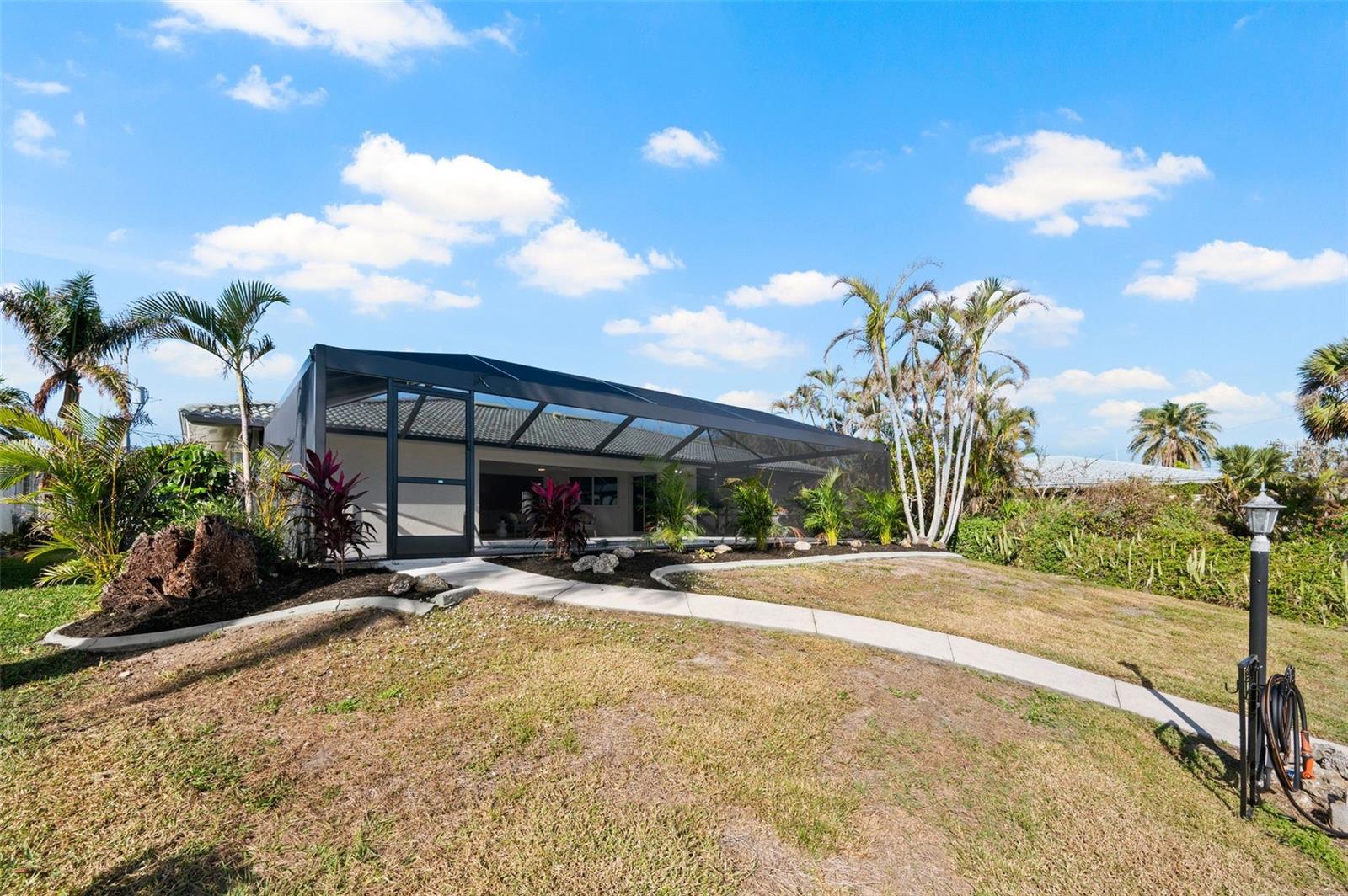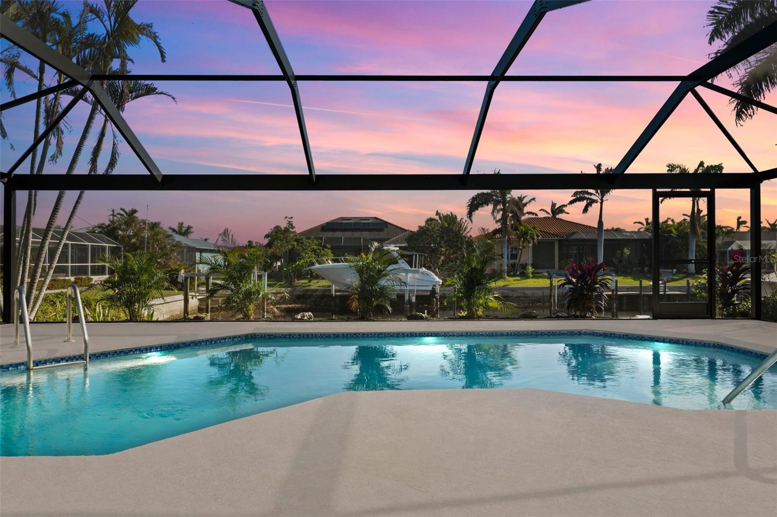Welcome to this beautifully updated waterfront home in the desirable Punta Gorda Isles, located on a spacious SALT WATER canal. Offering direct access to open waters in under a mile with NO BRIDGES, this property is perfect for all boaters, including those with sailboats. This home sits on high elevation and has NEVER FLOODED. It has been completely modernized with luxury in mind. Updates include NEW porcelain tile flooring throughout, NEW A/C unit, NEW electrical panel, and NEW recessed lighting, creating a bright, modern atmosphere. The chef's kitchen is a showstopper, featuring NEW custom cabinetry, NEW stainless steel appliances—including a wine fridge—and NEW quartz countertops with a striking waterfall edge, perfectly complemented by a matching quartz backsplash. Both bathrooms have been fully reimagined and updated, boasting NEW all-wood shaker vanities, NEW quartz countertops, and NEW elegant tile on the bath and shower walls, accented with luxurious marble herringbone designs in the niches and on the shower floor. Indulge in a NEW soaking tub, NEW rainfall and waterfall fixtures, as well as NEW sinks and toilets throughout the home. Step outside to an entertainer’s dream with a NEW panoramic pool cage surrounding a spacious 16' x 28' HEATED POOL. The recently updated lanai with NEW tile makes it the ideal setting to enjoy Florida’s stunning sunsets and relax in style. This home has been freshly painted inside and out and is surrounded by lush, low-maintenance landscaping, enhancing its curb appeal. Other key features include 54 feet of waterfront with a large cement dock equipped with water and electricity, a concrete seawall maintained by the city, and public water and sewer connections. Enjoy the added benefit of NO HOA fees! This property is nestled in a wonderful neighborhood with friendly neighbors, and it’s just minutes away from downtown Punta Gorda, which offers an array of shopping, dining, waterfront parks, and lively events—all easily accessible by bike. Additionally, some of the best beaches in Florida are only a short drive away. Don’t miss your opportunity to own this completely updated luxury waterfront home in one of Florida’s most sought-after locations. Schedule your showing today! This is more than just a home; it’s a lifestyle waiting for you to enjoy.
