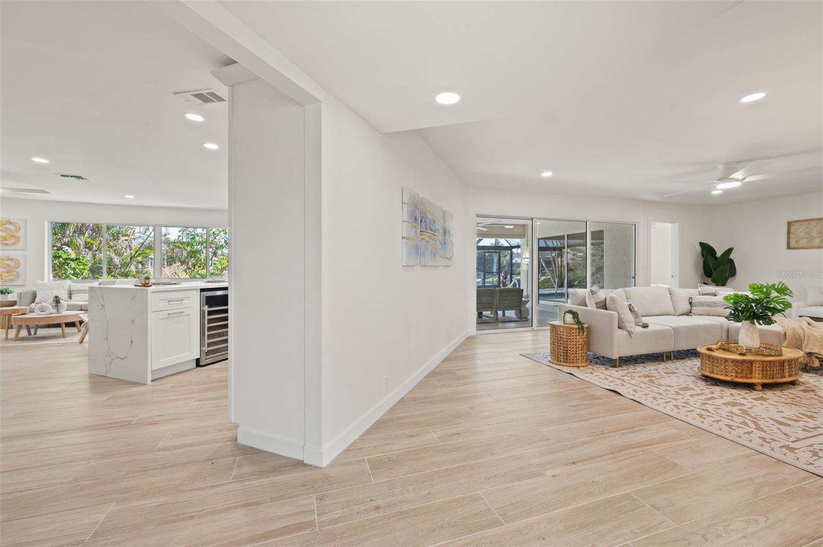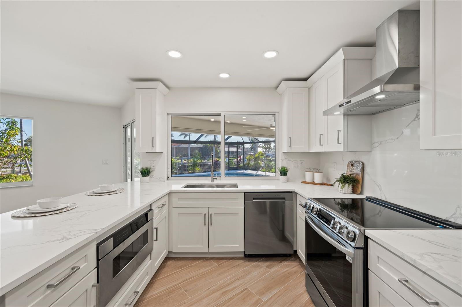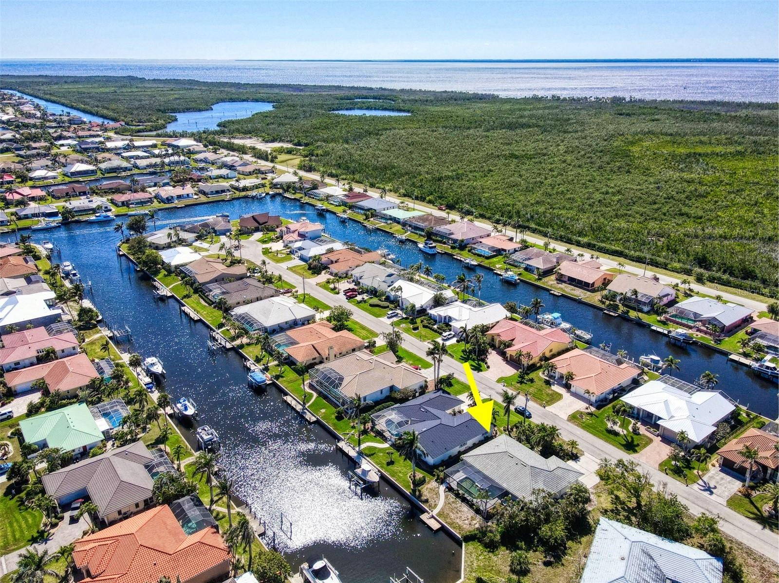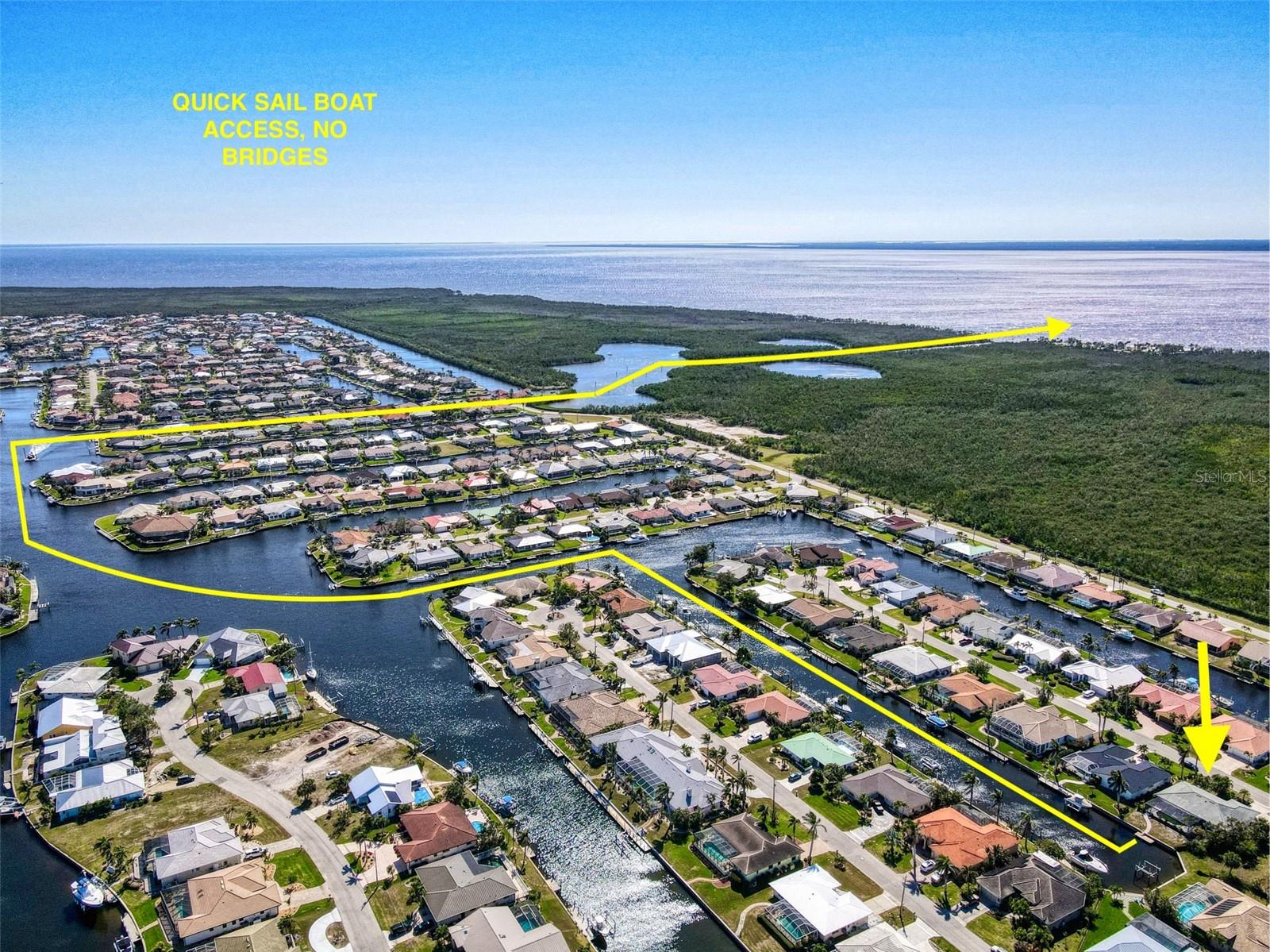 Welcome to this beautifully updated waterfront home in the desirable Punta Gorda Isles, located on a spacious SALT WATER canal. Offering direct access to open waters in under a mile with NO BRIDGES, this property is perfect for all boaters, including those with sailboats. This home sits on high elevation and has NEVER FLOODED. It has been completely modernized with luxury in mind. Updates include NEW porcelain tile flooring throughout, NEW A/C unit, NEW electrical panel, and NEW recessed lighting, creating a bright, modern atmosphere. The chef's kitchen is a showstopper, featuring NEW custom cabinetry, NEW stainless steel appliances—including a wine fridge—and NEW quartz countertops with a striking waterfall edge, perfectly complemented by a matching quartz backsplash. Both bathrooms have been fully reimagined and updated, boasting NEW all-wood shaker vanities, NEW quartz countertops, and NEW elegant tile on the bath and shower walls, accented with luxurious marble herringbone designs in the niches and on the shower floor. Indulge in a NEW soaking tub, NEW rainfall and waterfall fixtures, as well as NEW sinks and toilets throughout the home. Step outside to an entertainer’s dream with a NEW panoramic pool cage surrounding a spacious 16' x 28' HEATED POOL. The recently updated lanai with NEW tile makes it the ideal setting to enjoy Florida’s stunning sunsets and relax in style. This home has been freshly painted inside and out and is surrounded by lush, low-maintenance landscaping, enhancing its curb appeal. Other key features include 54 feet of waterfront with a large cement dock equipped with water and electricity, a concrete seawall maintained by the city, and public water and sewer connections. Enjoy the added benefit of NO HOA fees! This property is nestled in a wonderful neighborhood with friendly neighbors, and it’s just minutes away from downtown Punta Gorda, which offers an array of shopping, dining, waterfront parks, and lively events—all easily accessible by bike. Additionally, some of the best beaches in Florida are only a short drive away. Don’t miss your opportunity to own this completely updated luxury waterfront home in one of Florida’s most sought-after locations. Schedule your showing today! This is more than just a home; it’s a lifestyle waiting for you to enjoy.