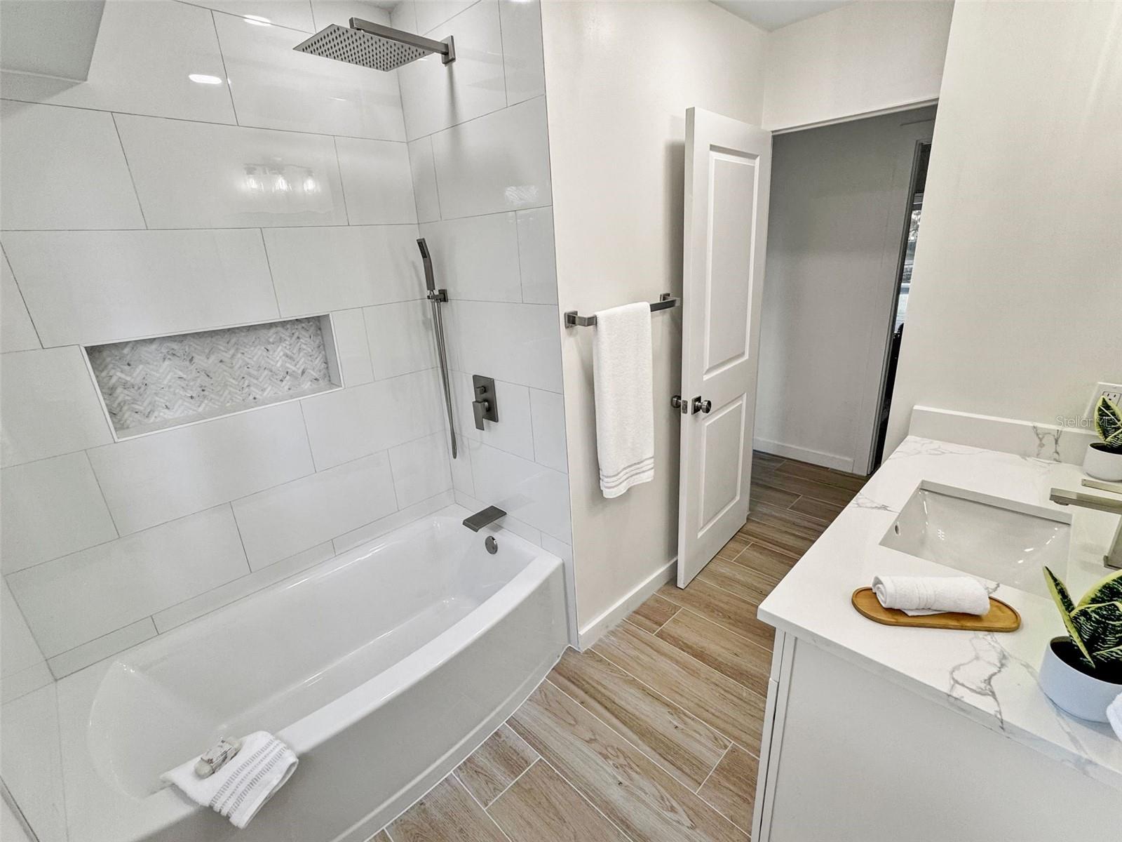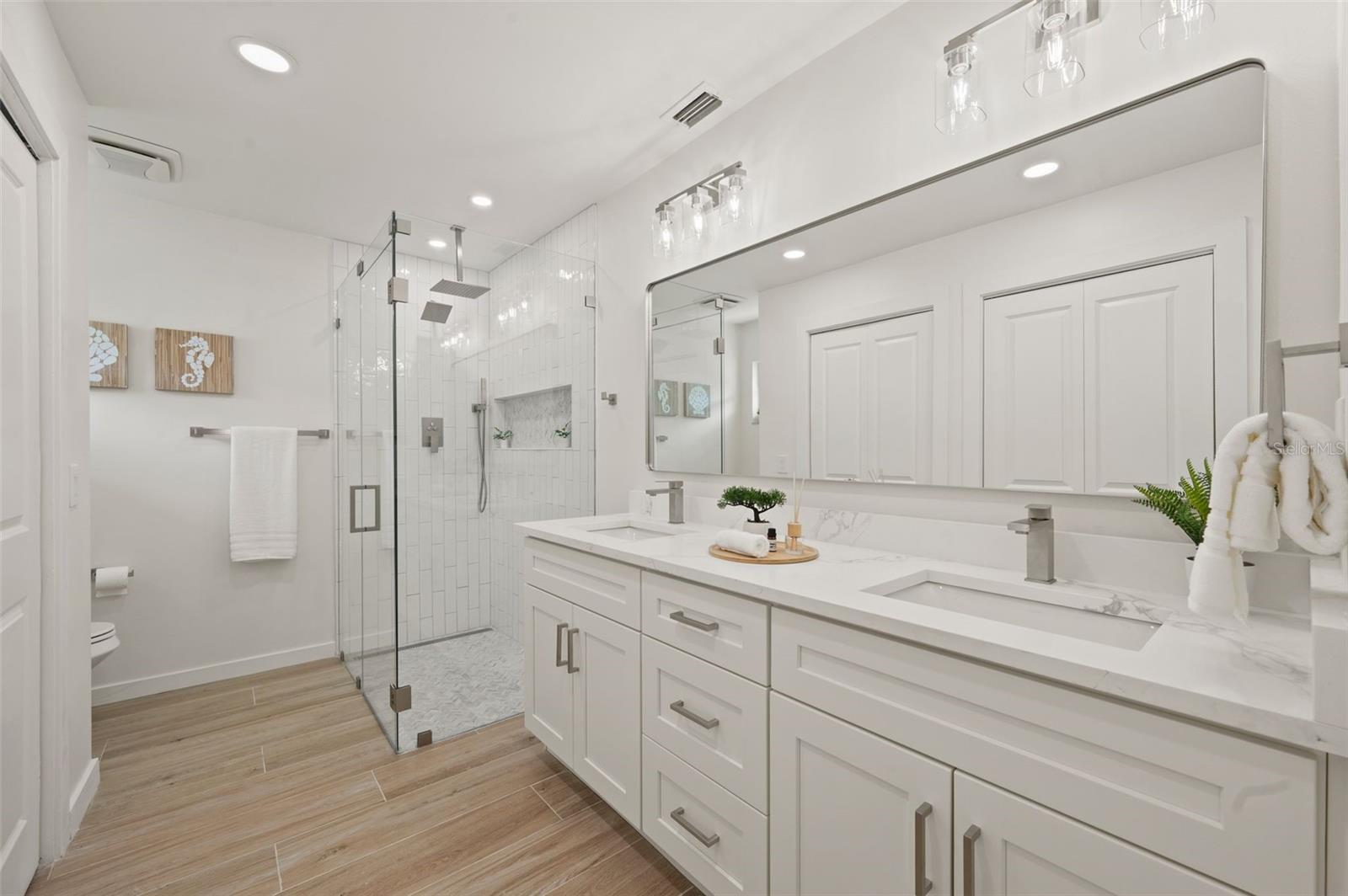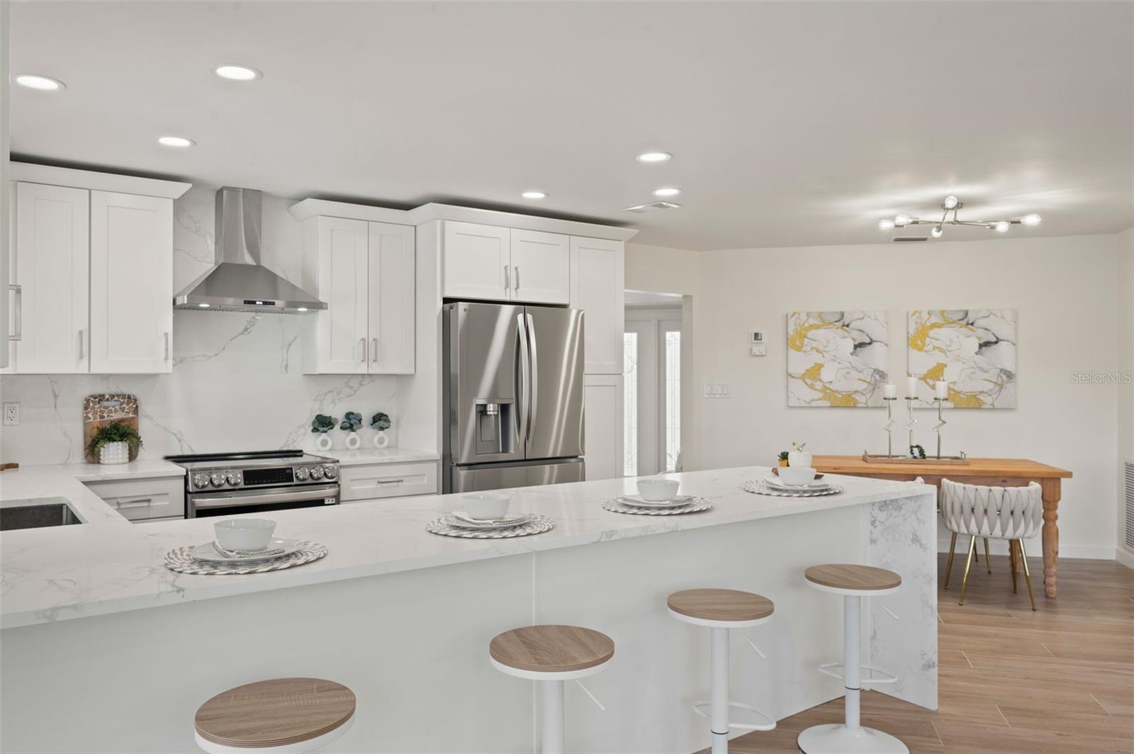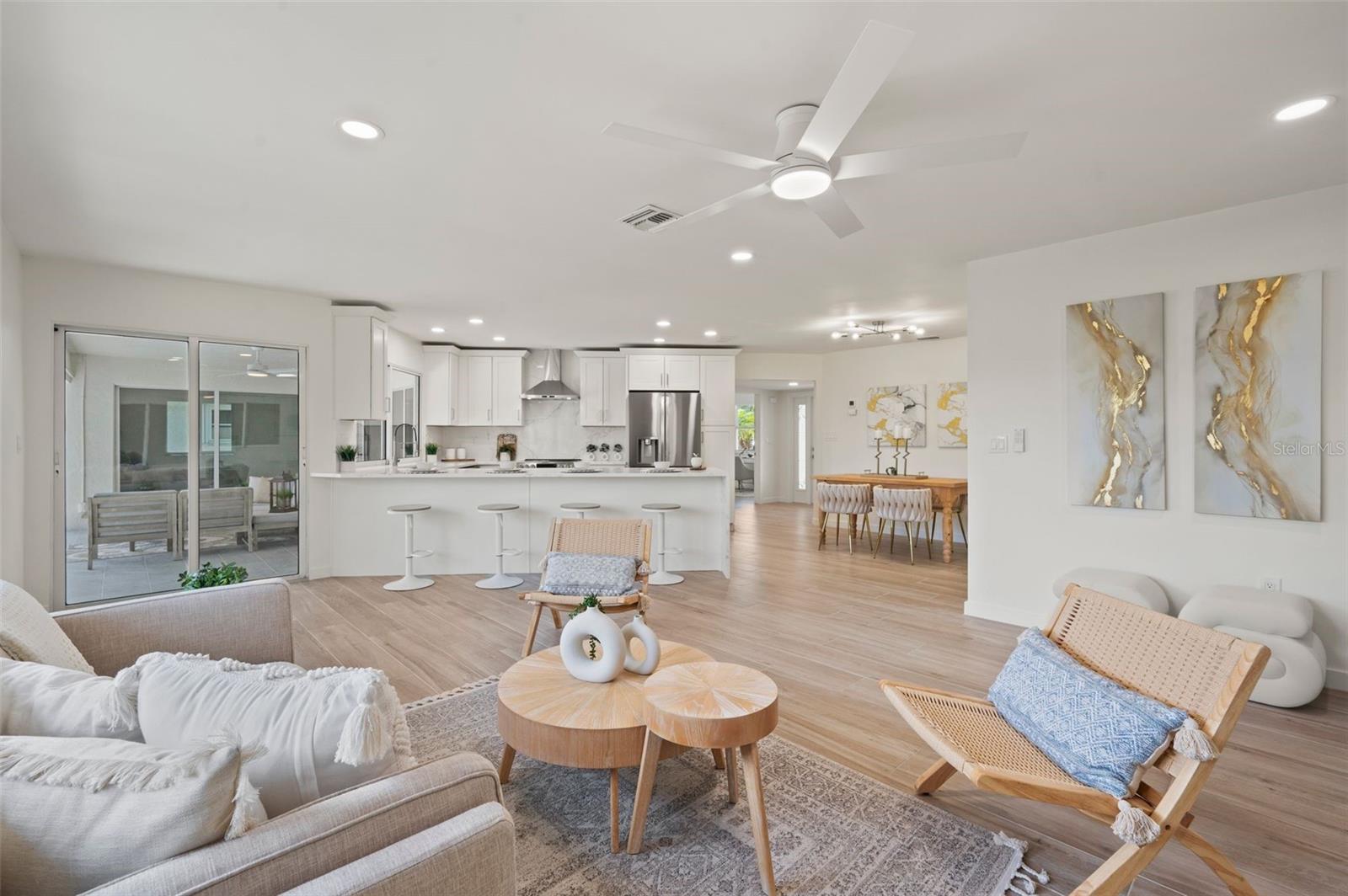 Welcome to this beautifully updated waterfront home in the desirable Punta Gorda Isles, located on a spacious SALT WATER canal. Offering direct access to open waters in under a mile with NO BRIDGES, this property is perfect for all boaters, including those with sailboats. This home sits on high elevation and has NEVER FLOODED. It has been completely modernized with luxury in mind. Updates include NEW porcelain tile flooring throughout, NEW A/C unit, NEW electrical panel, and NEW recessed lighting, creating a bright, modern atmosphere. The chef's kitchen is a showstopper, featuring NEW custom cabinetry, NEW stainless steel appliances—including a wine fridge—and NEW quartz countertops with a striking waterfall edge, perfectly complemented by a matching quartz backsplash. Both bathrooms have been fully reimagined and updated, boasting NEW all-wood shaker vanities, NEW quartz countertops, and NEW elegant tile on the bath and shower walls, accented with luxurious marble herringbone designs in the niches and on the shower floor. Indulge in a NEW soaking tub, NEW rainfall and waterfall fixtures, as well as NEW sinks and toilets throughout the home. Step outside to an entertainer’s dream with a NEW panoramic pool cage surrounding a spacious 16' x 28' HEATED POOL. The recently updated lanai with NEW tile makes it the ideal setting to enjoy Florida’s stunning sunsets and relax in style. This home has been freshly painted inside and out and is surrounded by lush, low-maintenance landscaping, enhancing its curb appeal. Other key features include 54 feet of waterfront with a large cement dock equipped with water and electricity, a concrete seawall maintained by the city, and public water and sewer connections. Enjoy the added benefit of NO HOA fees! This property is nestled in a wonderful neighborhood with friendly neighbors, and it’s just minutes away from downtown Punta Gorda, which offers an array of shopping, dining, waterfront parks, and lively events—all easily accessible by bike. Additionally, some of the best beaches in Florida are only a short drive away. Don’t miss your opportunity to own this completely updated luxury waterfront home in one of Florida’s most sought-after locations. Schedule your showing today! This is more than just a home; it’s a lifestyle waiting for you to enjoy.