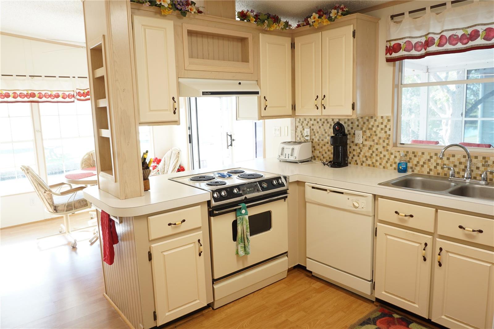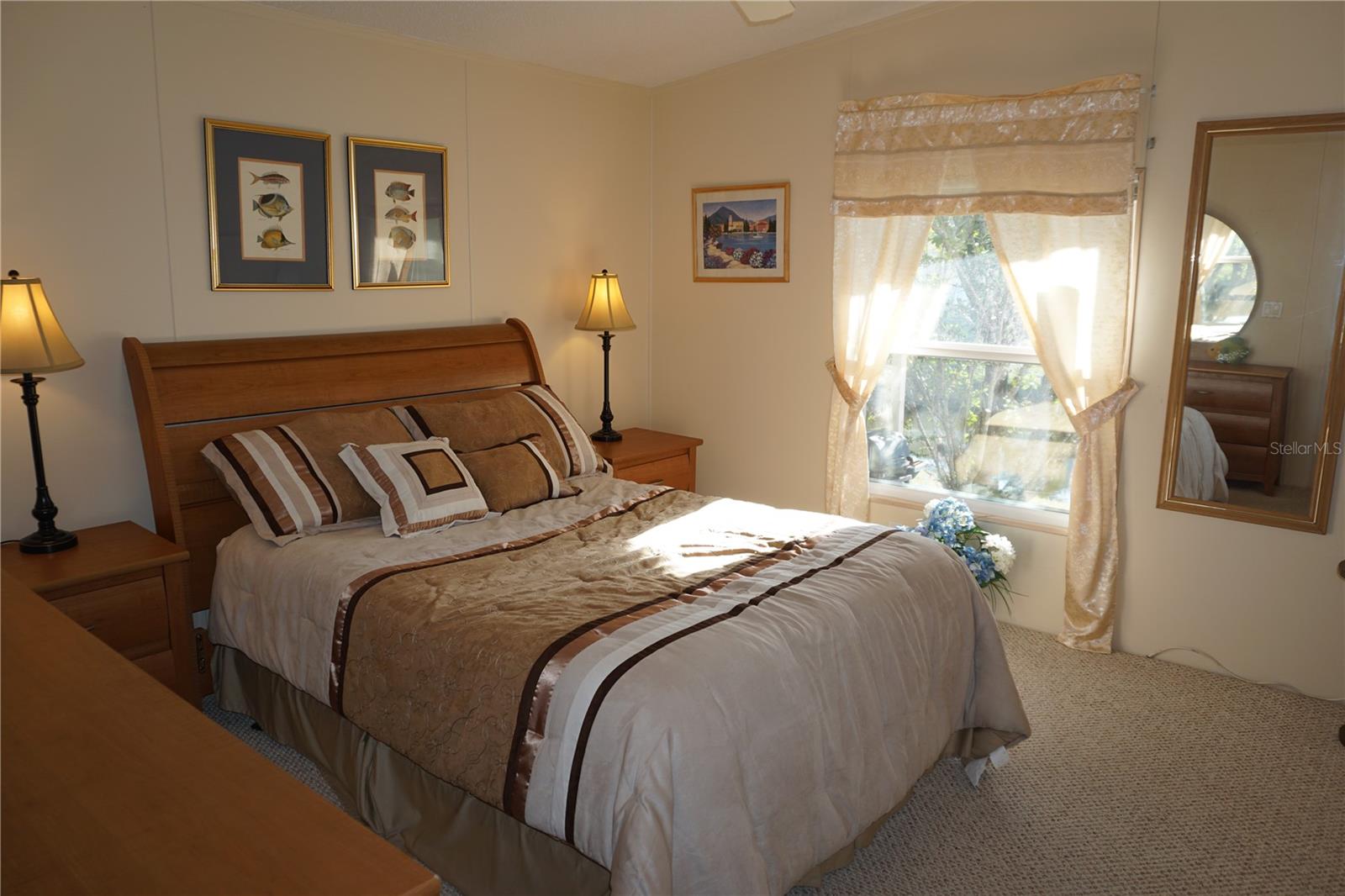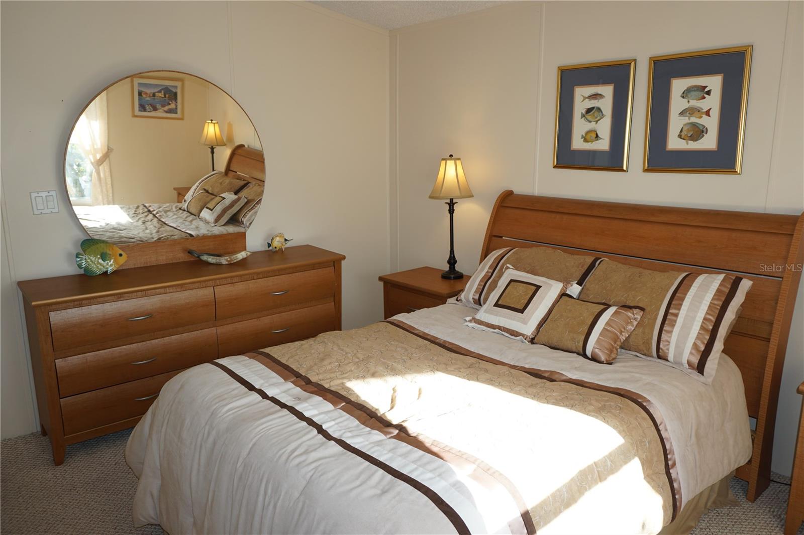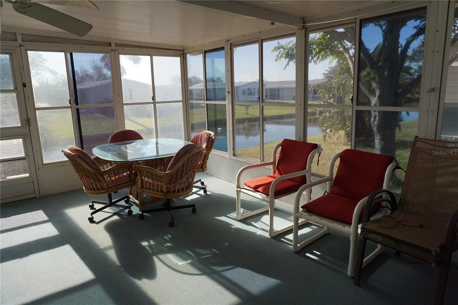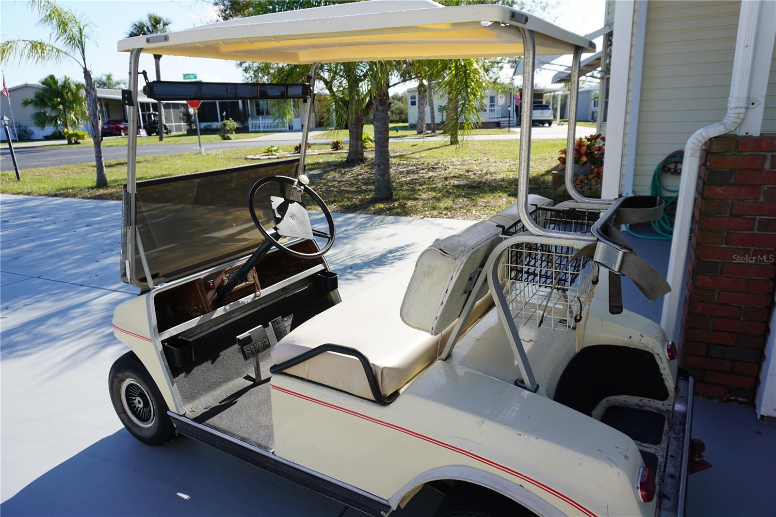 ENJOY SW FLORIDA SUNSETS from your own back yard! Escape the cold and embrace the warmth in this charming turn-key furnished home, perfect for full-time living or a seasonal retreat. This home offers everything you need for a comfortable and enjoyable lifestyle, including the Club Car golf cart, riding lawn mower and push mower. Situated on an oversized corner lot with a Southwest water view and features a great room, split bedroom floor plan, separate dining area, kitchen with an abundance of cabinet storage and a breakfast nook, inside laundry including washer and dryer, hurricane protection with awnings and panels, spacious screened lanai/enclosed Florida room, a brick paver patio that is a perfect spot for BBQs, two spacious storage sheds for your tools and lawn equipment, covered carport, and an extra-wide driveway. Rivers Edge is a quaint 55+ community that welcomes you with majestic grandfather oak trees in the park entrance giving you that feeling of Old Florida. It sits along Hunter Creek and the Peace River in Punta Gorda with access to Charlotte Harbor and the Gulf, where you own your own lot, have underground utilities, is golf cart friendly, and has a boat dock for loading/unloading and fishing in brackish water. A low monthly HOA fee includes the heated pool and a clubhouse with a library to share books with neighbors, fitness equipment to get your daily exercise, and other fun social activities, giving opportunity for making new friends. Do you also enjoy playing golf? Join the private golf course next door to the community for a low annual fee, and drive there by golf cart with easy access through the community's back gate. Short driving distance to Arcadia, Port Charlotte, and downtown Punta Gorda for shopping, farmer's markets, restaurants with delectable cuisine, and year-round activities and festival events, Fishermen's Village, golfing, pickleball courts, Spring Training baseball stadiums, I-75 exits, and Punta Gorda Airport. Start your new lifestyle, where every day feels like a tropical vacation! Don't miss out—schedule your tour TODAY!
