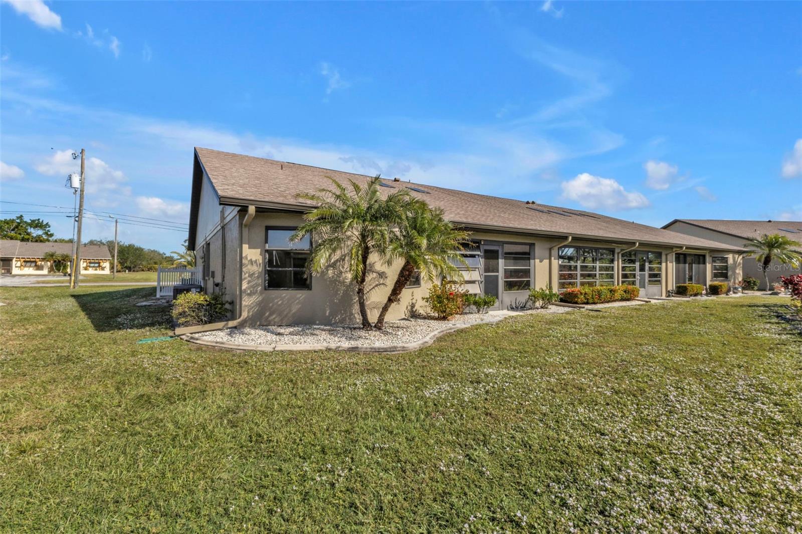 Why settle for a condo when you can have a villa? You can have the privacy of nobody above or below you and a two-car garage! Welcome to Pineview Villas – A 55+ Community in Desirable Deep Creek. Discover this beautiful 3-bedroom, 2-bathroom end-unit Villa nestled in the deed-restricted community of Deep Creek. This home features an attached TWO-car garage, vaulted ceilings, skylights, and an abundance of natural light throughout its spacious living room. The kitchen boasts updated appliances, a breakfast bar, perfect for entertaining. The primary bedroom offers a private ensuite bathroom, while one of the guest rooms also includes its own ensuite for added comfort and privacy. Freshly painted with new carpeting, this home is move-in ready. Relax or entertain in the enclosed Florida Room/lanai, providing extra living space to enjoy Florida’s sunshine year-round. Community Perks: Pineview Villas offers a heated swimming pool, just steps away, ideal for unwinding. The HOA fee covers landscaping/maintenance, heated pool access, water, and trash, ensuring a carefree lifestyle. Prime Location: Enjoy the convenience of Deep Creek Golf Course, located right around the corner! Whether you're escaping the cold winter months or looking for your forever home, this is your chance to own a slice of sunny paradise. Don’t wait—schedule your private showing today!