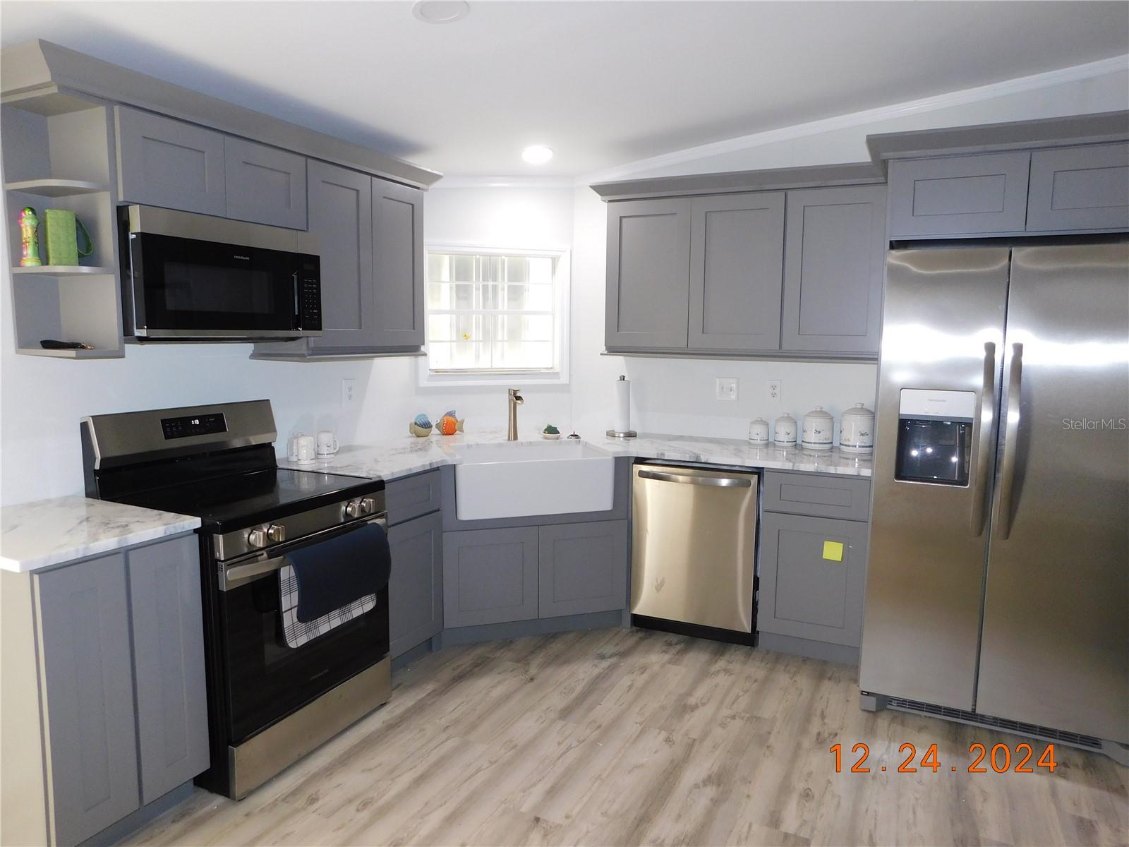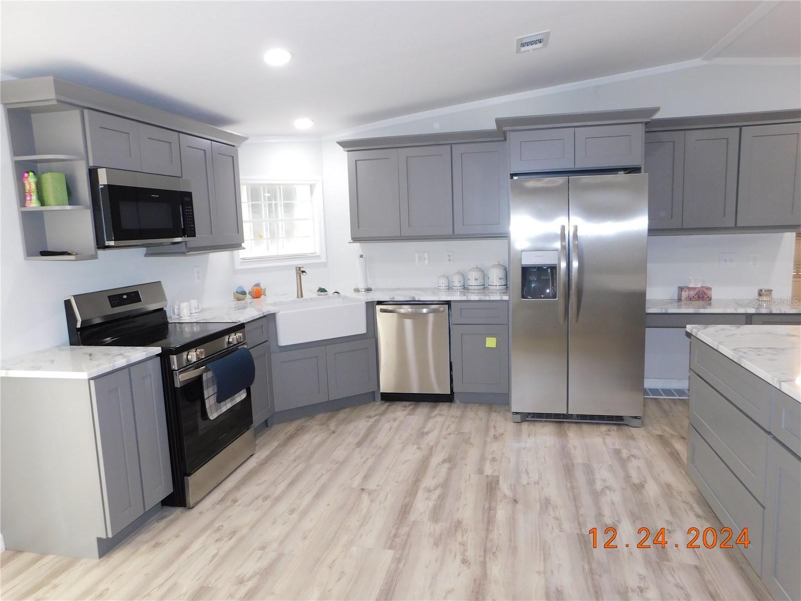 Stunning interior remodel in this open floor plan home with a covered carport, patio deck, and attached storage. Luxury vinyl flooring throughout and a gorgeous new island kitchen that opens to the multifunctional great room, ready & waiting for you to make your memories. Remodeled baths with granite countertops and gleaming, spacious showers. Always something to do in this gated 55+ gated community with open water direct access marina. The purchase price $18,000 Buy-In Park Share & Bond is not included in the purchase price; however, is refunded when you sell. Call today to see this beauty and begin your Fun in the Sun lifestyle!