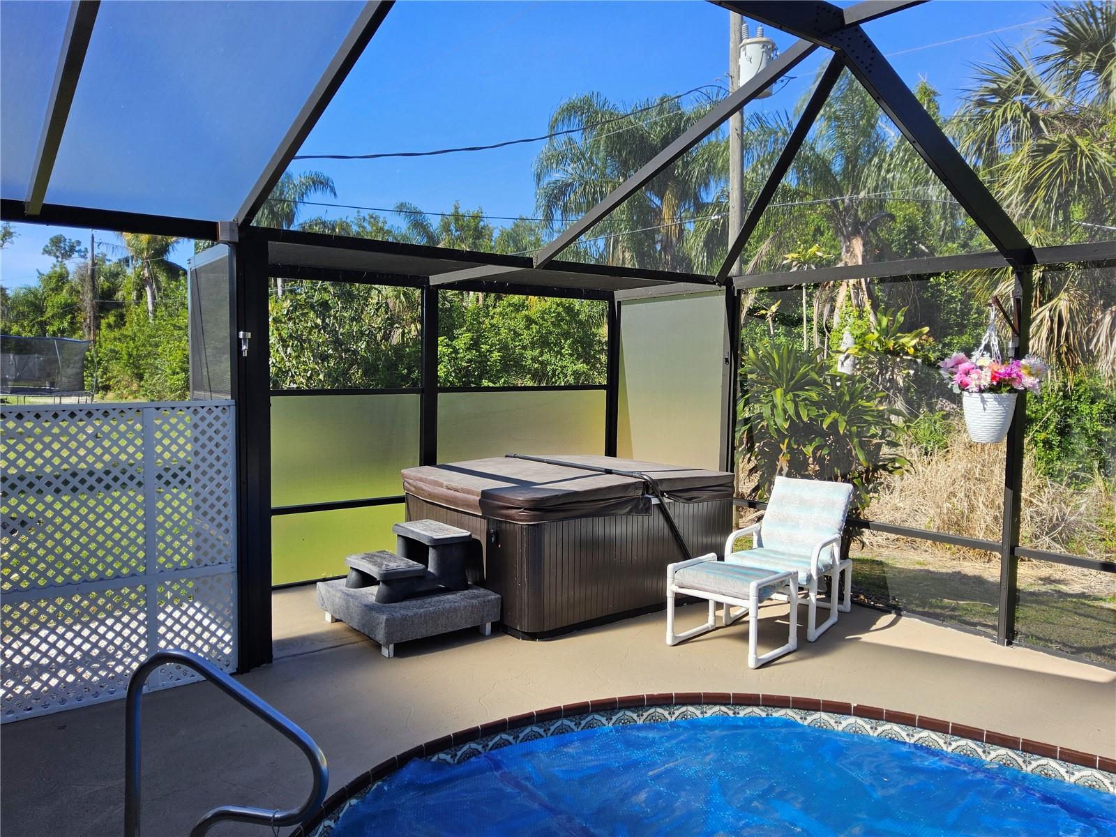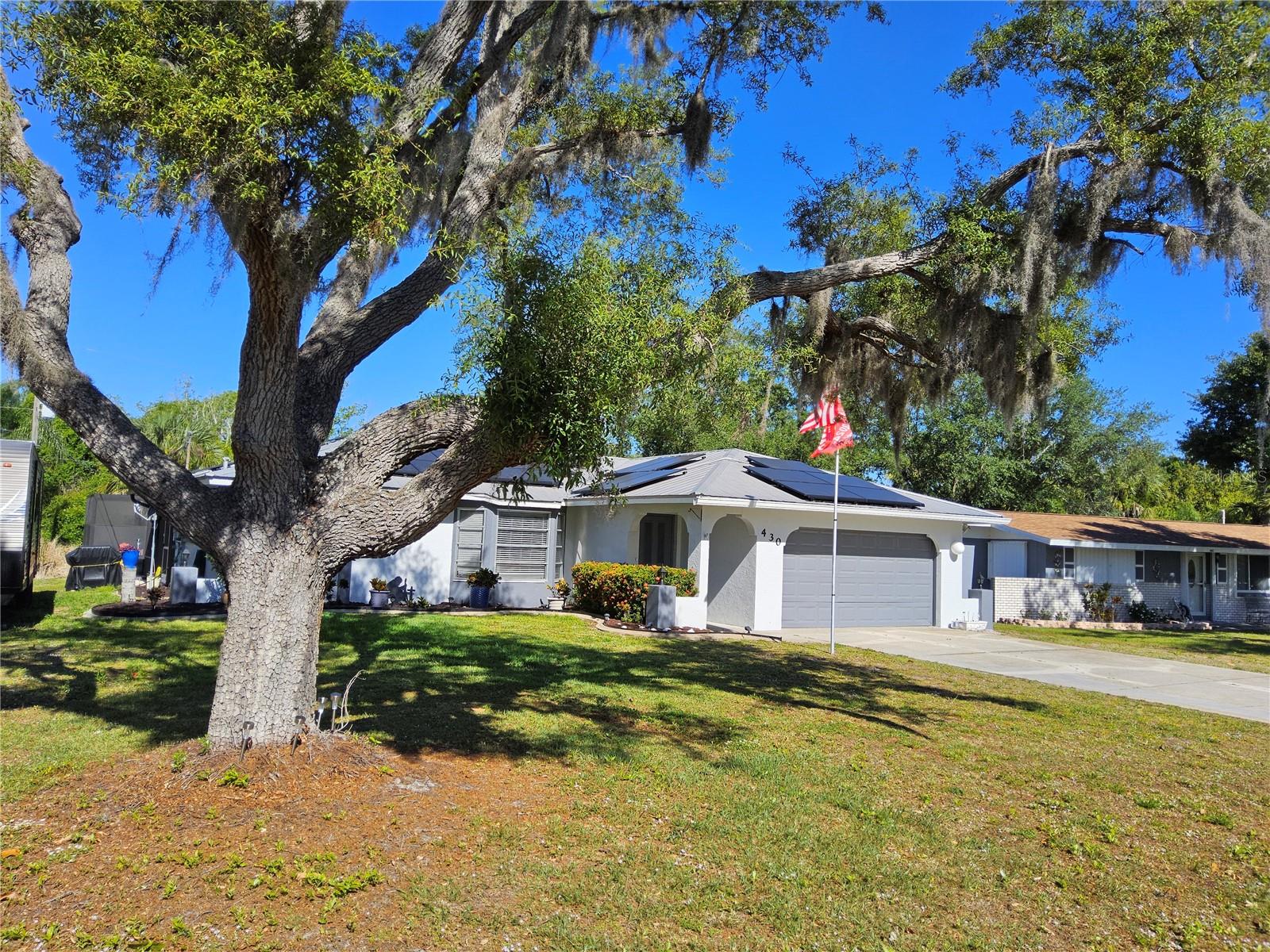 Well cared for FULLY furnished POOL/SPA home located in a quiet Cul de sac close to shopping, restaurants and easy access to I75 and 41. New solar system that will be PAID OFF at closing. The oversized lot has plenty of room for RV or boat parking (30 AMP hook up on side of home), open floorplan, split bedrooms, walk in closets, inside laundry room, metal roof and plenty of outdoor space for entertaining. New in 2024, Pool pump, Hot Water Tank, AC has been well maintained and updated, The pool area was enlarged to accommodate the large heated spa. Mature landscaping and large shed for additional storage. Sliding doors from the dining room access the lanai/pool area and the master suite has an additional slider for access. The kitchen has plenty of cabinets, closet pantry and breakfast bar. The home has been recently painted inside and out, This is a great place to relax and enjoy the Florida sunshine from the pool or that evening fire in the fire pit on those chilly nights. The oversized garage has a side entrance and window which provides plenty of natural light. This is a great home, perfect for a first time home owner or winter residence. Schedule your showing you wont be disappointed.