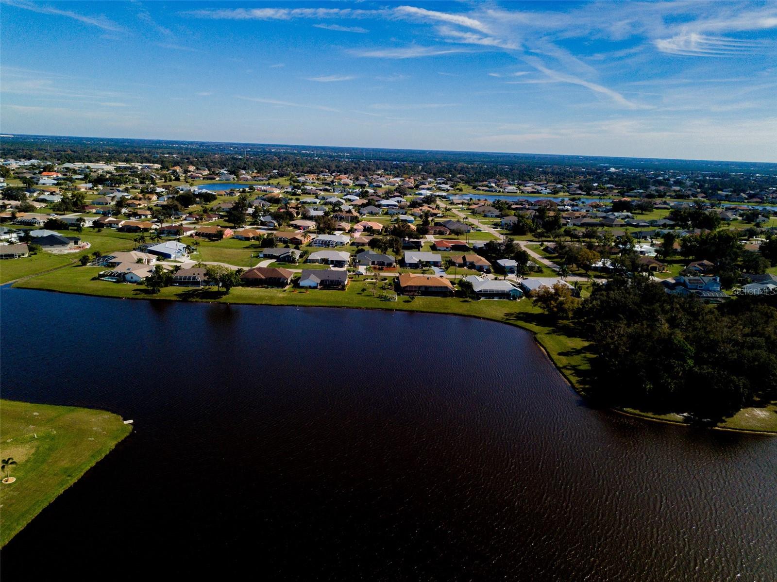 UPDATED, LARGE POOL, DOUBLE LOT, LAKE VIEW AND FULLY FURNISHED pool home with gorgeous lake views! This home is located on a dead end street in a very quiet area. Enjoy the beautiful lake views and the setting sun from your very large lanai. FLOOD ZONE X, flood insurance not required by a lender, Located in Deep Creek Sec 23. This home has it all, 3-bedroom 2 bath, very large pool (32x20, with diving board) with a gorgeous lake view. This DOUBLE lot POOL home has Newer stainless-steel appliances, Updated master bath, Roof just two years old, Custom tile throughout the entire home, newly painted outside. Granite countertop, completely furnished and so much more. The second lot has fruit trees, Banana and raised planting beds for your outside gardening enthusiast. The 35x12 lanai features 3 pass through windows, tile and 3 sliding glass doors, there is a separate 12 x 12 Lanai just for the Master bedroom with access from the sliding doors from the master, This area is separated by French doors that can be closed for additional privacy. The pool has a diving board and plenty of deck area for any size party or just entertaining family and friends. The garage has tile flooring, lots of built-in’s for storage and has a kitchen and additional cabinets for additional storage, Landscaping is exceptional from the brick paver driveway all the way to the rear of the home. Hurricane accordion shutters on all windows and easy closure on the lanai. This provides maximum protection for your home! The home is located close to Golf, shopping, dining with easy access to I75 and all SW Florida has to provide is just minutes away. Schedule your showing and when you see this home, you will know you found it!