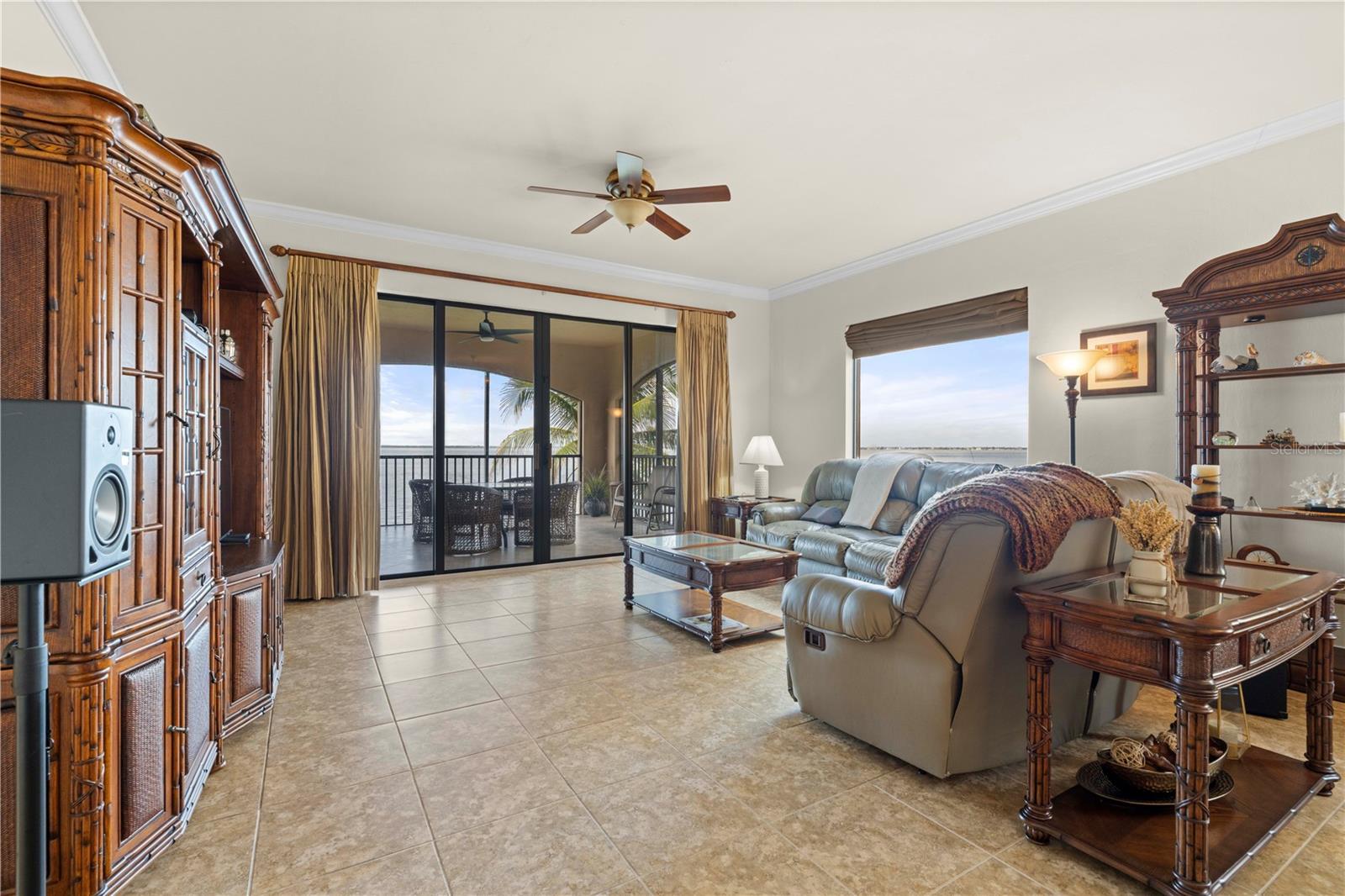 IT'S ALL ABOUT THE VIEW HERE! Enjoy a full harbor view from this *FURNISHED* END UNIT, 3 bed/3 bath, waterfront condo at Vivante in Punta Gorda Isles w/PRIVATE ELEVATOR ENTRANCE. The welcoming foyer greets you as you enter the condo. Enjoy over 2,300 sqft of living space including an open floor plan, large gourmet kitchen & split bedroom design. Architectural details include soaring cathedral ceilings, screened balcony w/EXCEPTIONAL HARBOR VIEWS & a gourmet kitchen. The main living area & one guest room have tile flooring while the master suite & one guest bedroom features luxury vinyl plank flooring. The combination living room/dining room is leads out to the screened lanai/balcony. This end-unit floor plan has tons of natural light thanks to windows in the living room, dining room & breakfast area. The large picture windows & sliding glass doors allow you to enjoy this breathtaking view from almost anywhere in the main living area, breakfast area or master suite. The kitchen boasts granite counters, wood cabinetry, a center island, closet pantry & breakfast bar plus a breakfast area bump out w/three sides of windows. Master suite has walk-out access to the balcony, an unsurpassed view of Charlotte Harbor, two walk-in closets & a spacious, master bath. The master bath has split sinks, a garden tub, separate walk-in shower & private WC. The split bedroom floor plan has two large guest rooms each w/a walk-in closet - one guest room features an en-suite bath that is perfect for hosting guests. The laundry room has a full-sized washer & dryer plus additional storage cabinet & utility sink. The Mediterranean-inspired, gated community of Vivante offers a unique, resort-style atmosphere w/gated entry, manicured tropical landscaping, 12,000 sqft clubhouse w/fitness center, sauna & billiards + two in-ground, heated pools, heated spa & six tennis courts w/an active tennis community. Unit comes w/two assigned, under building parking spaces (#17 & #18) & one storage unit (#17). The Punta Gorda area also features a vibrant art & music scene. Claim your spot in paradise & take advantage of a MOVE-IN READY, FURNISHED harbor front condo. Start enjoying everything the area has to offer including boating, fishing, biking, tennis & golf. Make an appointment today!