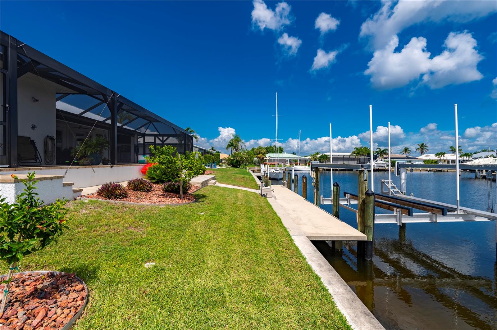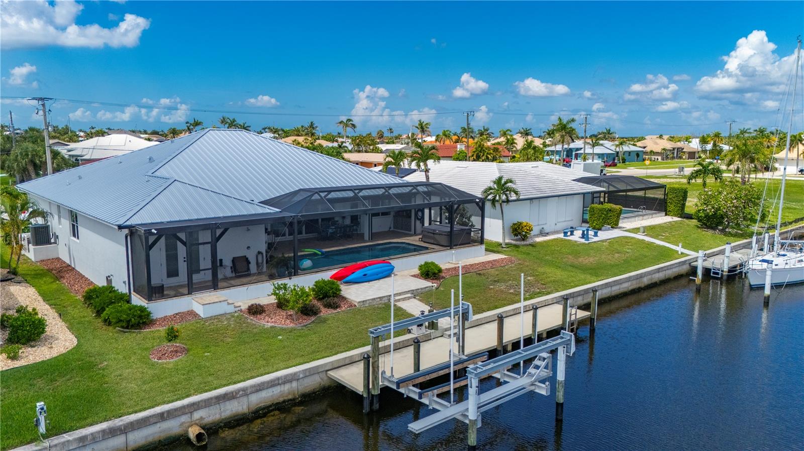 WATERFRONT! 16,000 LB Lift! Deep Water! Bring your Sailboat or Power Boat! Homeowners Insurance is currently $3,500.00. Stunning 4BR, 3BA custom-built waterfront retreat in the vibrant heart of Punta Gorda Isles. Nestled along a peaceful deep-water canal, this four-bed, three-bath sanctuary offers 2,655 sq ft of thoughtfully designed living space. Built in 2021 by renowned local builder Tim Towles, it marries top-tier construction with contemporary Floridian flair. You can relax in the tranquil canal setting without the hustle and bustle of main channels. The home’s thoughtful and durable design include, top-tier hurricane protection—impact-rated windows/doors and Kevlar-screened lanai for peace of mind in storm season. Also, standing-seam metal roof with foam insulation—durable, energy-efficient, no exposed fasteners. The oversized 3 car garage for all your toys and vehicles. Proximity to Fishermen’s Village—enjoy waterfront dining, live music, shopping, and Access to Punta Gorda Harborwalk & Gilchrist Park—2.4 miles of paths along the Peace River, passing Laishley Park and Restaurant. Close to beaches, fishing piers, parks, pickleball courts, and a short drive to Punta Gorda Aiport. Imagine waking up to water views, dock your boat seconds from your door, enjoy breakfast as manatees swim by, then spend afternoons exploring the Harborwalk, and experiencing the most beautiful sunsets from your house