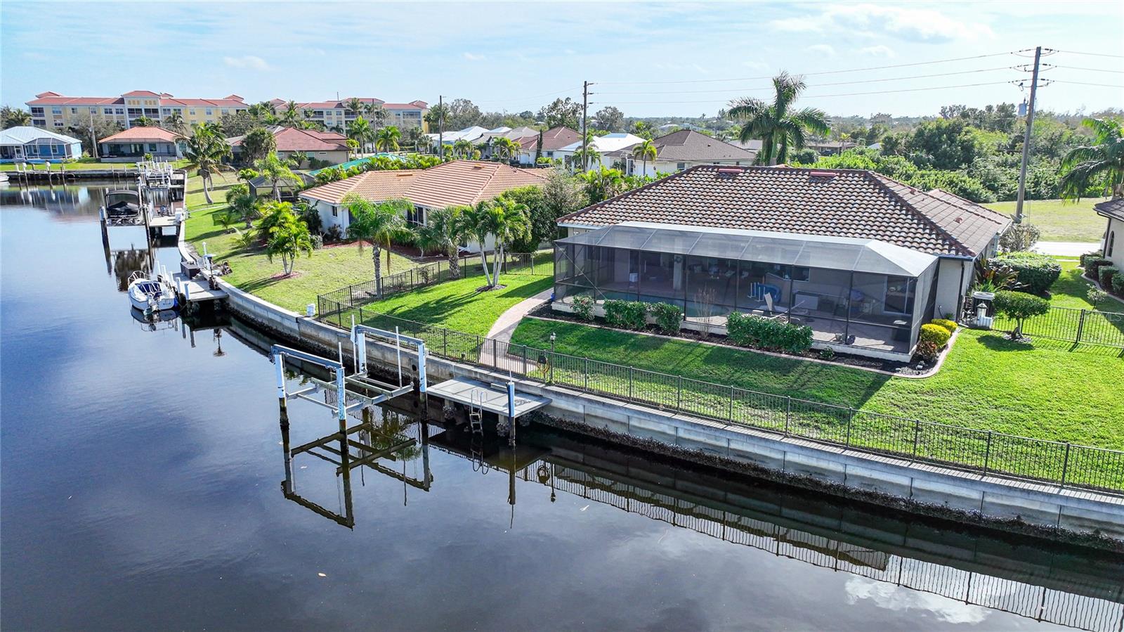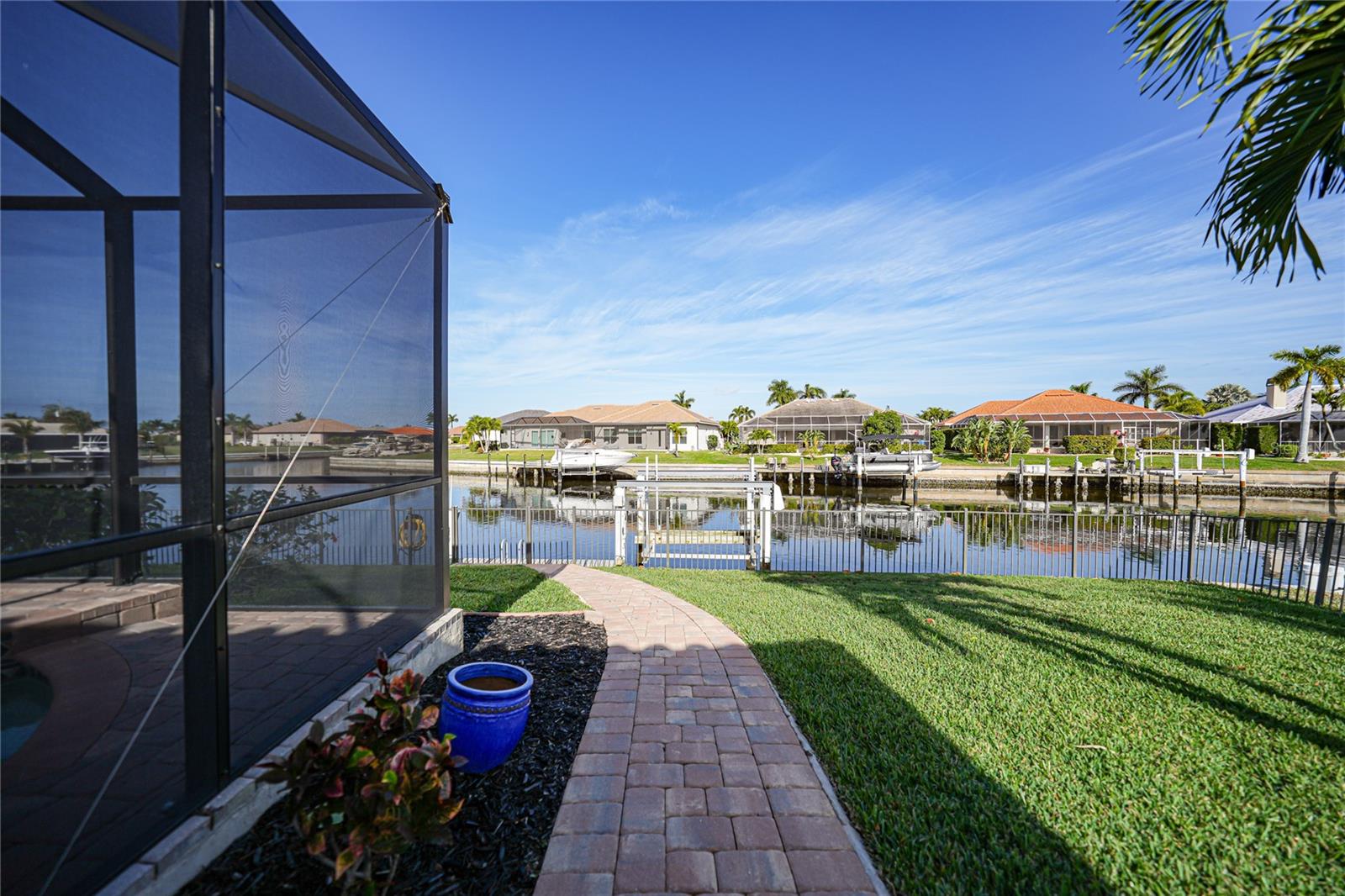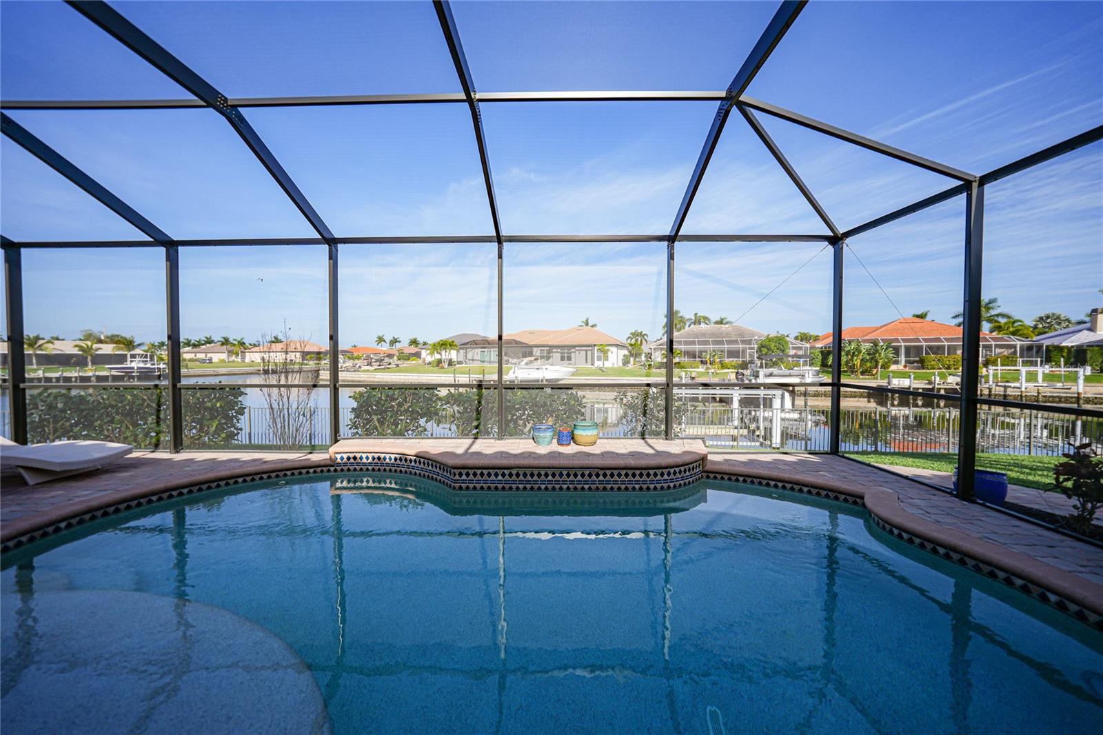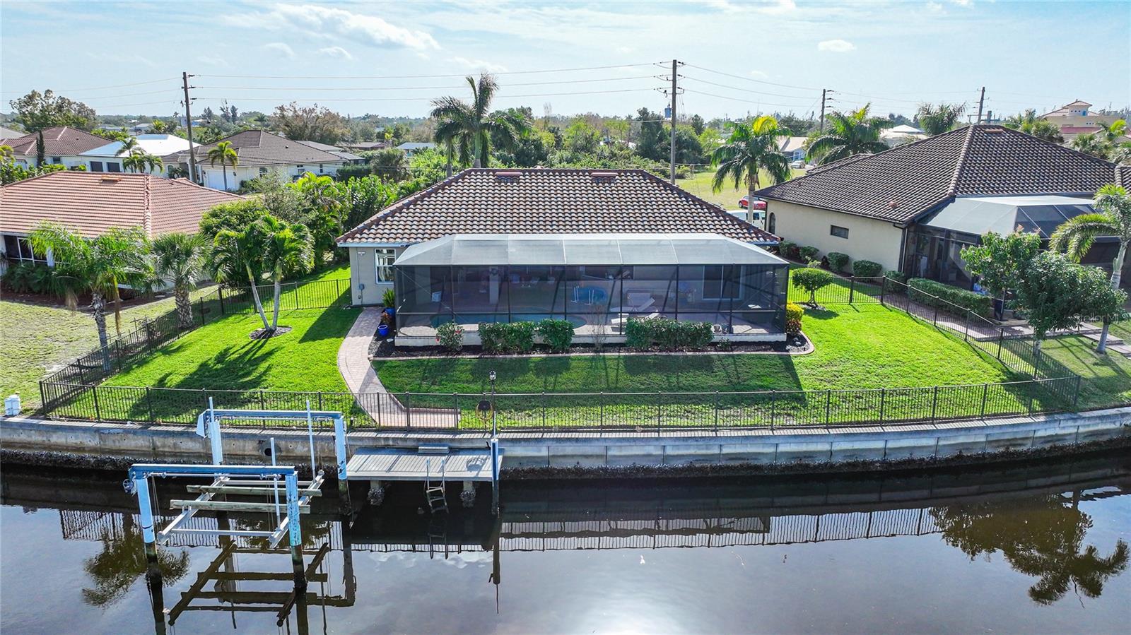 No damage from Helene or Milton. Custom Built 2012 waterfront pool home in PGI with quick boating access to the Harbor. This meticulously maintained home is bright and airy with an open floor plan with a beautiful trey ceiling in the living room. The spacious gourmet kitchen has wood cabinets, granite countertops, tile backsplash, and stainless appliances. This home has a formal dining area that is now being used as an office /sitting area. The breakfast bar and nook area is used for extra dining. The split floor plan allows for privacy for your friends and family in the guest bedrooms. Your guests will enjoy the ample space of the two guest bedrooms with a shared guest bath. One of the guest bedrooms has private access to the lanai/pool area. The primary bedroom has plenty of room with views of the pool and canal. Also has access to the lanai/pool area with a large walk in closet and an ensuite bathroom with split vanities, granite countertops, wood cabinets with a jacuzzi tub for relaxing and a large walk-in tiled shower. The laundry room has a full size Washer and Dryer that was purchased in 2019 with plenty of cabinets for extra storage space. Just a few of the highlights of this home include tile throughout, updated and custom lighting, hurricane protection & some impact windows, water filtration system, modern ceiling fans, new pool cage installed in 2023, Saltwater Generator for pool 2023, Bahama Shutters on the windows, Dishwasher 2023, AC 2018, large generator stays with the sale of the house, a beautiful yard that includes a fenced in area for your fur babies to play, a 10k pound boat lift for your boat with water and electric hookup at the dock. Extra insulation which helps reduce the noise from the outdoors and helps keep your home energy efficient. As you step out to your spacious lanai using the pocket doors, you will bring the inside living area outdoors. You will find a paved lanai area where you can sit in the shade under the fan to keep you cool during warm summer days or jump into the salt water pool. The pool is heated and can be used all year long! All pool supplies are included. Sit out and watch the wildlife that may include dolphins and manatees on occasion with many opportunities to see fish jump! This home has wonderful curb appeal as it offers a paver driveway and walkway along with a well maintained tropical landscape. The two car attached garage completes this exceptional home. This is a great location as you have quick boating access to Charlotte Harbor and is also conveniently located close to Publix, Fishermans Village, PGI Civic Association, Farmers Market, Dog Park, Punta Gorda Library and downtown Punta Gorda.Plus easy access to Punta Gorda Airport. This home is move in ready so make an appointment today!