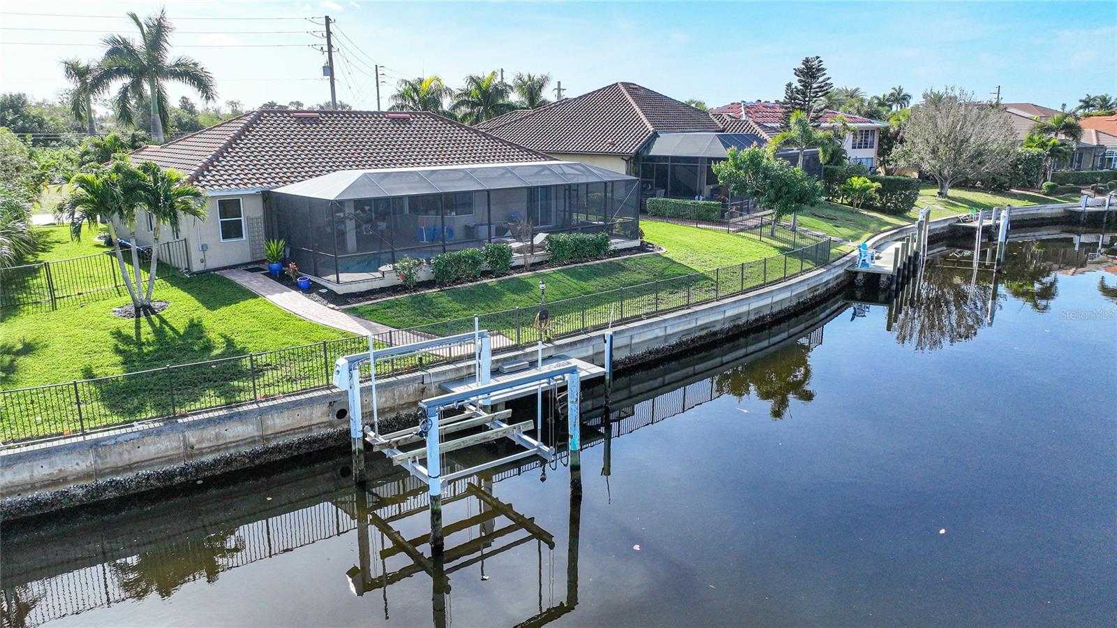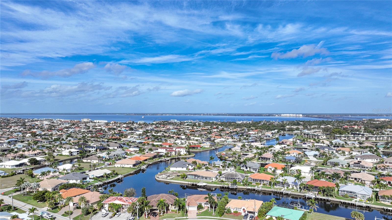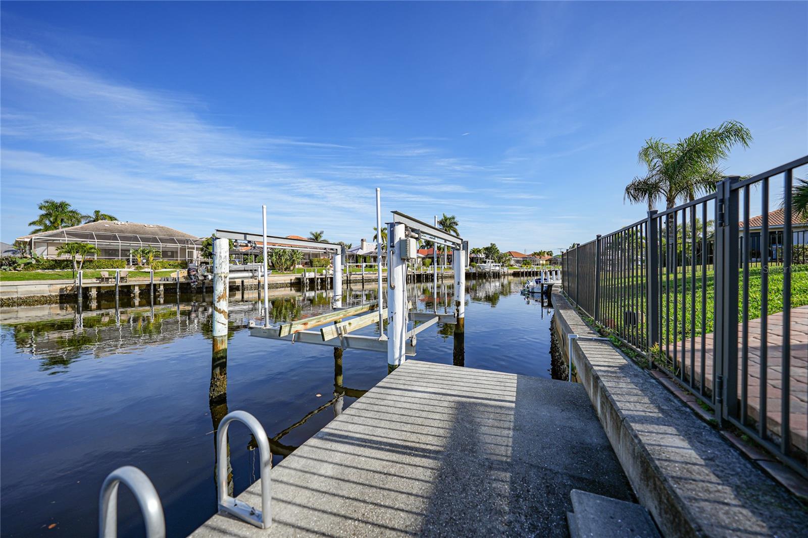 No damage from Helene or Milton. Custom Built 2012 waterfront pool home in PGI with quick boating access to the Harbor. This meticulously maintained home is bright and airy with an open floor plan with a beautiful trey ceiling in the living room. The spacious gourmet kitchen has wood cabinets, granite countertops, tile backsplash, and stainless appliances. This home has a formal dining area that is now being used as an office /sitting area. The breakfast bar and nook area is used for extra dining. The split floor plan allows for privacy for your friends and family in the guest bedrooms. Your guests will enjoy the ample space of the two guest bedrooms with a shared guest bath. One of the guest bedrooms has private access to the lanai/pool area. The primary bedroom has plenty of room with views of the pool and canal. Also has access to the lanai/pool area with a large walk in closet and an ensuite bathroom with split vanities, granite countertops, wood cabinets with a jacuzzi tub for relaxing and a large walk-in tiled shower. The laundry room has a full size Washer and Dryer that was purchased in 2019 with plenty of cabinets for extra storage space. Just a few of the highlights of this home include tile throughout, updated and custom lighting, hurricane protection & some impact windows, water filtration system, modern ceiling fans, new pool cage installed in 2023, Saltwater Generator for pool 2023, Bahama Shutters on the windows, Dishwasher 2023, AC 2018, large generator stays with the sale of the house, a beautiful yard that includes a fenced in area for your fur babies to play, a 10k pound boat lift for your boat with water and electric hookup at the dock. Extra insulation which helps reduce the noise from the outdoors and helps keep your home energy efficient. As you step out to your spacious lanai using the pocket doors, you will bring the inside living area outdoors. You will find a paved lanai area where you can sit in the shade under the fan to keep you cool during warm summer days or jump into the salt water pool. The pool is heated and can be used all year long! All pool supplies are included. Sit out and watch the wildlife that may include dolphins and manatees on occasion with many opportunities to see fish jump! This home has wonderful curb appeal as it offers a paver driveway and walkway along with a well maintained tropical landscape. The two car attached garage completes this exceptional home. This is a great location as you have quick boating access to Charlotte Harbor and is also conveniently located close to Publix, Fishermans Village, PGI Civic Association, Farmers Market, Dog Park, Punta Gorda Library and downtown Punta Gorda.Plus easy access to Punta Gorda Airport. This home is move in ready so make an appointment today!