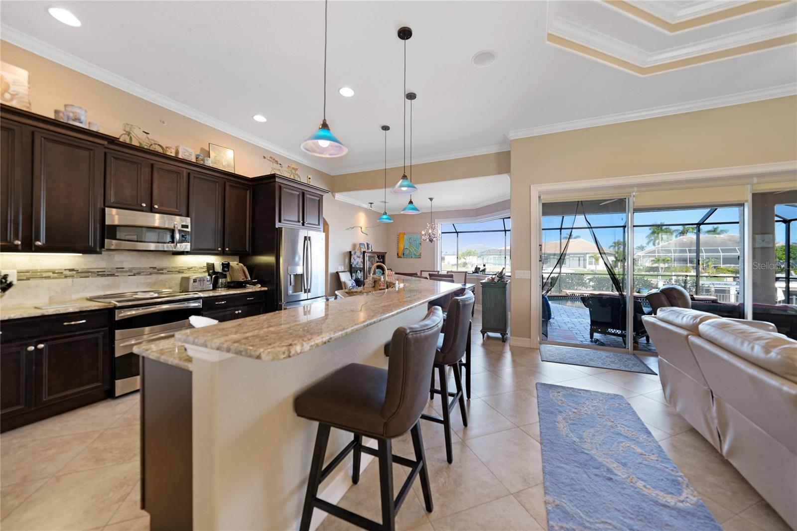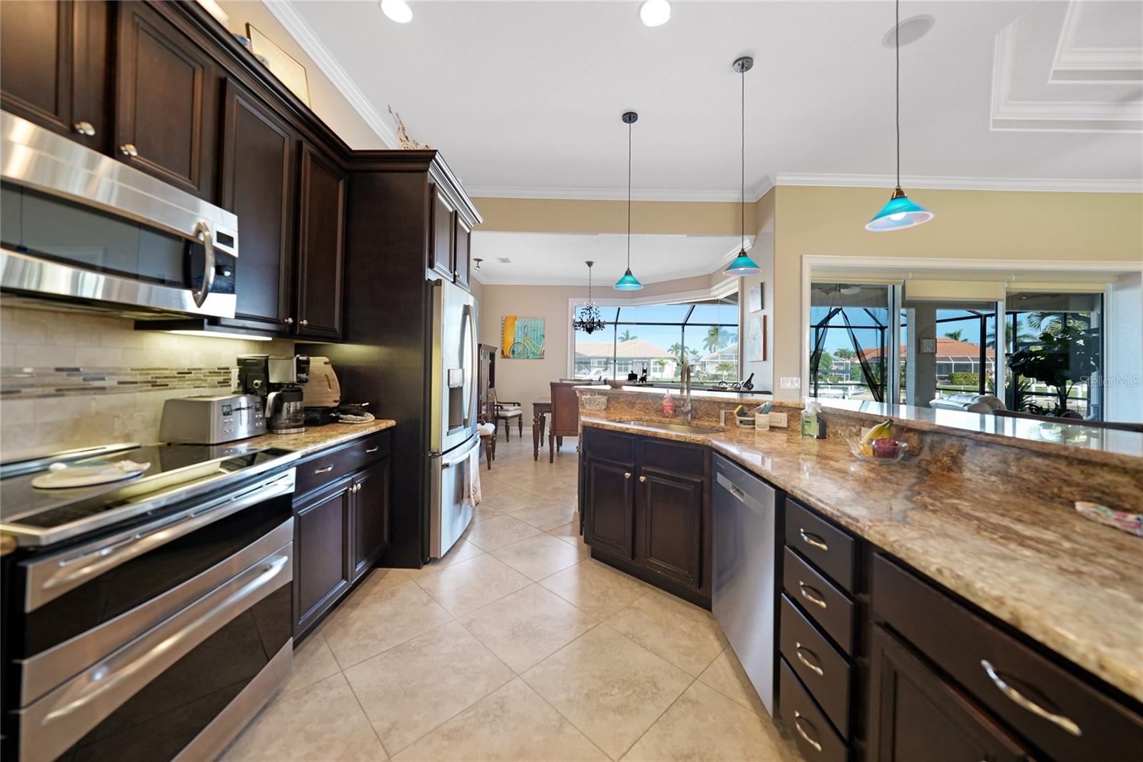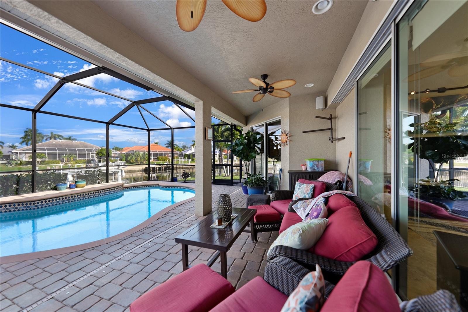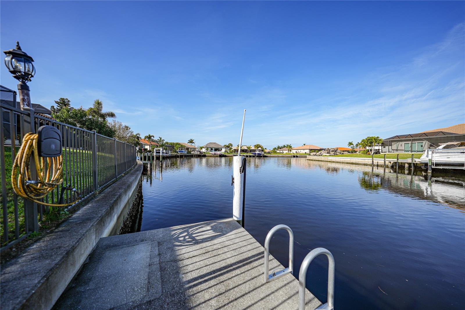 No damage from Helene or Milton. Custom Built 2012 waterfront pool home in PGI with quick boating access to the Harbor. This meticulously maintained home is bright and airy with an open floor plan with a beautiful trey ceiling in the living room. The spacious gourmet kitchen has wood cabinets, granite countertops, tile backsplash, and stainless appliances. This home has a formal dining area that is now being used as an office /sitting area. The breakfast bar and nook area is used for extra dining. The split floor plan allows for privacy for your friends and family in the guest bedrooms. Your guests will enjoy the ample space of the two guest bedrooms with a shared guest bath. One of the guest bedrooms has private access to the lanai/pool area. The primary bedroom has plenty of room with views of the pool and canal. Also has access to the lanai/pool area with a large walk in closet and an ensuite bathroom with split vanities, granite countertops, wood cabinets with a jacuzzi tub for relaxing and a large walk-in tiled shower. The laundry room has a full size Washer and Dryer that was purchased in 2019 with plenty of cabinets for extra storage space. Just a few of the highlights of this home include tile throughout, updated and custom lighting, hurricane protection & some impact windows, water filtration system, modern ceiling fans, new pool cage installed in 2023, Saltwater Generator for pool 2023, Bahama Shutters on the windows, Dishwasher 2023, AC 2018, large generator stays with the sale of the house, a beautiful yard that includes a fenced in area for your fur babies to play, a 10k pound boat lift for your boat with water and electric hookup at the dock. Extra insulation which helps reduce the noise from the outdoors and helps keep your home energy efficient. As you step out to your spacious lanai using the pocket doors, you will bring the inside living area outdoors. You will find a paved lanai area where you can sit in the shade under the fan to keep you cool during warm summer days or jump into the salt water pool. The pool is heated and can be used all year long! All pool supplies are included. Sit out and watch the wildlife that may include dolphins and manatees on occasion with many opportunities to see fish jump! This home has wonderful curb appeal as it offers a paver driveway and walkway along with a well maintained tropical landscape. The two car attached garage completes this exceptional home. This is a great location as you have quick boating access to Charlotte Harbor and is also conveniently located close to Publix, Fishermans Village, PGI Civic Association, Farmers Market, Dog Park, Punta Gorda Library and downtown Punta Gorda.Plus easy access to Punta Gorda Airport. This home is move in ready so make an appointment today!