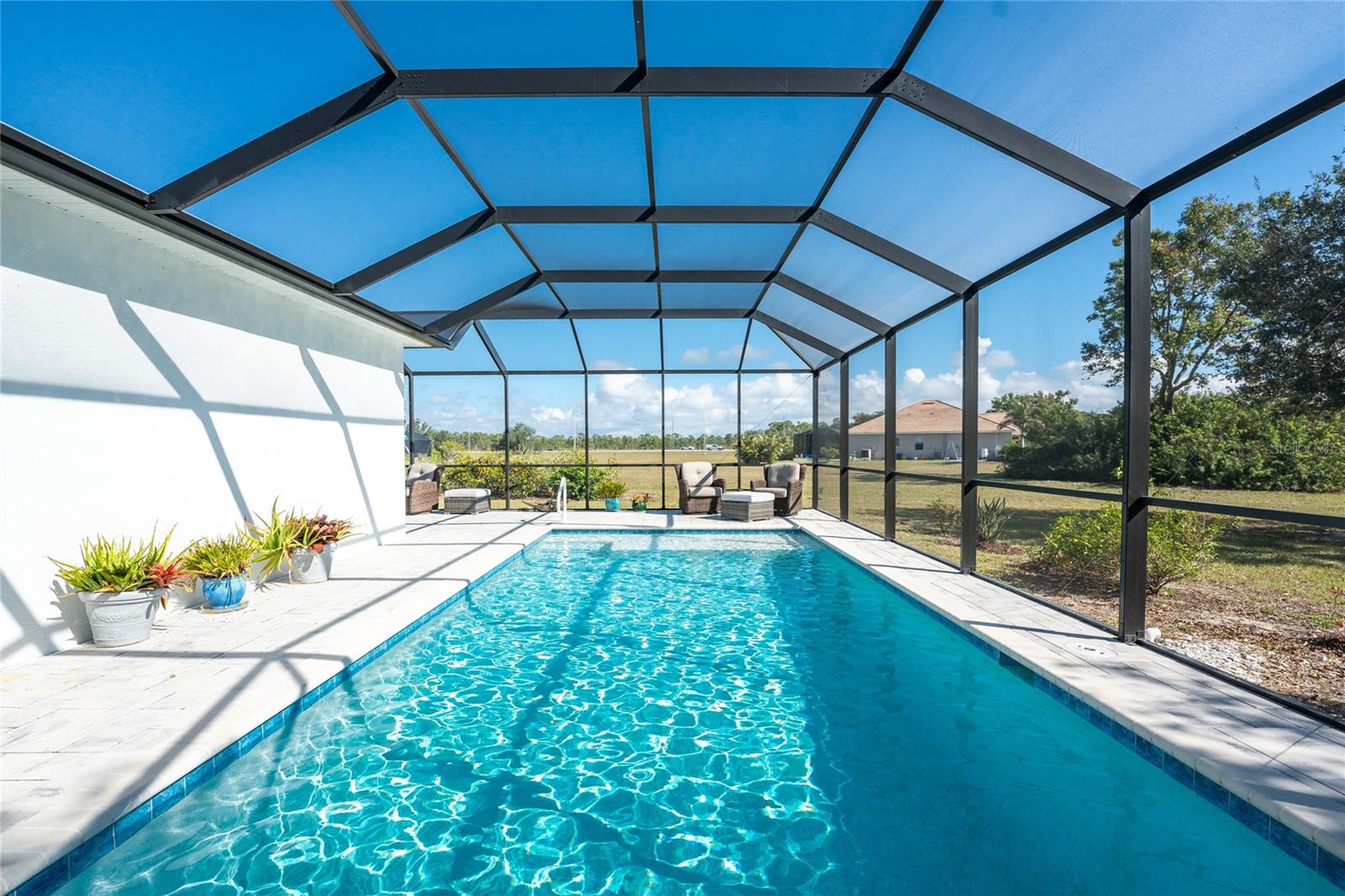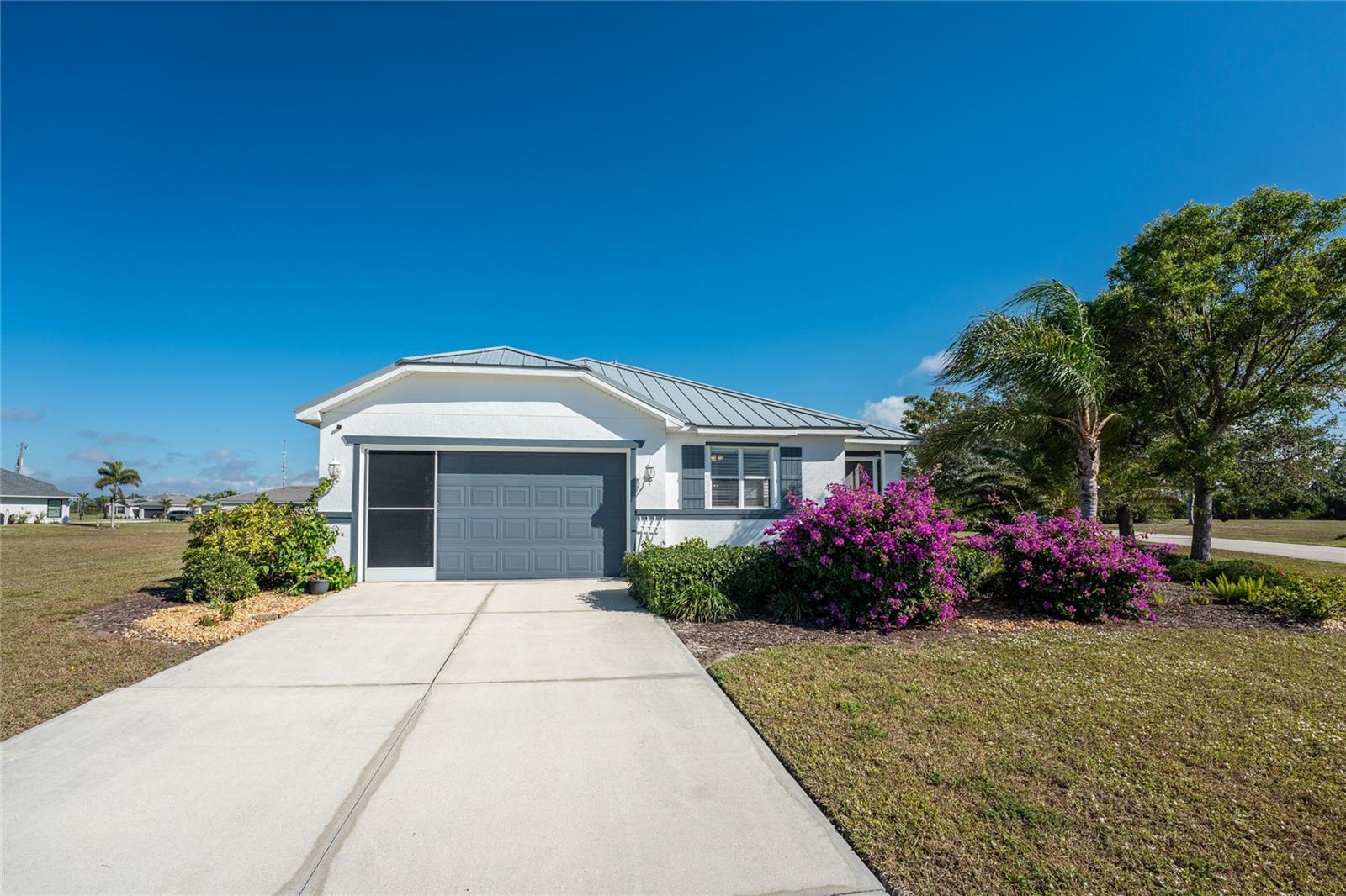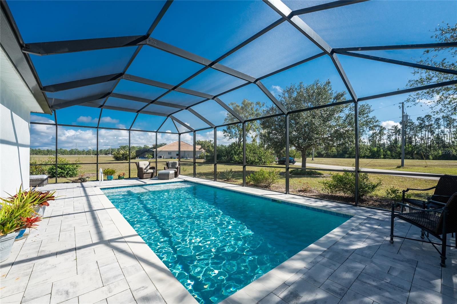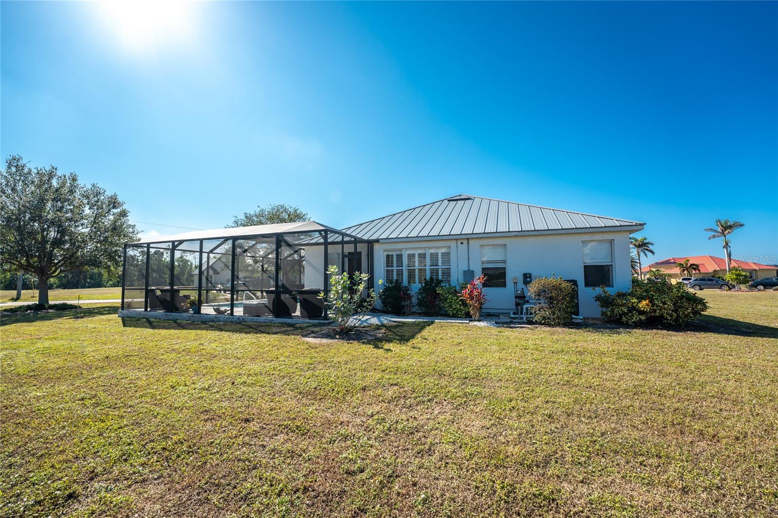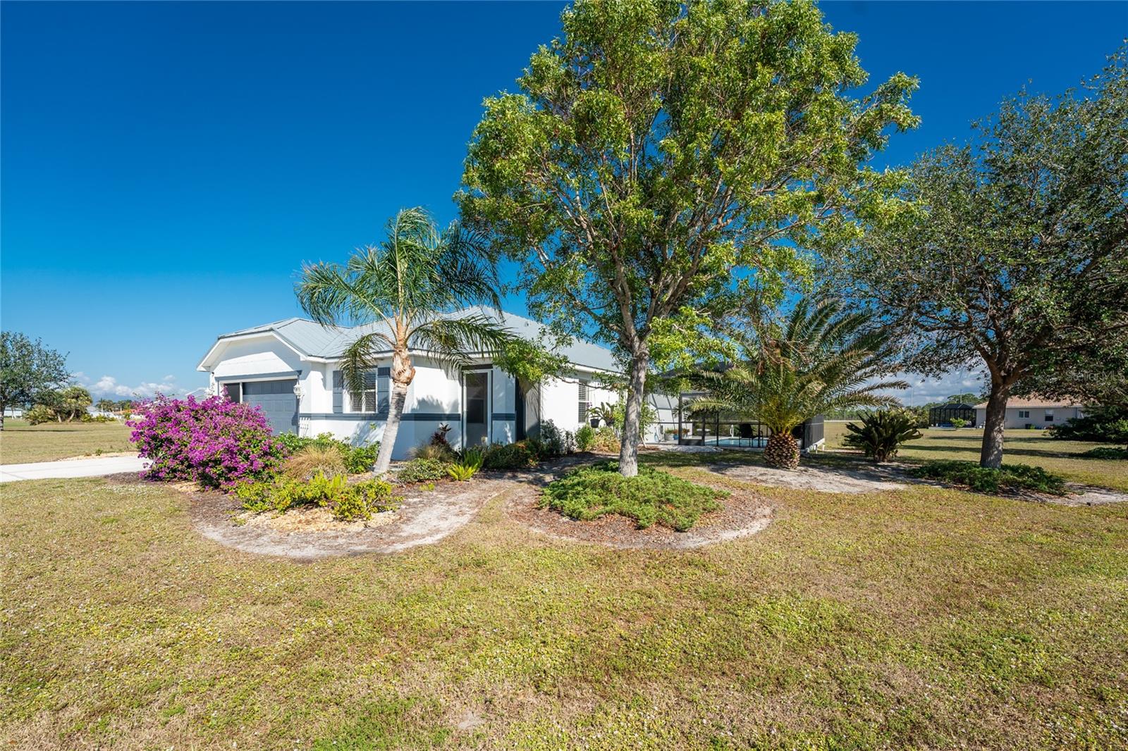 Welcome to this beautiful 3-bedroom plus a Den, 2-bathroom, Pool home nestled in the desirable community of Burnt Store Lakes. Located in an X-Flood Zone on a cul-de-sac with no drive through traffic, this home offers a perfect blend of privacy and comfort. Enjoy watching both sunrises and sunsets from this unique East/West facing pool. Walk into this lovingly maintained home, you're greeted with an open and airy floor plan with comfortable living space. The spacious Great Room beautifully combines a Living and Dining area which features large windows that invite in tons of natural light, creating a warm and welcoming atmosphere. The well-appointed Kitchen is a chef's dream, featuring stainless steel appliances, granite countertops, cherry wood cabinets, tile backsplash, breakfast bar and a pantry. The adjoining Family Room and the additional Dinette area creates a perfect place for casual dining or entertaining guests. The Primary Bedroom Suite is your private oasis, featuring Luxury Vinyl Tile flooring, a walk-in closet, and an En-Suite Bathroom with frameless walk-in shower, large vanity with make-up space and a linen closet. Two generously sized Guest Bedrooms, located in their own wing for privacy, share a well-appointed Guest Bath with a shower/tub combination. Perfect as a Home Office or a Den, the Bonus Room could even be used as a 4th Bedroom. You’ll also find crown molding, tray ceiling, recessed lighting and plantation shutters throughout this home. The laundry room is spacious and includes an LG front-loading washer and dryer and cabinets for storage. Step outside and live the Florida lifestyle. The private backyard is a peaceful oasis, where you can enjoy both breathtaking sunrises and sunsets while relaxing by your 2021 heated saltwater pool, complete with a sundeck and paver deck. The pool area is screened in for your comfort, and the home's 8’ sliding glass doors provide easy access to the lanai from the kitchen and family room. This home’s 2-car Garage is equipped with a screened garage door for added ventilation, and the property also features a 2023 Metal Roof, upgraded insulation, and a 2020 AC system. The freshly painted exterior and the large parcel of land with mature oaks and palms add to the home’s appeal. The security system, hurricane shutters and screened entry provide peace of mind. Situated just minutes from Burnt Store Marina, where you can have access to boating, golf, restaurants, and Tennis/Pickleball. The Burnt Store Lakes community offers 11 lakes, walking paths, and wildlife watching, making it an ideal location for nature lovers. The community park features a picnic area with a pavilion. Burnt Store Lakes also has for its residents a kayak/canoe launch accessing Charlotte Harbor for outdoor enthusiasts. This home is just a short drive to historic downtown Punta Gorda, offering convenient access to shopping, dining, medical care, waterfront parks, and more and is a short drive to vibrant Cape Coral and Pine Island. Don’t miss this rare opportunity to own this attractively priced pool home in Burnt Store Lakes, a vibrant, deed-restricted community that offers the best of both worlds—peaceful living with close proximity to all that Punta Gorda and the surrounding areas offer. Whether you’re enjoying the privacy of your backyard, taking a short drive to the marina, or exploring the nearby parks and shops, this home offers an exceptional lifestyle at an unbeatable price.