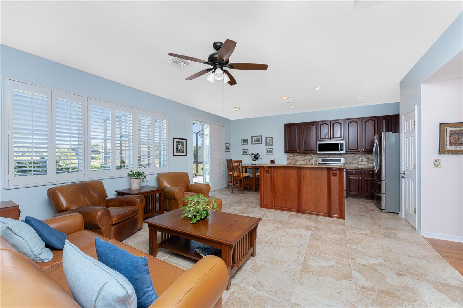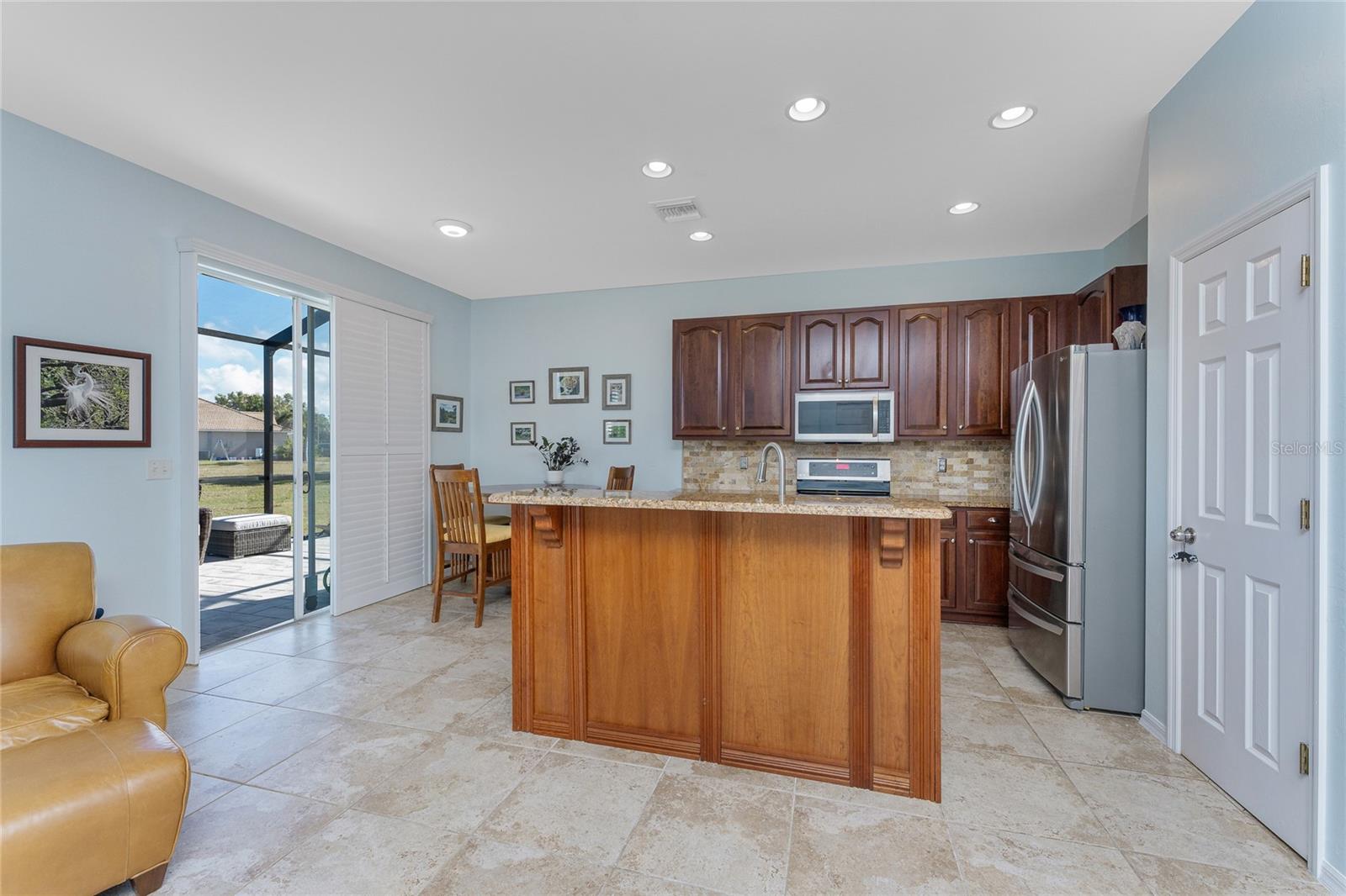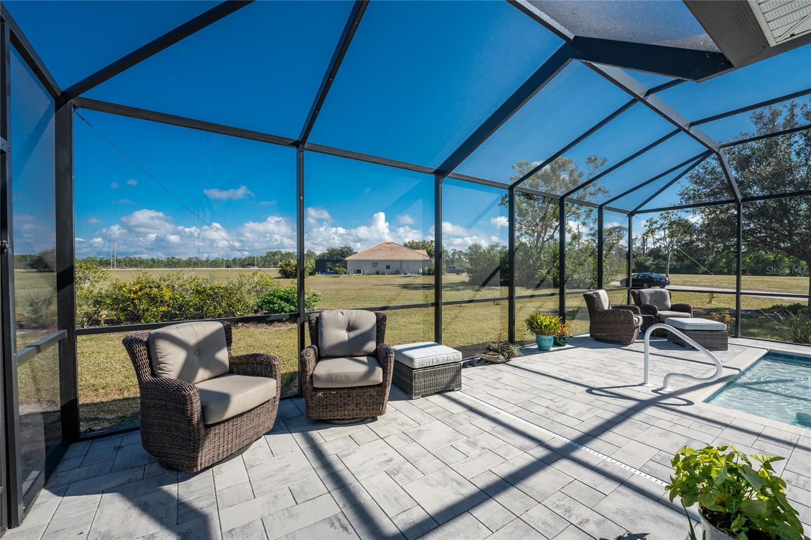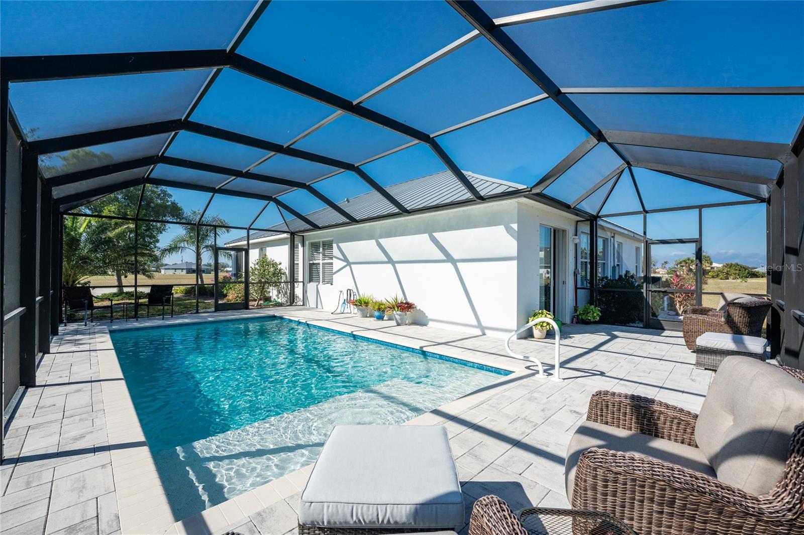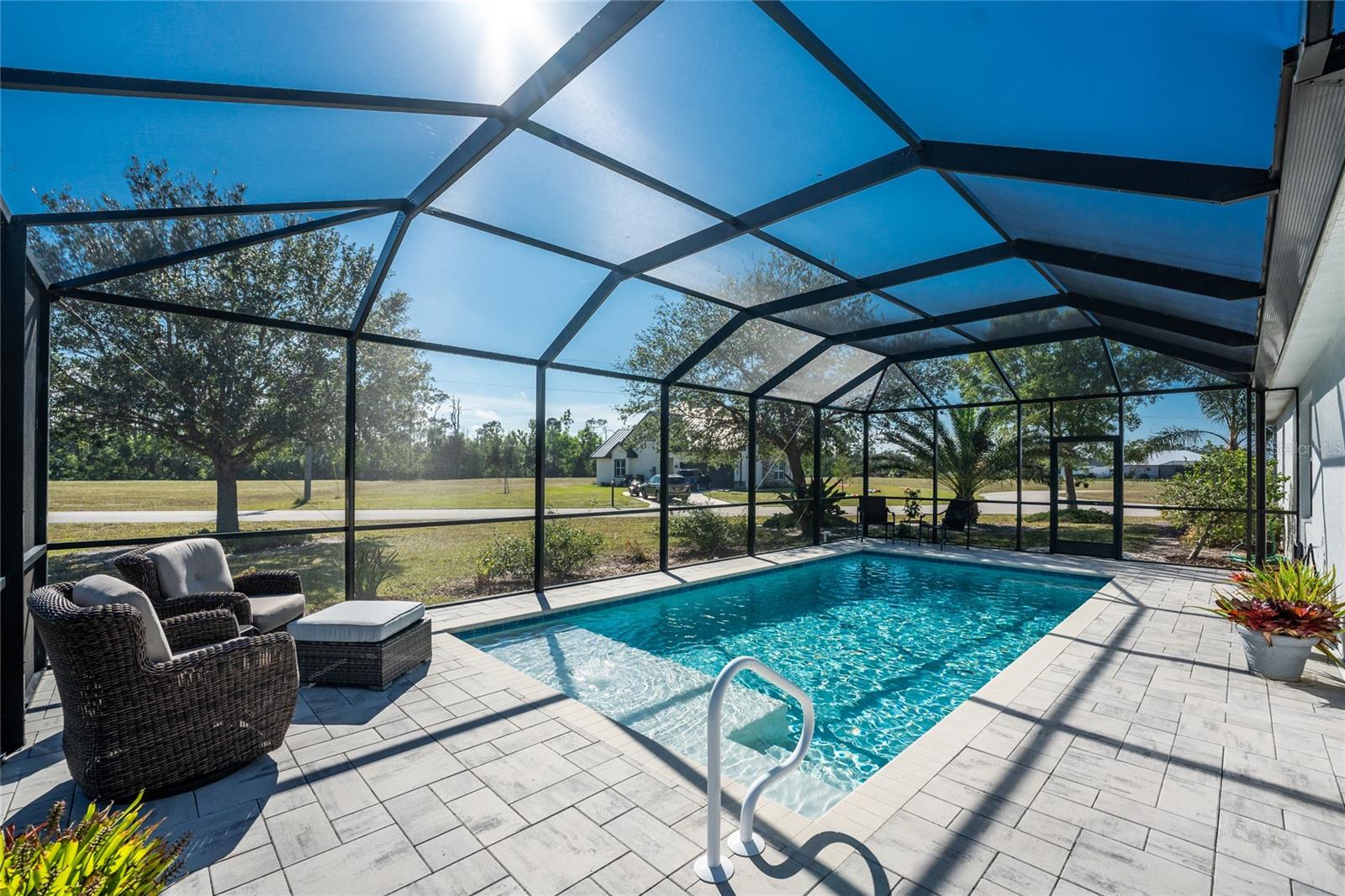Welcome to this beautiful 3-bedroom plus a Den, 2-bathroom, Pool home nestled in the desirable community of Burnt Store Lakes. Located in an X-Flood Zone on a cul-de-sac with no drive through traffic, this home offers a perfect blend of privacy and comfort. Enjoy watching both sunrises and sunsets from this unique East/West facing pool. Walk into this lovingly maintained home, you're greeted with an open and airy floor plan with comfortable living space. The spacious Great Room beautifully combines a Living and Dining area which features large windows that invite in tons of natural light, creating a warm and welcoming atmosphere. The well-appointed Kitchen is a chef's dream, featuring stainless steel appliances, granite countertops, cherry wood cabinets, tile backsplash, breakfast bar and a pantry. The adjoining Family Room and the additional Dinette area creates a perfect place for casual dining or entertaining guests. The Primary Bedroom Suite is your private oasis, featuring Luxury Vinyl Tile flooring, a walk-in closet, and an En-Suite Bathroom with frameless walk-in shower, large vanity with make-up space and a linen closet. Two generously sized Guest Bedrooms, located in their own wing for privacy, share a well-appointed Guest Bath with a shower/tub combination. Perfect as a Home Office or a Den, the Bonus Room could even be used as a 4th Bedroom. You’ll also find crown molding, tray ceiling, recessed lighting and plantation shutters throughout this home. The laundry room is spacious and includes an LG front-loading washer and dryer and cabinets for storage. Step outside and live the Florida lifestyle. The private backyard is a peaceful oasis, where you can enjoy both breathtaking sunrises and sunsets while relaxing by your 2021 heated saltwater pool, complete with a sundeck and paver deck. The pool area is screened in for your comfort, and the home's 8’ sliding glass doors provide easy access to the lanai from the kitchen and family room. This home’s 2-car Garage is equipped with a screened garage door for added ventilation, and the property also features a 2023 Metal Roof, upgraded insulation, and a 2020 AC system. The freshly painted exterior and the large parcel of land with mature oaks and palms add to the home’s appeal. The security system, hurricane shutters and screened entry provide peace of mind. Situated just minutes from Burnt Store Marina, where you can have access to boating, golf, restaurants, and Tennis/Pickleball. The Burnt Store Lakes community offers 11 lakes, walking paths, and wildlife watching, making it an ideal location for nature lovers. The community park features a picnic area with a pavilion. Burnt Store Lakes also has for its residents a kayak/canoe launch accessing Charlotte Harbor for outdoor enthusiasts. This home is just a short drive to historic downtown Punta Gorda, offering convenient access to shopping, dining, medical care, waterfront parks, and more and is a short drive to vibrant Cape Coral and Pine Island. Don’t miss this rare opportunity to own this attractively priced pool home in Burnt Store Lakes, a vibrant, deed-restricted community that offers the best of both worlds—peaceful living with close proximity to all that Punta Gorda and the surrounding areas offer. Whether you’re enjoying the privacy of your backyard, taking a short drive to the marina, or exploring the nearby parks and shops, this home offers an exceptional lifestyle at an unbeatable price.