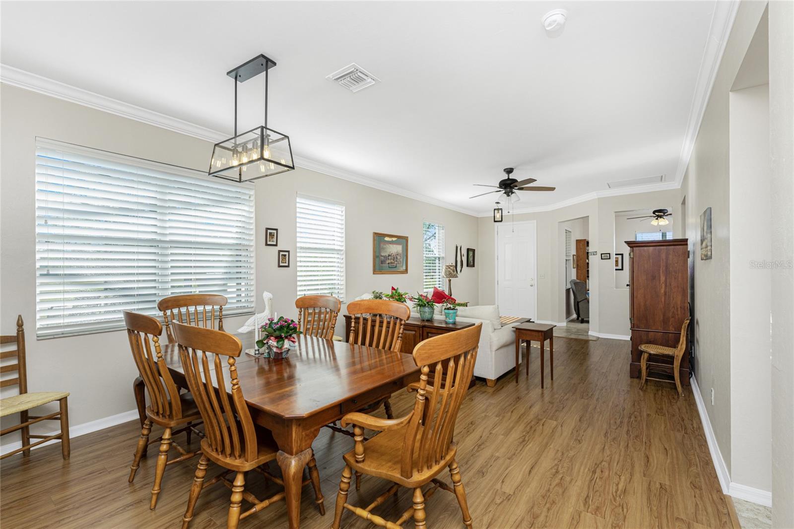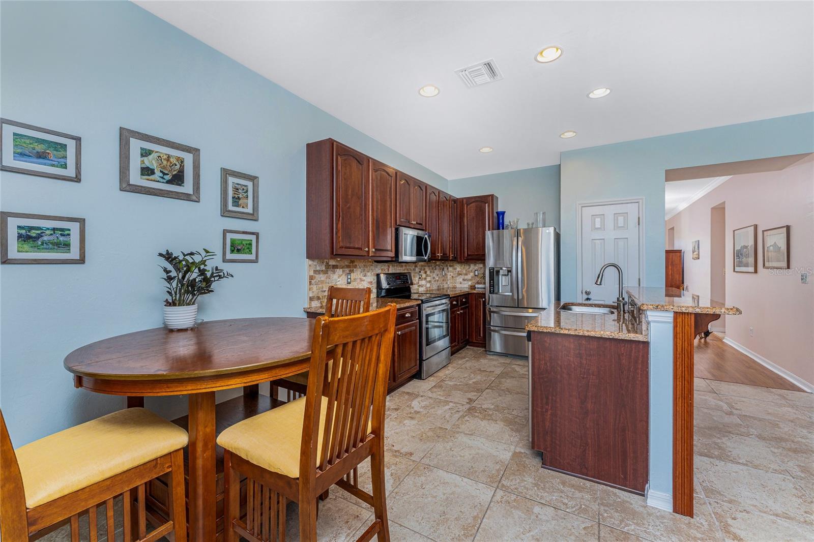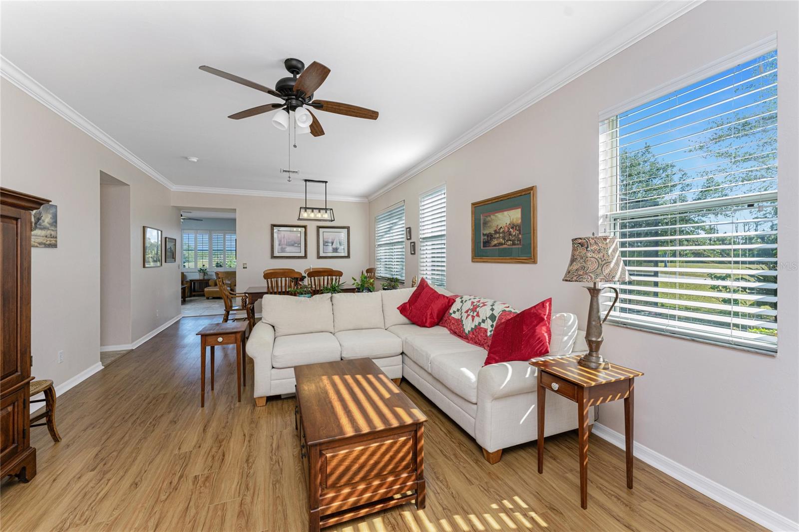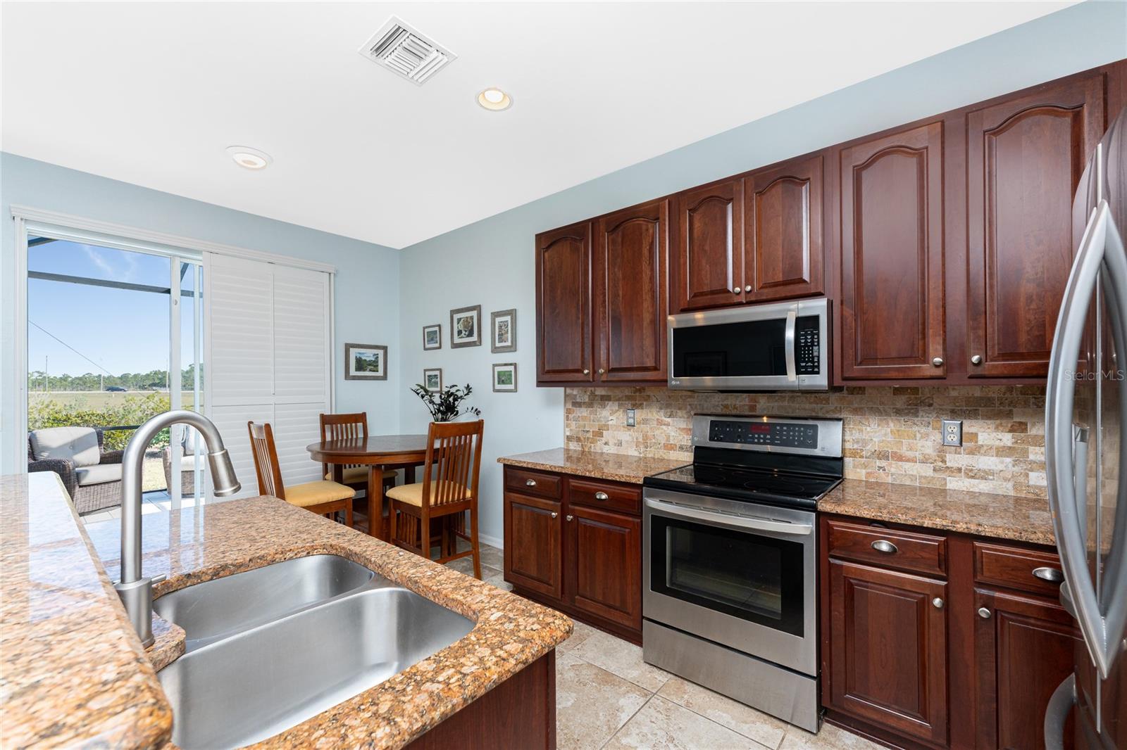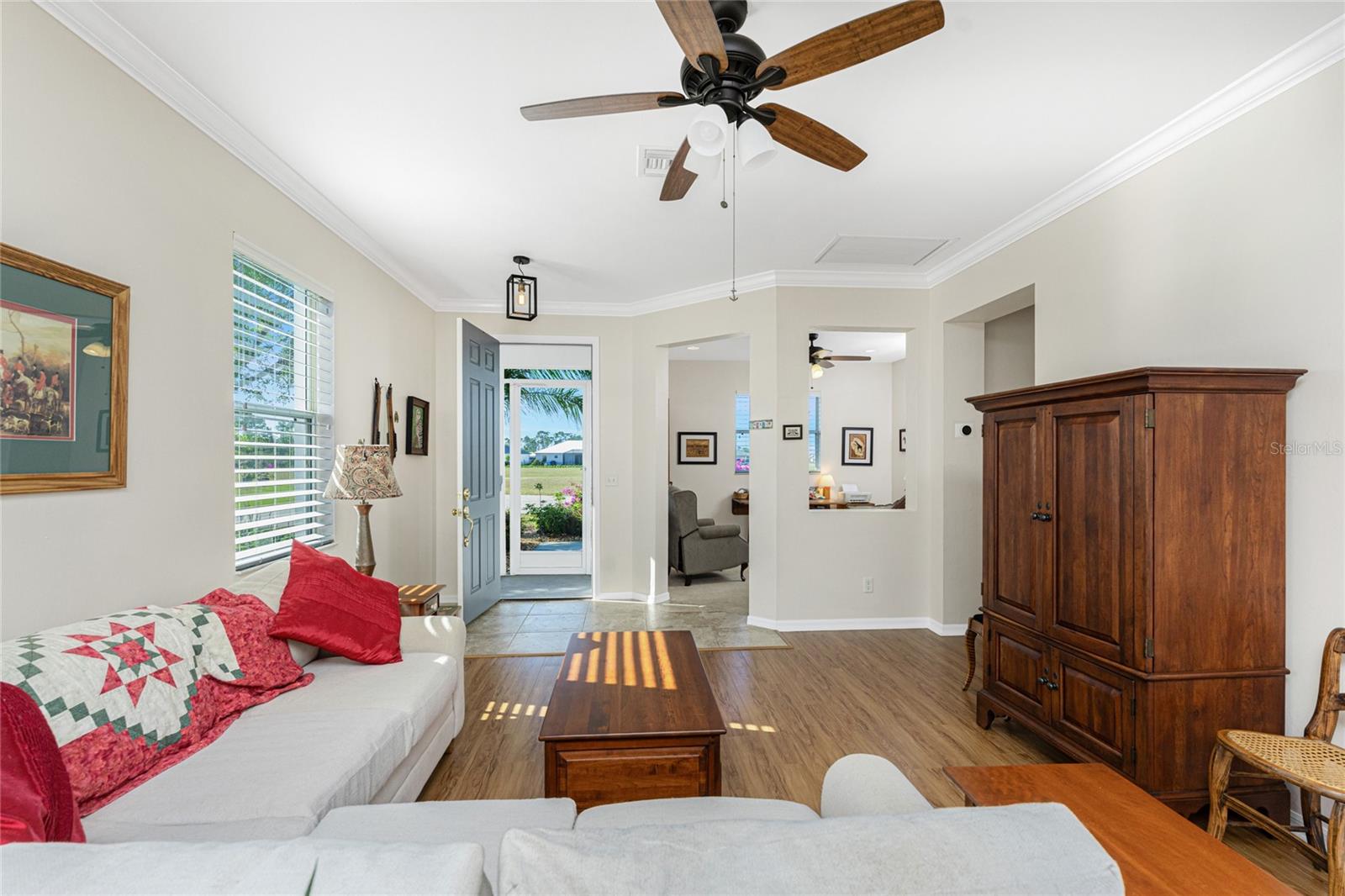 Welcome to this beautiful 3-bedroom plus a Den, 2-bathroom, Pool home nestled in the desirable community of Burnt Store Lakes. Located in an X-Flood Zone on a cul-de-sac with no drive through traffic, this home offers a perfect blend of privacy and comfort. Enjoy watching both sunrises and sunsets from this unique East/West facing pool. Walk into this lovingly maintained home, you're greeted with an open and airy floor plan with comfortable living space. The spacious Great Room beautifully combines a Living and Dining area which features large windows that invite in tons of natural light, creating a warm and welcoming atmosphere. The well-appointed Kitchen is a chef's dream, featuring stainless steel appliances, granite countertops, cherry wood cabinets, tile backsplash, breakfast bar and a pantry. The adjoining Family Room and the additional Dinette area creates a perfect place for casual dining or entertaining guests. The Primary Bedroom Suite is your private oasis, featuring Luxury Vinyl Tile flooring, a walk-in closet, and an En-Suite Bathroom with frameless walk-in shower, large vanity with make-up space and a linen closet. Two generously sized Guest Bedrooms, located in their own wing for privacy, share a well-appointed Guest Bath with a shower/tub combination. Perfect as a Home Office or a Den, the Bonus Room could even be used as a 4th Bedroom. You’ll also find crown molding, tray ceiling, recessed lighting and plantation shutters throughout this home. The laundry room is spacious and includes an LG front-loading washer and dryer and cabinets for storage. Step outside and live the Florida lifestyle. The private backyard is a peaceful oasis, where you can enjoy both breathtaking sunrises and sunsets while relaxing by your 2021 heated saltwater pool, complete with a sundeck and paver deck. The pool area is screened in for your comfort, and the home's 8’ sliding glass doors provide easy access to the lanai from the kitchen and family room. This home’s 2-car Garage is equipped with a screened garage door for added ventilation, and the property also features a 2023 Metal Roof, upgraded insulation, and a 2020 AC system. The freshly painted exterior and the large parcel of land with mature oaks and palms add to the home’s appeal. The security system, hurricane shutters and screened entry provide peace of mind. Situated just minutes from Burnt Store Marina, where you can have access to boating, golf, restaurants, and Tennis/Pickleball. The Burnt Store Lakes community offers 11 lakes, walking paths, and wildlife watching, making it an ideal location for nature lovers. The community park features a picnic area with a pavilion. Burnt Store Lakes also has for its residents a kayak/canoe launch accessing Charlotte Harbor for outdoor enthusiasts. This home is just a short drive to historic downtown Punta Gorda, offering convenient access to shopping, dining, medical care, waterfront parks, and more and is a short drive to vibrant Cape Coral and Pine Island. Don’t miss this rare opportunity to own this attractively priced pool home in Burnt Store Lakes, a vibrant, deed-restricted community that offers the best of both worlds—peaceful living with close proximity to all that Punta Gorda and the surrounding areas offer. Whether you’re enjoying the privacy of your backyard, taking a short drive to the marina, or exploring the nearby parks and shops, this home offers an exceptional lifestyle at an unbeatable price.