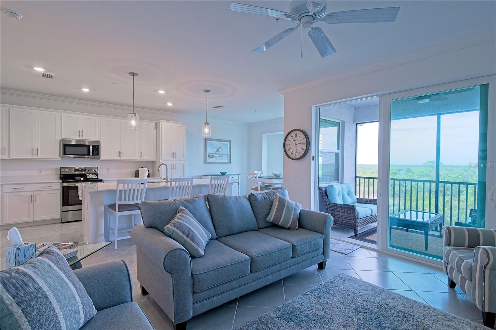 Experience the ultimate in resort-style living at Heritage Landing Golf and Country Club, located in Punta Gorda, Florida. This fully furnished 4th floor END UNIT Birkdale Model features 2 bedrooms and 2 baths, complete with an inclusive golf membership that elevates your luxurious lifestyle. Positioned on the 4th floor, this residence provides tranquility, privacy, and stunning views. As you enter, you’ll find a screened entryway equipped with a Ring doorbell and camera for enhanced security as well as an oversized storage room directly across from the front entrance. The open floor plan seamlessly connects the living, dining, and kitchen areas, making it perfect for relaxation and entertaining. This home is equipped with beautiful custom crown molding throughout the entire space. The well-equipped kitchen showcases stainless steel appliances and ample cabinet space. The master suite is a peaceful retreat, featuring a private en-suite bathroom, providing an ideal sanctuary to unwind after a day on the golf course. Step out onto the screened-in lanai with custom “noseeum” bug screen to enjoy the breathtaking sunsets of Heritage Landing. Heritage Landing provides maintenance-free, resort-style living, boasting a Gordon Lewis-designed 18-hole, Par 71 golf course, a Tennis Center, and facilities for pickleball and bocce ball. Relax by the Main Resort Pool with poolside service from the Tiki Bar. With even more amenities on the way, this property is conveniently located just minutes from Burnt Store Marina for dining, entertainment, and boating, perfectly situated between Fort Myers and Punta Gorda airports. Don’t miss your chance to experience everything Southwest Florida. Call today!