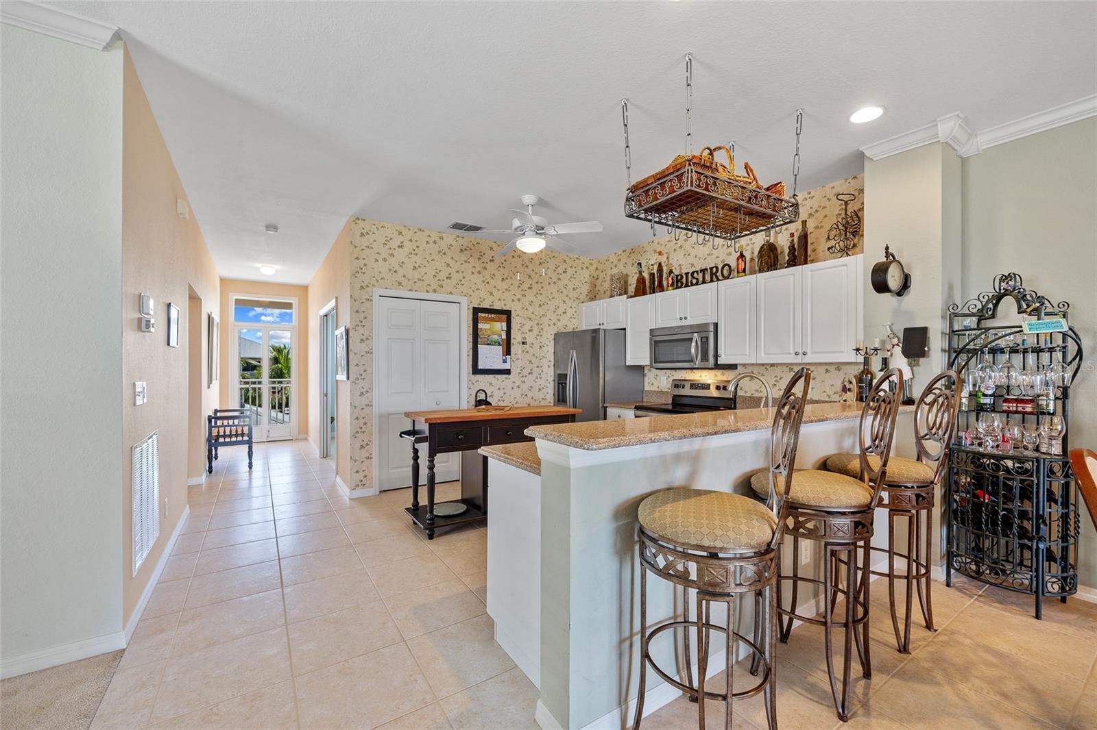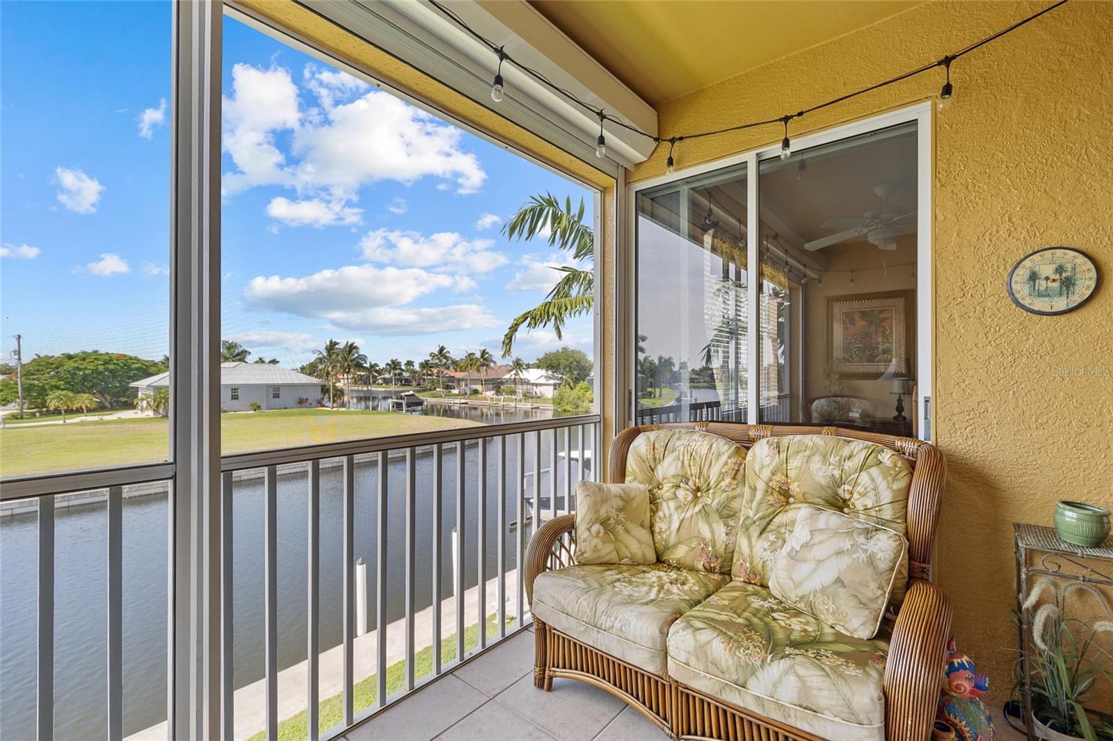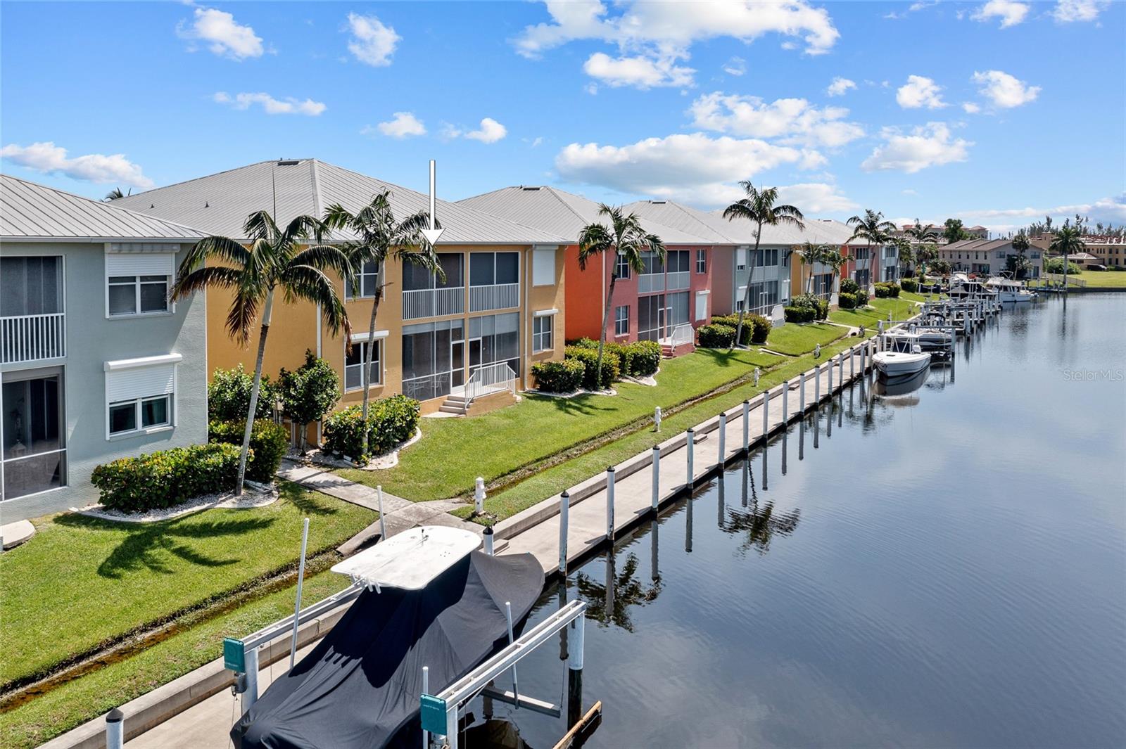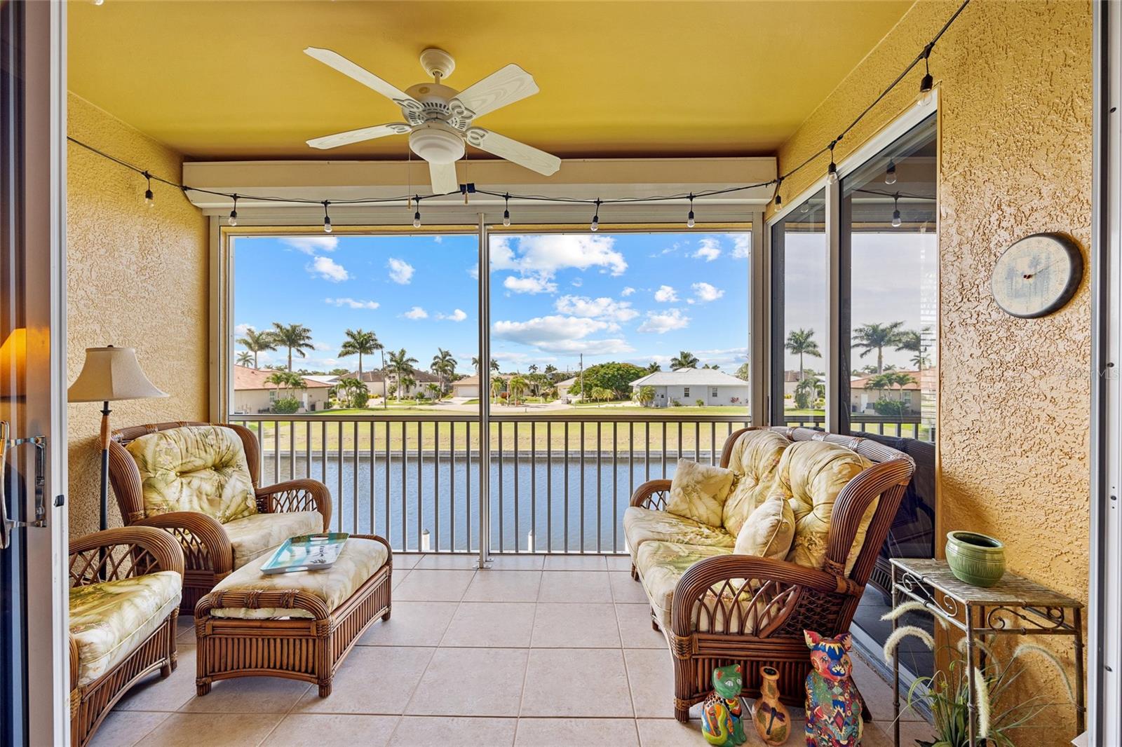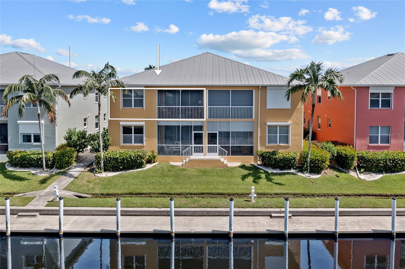 Punta Gorda Isles! TURNKEY 3-bedroom, 2-bath, 1-car garage top-floor condo in the waterfront community of Clipper Cove Village with sailboat access to Charlotte Harbor leading to the Gulf of Mexico via Buckley's Pass! For the avid boater, boat slip 20R is available for rent. This fully-furnished waterfront unit offers a modern and casual lifestyle with 1,517 square feet of living space. Step inside to find a welcoming living space adorned with crown molding and decorative fixtures. The open floor plan features a spacious living area with recessed lighting and a screened porch that overlooks the serene canal, perfect for enjoying tranquil water views. The contemporary kitchen offers stainless steel appliances, granite countertops and breakfast bar, ideal for casual dining. The primary suite is a true retreat, featuring an updated en-suite bathroom with dual sinks, a walk-in shower, a walk-in closet, and a convenient linen closet. Full hurricane protection with electric roll-down shutters ensures peace of mind with brand new lanai shutter. This pet-friendly, gated community offers a plethora of amenities, including a community pool and spa, tennis courts, and sailboat access. The detached garage and driveway provide ample parking. Located near historic downtown Punta Gorda, you'll have easy access to shops, restaurants, and nightlife. Whether you're lounging by the pool or exploring the upbeat local scene, this waterfront condo offers the perfect blend of relaxation and excitement. Don't miss out on this exceptional opportunity! Schedule your private showing today!
