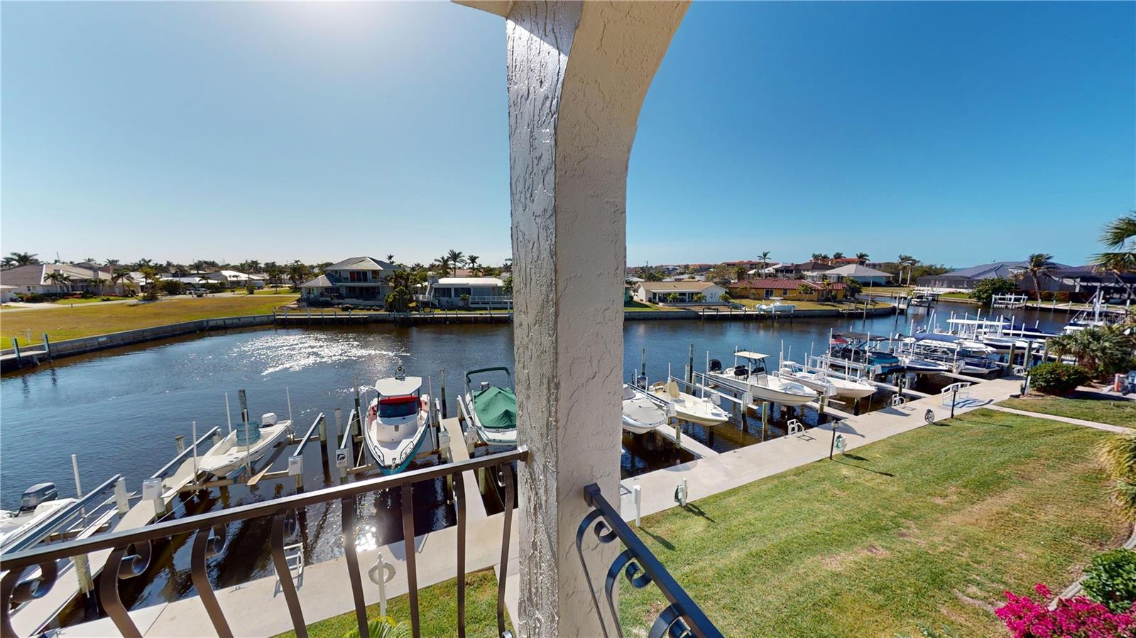 Million-dollar views without the million-dollar price tag! *NEW LOW PRICE – BRING YOUR VISION* The Milestone Report and Structural Integrity Reserve Study are complete, and no assessments are planned. This is an excellent opportunity to take advantage of a recently reduced price on this top-floor corner unit in Colony Point at Punta Gorda Isles. This 2-bedroom, 2-bath condo offers the perfect opportunity to personalize your space and create your ideal Florida retreat. It also makes a great investment, as rentals are allowed with a 30-day minimum. Take in the beautiful views of Charlotte Harbor, the canal, and the boat docks. This is the only corner unit on the top floor, offering a unique perspective of the waterfront setting. Watch pelicans and dolphins play or admire boats gliding by, all from your private balcony or through the expansive impact-resistant windows that fill the home with natural light. The open layout features crown molding and newer carpeting, and the new price leaves ample room in your budget to update the finishes to suit your style. The primary suite features an ensuite bath and sliders to the southeast-facing lanai, a bright and peaceful space to start or end your day. The second bedroom includes two large windows and access to a Jack-and-Jill bath, ideal for guests or a home office. Additional features include a dedicated laundry room with storage and a utility sink, a second entry with a built-in mail slot, and an assigned covered parking space. Colony Point offers great amenities such as a heated pool, activity room, guest parking, and boat slips available on a first-come, first-served basis. The building is well maintained with a fresh exterior paint job, a 50-year stone-coated steel roof, fully funded reserves, and a planned driveway resurfacing project. Just minutes from Fishermen’s Village, waterfront parks, boutique shopping, and restaurants with easy access to US-41 and I-75 for trips to Sarasota or Fort Myers. Don’t miss the chance to make this top-floor corner unit your own. Schedule your private showing today! PLEASE ENJOY THE 3D INTERACTIVE VIRTUAL TOUR ASSOCIATED WITH THIS LISTING.