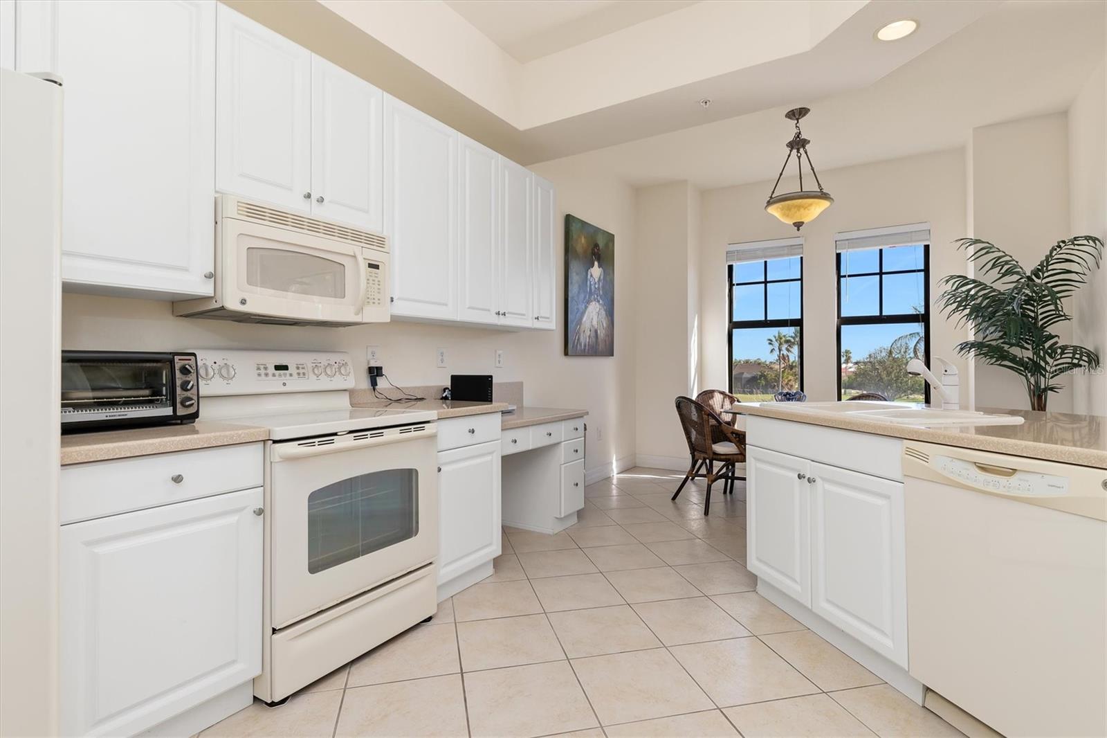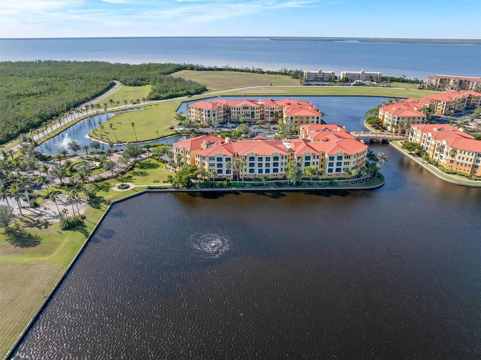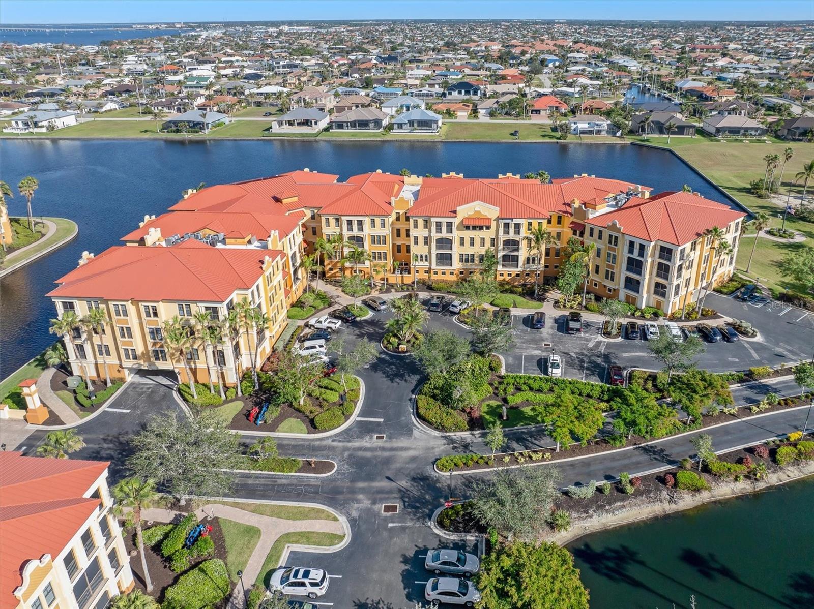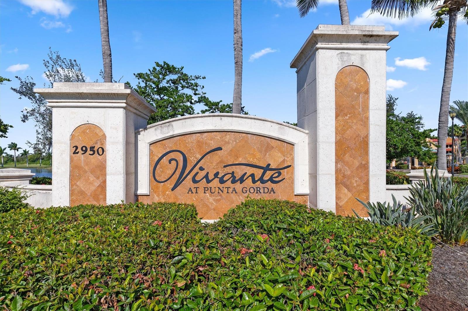 Whether you are a full-time or part-time resident you will thoroughly enjoy VIVANTE’S WATERFRONT LIFESTYLE RESORT IN THIS 3RD FLOOR CORNER UNIT WITH RELAXING VIEWS, INCLUDING SPECTACULAR SUNSETS. You will love the layout of this 1,915sf floorplan with 3 BEDROOMS/2 BATHS and another 268sf of SCREENED LANAI SPACE, and TANDEM SIZED 29FT LONG GARAGE. Enjoy tons of natural light and wonderful views from this corner unit with 10ft high ceilings and neutral colors. At the front of the unit is a spacious dining area that could be kept as a dining room if you enjoy entertaining or converted into office or den space as needed. The split floor plan allows the perfect separation of the primary space from the guest side. The primary bedroom is large enough to accommodate a king size bed, offers multiple closet areas, including a walk-in closet, and en-suite bathroom with both a tub and walk-in shower. Both guest rooms also have great storage space. The spacious screened lanai space has different seating areas accessible from the kitchen, living room, and primary bedroom. The position of the building allows sunrise views from the kitchen windows and wonderful sunsets from your lanai. The association dues cover water, sewer, trash, internet, basic cable, and of course the numerous amenities that Vivante is known for. And speaking of those amenities, when you are ready to take advantage of the 2 pools and numerous social activities, the clubhouse is a quick walk or bike ride away. Vivante is a gated upscale community with lush landscaping and offers numerous options for a healthy and engaging lifestyle. Some of the amenities include a large 2-floor clubhouse, multiple tennis courts, lagoon style pool with infinity edge, lap style pool for exercising, sun deck and cabana area, fitness center with classes, locker rooms with steam and sauna rooms, spa services, and multiple social options. Near the clubhouse are courtyards with outdoor fireplaces, grilling area, and waterfront walking paths. You get all of this without leaving your own community! But should you want to get out and about, quaint downtown Punta Gorda is nearby to take advantage of wonderful restaurants, biking paths, shopping, waterfront strolling and boating opportunities.