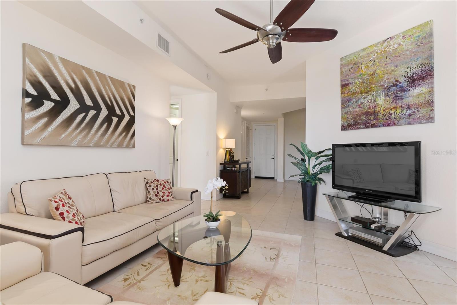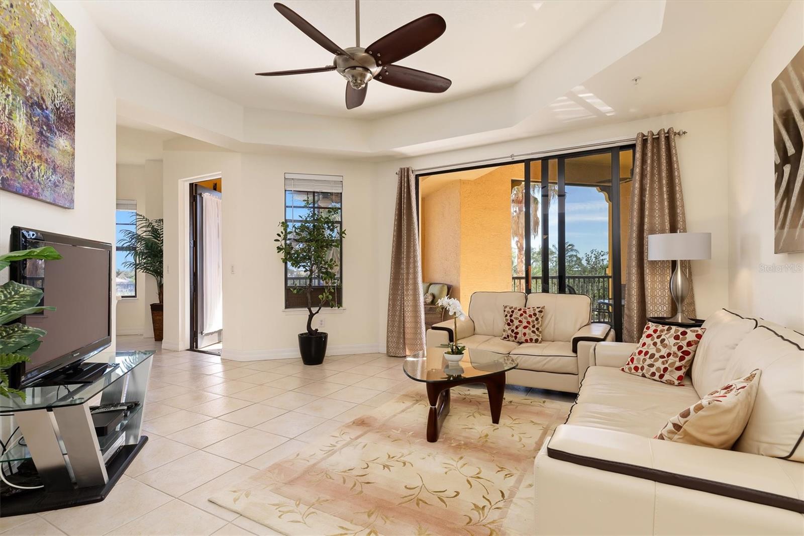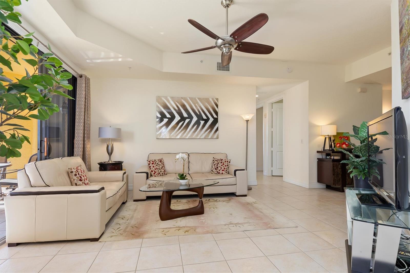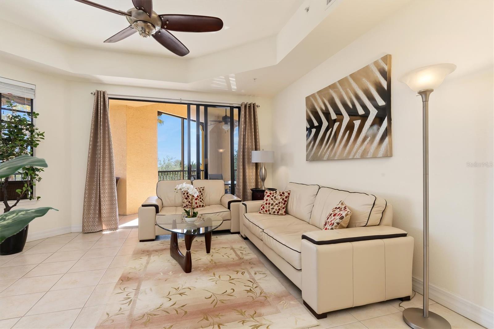 Whether you are a full-time or part-time resident you will thoroughly enjoy VIVANTE’S WATERFRONT LIFESTYLE RESORT IN THIS 3RD FLOOR CORNER UNIT WITH RELAXING VIEWS, INCLUDING SPECTACULAR SUNSETS. You will love the layout of this 1,915sf floorplan with 3 BEDROOMS/2 BATHS and another 268sf of SCREENED LANAI SPACE, and TANDEM SIZED 29FT LONG GARAGE. Enjoy tons of natural light and wonderful views from this corner unit with 10ft high ceilings and neutral colors. At the front of the unit is a spacious dining area that could be kept as a dining room if you enjoy entertaining or converted into office or den space as needed. The split floor plan allows the perfect separation of the primary space from the guest side. The primary bedroom is large enough to accommodate a king size bed, offers multiple closet areas, including a walk-in closet, and en-suite bathroom with both a tub and walk-in shower. Both guest rooms also have great storage space. The spacious screened lanai space has different seating areas accessible from the kitchen, living room, and primary bedroom. The position of the building allows sunrise views from the kitchen windows and wonderful sunsets from your lanai. The association dues cover water, sewer, trash, internet, basic cable, and of course the numerous amenities that Vivante is known for. And speaking of those amenities, when you are ready to take advantage of the 2 pools and numerous social activities, the clubhouse is a quick walk or bike ride away. Vivante is a gated upscale community with lush landscaping and offers numerous options for a healthy and engaging lifestyle. Some of the amenities include a large 2-floor clubhouse, multiple tennis courts, lagoon style pool with infinity edge, lap style pool for exercising, sun deck and cabana area, fitness center with classes, locker rooms with steam and sauna rooms, spa services, and multiple social options. Near the clubhouse are courtyards with outdoor fireplaces, grilling area, and waterfront walking paths. You get all of this without leaving your own community! But should you want to get out and about, quaint downtown Punta Gorda is nearby to take advantage of wonderful restaurants, biking paths, shopping, waterfront strolling and boating opportunities.
