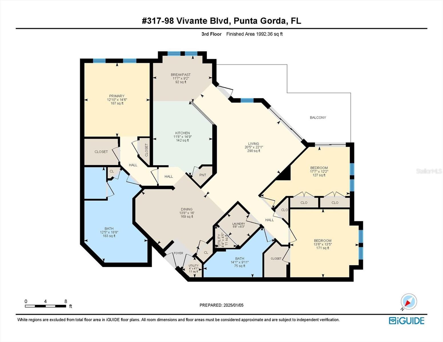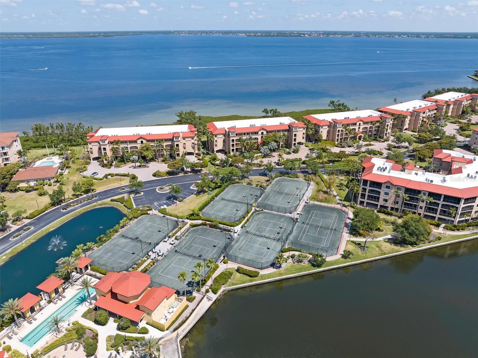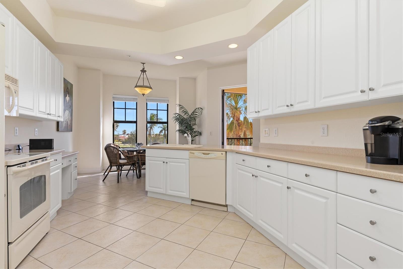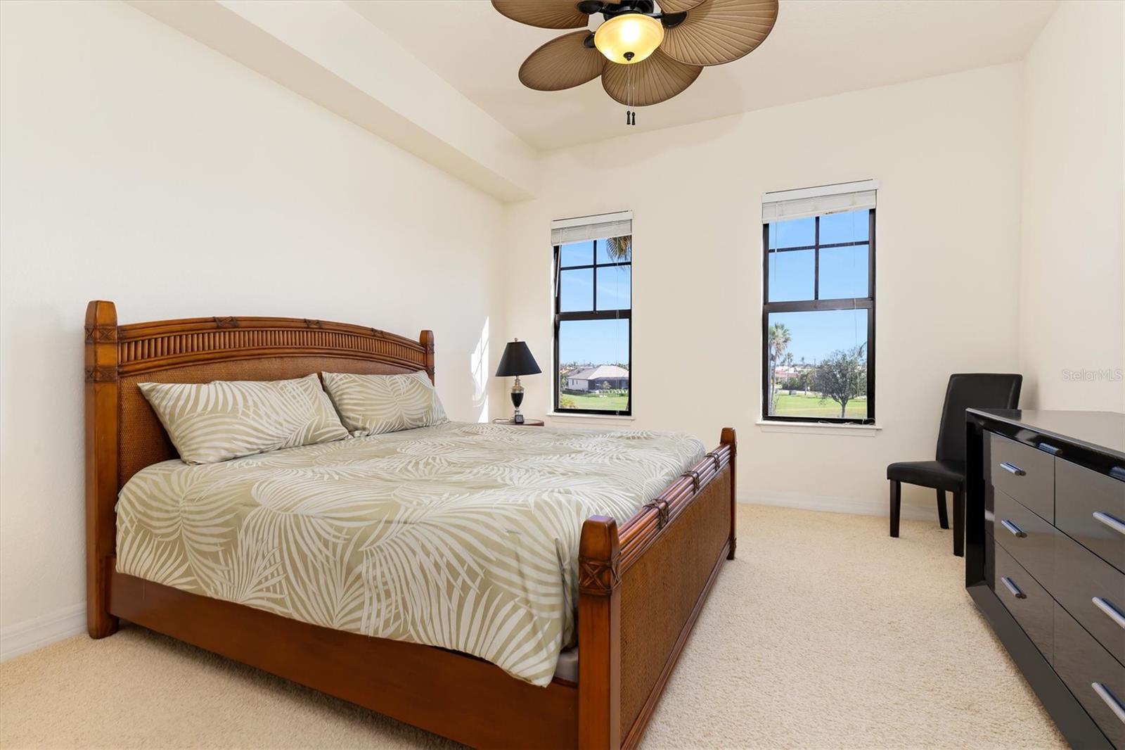 Whether you are a full-time or part-time resident you will thoroughly enjoy VIVANTE’S WATERFRONT LIFESTYLE RESORT IN THIS 3RD FLOOR CORNER UNIT WITH RELAXING VIEWS, INCLUDING SPECTACULAR SUNSETS. You will love the layout of this 1,915sf floorplan with 3 BEDROOMS/2 BATHS and another 268sf of SCREENED LANAI SPACE, and TANDEM SIZED 29FT LONG GARAGE. Enjoy tons of natural light and wonderful views from this corner unit with 10ft high ceilings and neutral colors. At the front of the unit is a spacious dining area that could be kept as a dining room if you enjoy entertaining or converted into office or den space as needed. The split floor plan allows the perfect separation of the primary space from the guest side. The primary bedroom is large enough to accommodate a king size bed, offers multiple closet areas, including a walk-in closet, and en-suite bathroom with both a tub and walk-in shower. Both guest rooms also have great storage space. The spacious screened lanai space has different seating areas accessible from the kitchen, living room, and primary bedroom. The position of the building allows sunrise views from the kitchen windows and wonderful sunsets from your lanai. The association dues cover water, sewer, trash, internet, basic cable, and of course the numerous amenities that Vivante is known for. And speaking of those amenities, when you are ready to take advantage of the 2 pools and numerous social activities, the clubhouse is a quick walk or bike ride away. Vivante is a gated upscale community with lush landscaping and offers numerous options for a healthy and engaging lifestyle. Some of the amenities include a large 2-floor clubhouse, multiple tennis courts, lagoon style pool with infinity edge, lap style pool for exercising, sun deck and cabana area, fitness center with classes, locker rooms with steam and sauna rooms, spa services, and multiple social options. Near the clubhouse are courtyards with outdoor fireplaces, grilling area, and waterfront walking paths. You get all of this without leaving your own community! But should you want to get out and about, quaint downtown Punta Gorda is nearby to take advantage of wonderful restaurants, biking paths, shopping, waterfront strolling and boating opportunities.