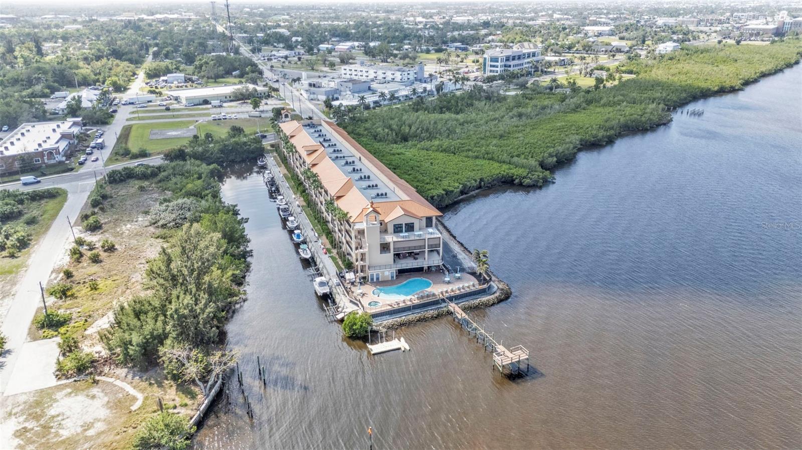 Experience waterfront living at its finest in this beautiful 3-bedroom, 2-bath end-unit condo at Peace Harbor Condos! With a screened lanai and an additional outdoor patio, this home offers abundant natural light and breathtaking Peace River and Charlotte Harbor views. Step inside to discover a combination of luxury vinyl and ceramic tile flooring, creating a stylish, low-maintenance living space. The spacious, updated kitchen features granite countertops, stainless steel appliances, a large pantry, a breakfast bar, and a decorative tile backsplash with aquamarine iridescent accents, beautifully carried into the primary and guest bathrooms. Just off the kitchen, a versatile space with a coffered ceiling offers the perfect spot for a cozy sitting area or dining room, with sliding doors leading to the outdoor patio. Enjoy your mornings basking in the sun in this peaceful outdoor retreat. The open-concept design continues into the spacious family room, where more sliding doors open to the screened lanai—a serene space to unwind and witness spectacular sunsets over the harbor. The split floor plan ensures privacy, with the primary suite featuring its own access to the lanai, two walk-in closets, and an ensuite bath with a walk-in shower. Two additional guest bedrooms and a full bath provide plenty of space for family or visitors. A conveniently hidden laundry area completes this thoughtfully designed home. Built for both comfort and durability, this home features impact-resistant doors and windows for added peace of mind. Additionally, the condo offers the convenience of a covered parking garage located under the building, all within the safety of a gated community. Head down to the community patio and clubhouse, where you can grill out or take a dip in the inviting pool and spa. The welcoming Peace Harbor Condo community is ideally located near Highway 75, offering convenient access to both Sarasota and Fort Myers. Situated in the charming town of Punta Gorda, you'll have easy access to the iconic Fishermen’s Village, with its unique shops, waterfront dining, and entertainment. You'll also enjoy beautiful waterfront paths, fabulous restaurants, shopping, and vibrant farmers’ markets. Make Peace Harbor your next home and immerse yourself in comfort, convenience, and waterfront beauty!