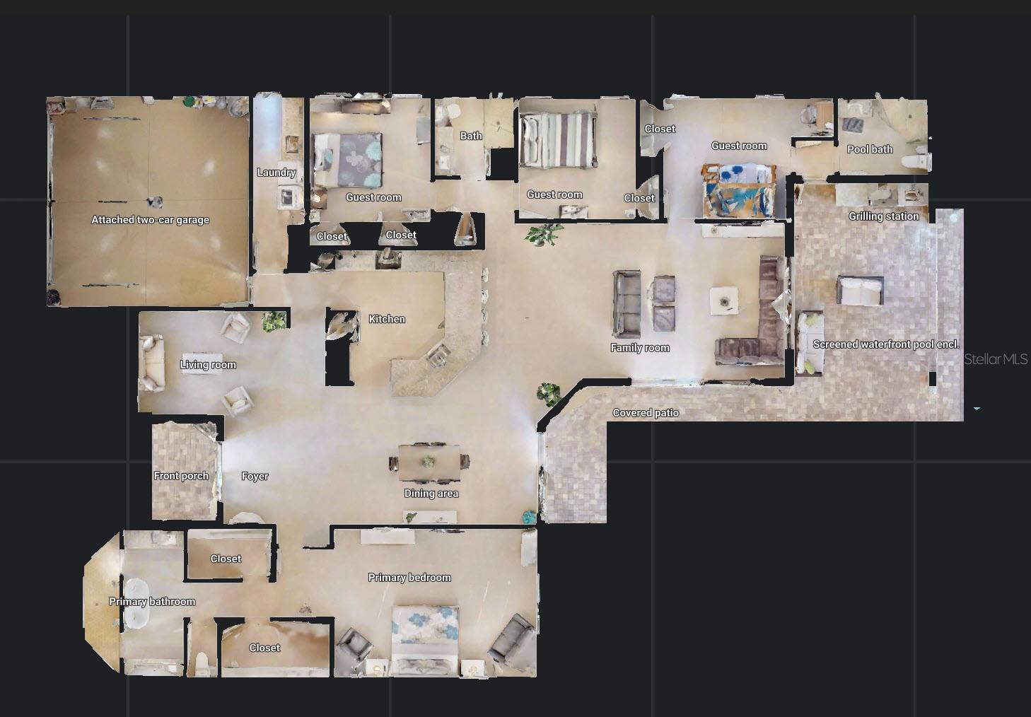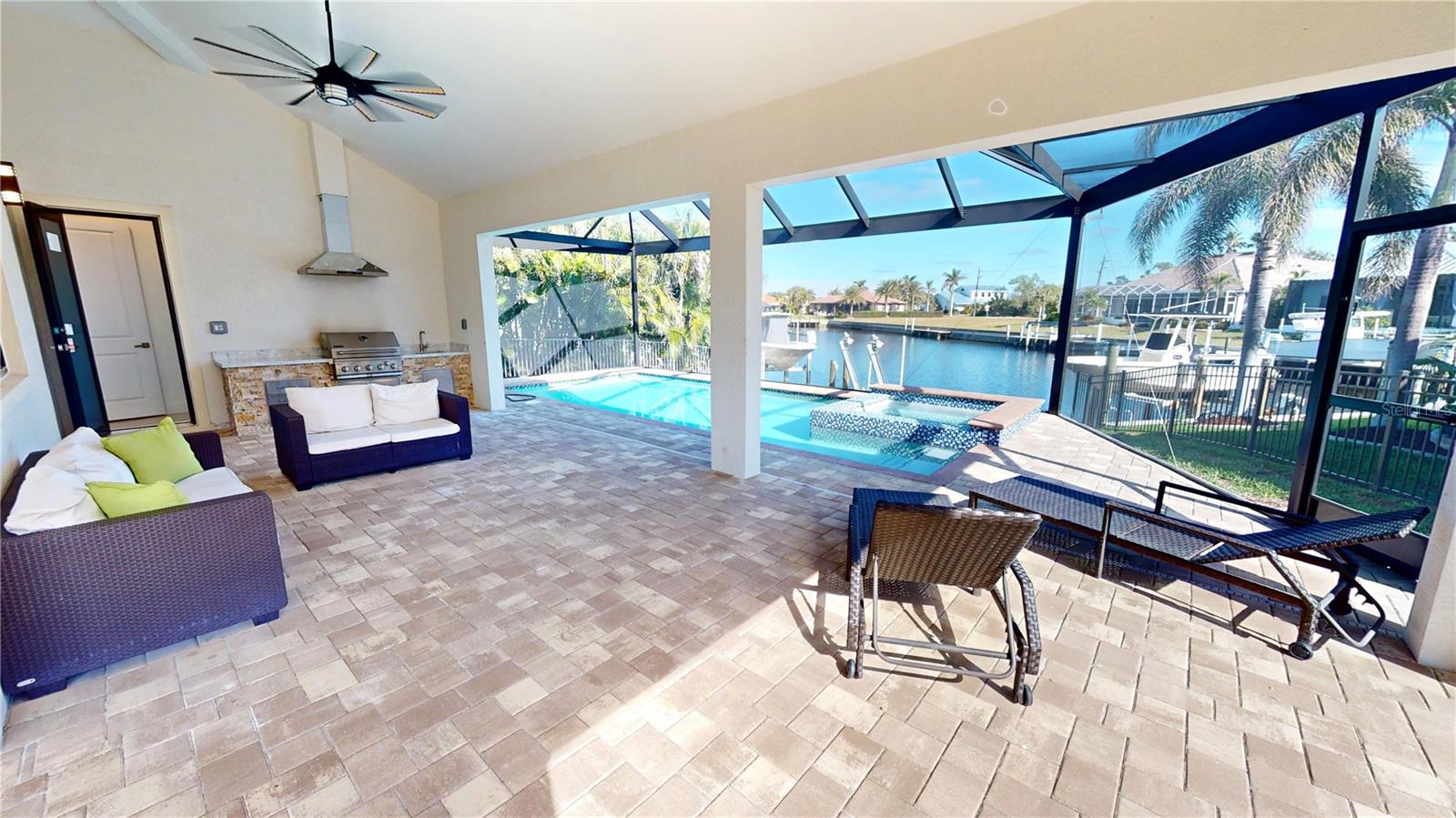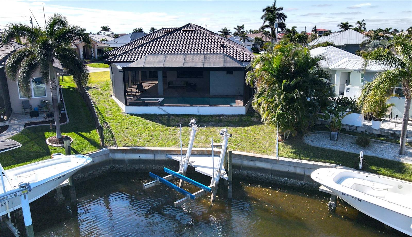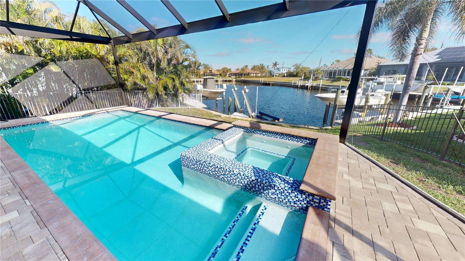 **PRICE IMPROVEMENT**PLEASE ENJOY THE 3D INTERACTIVE VIRTUAL TOUR ASSOCIATED WITH THIS LISTING – Welcome home to the unique boating community of Punta Gorda Isles. Located on a 13,000-square-foot corner waterfront lot is the location of this now-completed executive home. Boasting a light and bright neutral decor and approximately 3000 square feet of air-conditioned living space, this home sports four bedrooms and three full baths and features both 10 and 15 foot volume ceilings, 48” x 30” porcelain tile flooring throughout, crown molding in most every room and impact resistant windows and doors. The custom open kitchen is ultra-spacious and has more than ample solid wood cabinetry and quartz counters. The primary bedroom suite includes double entry doors, a pair of walk-in closets, a bath that features dual vanities, a soaking tub and a walk-through shower and measures over 650 square feet in size! This suite is on the opposite side of the home from the other three bedrooms for added privacy. At the waterfront side of the house is where you’ll find a vast oasis consisting of nearly 1400 square feet of outdoor entertaining/relaxation space, 770 of which is under-roof. Features of this outdoor space include brick-paver decking, a grilling station and a 28’ x 12’ heated saltwater pool with an integrated hot tub with remote control. This area looks out through a panoramic screen at the 35’ of city-maintained seawall and a 7500 lb. electric boat lift. From this location, you are but a short boat ride to the open waters of Charlotte Harbor and the Gulf of Mexico beyond. 432 Gun Cay Lane is one mile from both shopping and the Fisherman’s Village entertainment complex. Please take advantage of the 3D virtual walk-through tour now by clicking on the attached link!