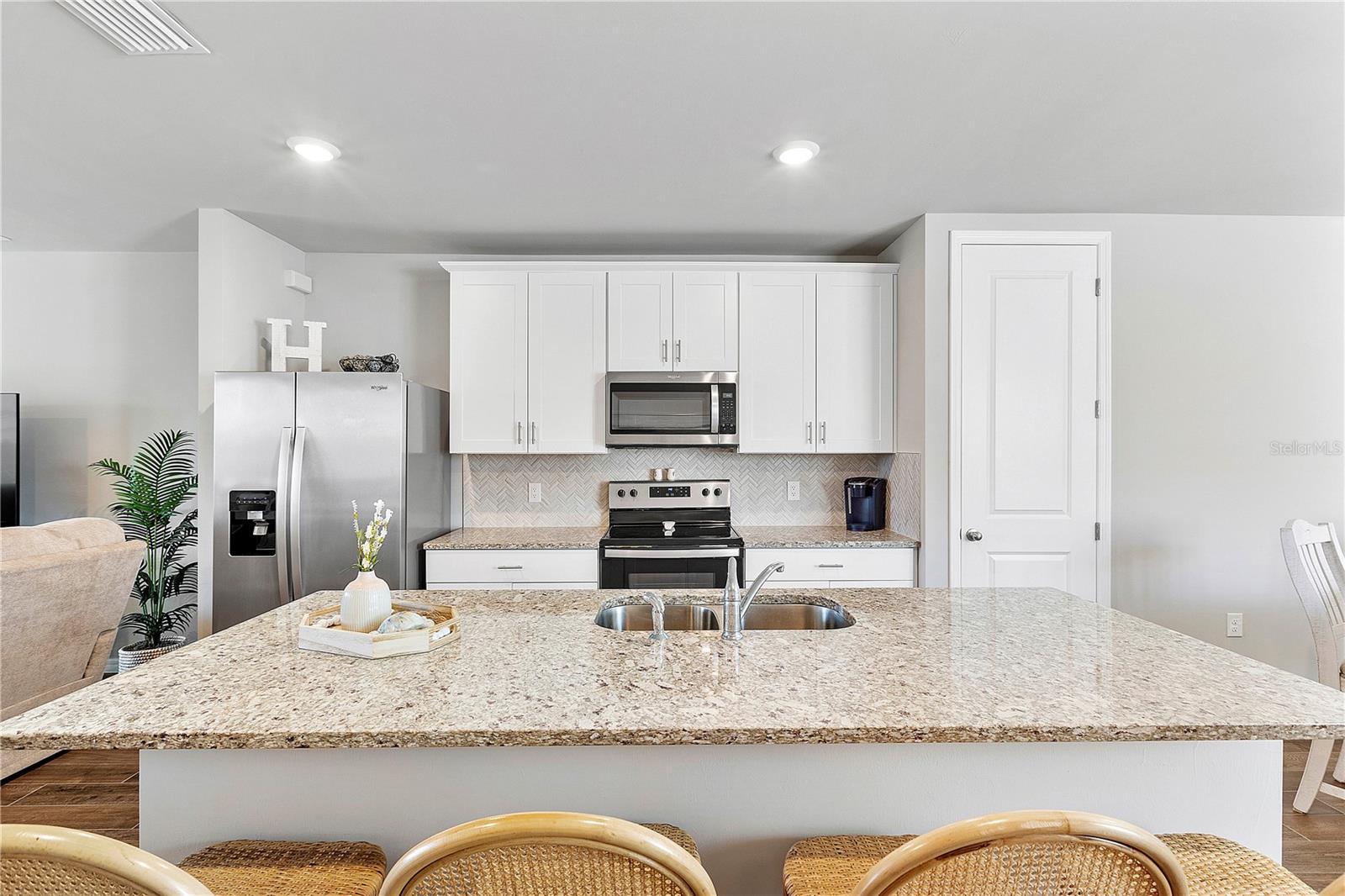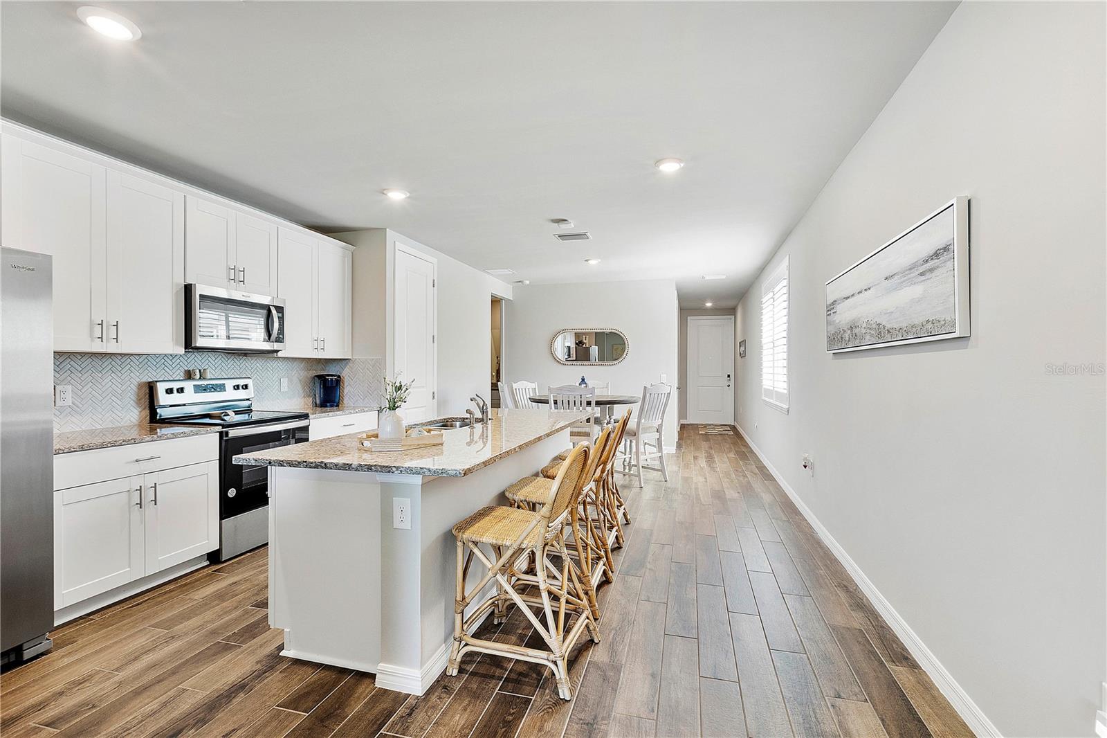 If you’re looking for a move-in ready house in Babcock Ranch, then look no further than this beautiful home in Crescent Grove. This Canary model by Meritage Homes has 3 bedrooms, 2 bathrooms, and just under 1,500 sq ft of living space. The split bedroom floor plan allows for privacy with the guest bedrooms and bath near the front, and the owner’s suite tucked in the back. The kitchen has granite countertops, a breakfast bar, and a pantry, and the great room has separate dining and living spaces. Sliding glass doors lead out back to the lanai and spacious backyard. Special upgrades include a whole house surge protector and built in dehumidifier, as well as wood-look plank tile floors in the main living area. Additional features that don’t come with a new build include the washer and dryer, cabinet hardware, plantation shutters, and other window treatments throughout the home. All furniture and furnishings are negotiable. This home is located in the quiet, sold-out Crescent Grove neighborhood. Landscaping is included in the low HOA fee, making this one of the most affordable places to live in Babcock Ranch. If you’re ready to make a move to America’s first solar powered town, this home is ready and waiting for you!