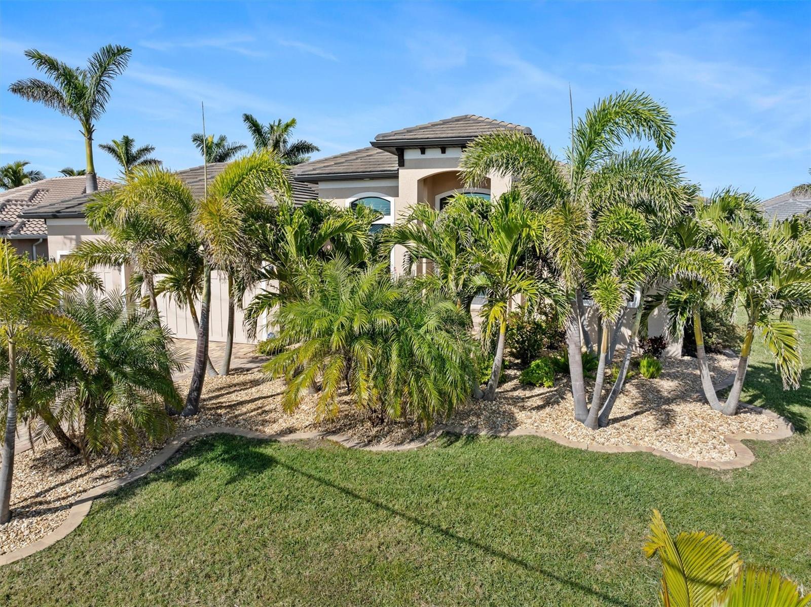 Discover the perfect blend of luxury, comfort, and Florida living in this custom-built 3-bedroom, 3-bathroom, 3-car garage pool home with an office, ideally situated in the sought-after Punta Gorda Isles community. Overlooking the 14th hole of St. Andrew’s Golf Course, this home sits on an oversized corner lot, offering breathtaking views and a peaceful ambiance. The home entrance is located off Suzi St., though it carries a Bal Harbor Blvd. address. A brick-paved, expanded 30-foot driveway leads to a 3-car garage, designed to city maximum limits with a 24-foot width through the covert and right-of-way. Lush landscaping, highlighted by numerous trees and bushes beyond the builder’s original city requirements, is beautifully enhanced with paver-surrounded garden beds finished with 1-1/2” brown and red stone. Landscape lighting in the front yard adds to the home's striking curb appeal. Inside, the thoughtfully designed layout features an expansive great room with double tray ceilings, wood-grain tile flooring, and a wall of sliders that open to the lanai, creating an effortless connection between indoor and outdoor spaces. The gourmet kitchen is a chef’s dream, complete with granite countertops, solid wood cabinetry with crown molding, a center island with prep sink and storage, high-end stainless steel appliances, and a cozy breakfast nook offering stunning golf course and backyard views through a panoramic window. A formal dining room provides the perfect space for entertaining, while the dedicated office/den offers a private retreat. The primary suite is a peaceful escape, featuring tray ceilings with crown molding, custom walk-in closets, plush carpeting, and private access to the pool area. The en-suite bath is elegantly designed with dual granite-topped vanities and a spacious Roman-style walk-in shower. Guests will appreciate two well-appointed bedrooms and two additional bathrooms, one with direct pool access. Step outside to an incredible outdoor living space featuring a 60-foot heated saltwater lap pool with custom tile and marked measurement lines for serious swimmers. A large Hayward pool heat pump ensures year-round comfort. The lanai is finished with a stunning wood ceiling and includes a convenient outdoor sink. An additional water faucet in the backyard adds ease for gardening and maintenance. The 3-car garage is designed for function and comfort, featuring an epoxy-coated floor, insulated ceiling, and a dedicated split A/C unit for climate control. A whole-house solar system helps maintain a lower energy bill. For added convenience, a 12,500-watt portable generator is connected via an outdoor outlet to the main electrical panel (available for purchase outside of sale). Located just minutes from Fishermen’s Village, historic downtown Punta Gorda, Charlotte Harbor, and the new Sunseeker Resort, this home is surrounded by top-rated restaurants, boutique shopping, and entertainment. For outdoor enthusiasts, enjoy world-class boating, fishing, sailing, and pristine Gulf beaches, all just a short drive away. Golfers will love the proximity to championship courses, making this home an ideal retreat for those seeking the ultimate Florida lifestyle.