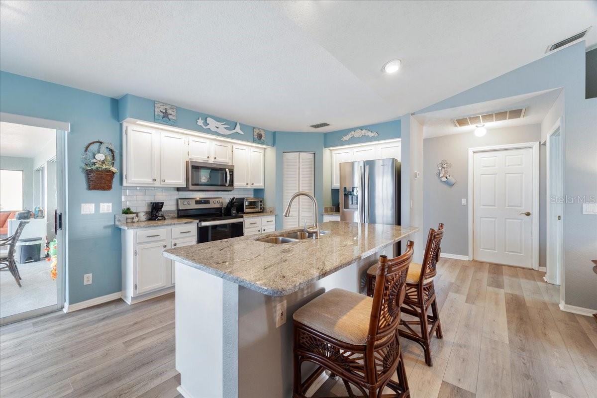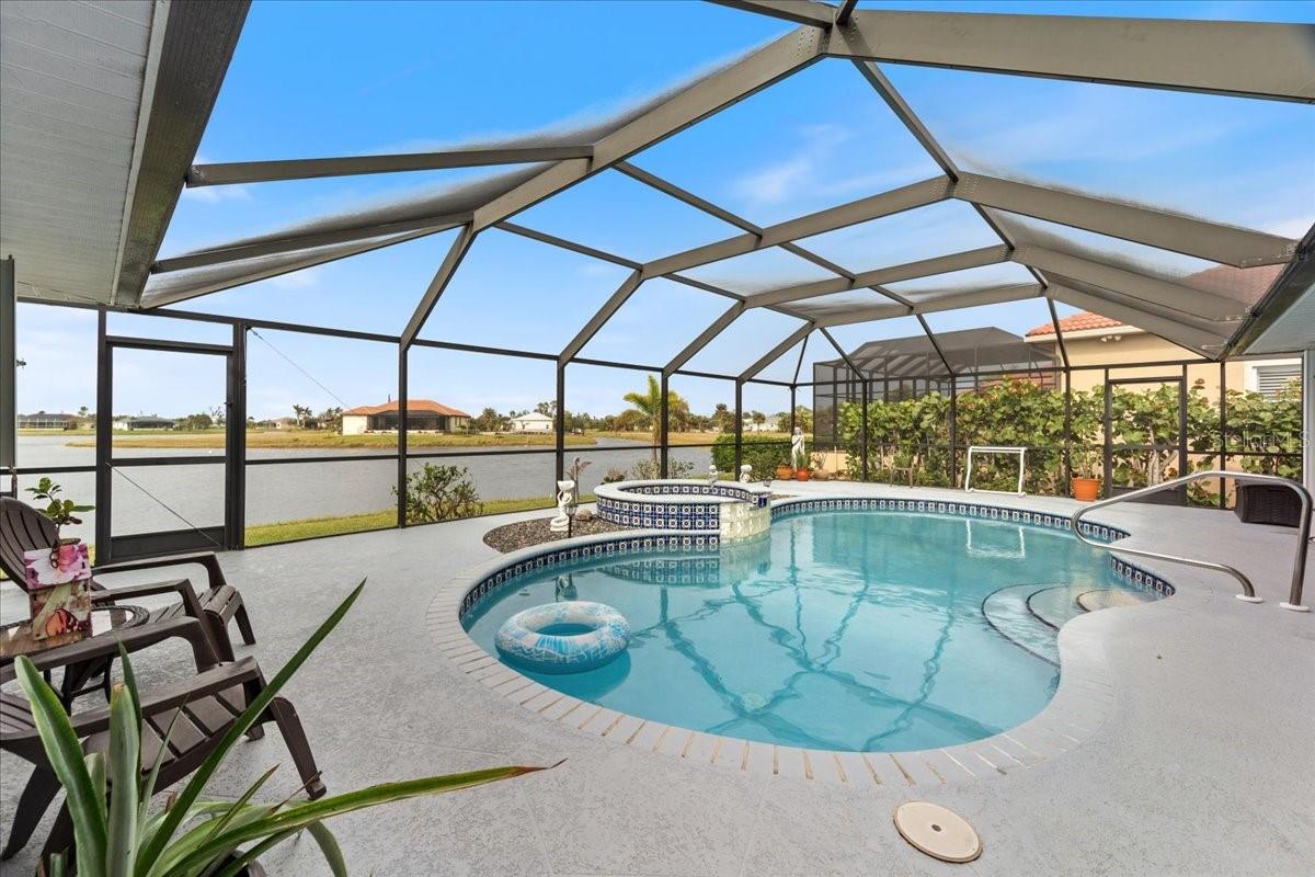 Bright and Sunny Pool Home with Lake Views in Burnt Store Lakes This updated home offers a spacious, open floor plan with stunning lake views and a relaxing pool area. Features include a heated pool, heated spa, and a front entrance screen cage, perfect for enjoying year-round. The kitchen is an entertainer's dream, with a large island, less than 4-year-old countertops, and modern fixtures. The floor plan is designed for privacy, with a separate hallway leading to two bedrooms and a bath, complete with walk-out sliders. Enjoy breathtaking sunset views from the comfort of your home. The property also boasts new floors, updated bathroom fixtures, and attic insulation. Located in Burnt Store Lakes, an up-and-coming area with exciting future developments, this home offers more than just a great place to live. You'll have access to on-site waterfront dining and entertainment and a kayak and canoe launch for outdoor enthusiasts. With Cape Coral and Matlacha just a short drive away, you're never far from dining, shopping, and entertainment. This home is a must-see! SELLERS SAY BRING ALL OFFERS !!!!!!!!