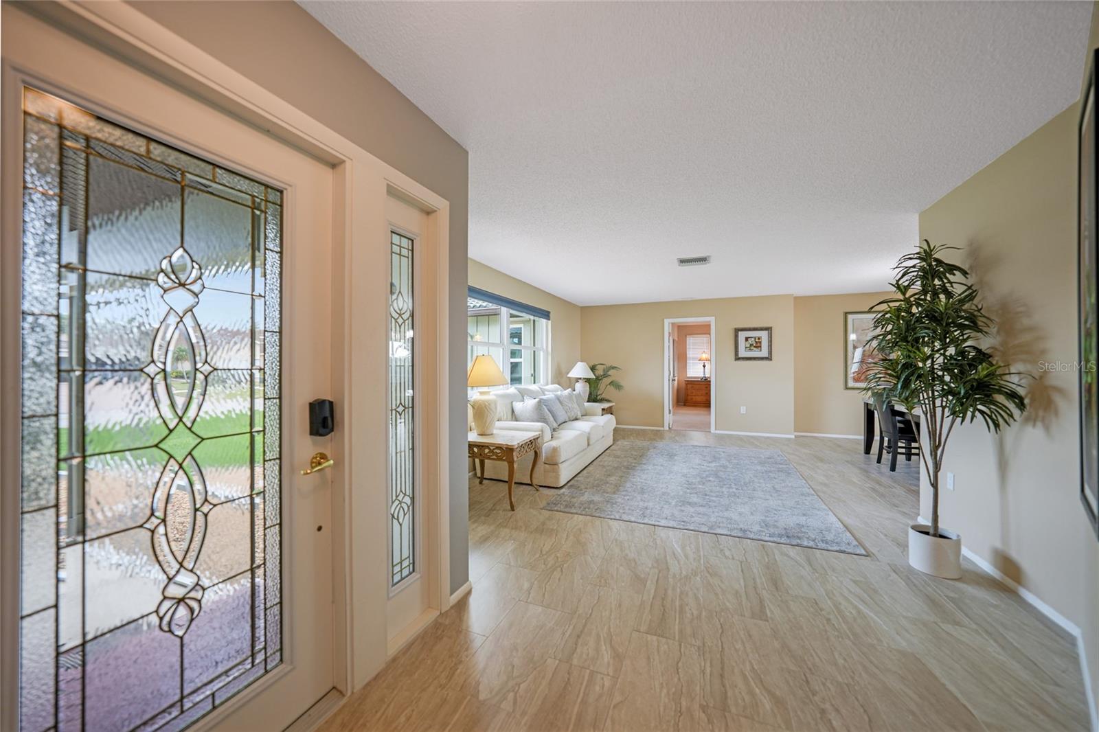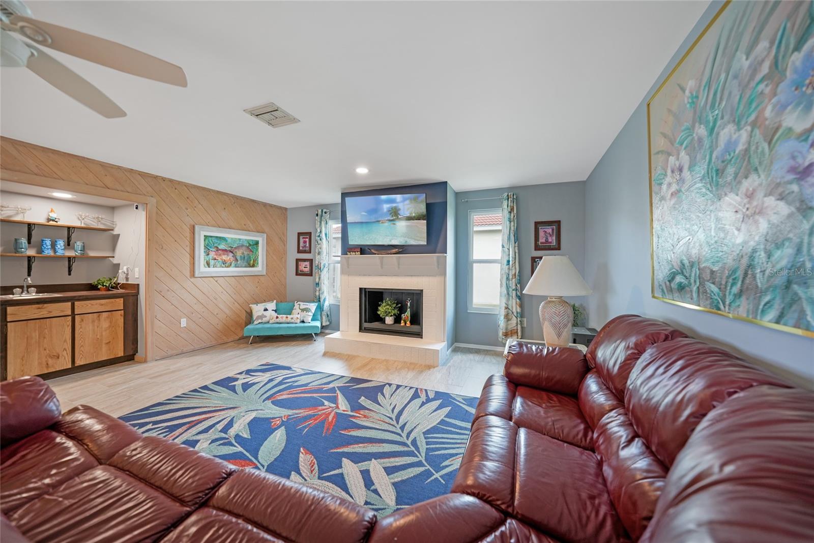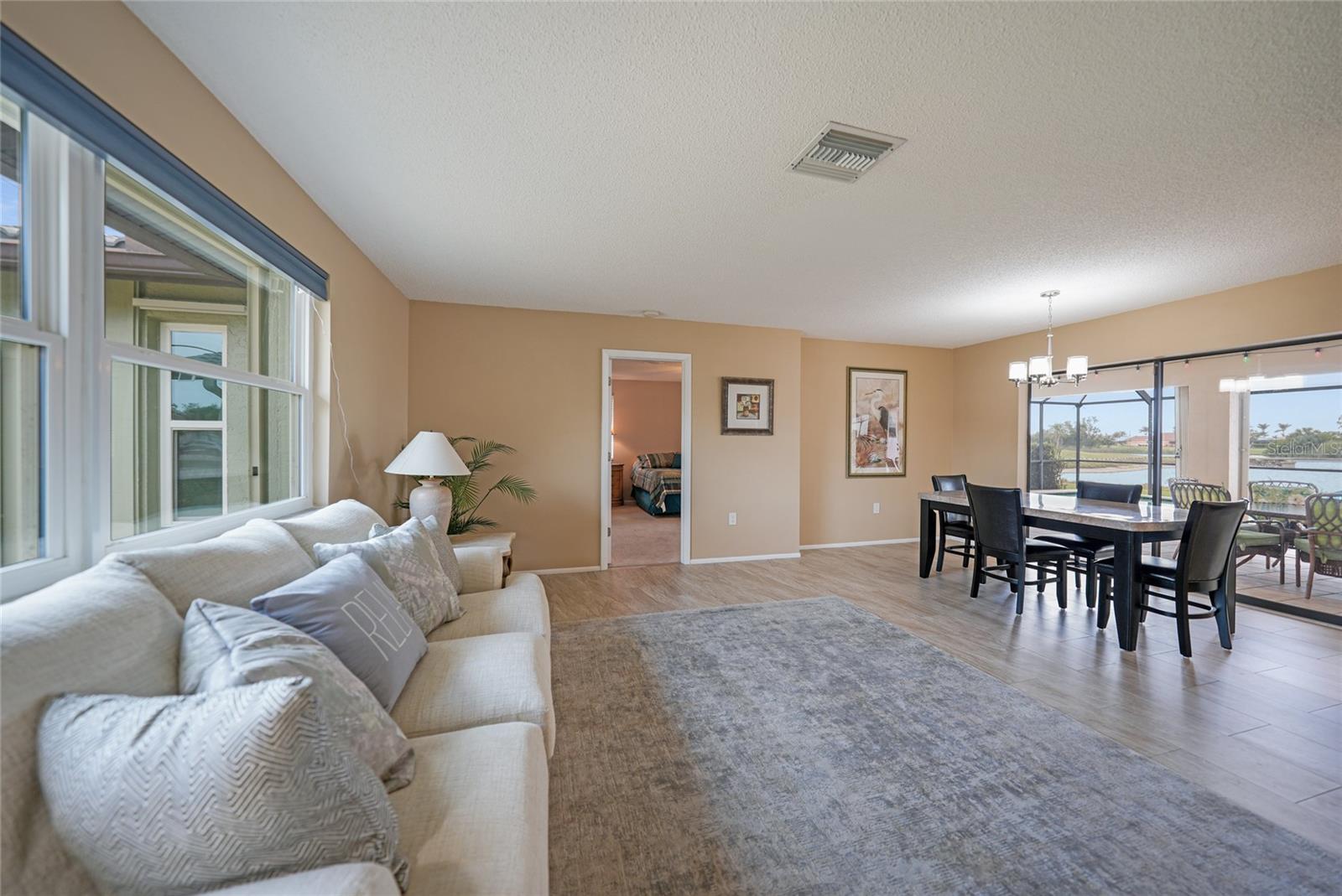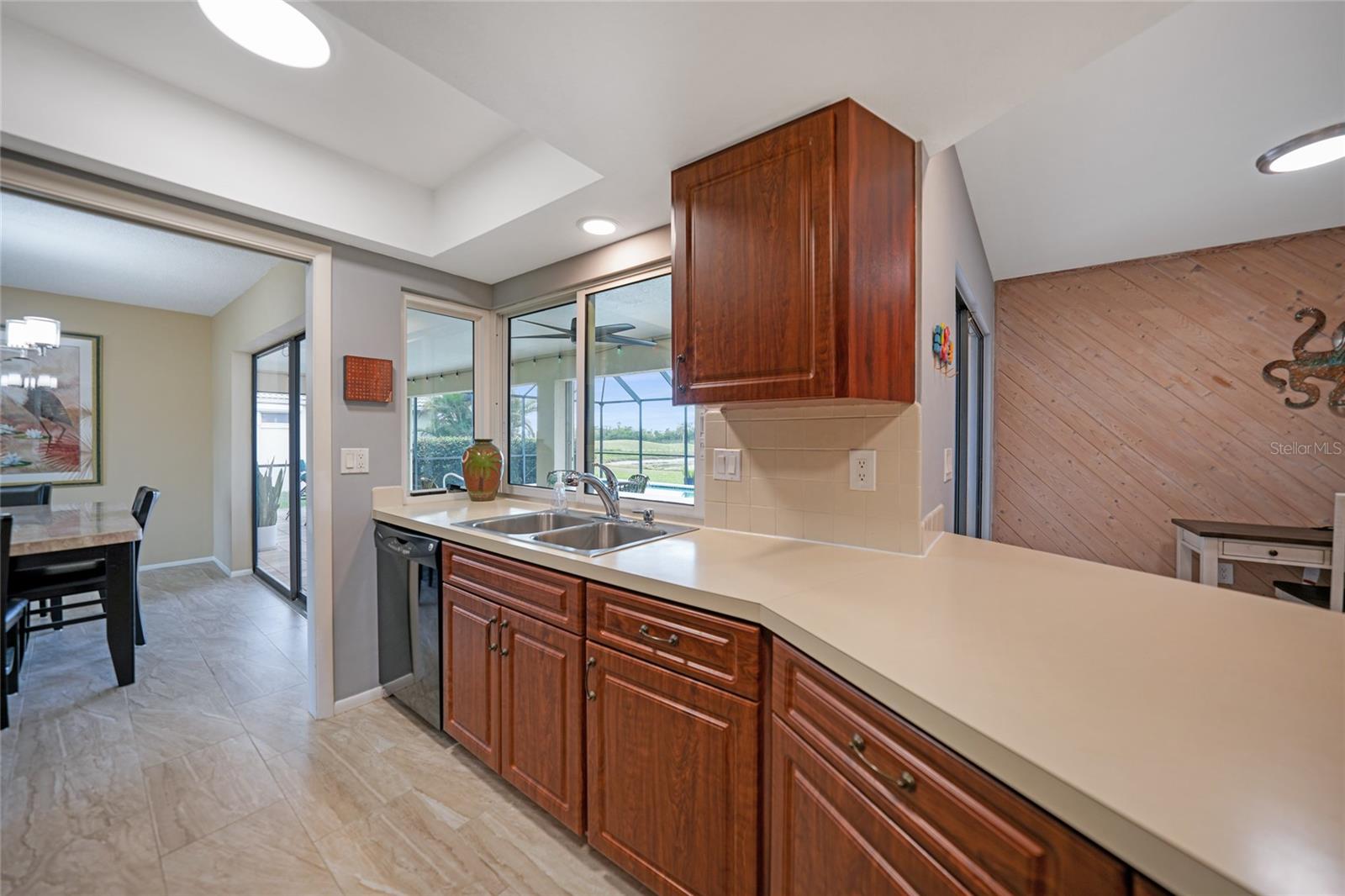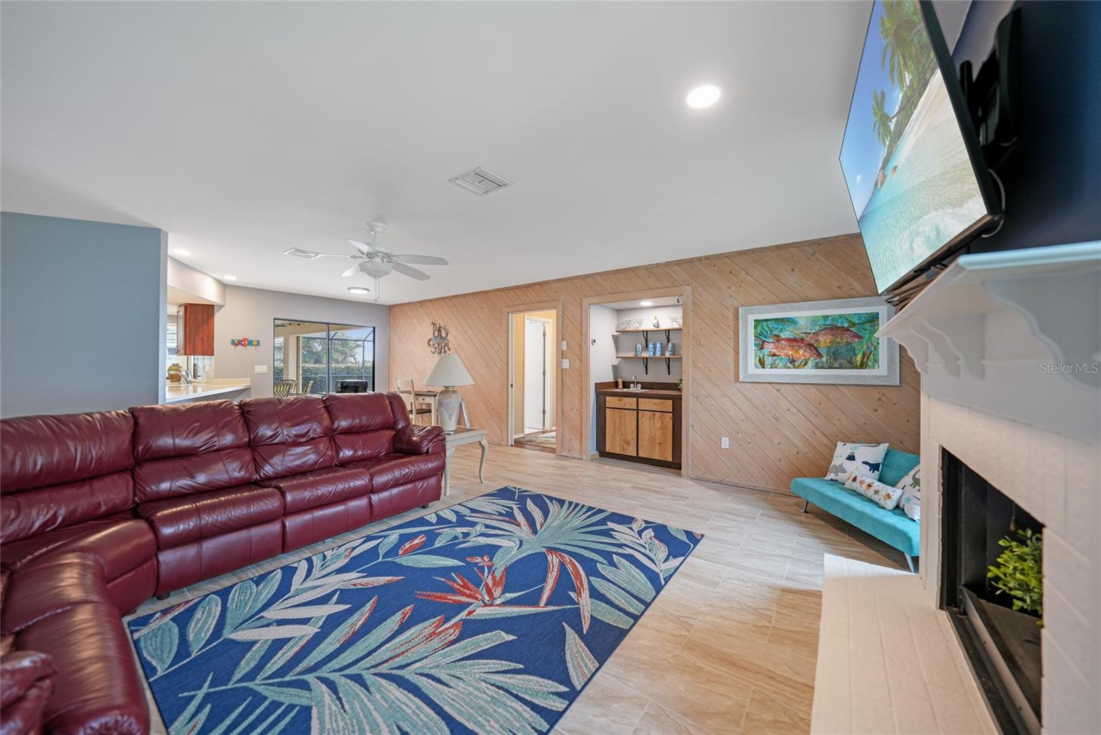 Welcome to Burnt Store Isles, a desirable golf and waterfront community with optional HOA fees. This impeccably maintained 3-bedroom, 2-bath, 2-car garage home offers over 2,200 sq. ft. of living space, featuring a heated saltwater pool and breathtaking waterfront views overlooking the 15th green of Twin Isles Golf Course with NO WORRIES about being hit by golf balls! Recent updates include hurricane shutters, new tile flooring, a new electrical panel with a whole-house surge protector, a sprinkler system, a new pool deck, and fresh interior paint. From the moment you arrive, you’ll be captivated by the home’s curb appeal, with tropical landscaping, a screened front porch, a cement tile roof, and lake views visible from every room. The open-concept layout is ideal for entertaining, with expansive double sliding pocket doors that effortlessly connect the interior to the outdoor lanai, expanding your living space. Tile flooring throughout the main living areas enhances the living and dining rooms. The chef-inspired kitchen boasts ample cabinet and counter space, a closet pantry, a stylish tile backsplash, a dinette area, a full suite of appliances, a convenient pass-thru window to the lanai, and a breakfast bar. The kitchen opens to a cozy family room featuring a decorative wood-paneled accent wall, wet bar, and decorative fireplace. The master suite is a tranquil retreat with private pool access, two walk-in closets, dual vanities, a separate toilet area, and a Roman-style walk-in shower. Guest bedrooms are generously sized, one with pool access, each featuring ceiling fans and built-in closets. They share a full bath with convenient pool access. The dedicated laundry room includes front-load washers and dryers, a utility sink, and extra shelving for storage. Step outside to your upgraded, screened lanai with No-See-Um screening, where a sparkling saltwater heated pool awaits, offering stunning lake views. Perfect for entertaining, relaxing, or dining while watching the picturesque sunset. Enjoy the convenience of being close to top-rated beaches, parks with biking and walking trails, and boat ramps providing access to the Peace & Myakka Rivers, Charlotte Harbor, and the Gulf of Mexico. Historic downtown Punta Gorda and Fishermen’s Village, with charming shops and cafes, are just a short drive away.