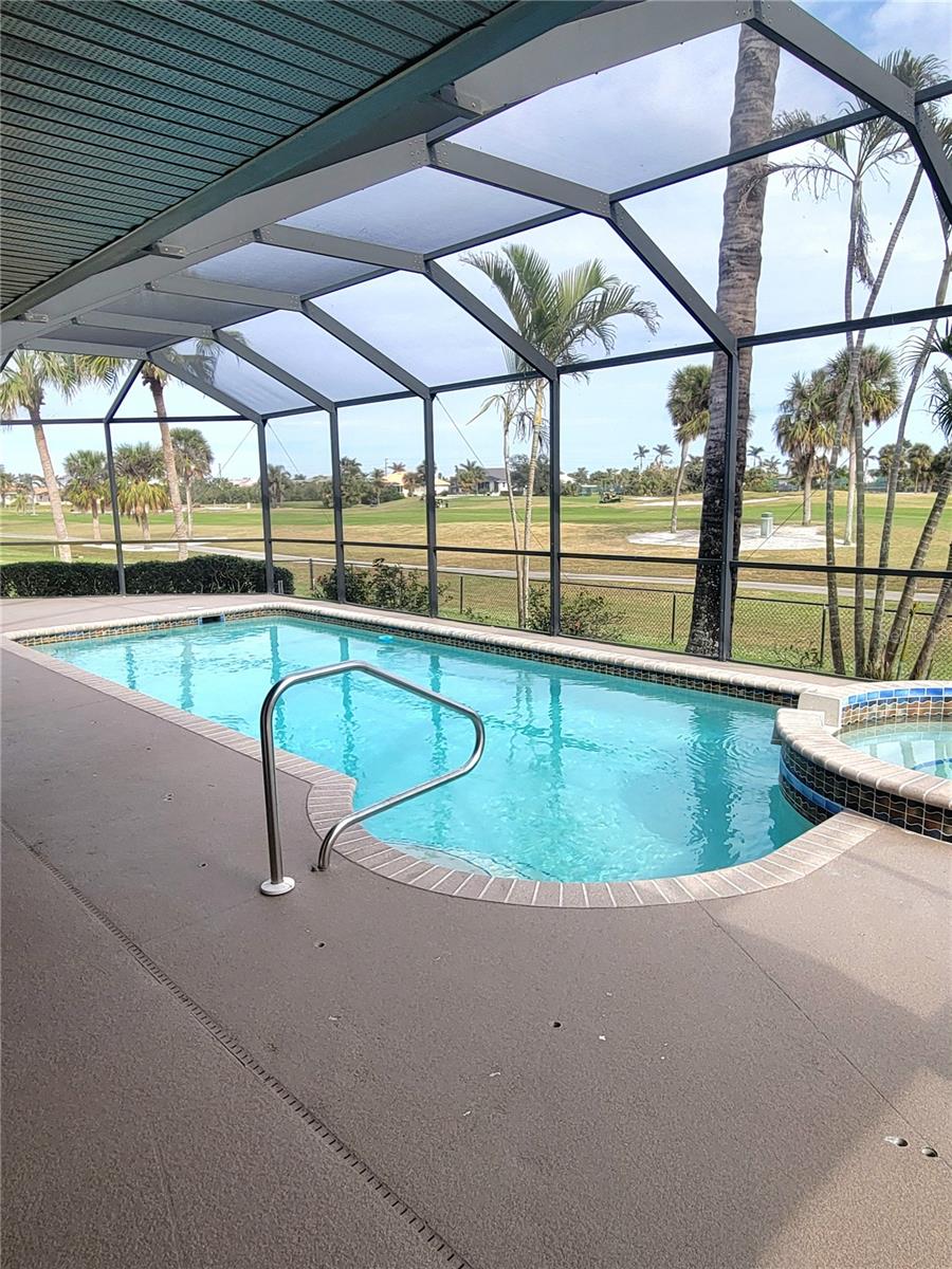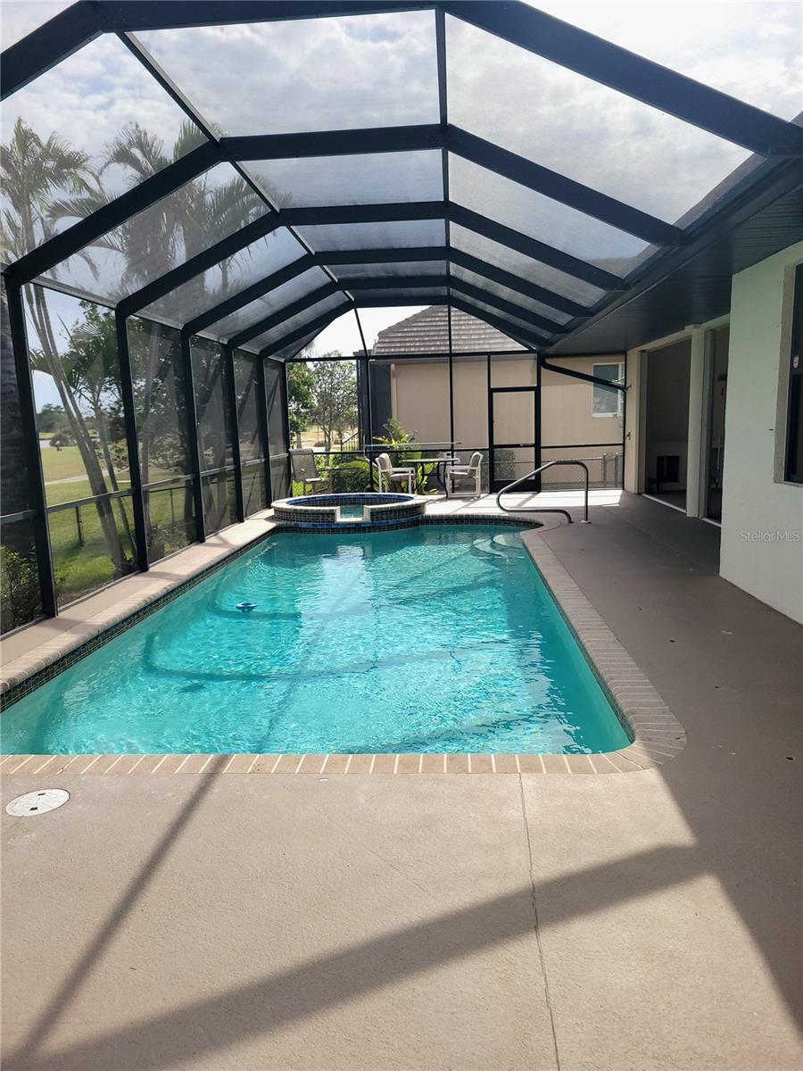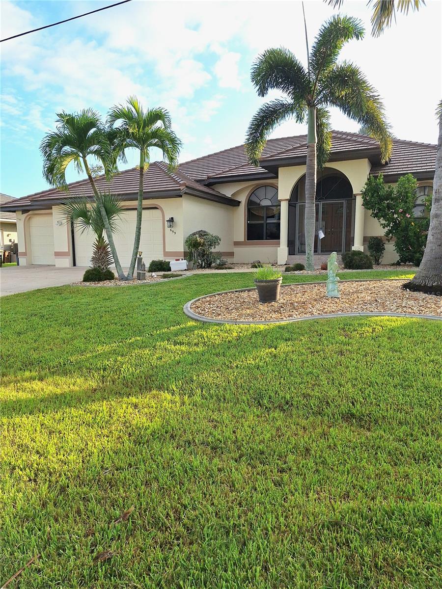 Burnt Store Isles exquisite Prestige custom built 3-bedroom, 2-bathroom, 3 car garage pool home situated near the fifth hole of Twin Isles Golf Course. Enter through the double entry front doors to an open floor plan with cathedral ceilings and spectacular golf course views. This home offers a three car garage, oversized pool, spa and lanai, in ground sprinklers, hurricane shutters, stainless appliances, fenced back yard and a new tile roof in August 2024. There were no damages or flooding from hurricanes Helene or Milton.