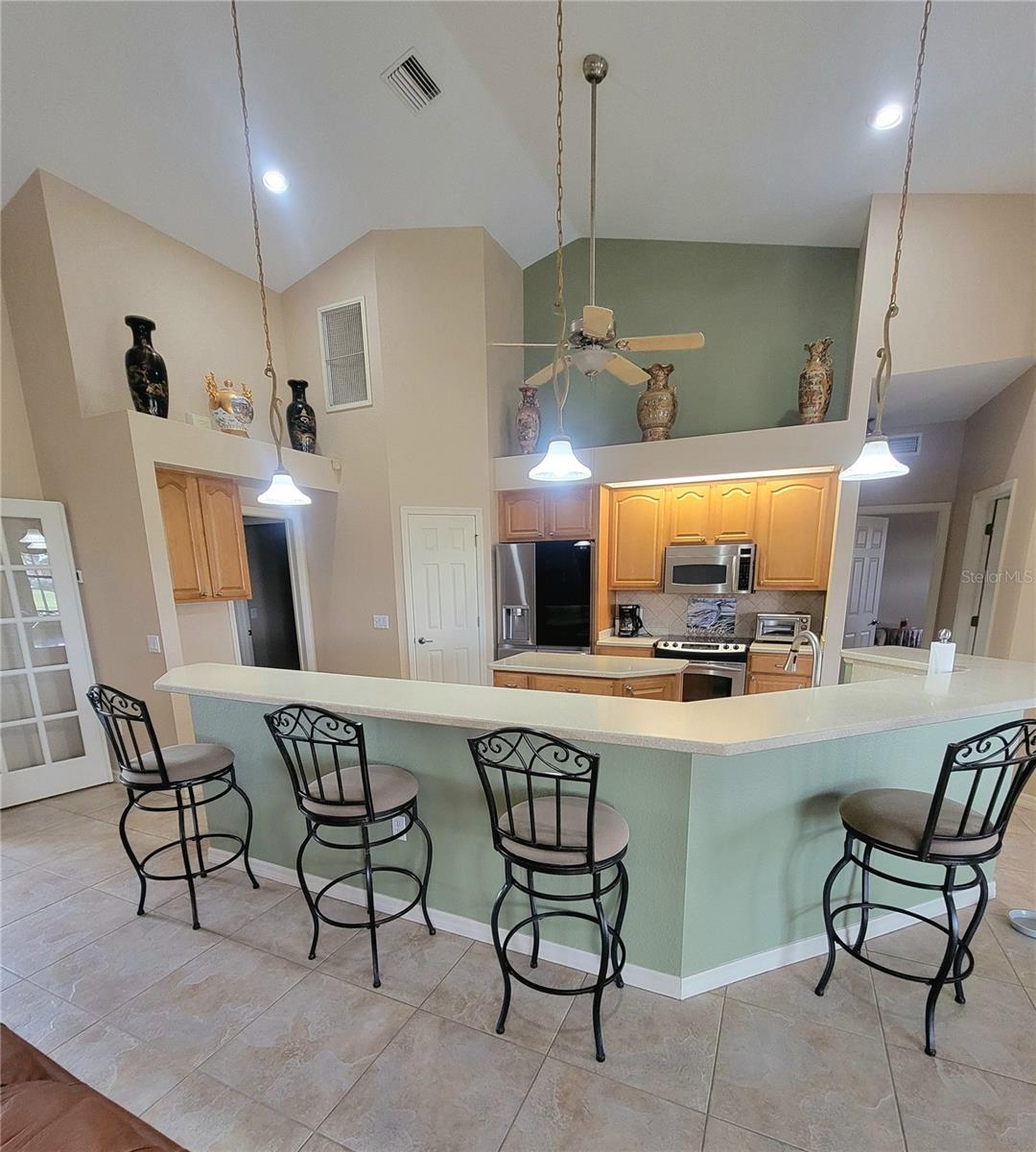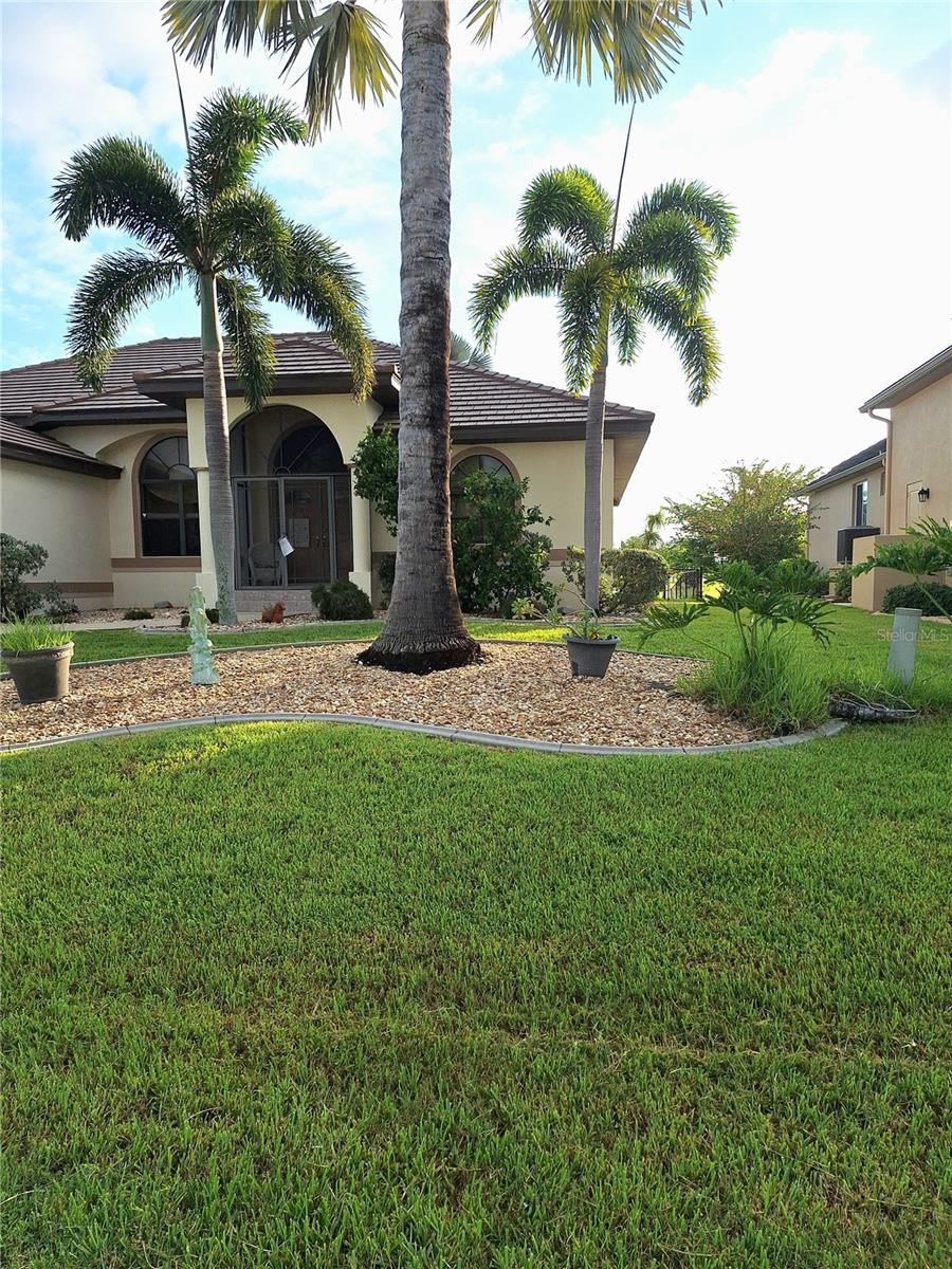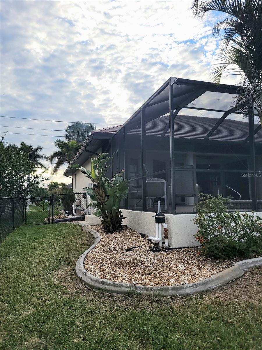 Burnt Store Isles exquisite Prestige custom built 3-bedroom, 2-bathroom, 3 car garage pool home situated near the fifth hole of Twin Isles Golf Course. Enter through the double entry front doors to an open floor plan with cathedral ceilings and spectacular golf course views. This home offers a three car garage, oversized pool, spa and lanai, in ground sprinklers, hurricane shutters, stainless appliances, fenced back yard and a new tile roof in August 2024. There were no damages or flooding from hurricanes Helene or Milton.