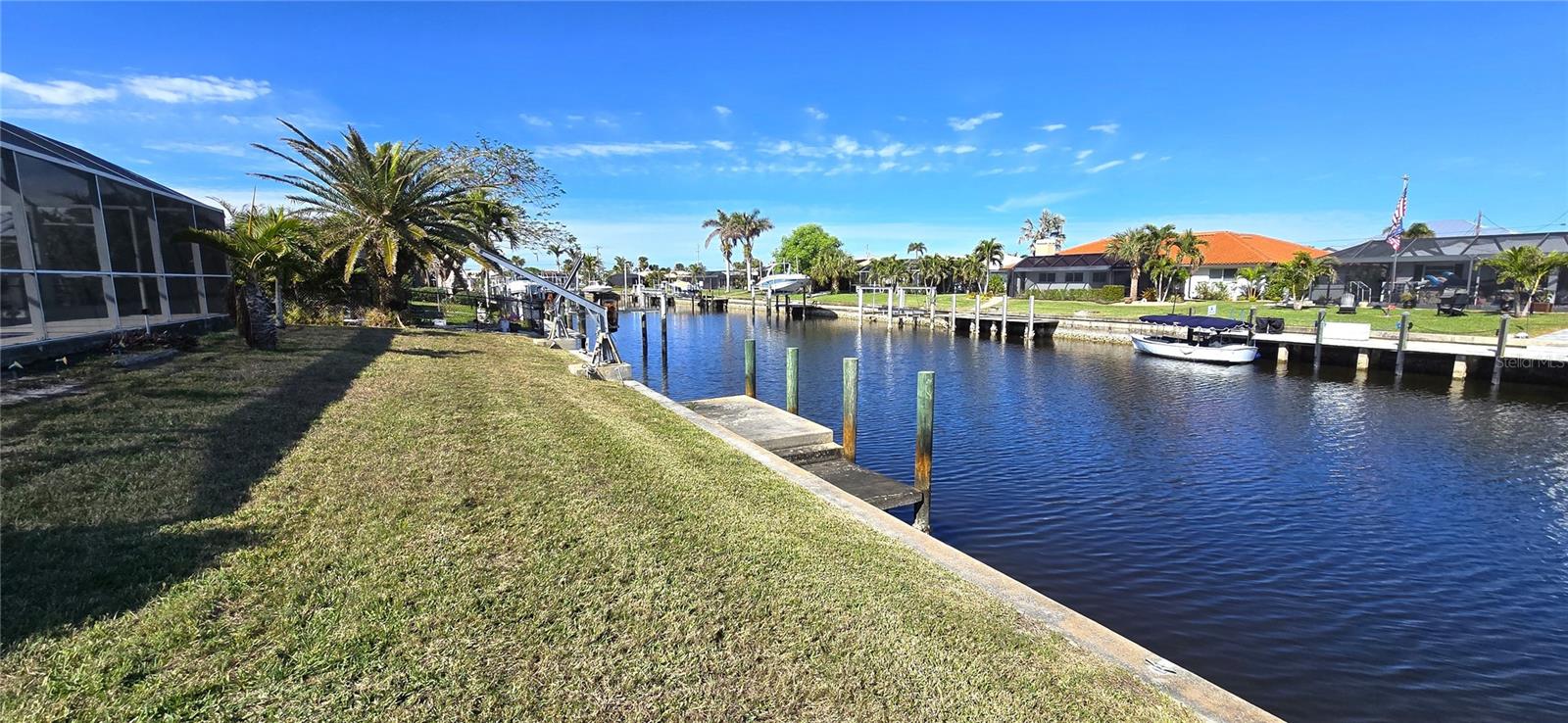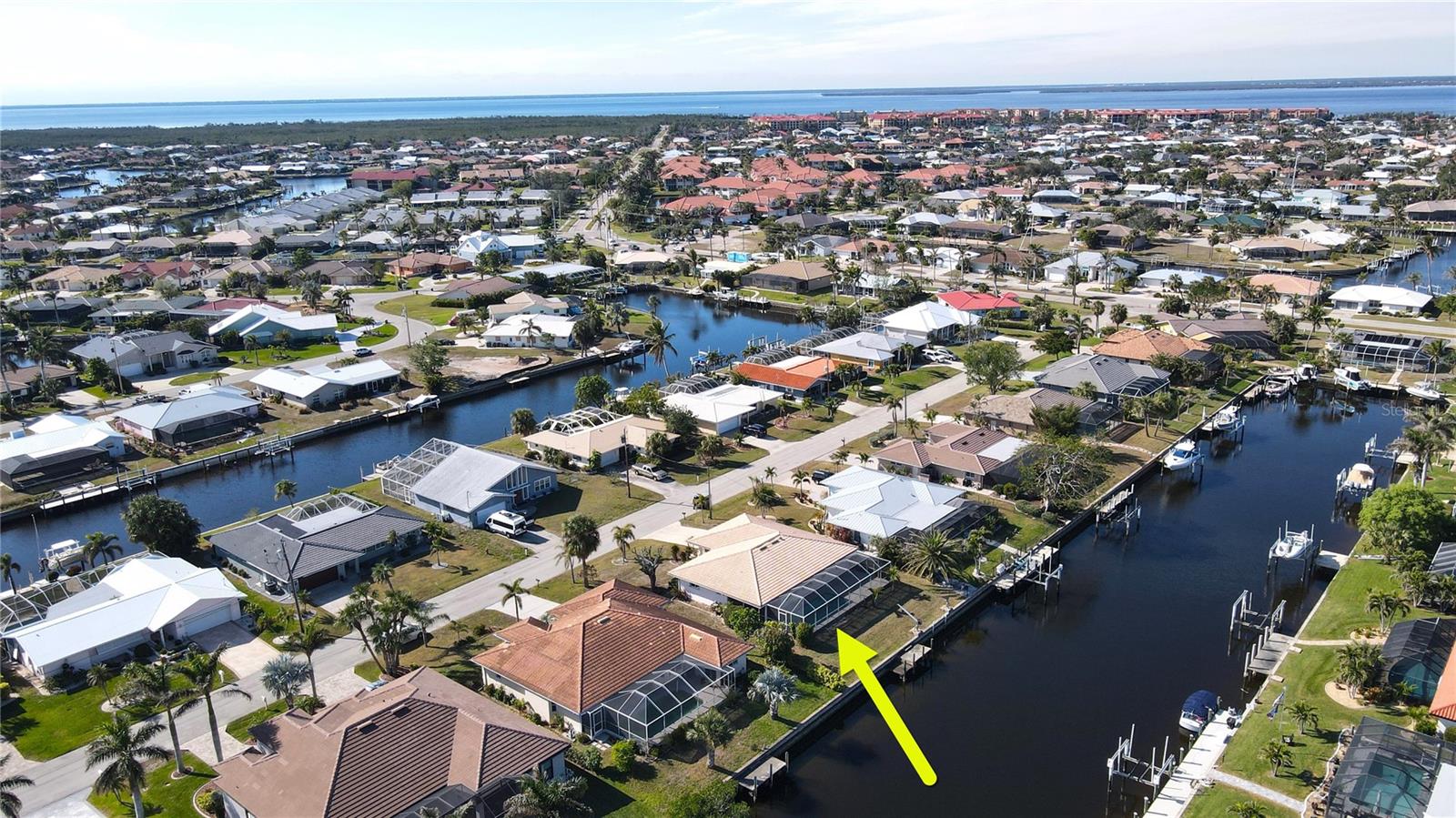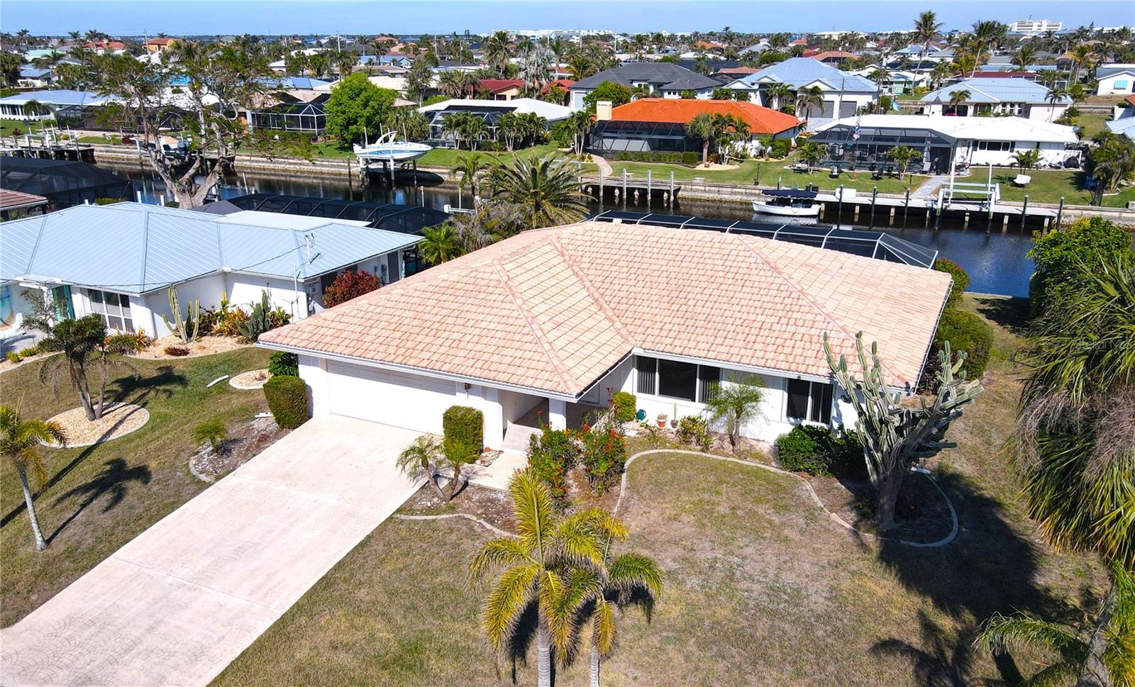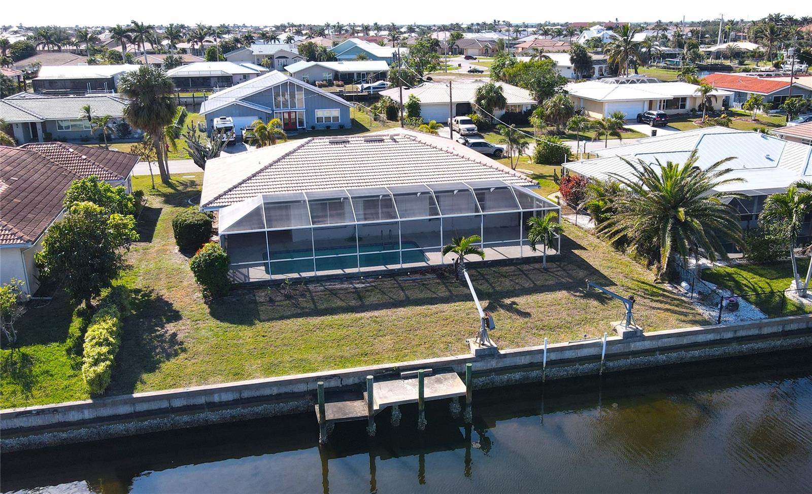 PUNTA GORDA ISLES Waterfront Pool Home with Dock – Affordable Florida Living! Welcome to your slice of paradise! This charming 2-bedroom, 2-bathroom home offers the ultimate Florida lifestyle with a private dock and a stunning oversized pool, all nestled in a desirable neighborhood. While the home needs some updating, it’s an incredible opportunity to customize and make it your own. Tile flooring throughout for easy maintenance. New Electrical Panel and Overhead ManaBlok plumbing system already in place. Interior laundry room with storage. Step outside to enjoy a caged lanai and spacious outdoor living area, perfect for entertaining or relaxing in the oversized newly resurfaced pool. Pool pump is also new. With your boat just steps away in your backyard, adventure on the water is always within reach with access to Peace River, Charlotte Harbor and the Gulf of Mexico. This home is ideally located close to shopping, dining, golf courses, and parks, making it the perfect blend of coastal living and accessibility. This home is storm ready with Hurricane Shutters and reinforced garage door. No water intrusion or storm damage! Don’t miss out on this affordable waterfront gem! ****PLEASE ENJOY THE 3D VIRTUAL TOUR****