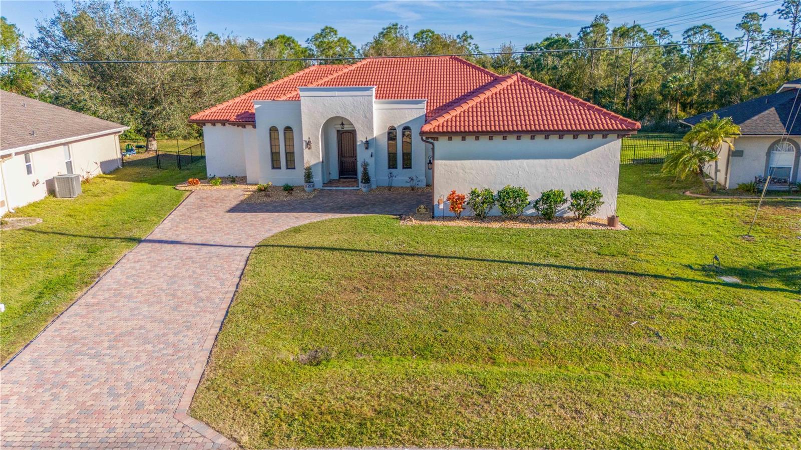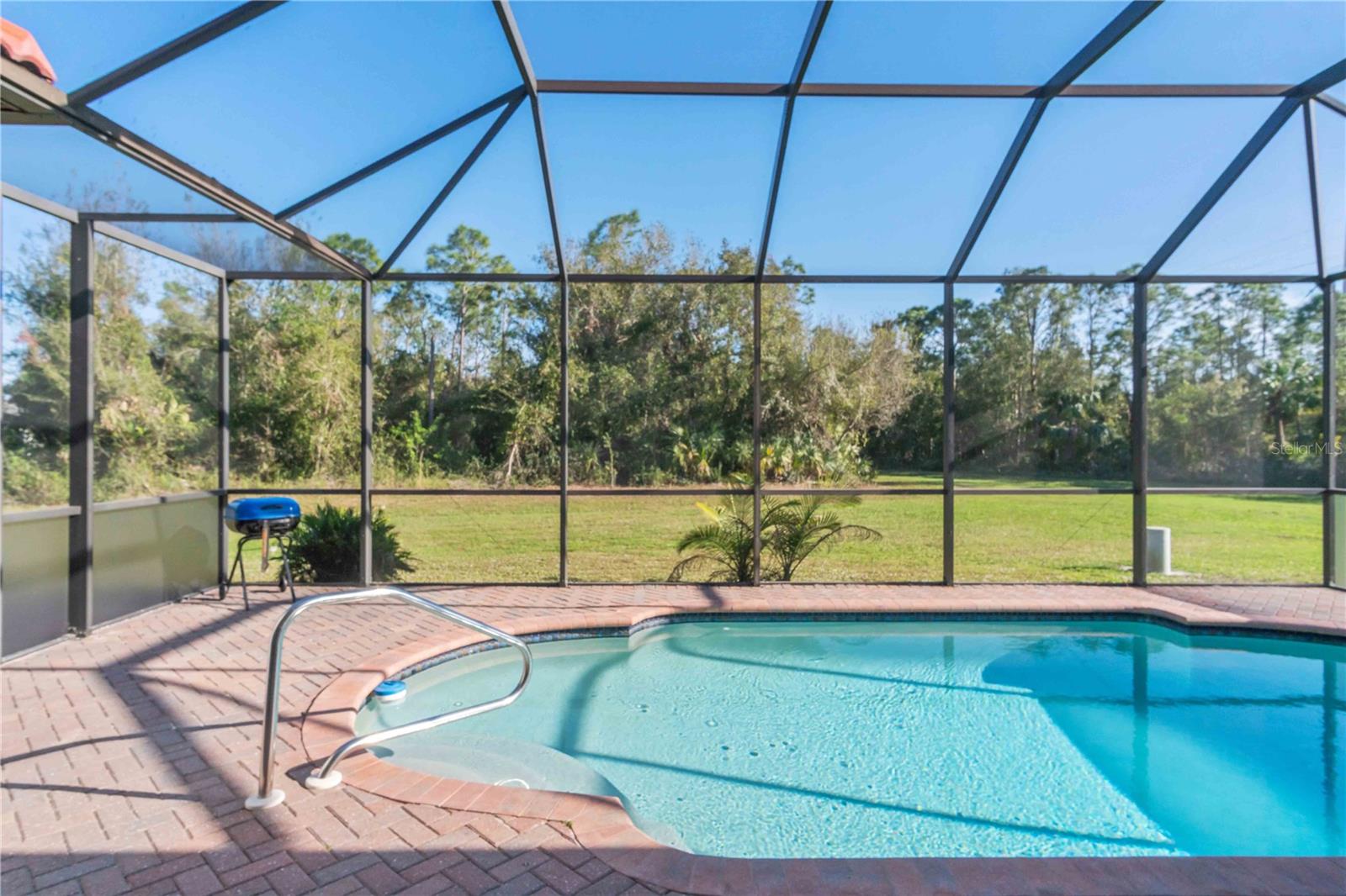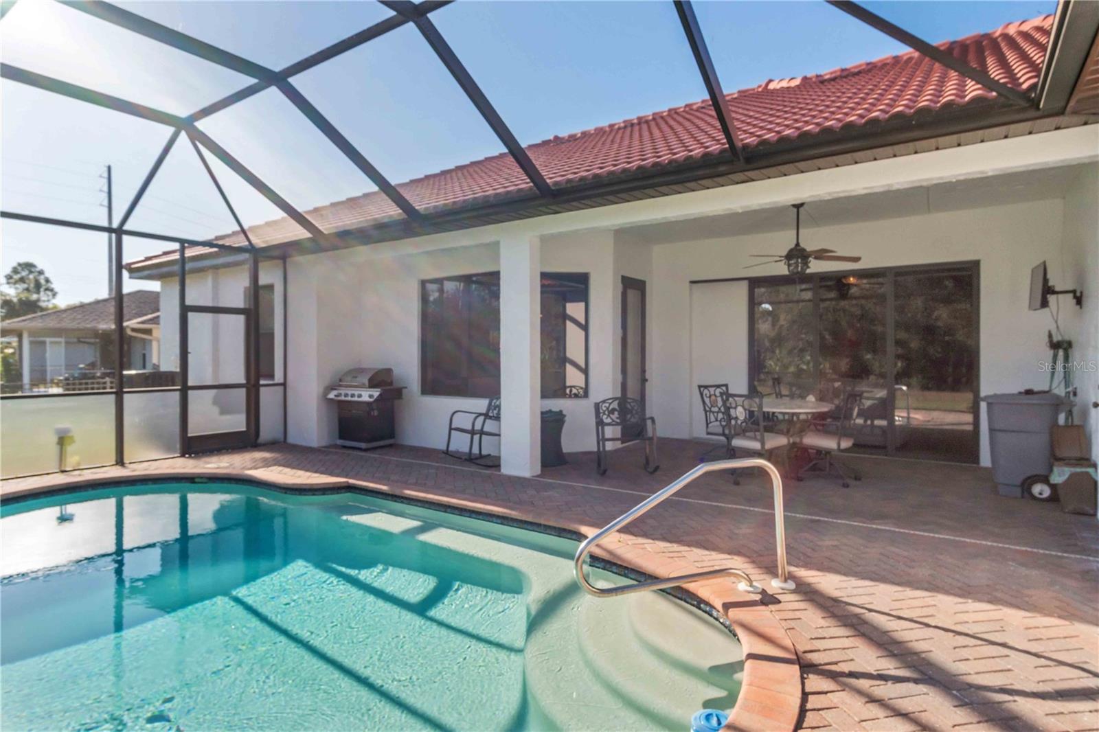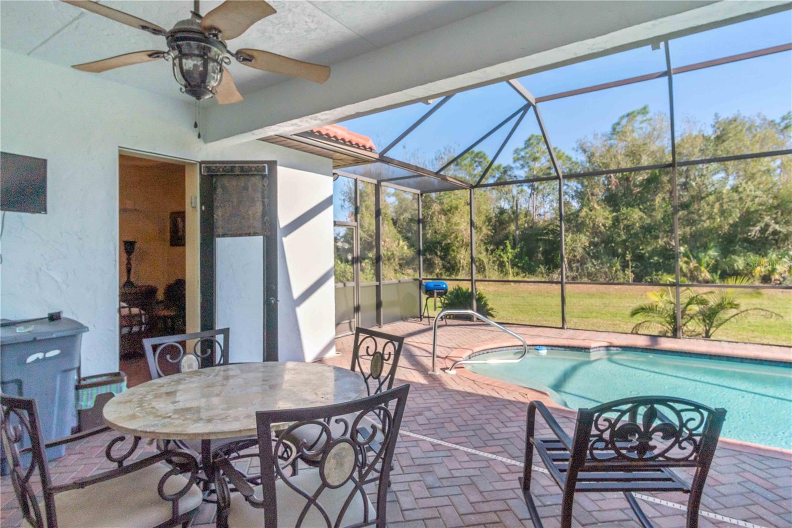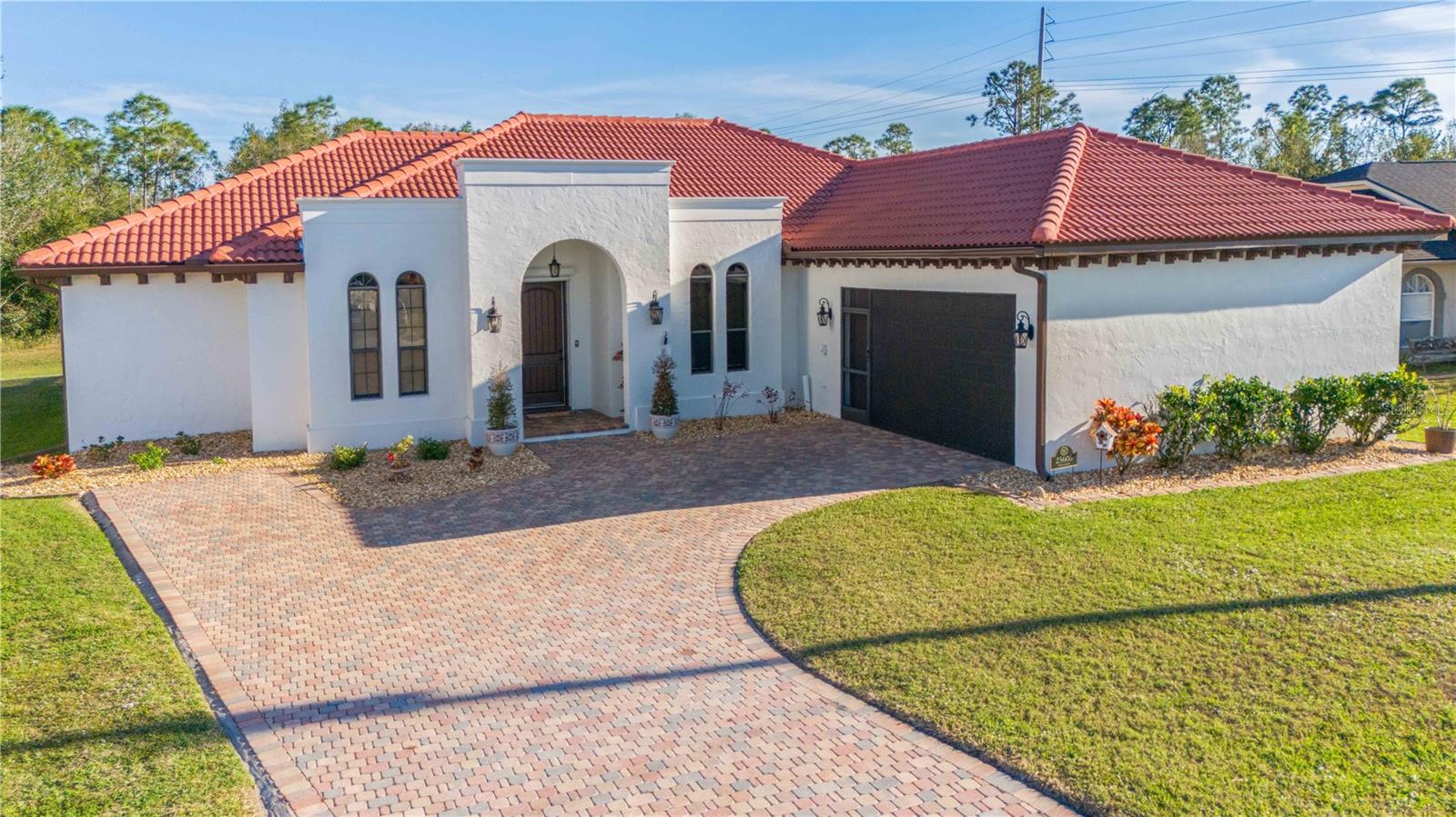 Welcome to your piece of paradise in the highly sought after deed restricted community of Deep Creek. This property is centrally located with nearby dining, shopping, and entertainment along with highway access 5 minutes away and top beach destinations 30 minutes away. No need for flood insurance thanks to the X flood zone rating as well! Upon arriving to this stunningly unique home you will instantly be captivated by the gorgeous curb appeal and the interior is even more impressive. The BRAND NEW tile roof was installed in Feb 2024 and never had any known leaks prior to its replacement The front door has an automatic roll down screen allowing easy access to the home with the option to allow fresh air in.. Once inside the home you will be greeted by tall ceilings and custom details everywhere. The one of a kind flooring is Rosso Natural Travertine believe to be imported from Italy and laid in a Versailles tile pattern. The living and dining area are both well sized and the kitchen features granite countertops and solid wood cabinets. There is an eat in kitchen area overlooking the pool through an aquarium style glass window and multiple nearby closet pantries. The home also has an enclosed den/study that could easily be utilized as a 4th bedroom. The primary bedroom is on the left side of the home with lots of storage room, a walk in shower, garden tub, and accent features. The 2nd and 3rd bedroom along with the guest bathroom are on the opposite side of the home with one of the bedrooms currently being used as a private movie theater room with projector, receiver, and speakers. This room could be left how it is allowing the next owner to enjoy movie nights themselves or could be converted to a traditional bedroom after closing. The interior laundry room along with the garage are both oversized and the garage has a professional AC system to keep it cool along with a whole house generator that can be included with the sale. The attic above the garage also has additional storage and the garage door has a full screen as it is currently used as an under air game room (but sqft was not added to living sqft in listing) The style of the home flows to the lanai with pavers that match the overall color scheme and a large pool that overlooks a private preserve eliminating the possibility of future homes behind you. Unique homes like this don’t hit the market often and these sellers have enjoyed the property for nearly 2 decades while keeping it well maintained. Contact your agent today for a private showing!