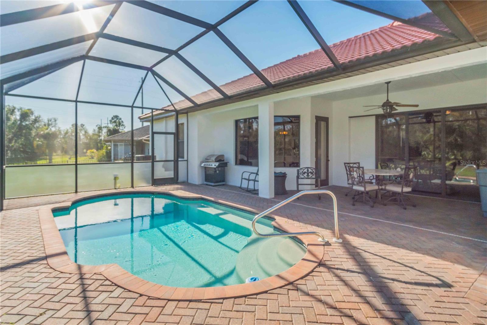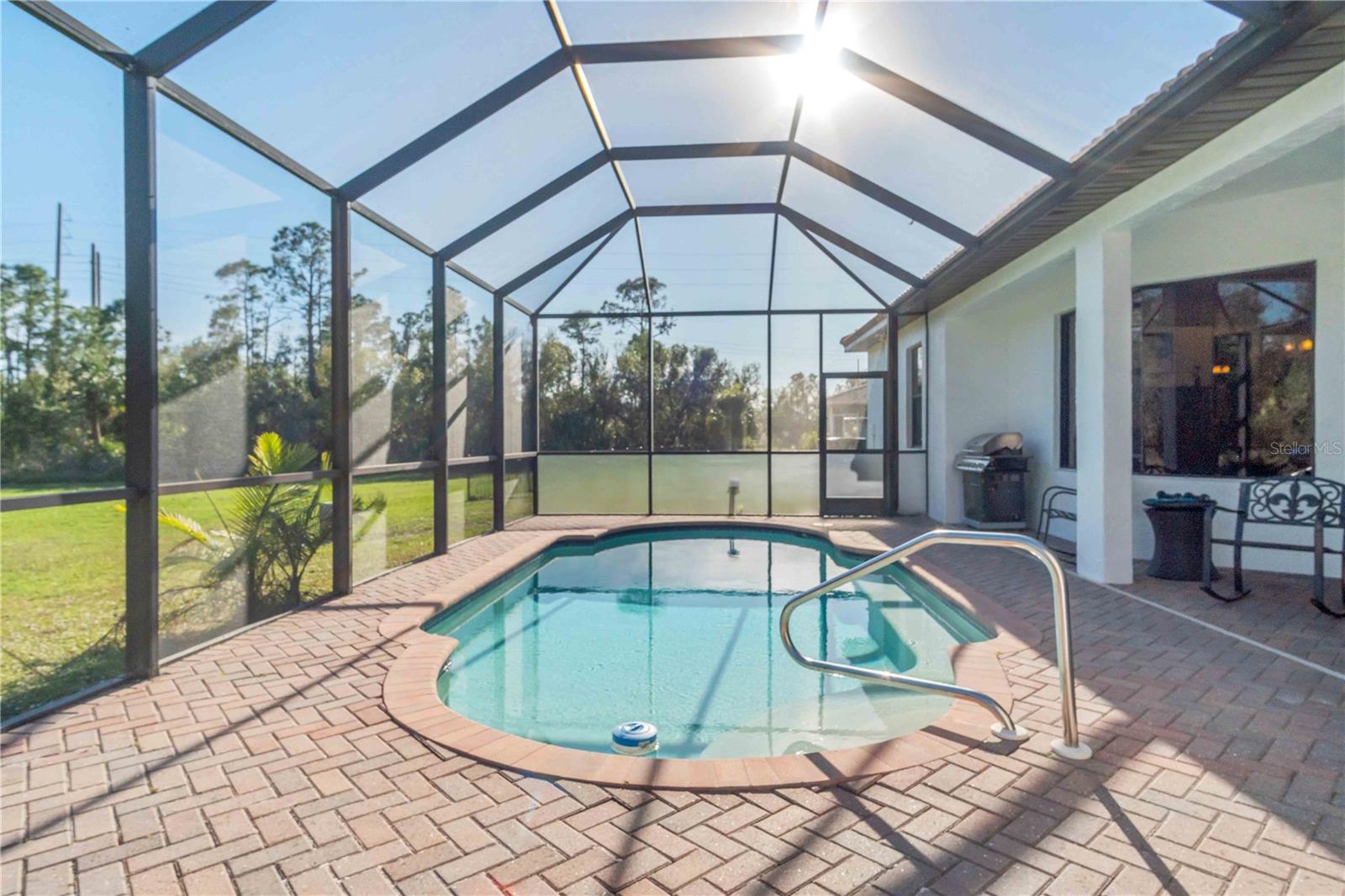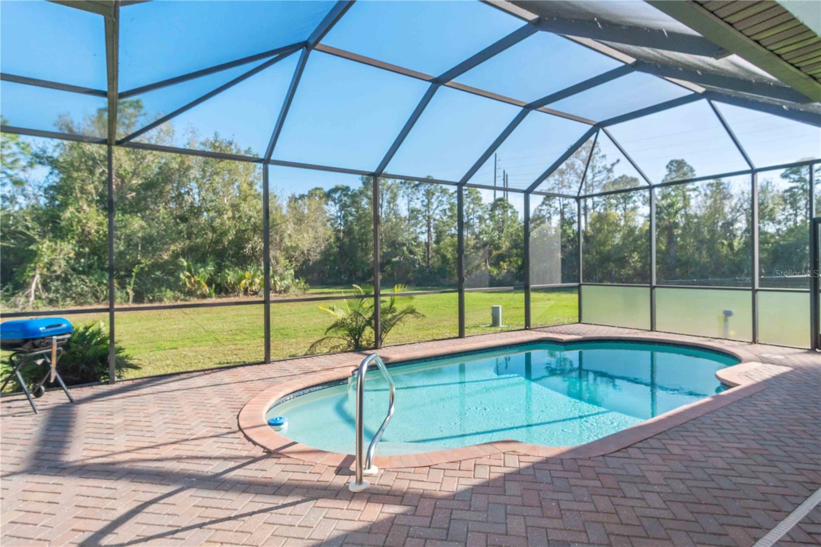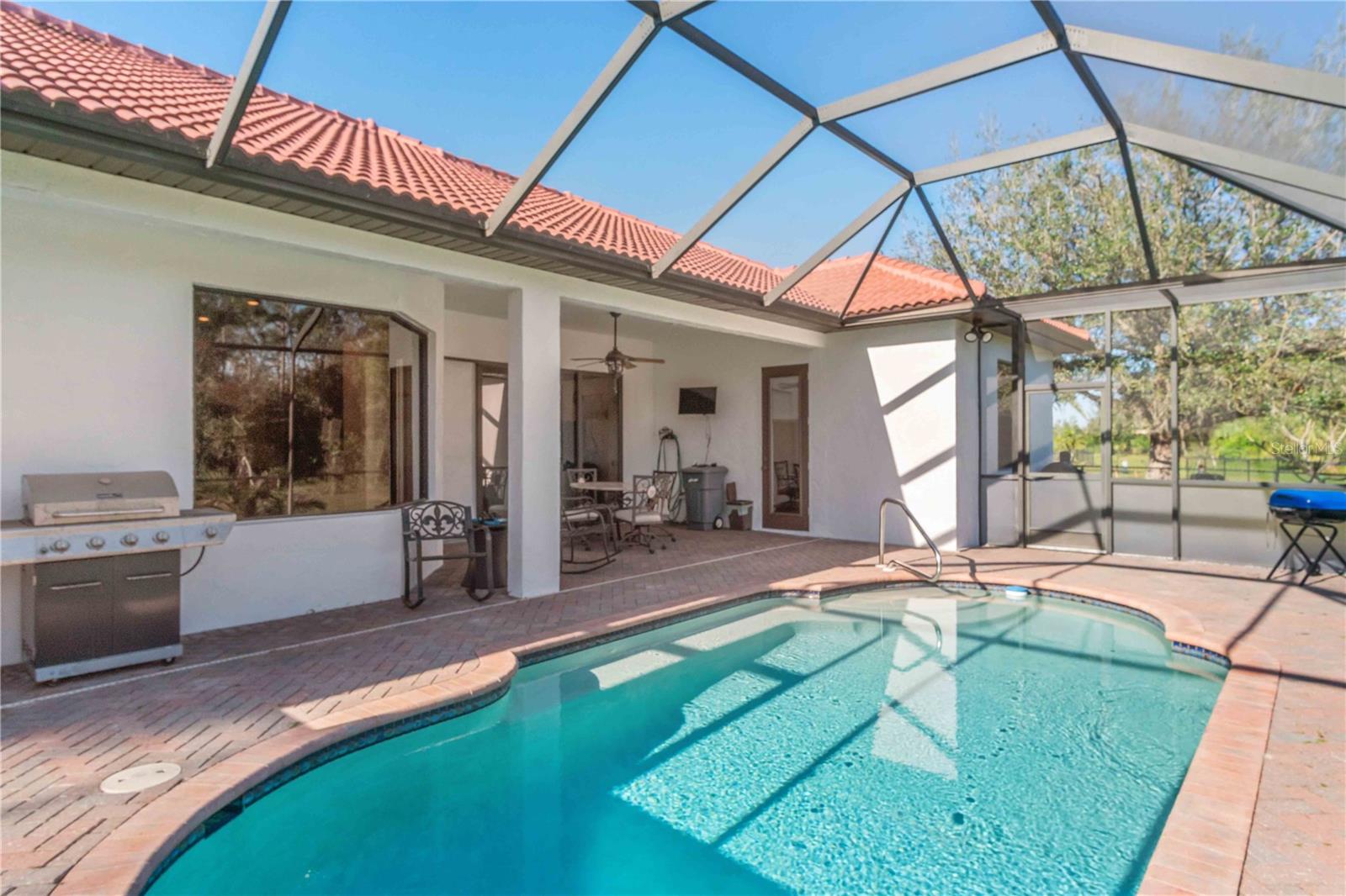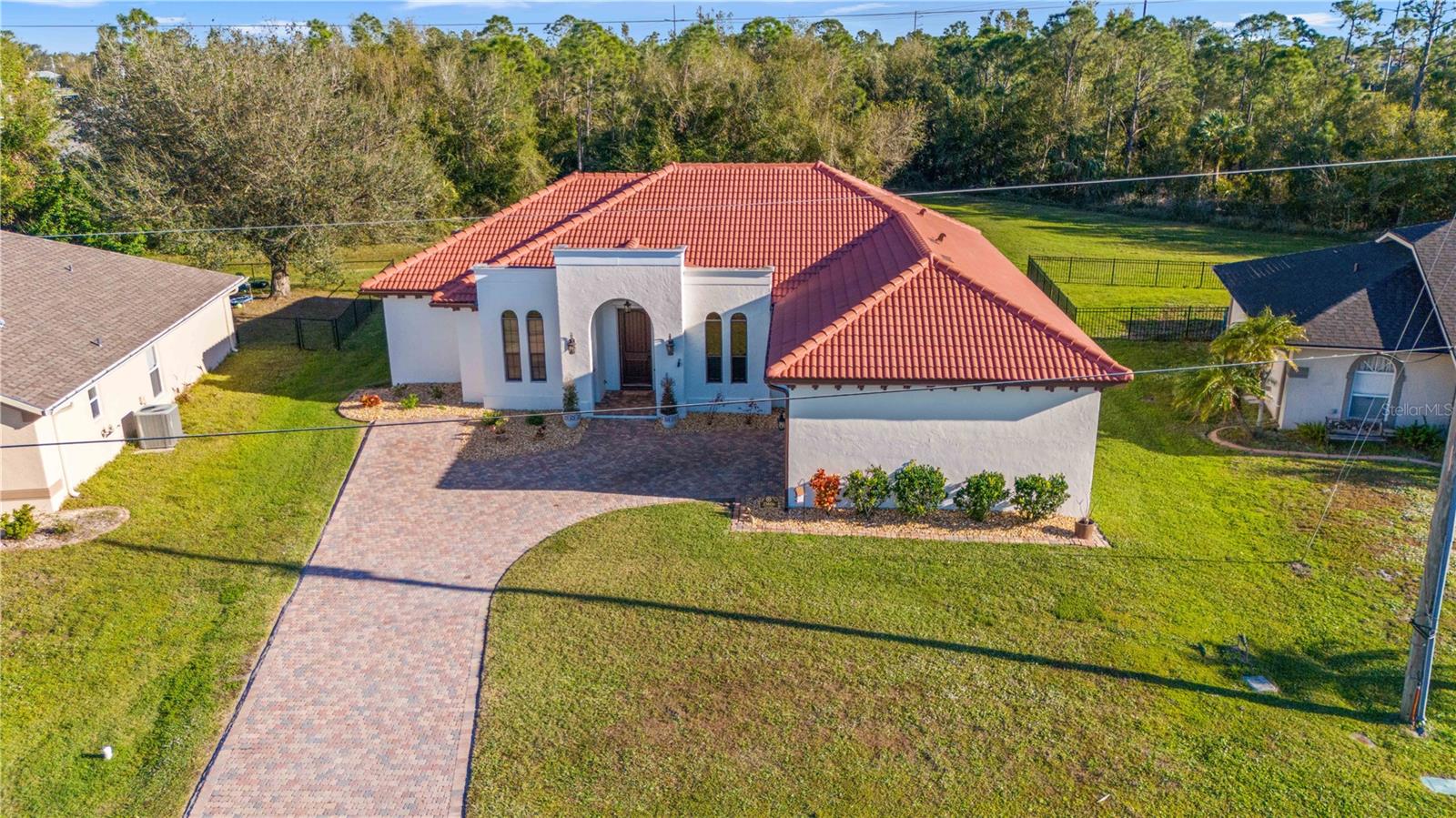 Welcome to your piece of paradise in the highly sought after deed restricted community of Deep Creek. This property is centrally located with nearby dining, shopping, and entertainment along with highway access 5 minutes away and top beach destinations 30 minutes away. No need for flood insurance thanks to the X flood zone rating as well! Upon arriving to this stunningly unique home you will instantly be captivated by the gorgeous curb appeal and the interior is even more impressive. The BRAND NEW tile roof was installed in Feb 2024 and never had any known leaks prior to its replacement The front door has an automatic roll down screen allowing easy access to the home with the option to allow fresh air in.. Once inside the home you will be greeted by tall ceilings and custom details everywhere. The one of a kind flooring is Rosso Natural Travertine believe to be imported from Italy and laid in a Versailles tile pattern. The living and dining area are both well sized and the kitchen features granite countertops and solid wood cabinets. There is an eat in kitchen area overlooking the pool through an aquarium style glass window and multiple nearby closet pantries. The home also has an enclosed den/study that could easily be utilized as a 4th bedroom. The primary bedroom is on the left side of the home with lots of storage room, a walk in shower, garden tub, and accent features. The 2nd and 3rd bedroom along with the guest bathroom are on the opposite side of the home with one of the bedrooms currently being used as a private movie theater room with projector, receiver, and speakers. This room could be left how it is allowing the next owner to enjoy movie nights themselves or could be converted to a traditional bedroom after closing. The interior laundry room along with the garage are both oversized and the garage has a professional AC system to keep it cool along with a whole house generator that can be included with the sale. The attic above the garage also has additional storage and the garage door has a full screen as it is currently used as an under air game room (but sqft was not added to living sqft in listing) The style of the home flows to the lanai with pavers that match the overall color scheme and a large pool that overlooks a private preserve eliminating the possibility of future homes behind you. Unique homes like this don’t hit the market often and these sellers have enjoyed the property for nearly 2 decades while keeping it well maintained. Contact your agent today for a private showing!