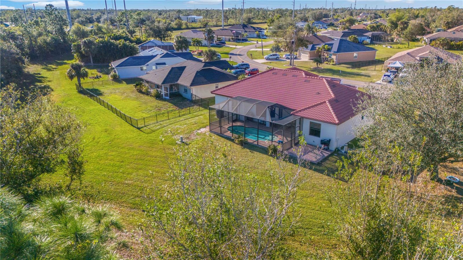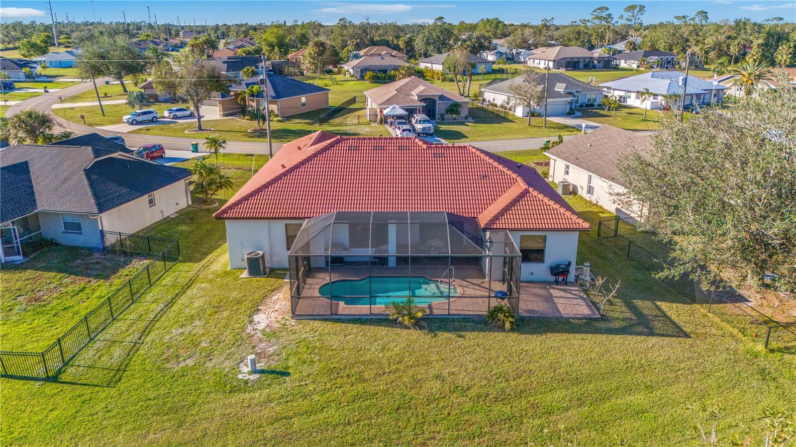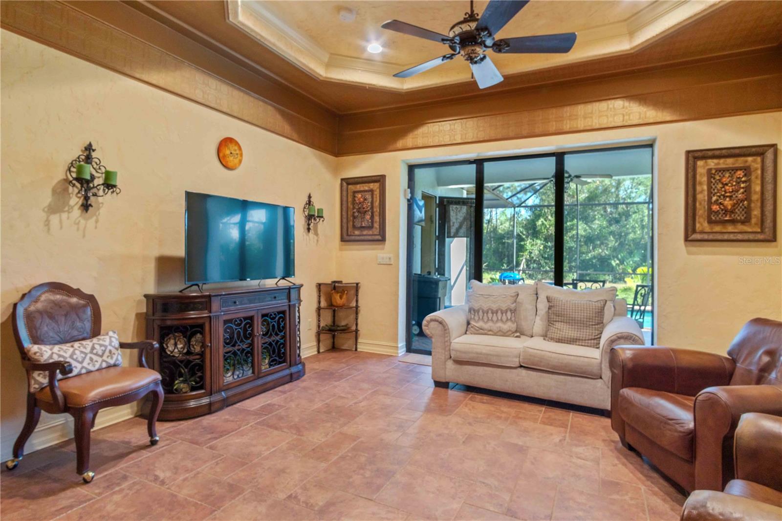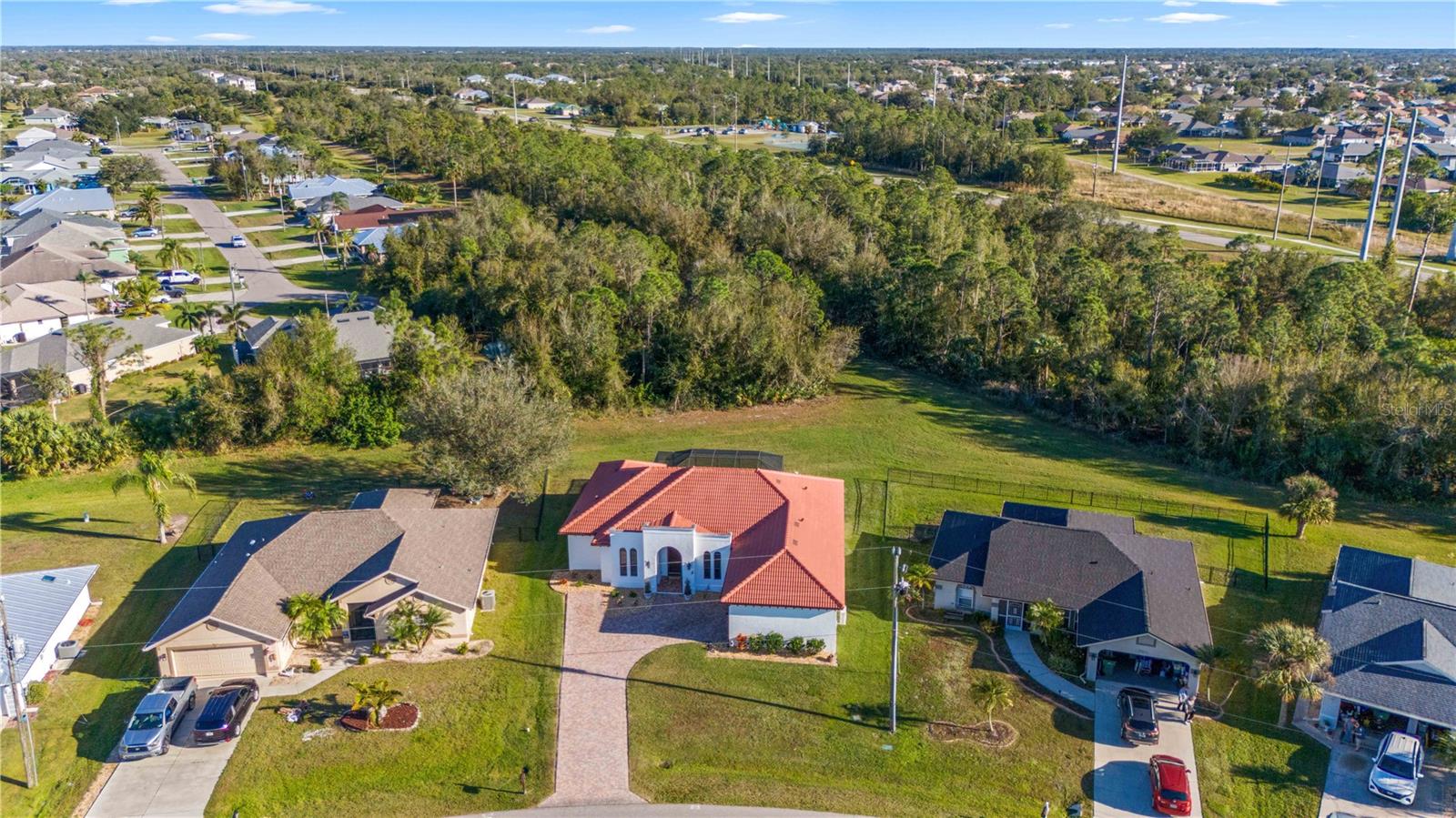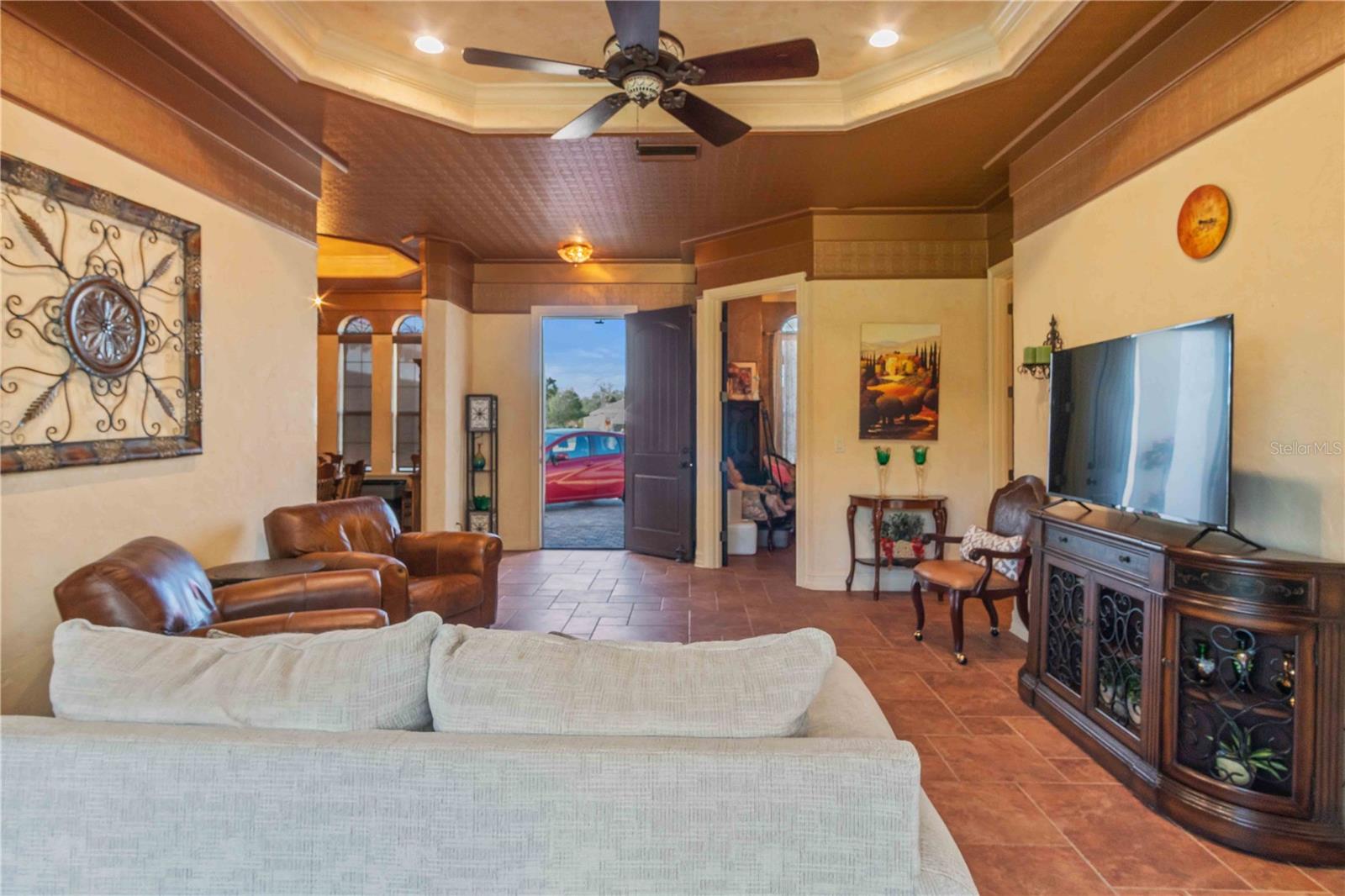 Welcome to your piece of paradise in the highly sought after deed restricted community of Deep Creek. This property is centrally located with nearby dining, shopping, and entertainment along with highway access 5 minutes away and top beach destinations 30 minutes away. No need for flood insurance thanks to the X flood zone rating as well! Upon arriving to this stunningly unique home you will instantly be captivated by the gorgeous curb appeal and the interior is even more impressive. The BRAND NEW tile roof was installed in Feb 2024 and never had any known leaks prior to its replacement The front door has an automatic roll down screen allowing easy access to the home with the option to allow fresh air in.. Once inside the home you will be greeted by tall ceilings and custom details everywhere. The one of a kind flooring is Rosso Natural Travertine believe to be imported from Italy and laid in a Versailles tile pattern. The living and dining area are both well sized and the kitchen features granite countertops and solid wood cabinets. There is an eat in kitchen area overlooking the pool through an aquarium style glass window and multiple nearby closet pantries. The home also has an enclosed den/study that could easily be utilized as a 4th bedroom. The primary bedroom is on the left side of the home with lots of storage room, a walk in shower, garden tub, and accent features. The 2nd and 3rd bedroom along with the guest bathroom are on the opposite side of the home with one of the bedrooms currently being used as a private movie theater room with projector, receiver, and speakers. This room could be left how it is allowing the next owner to enjoy movie nights themselves or could be converted to a traditional bedroom after closing. The interior laundry room along with the garage are both oversized and the garage has a professional AC system to keep it cool along with a whole house generator that can be included with the sale. The attic above the garage also has additional storage and the garage door has a full screen as it is currently used as an under air game room (but sqft was not added to living sqft in listing) The style of the home flows to the lanai with pavers that match the overall color scheme and a large pool that overlooks a private preserve eliminating the possibility of future homes behind you. Unique homes like this don’t hit the market often and these sellers have enjoyed the property for nearly 2 decades while keeping it well maintained. Contact your agent today for a private showing!