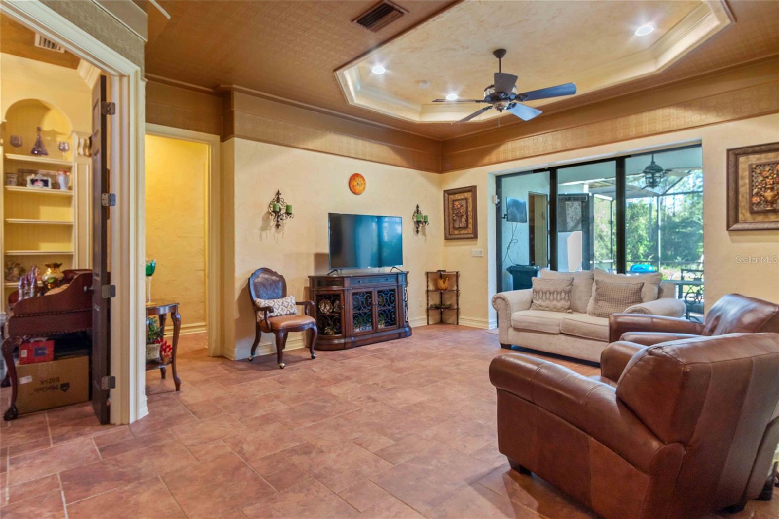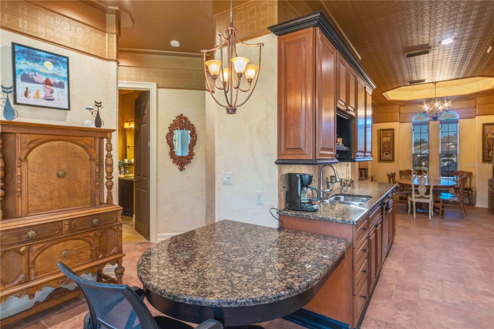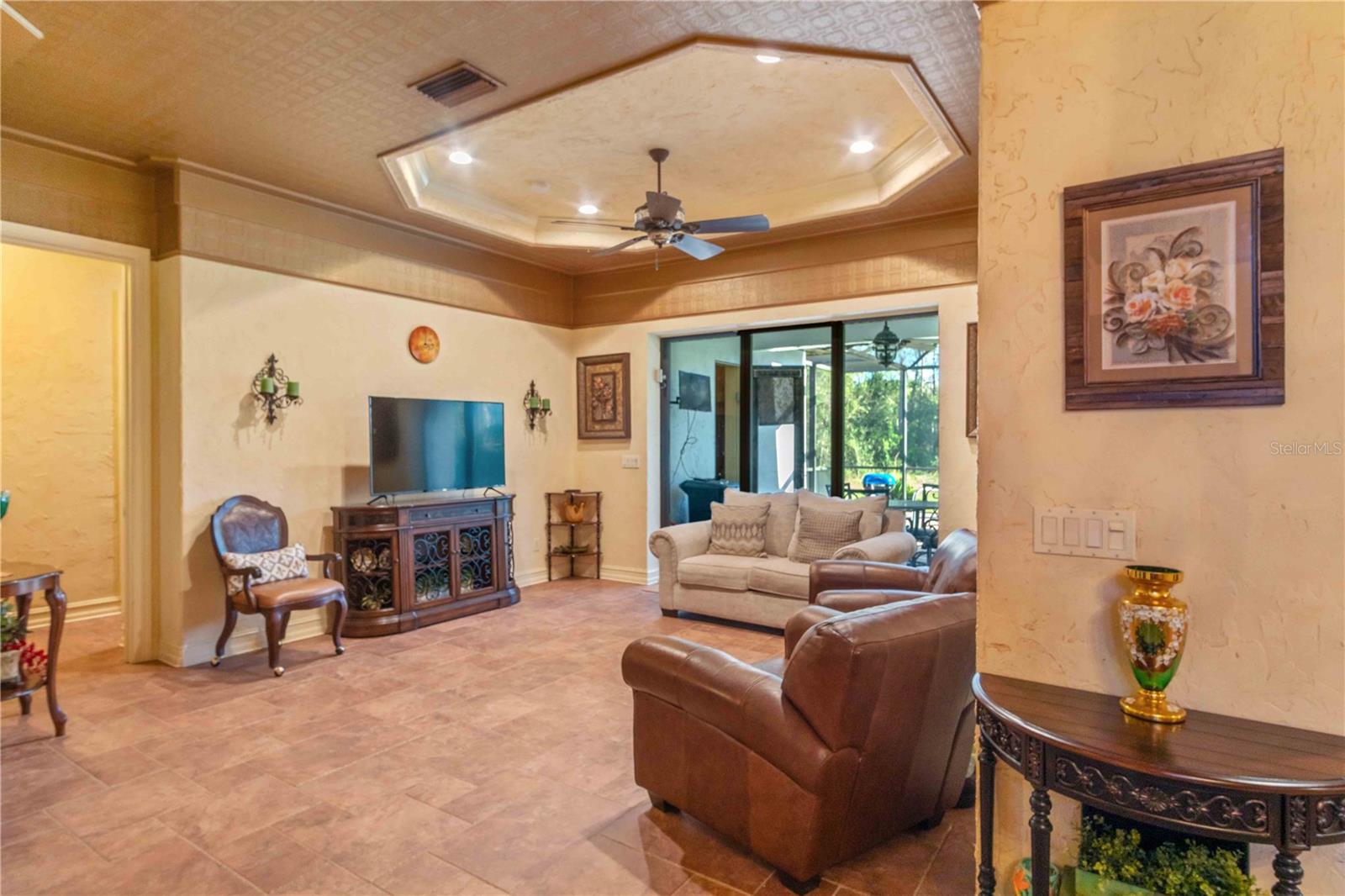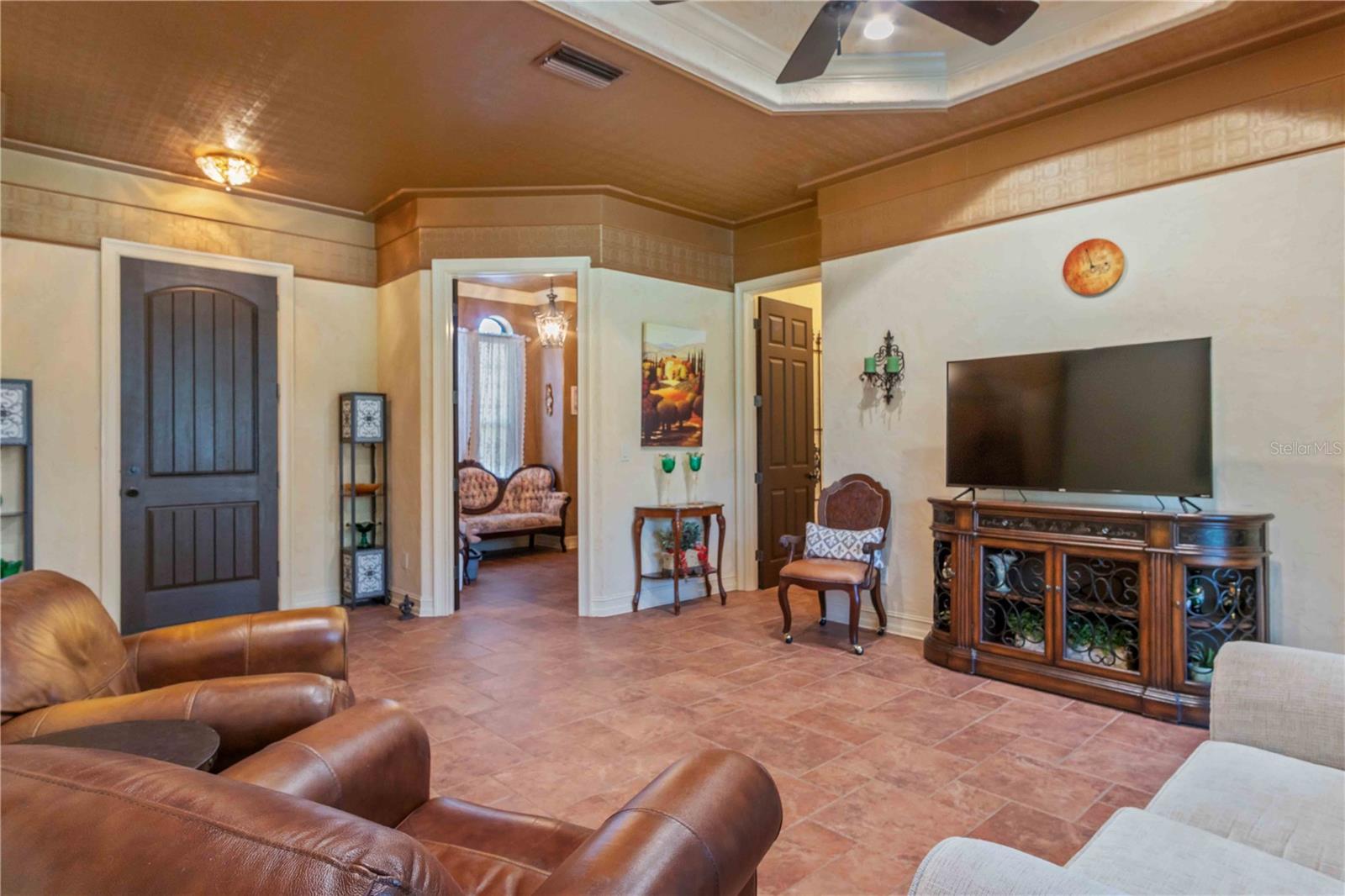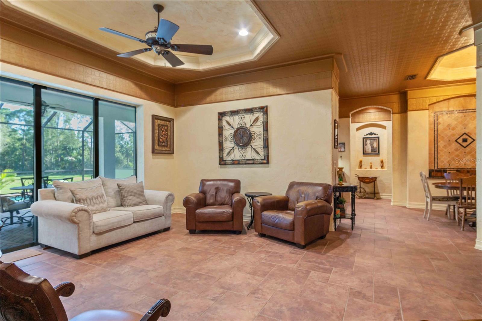 Welcome to your piece of paradise in the highly sought after deed restricted community of Deep Creek. This property is centrally located with nearby dining, shopping, and entertainment along with highway access 5 minutes away and top beach destinations 30 minutes away. No need for flood insurance thanks to the X flood zone rating as well! Upon arriving to this stunningly unique home you will instantly be captivated by the gorgeous curb appeal and the interior is even more impressive. The BRAND NEW tile roof was installed in Feb 2024 and never had any known leaks prior to its replacement The front door has an automatic roll down screen allowing easy access to the home with the option to allow fresh air in.. Once inside the home you will be greeted by tall ceilings and custom details everywhere. The one of a kind flooring is Rosso Natural Travertine believe to be imported from Italy and laid in a Versailles tile pattern. The living and dining area are both well sized and the kitchen features granite countertops and solid wood cabinets. There is an eat in kitchen area overlooking the pool through an aquarium style glass window and multiple nearby closet pantries. The home also has an enclosed den/study that could easily be utilized as a 4th bedroom. The primary bedroom is on the left side of the home with lots of storage room, a walk in shower, garden tub, and accent features. The 2nd and 3rd bedroom along with the guest bathroom are on the opposite side of the home with one of the bedrooms currently being used as a private movie theater room with projector, receiver, and speakers. This room could be left how it is allowing the next owner to enjoy movie nights themselves or could be converted to a traditional bedroom after closing. The interior laundry room along with the garage are both oversized and the garage has a professional AC system to keep it cool along with a whole house generator that can be included with the sale. The attic above the garage also has additional storage and the garage door has a full screen as it is currently used as an under air game room (but sqft was not added to living sqft in listing) The style of the home flows to the lanai with pavers that match the overall color scheme and a large pool that overlooks a private preserve eliminating the possibility of future homes behind you. Unique homes like this don’t hit the market often and these sellers have enjoyed the property for nearly 2 decades while keeping it well maintained. Contact your agent today for a private showing!