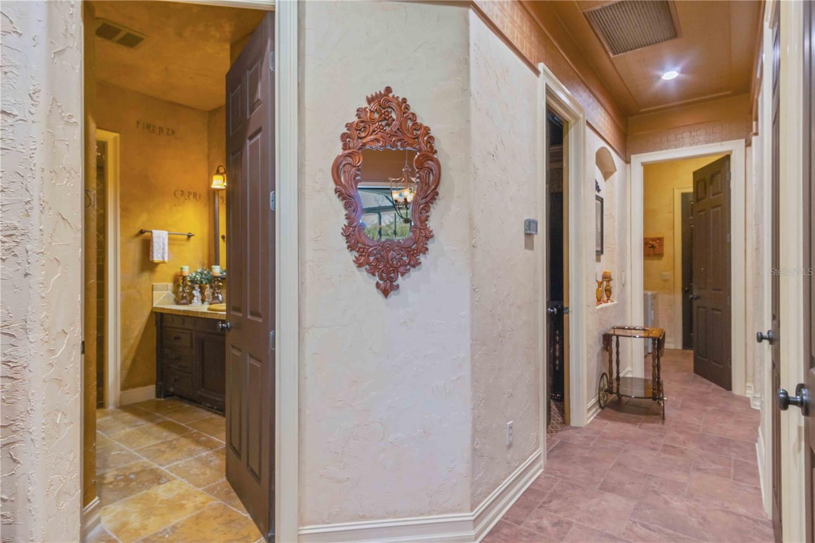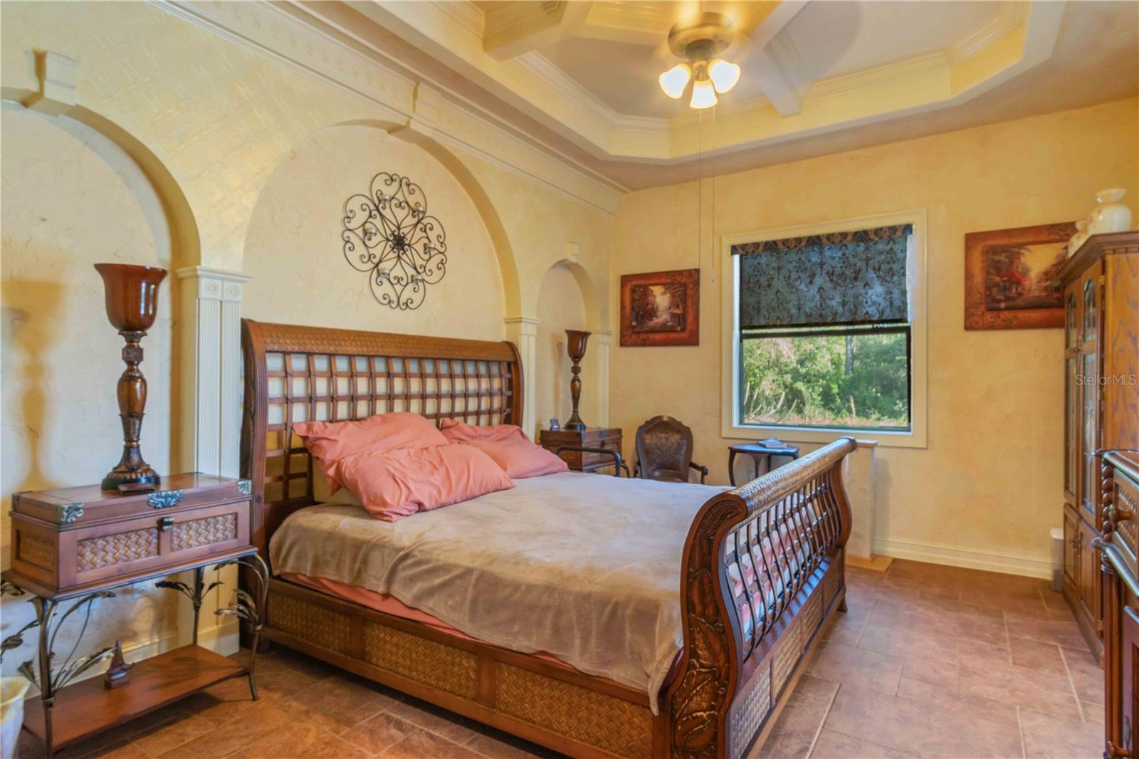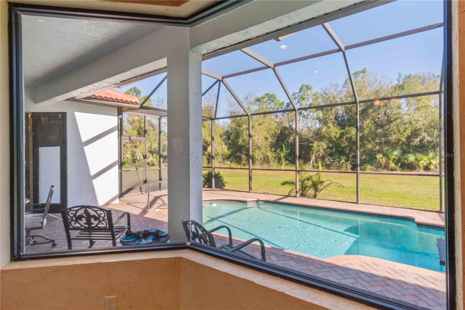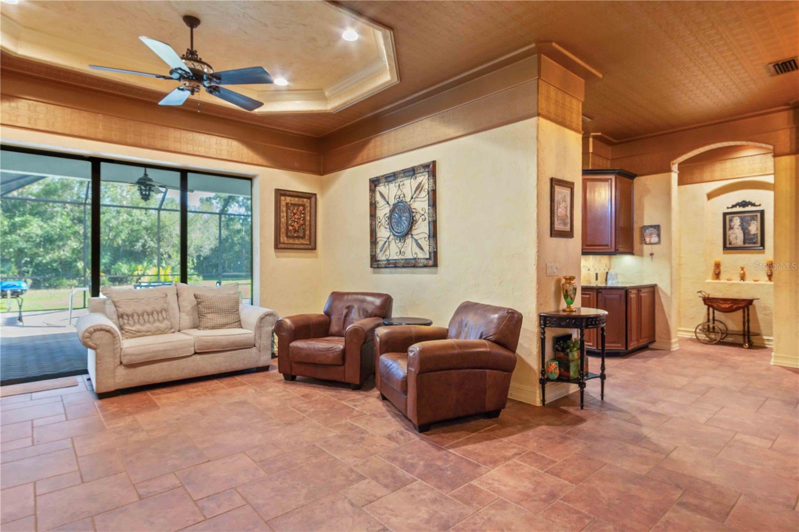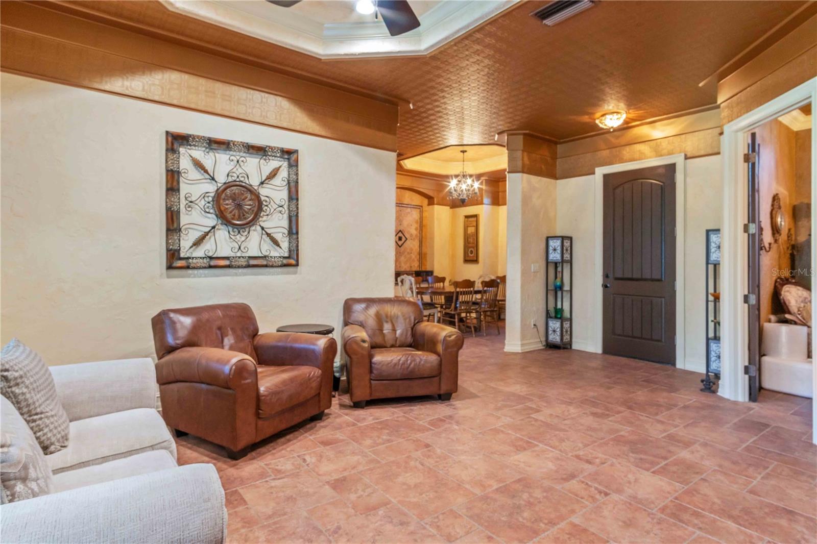 Welcome to your piece of paradise in the highly sought after deed restricted community of Deep Creek. This property is centrally located with nearby dining, shopping, and entertainment along with highway access 5 minutes away and top beach destinations 30 minutes away. No need for flood insurance thanks to the X flood zone rating as well! Upon arriving to this stunningly unique home you will instantly be captivated by the gorgeous curb appeal and the interior is even more impressive. The BRAND NEW tile roof was installed in Feb 2024 and never had any known leaks prior to its replacement The front door has an automatic roll down screen allowing easy access to the home with the option to allow fresh air in.. Once inside the home you will be greeted by tall ceilings and custom details everywhere. The one of a kind flooring is Rosso Natural Travertine believe to be imported from Italy and laid in a Versailles tile pattern. The living and dining area are both well sized and the kitchen features granite countertops and solid wood cabinets. There is an eat in kitchen area overlooking the pool through an aquarium style glass window and multiple nearby closet pantries. The home also has an enclosed den/study that could easily be utilized as a 4th bedroom. The primary bedroom is on the left side of the home with lots of storage room, a walk in shower, garden tub, and accent features. The 2nd and 3rd bedroom along with the guest bathroom are on the opposite side of the home with one of the bedrooms currently being used as a private movie theater room with projector, receiver, and speakers. This room could be left how it is allowing the next owner to enjoy movie nights themselves or could be converted to a traditional bedroom after closing. The interior laundry room along with the garage are both oversized and the garage has a professional AC system to keep it cool along with a whole house generator that can be included with the sale. The attic above the garage also has additional storage and the garage door has a full screen as it is currently used as an under air game room (but sqft was not added to living sqft in listing) The style of the home flows to the lanai with pavers that match the overall color scheme and a large pool that overlooks a private preserve eliminating the possibility of future homes behind you. Unique homes like this don’t hit the market often and these sellers have enjoyed the property for nearly 2 decades while keeping it well maintained. Contact your agent today for a private showing!
