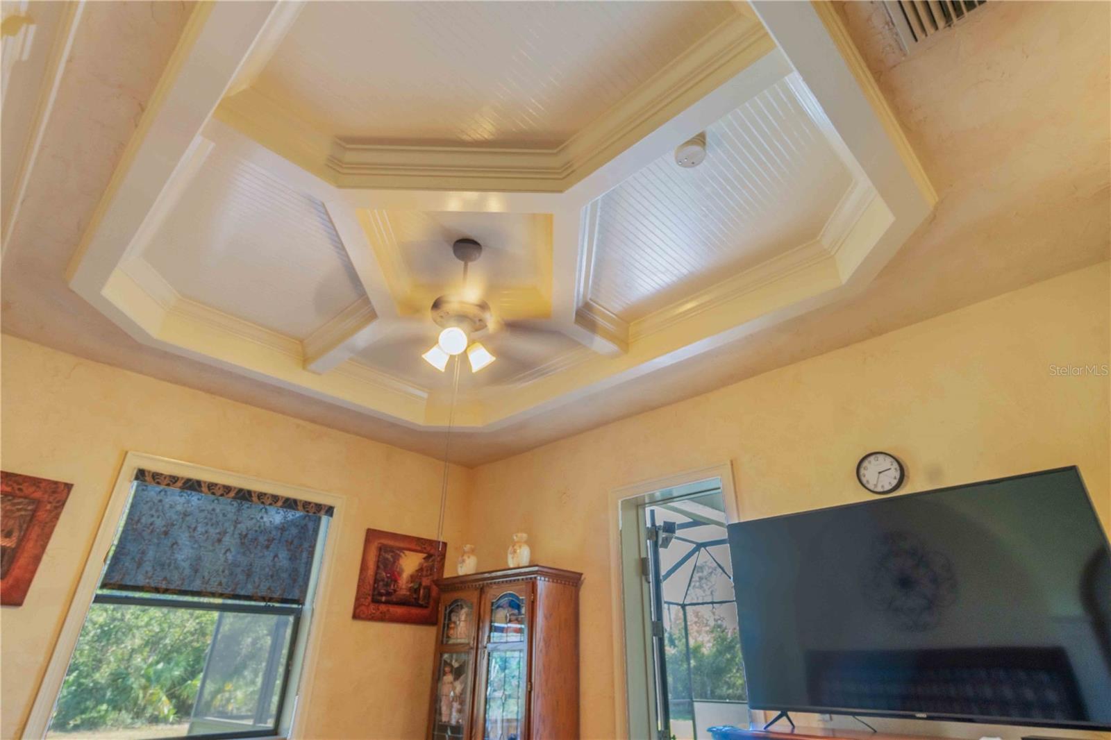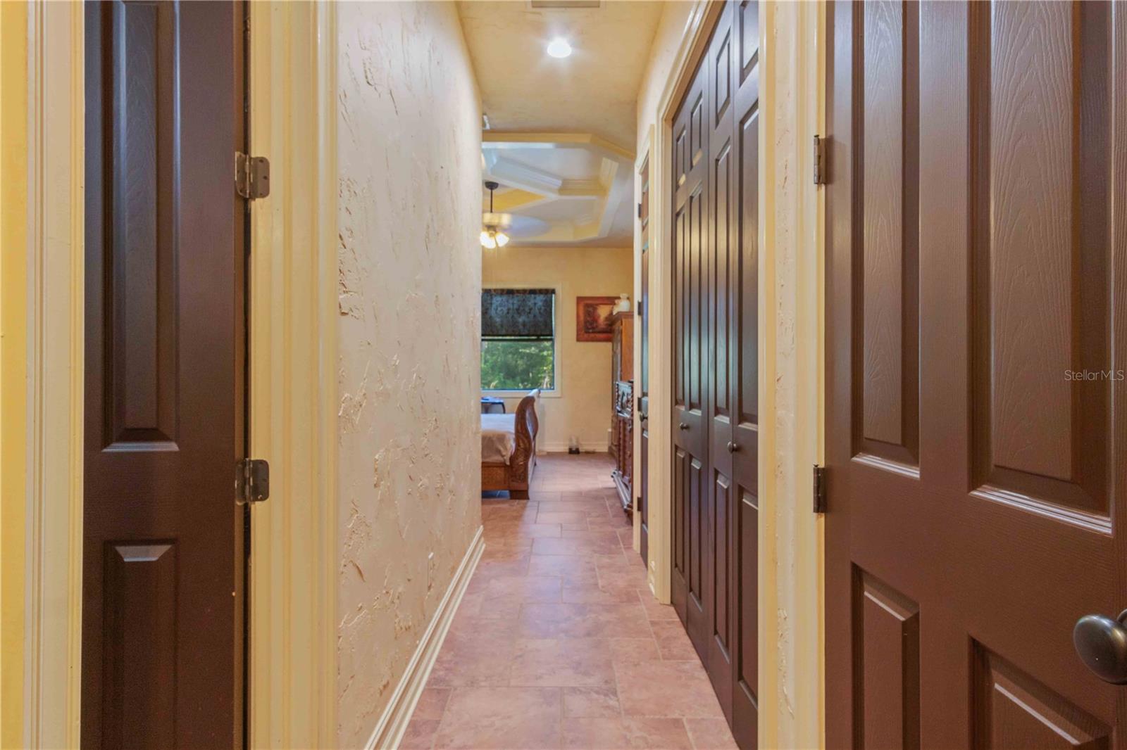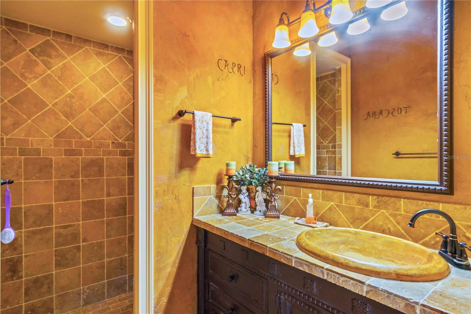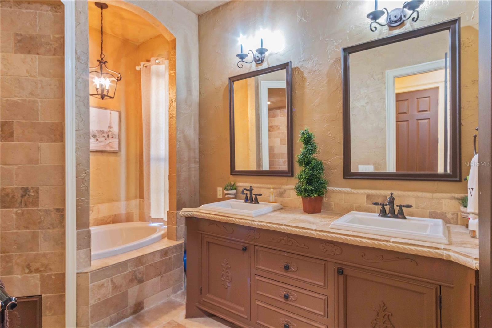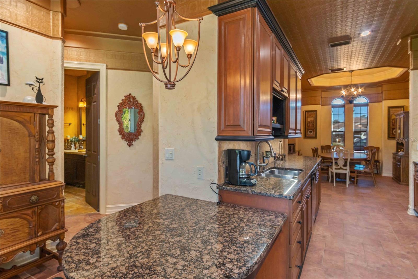 Welcome to your piece of paradise in the highly sought after deed restricted community of Deep Creek. This property is centrally located with nearby dining, shopping, and entertainment along with highway access 5 minutes away and top beach destinations 30 minutes away. No need for flood insurance thanks to the X flood zone rating as well! Upon arriving to this stunningly unique home you will instantly be captivated by the gorgeous curb appeal and the interior is even more impressive. The BRAND NEW tile roof was installed in Feb 2024 and never had any known leaks prior to its replacement The front door has an automatic roll down screen allowing easy access to the home with the option to allow fresh air in.. Once inside the home you will be greeted by tall ceilings and custom details everywhere. The one of a kind flooring is Rosso Natural Travertine believe to be imported from Italy and laid in a Versailles tile pattern. The living and dining area are both well sized and the kitchen features granite countertops and solid wood cabinets. There is an eat in kitchen area overlooking the pool through an aquarium style glass window and multiple nearby closet pantries. The home also has an enclosed den/study that could easily be utilized as a 4th bedroom. The primary bedroom is on the left side of the home with lots of storage room, a walk in shower, garden tub, and accent features. The 2nd and 3rd bedroom along with the guest bathroom are on the opposite side of the home with one of the bedrooms currently being used as a private movie theater room with projector, receiver, and speakers. This room could be left how it is allowing the next owner to enjoy movie nights themselves or could be converted to a traditional bedroom after closing. The interior laundry room along with the garage are both oversized and the garage has a professional AC system to keep it cool along with a whole house generator that can be included with the sale. The attic above the garage also has additional storage and the garage door has a full screen as it is currently used as an under air game room (but sqft was not added to living sqft in listing) The style of the home flows to the lanai with pavers that match the overall color scheme and a large pool that overlooks a private preserve eliminating the possibility of future homes behind you. Unique homes like this don’t hit the market often and these sellers have enjoyed the property for nearly 2 decades while keeping it well maintained. Contact your agent today for a private showing!