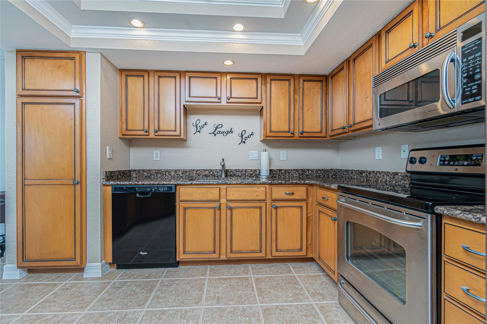 One or more photo(s) has been virtually staged. The palm-lined drive to this quiet Punta Gorda Isles condo destination, located on a no-outlet street, sets a relaxed, vacation mode mood before you even arrive at Points West Condominiums. Located directly on the edge of Charlotte Harbor, this spacious, open-concept, 3 bed/ 2 bath condominium with stunning harbor views is waiting for you! Gain entrance to this lovely turn-key condo through the front foyer which has a new screen door enclosure. Prepare to be delighted as you walk through the front door and realize that you have amazing harbor views from the entire main living space, as well as the master bedroom. While the sunrises and Vivante lake view out the front are lovely, the unobstructed west views from inside the condo will have you enjoying magnificent sunsets and a daily changing panorama of water and sky! The kitchen features a pantry, high end cabinetry, granite countertops and a large island with breakfast bar. Crown molding surrounds the open living/dining room area. Natural light pours in from the lanai, with its huge 16-foot disappearing impact sliding doors. The lanai is enclosed with a wall of sliders that open for screened fresh air or can be closed to allow air conditioning/heating, adding significantly to your year-round living space. There are also electric roll-down sun-shades for the lanai area. Ceiling fans are found throughout the condo; there's also a 'smart' thermostat. The master bedroom is spacious with a large walk-in closet and ensuite double vanity bathroom complete with a large step-in tiled shower and beautiful built-in linen closet. The two secondary bedrooms catch the morning sun and easily accommodate queen size bed/bedside table sets. LVT flooring in one of those bedrooms, with a closet full of shelves, makes it a great possibility for a modern home office space. The laundry room boasts a full-size washer and dryer with a deep sink and plenty of shelf storage. With additional storage in mind, this condo unit comes with a large private garage including a built-in raised storage area complete with stairs as well as a beautiful epoxy floor. The Points West amenities include a heated pool, clubhouse, tennis/pickleball court, kayak rack and launch. For exercise, power walk to and from Ponce de Leon Park located right “next door”. Just about 3 miles from downtown Punta Gorda and 2-1/2 miles from popular Fisherman’s Village, this gorgeous condominium, with its impressive views, is not only a must see … it’s a must have!