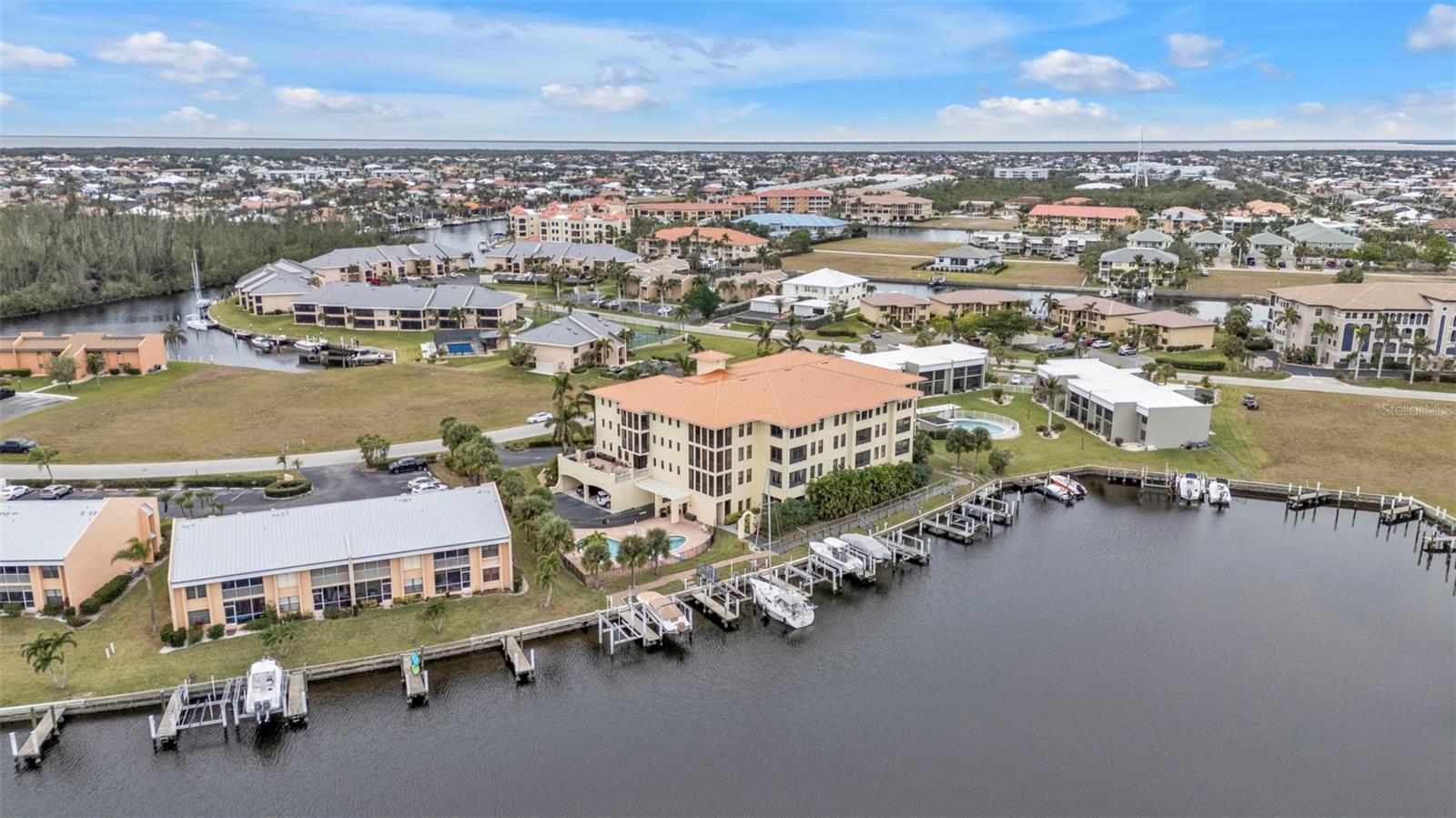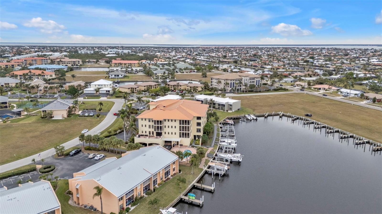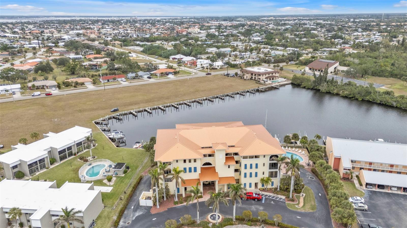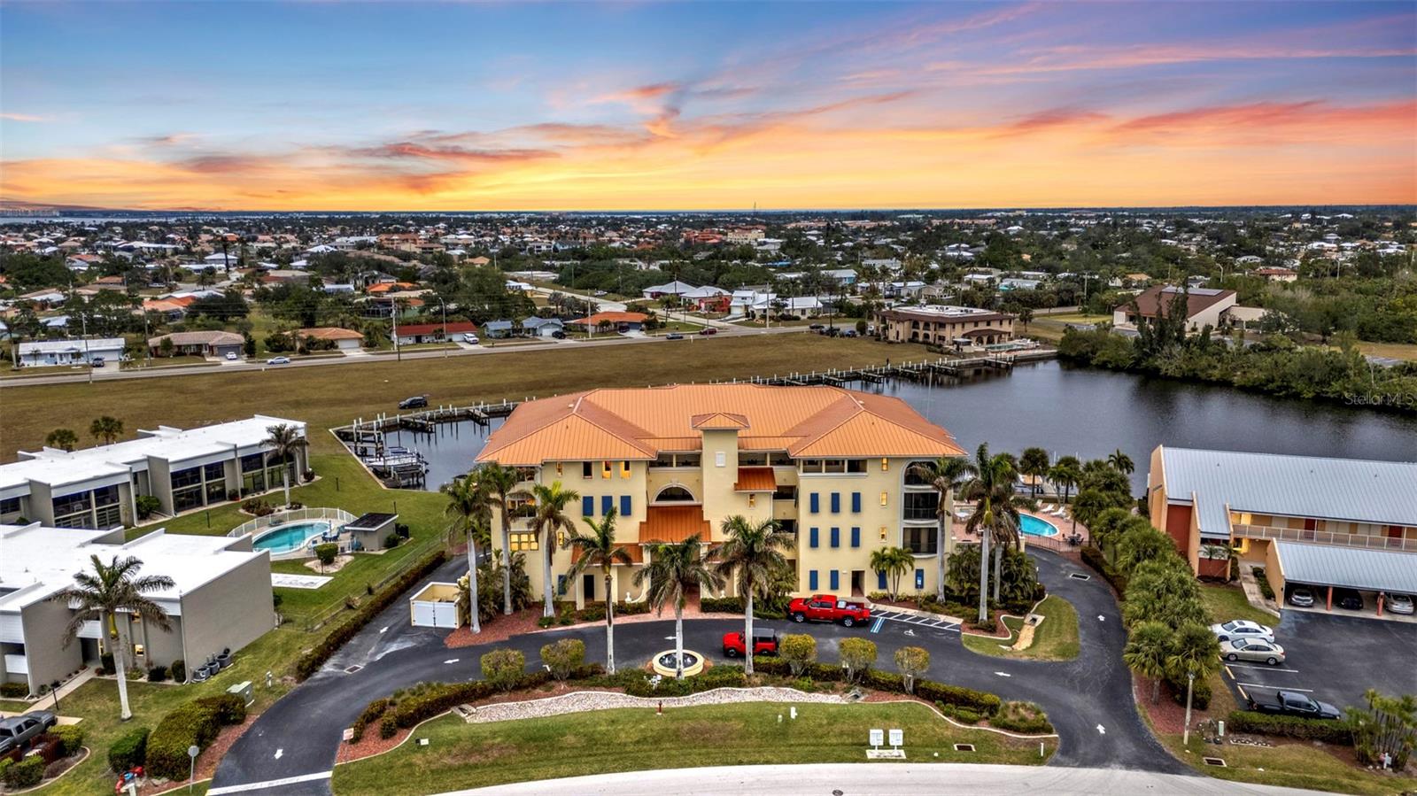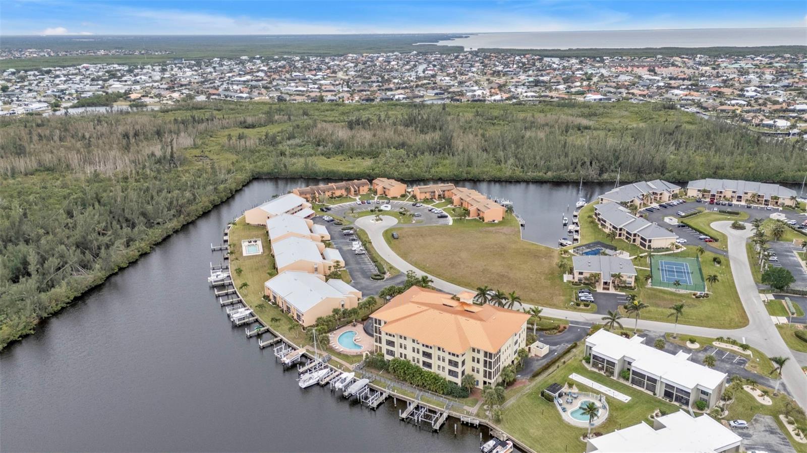 Waterfront Luxury Living Awaits at Outlook Cove Welcome to your slice of paradise in the highly desirable Outlook Cove community, where waterfront luxury meets unparalleled convenience in Southwest Florida. This stunning, end-unit condo with TWO balconies, 3 spacious bedrooms, 2 luxurious bathrooms, and a deeded dock with DIRECT SAILBOAT access—an increasingly rare find in today’s market. Nestled in a quiet area of Punta Gorda Isles, this condo boasts breathtaking water views and offers an idyllic blend of natural beauty and modern comfort. Step inside to an expansive open-concept layout with 1782 square feet of living space, FULLY FURNISHED, perfect for entertaining or relaxing with family and friends. The living, dining, and kitchen areas are bathed in natural light, with sliding doors in both the main living area and master bedroom leading out to a private balcony where you can enjoy the serene waterway views. The tasteful interior features luxury vinyl floors, designer tile, custom tray ceilings, recessed lighting, and accent walls that complement the space. Impact-resistant windows and doors provide added security and peace of mind. The chef’s kitchen is a dream come true, with granite countertops, wood cabinetry, stainless steel appliances, a center island, and a convenient closet pantry. Whether you're preparing a casual meal or entertaining guests, this kitchen provides everything you need. The master suite is a true retreat, complete with its own private balcony access, a walk-in closet, and an en-suite bath featuring his-and-hers sinks, a custom-tiled shower, and luxurious granite counters. Two additional closets in the master provide ample storage, while the other two bedrooms are equally spacious, perfect for family or guests. Enjoy easy access to your private 5x15 dock with electric and water, offering direct sailboat access via the newly constructed Buckley Pass. In just 20 minutes, you’ll be on the open waters of Charlotte Harbor, ready for boating adventures. And when you're not on the water, relax at the heated community pool or take advantage of the pet-friendly atmosphere—this community even welcomes large dogs! Additional features include a new steel roof, freshly repainted building interior and exterior, an elevator for easy access, a dedicated laundry room with a washer and dryer, and two assigned covered parking spots. With a location that’s just minutes from historic downtown Punta Gorda, Fishermen’s Village, premier shopping, dining, and the famous PicklePlex pickleball complex, you’ll find everything you need for the perfect Florida lifestyle right at your doorstep. Whether you’re looking for a seasonal sanctuary or a year-round home, this waterfront gem offers the ideal combination of luxury, comfort, and convenience. Available turnkey with luxury furnishings and a fully stocked kitchen—just bring your swimsuit and start enjoying the coastal lifestyle! Schedule your private showing today and experience the best of Florida living at Outlook Cove.