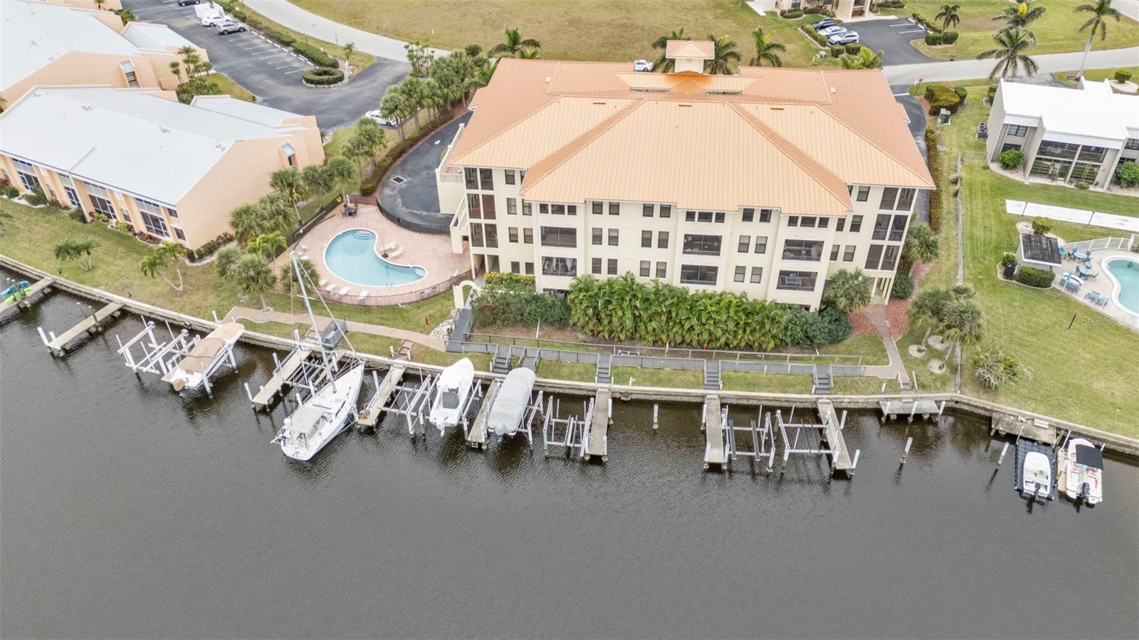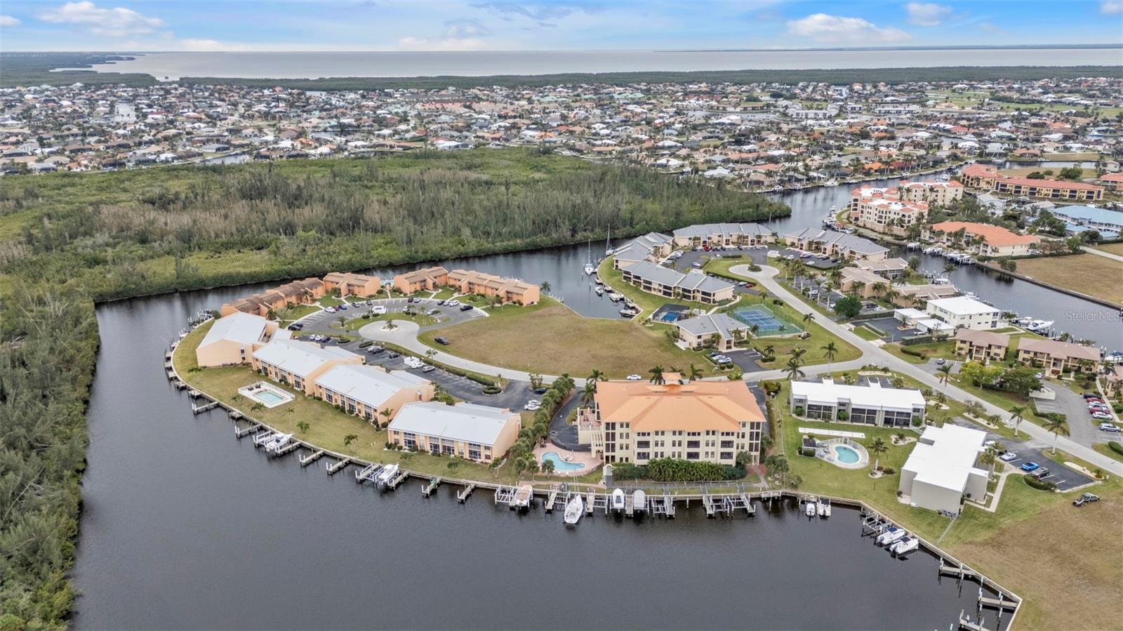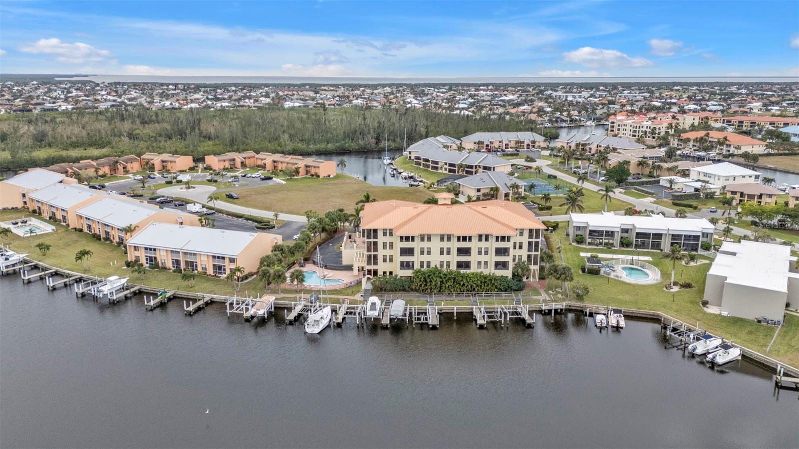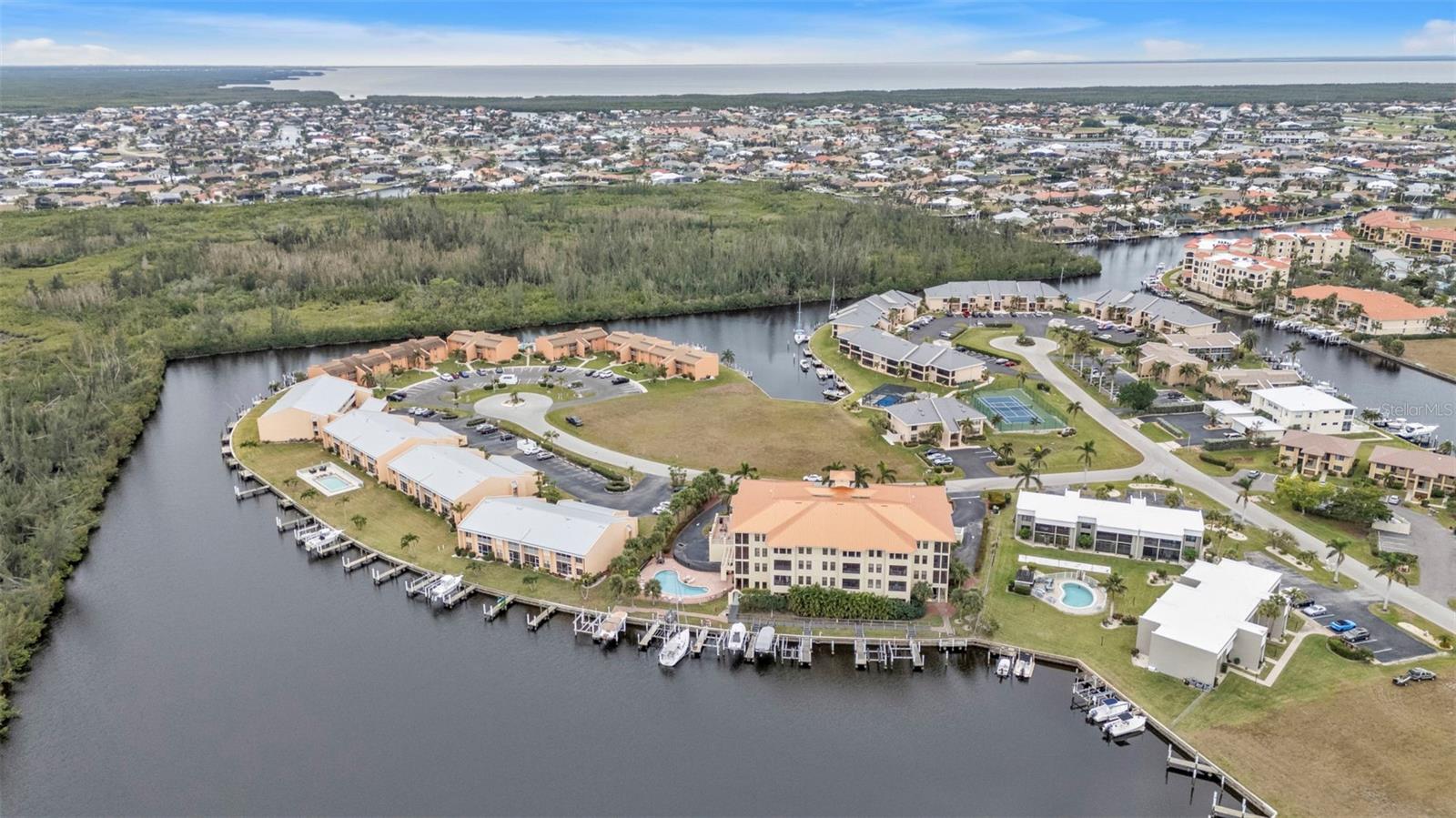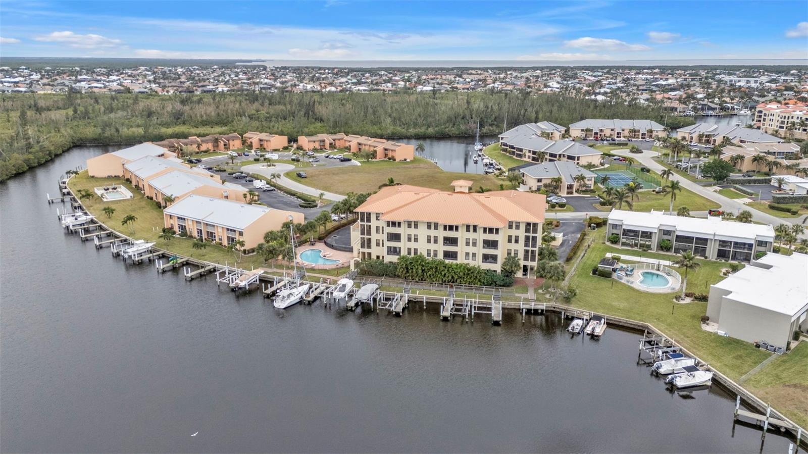 Waterfront Luxury Living Awaits at Outlook Cove Welcome to your slice of paradise in the highly desirable Outlook Cove community, where waterfront luxury meets unparalleled convenience in Southwest Florida. This stunning, end-unit condo with TWO balconies, 3 spacious bedrooms, 2 luxurious bathrooms, and a deeded dock with DIRECT SAILBOAT access—an increasingly rare find in today’s market. Nestled in a quiet area of Punta Gorda Isles, this condo boasts breathtaking water views and offers an idyllic blend of natural beauty and modern comfort. Step inside to an expansive open-concept layout with 1782 square feet of living space, FULLY FURNISHED, perfect for entertaining or relaxing with family and friends. The living, dining, and kitchen areas are bathed in natural light, with sliding doors in both the main living area and master bedroom leading out to a private balcony where you can enjoy the serene waterway views. The tasteful interior features luxury vinyl floors, designer tile, custom tray ceilings, recessed lighting, and accent walls that complement the space. Impact-resistant windows and doors provide added security and peace of mind. The chef’s kitchen is a dream come true, with granite countertops, wood cabinetry, stainless steel appliances, a center island, and a convenient closet pantry. Whether you're preparing a casual meal or entertaining guests, this kitchen provides everything you need. The master suite is a true retreat, complete with its own private balcony access, a walk-in closet, and an en-suite bath featuring his-and-hers sinks, a custom-tiled shower, and luxurious granite counters. Two additional closets in the master provide ample storage, while the other two bedrooms are equally spacious, perfect for family or guests. Enjoy easy access to your private 5x15 dock with electric and water, offering direct sailboat access via the newly constructed Buckley Pass. In just 20 minutes, you’ll be on the open waters of Charlotte Harbor, ready for boating adventures. And when you're not on the water, relax at the heated community pool or take advantage of the pet-friendly atmosphere—this community even welcomes large dogs! Additional features include a new steel roof, freshly repainted building interior and exterior, an elevator for easy access, a dedicated laundry room with a washer and dryer, and two assigned covered parking spots. With a location that’s just minutes from historic downtown Punta Gorda, Fishermen’s Village, premier shopping, dining, and the famous PicklePlex pickleball complex, you’ll find everything you need for the perfect Florida lifestyle right at your doorstep. Whether you’re looking for a seasonal sanctuary or a year-round home, this waterfront gem offers the ideal combination of luxury, comfort, and convenience. Available turnkey with luxury furnishings and a fully stocked kitchen—just bring your swimsuit and start enjoying the coastal lifestyle! Schedule your private showing today and experience the best of Florida living at Outlook Cove.