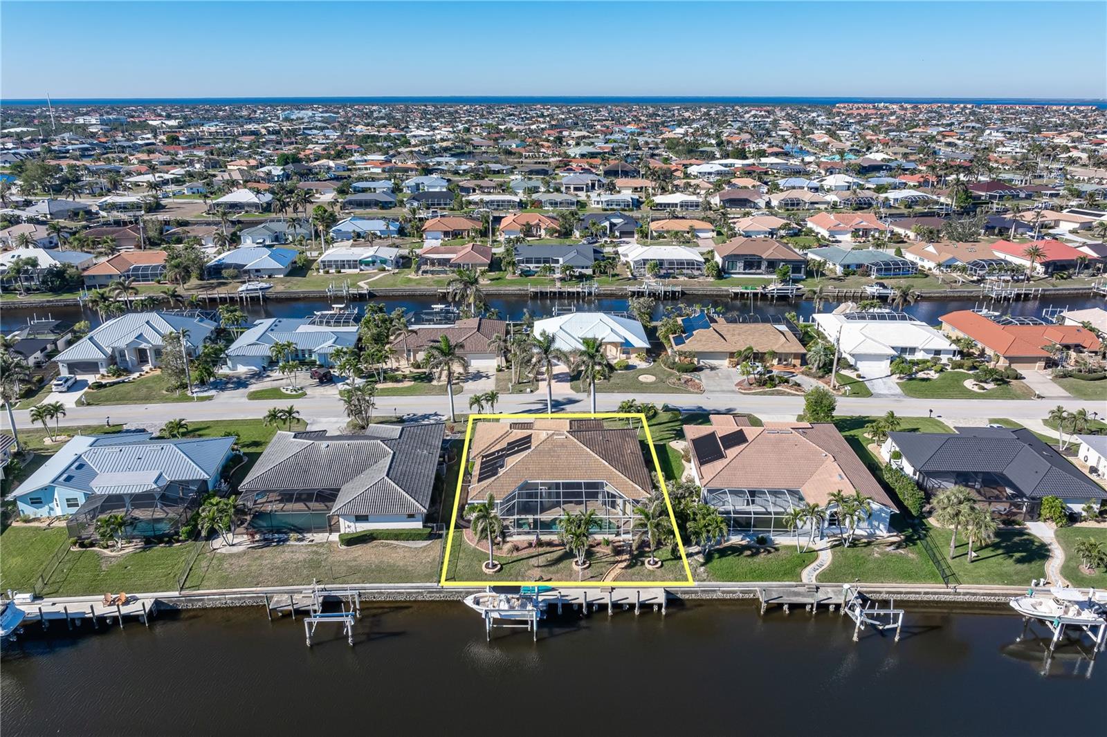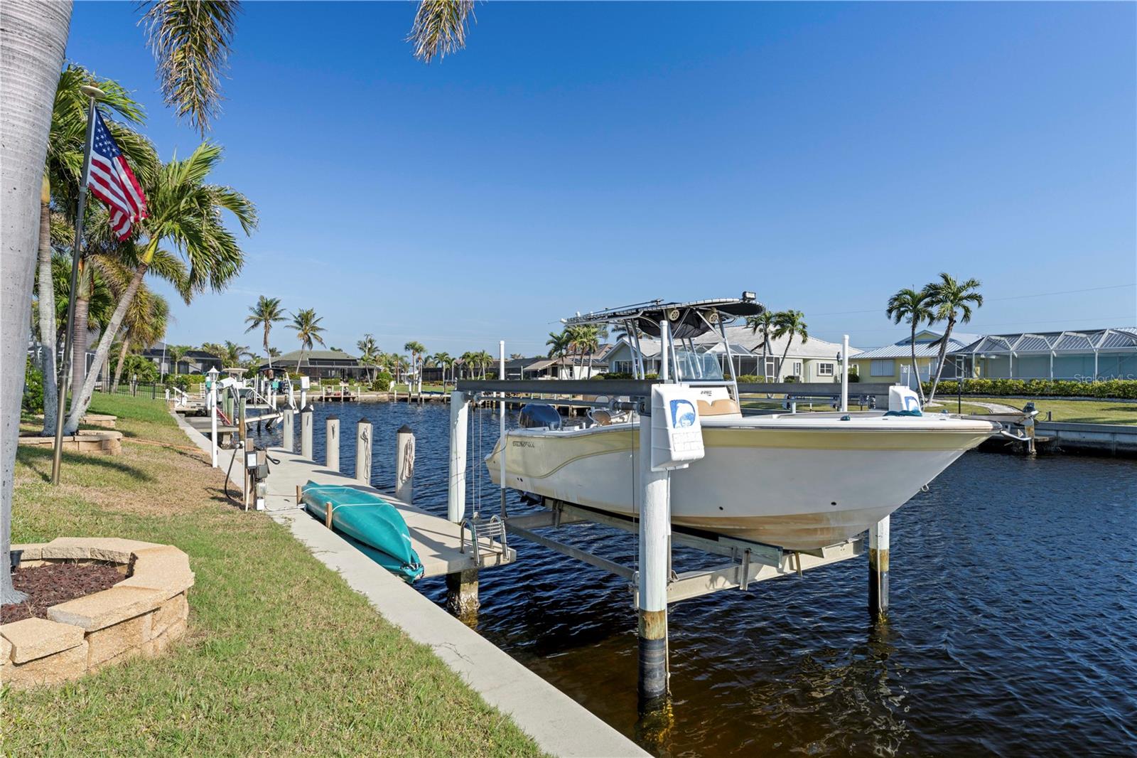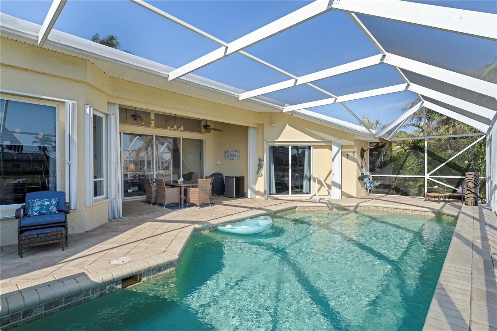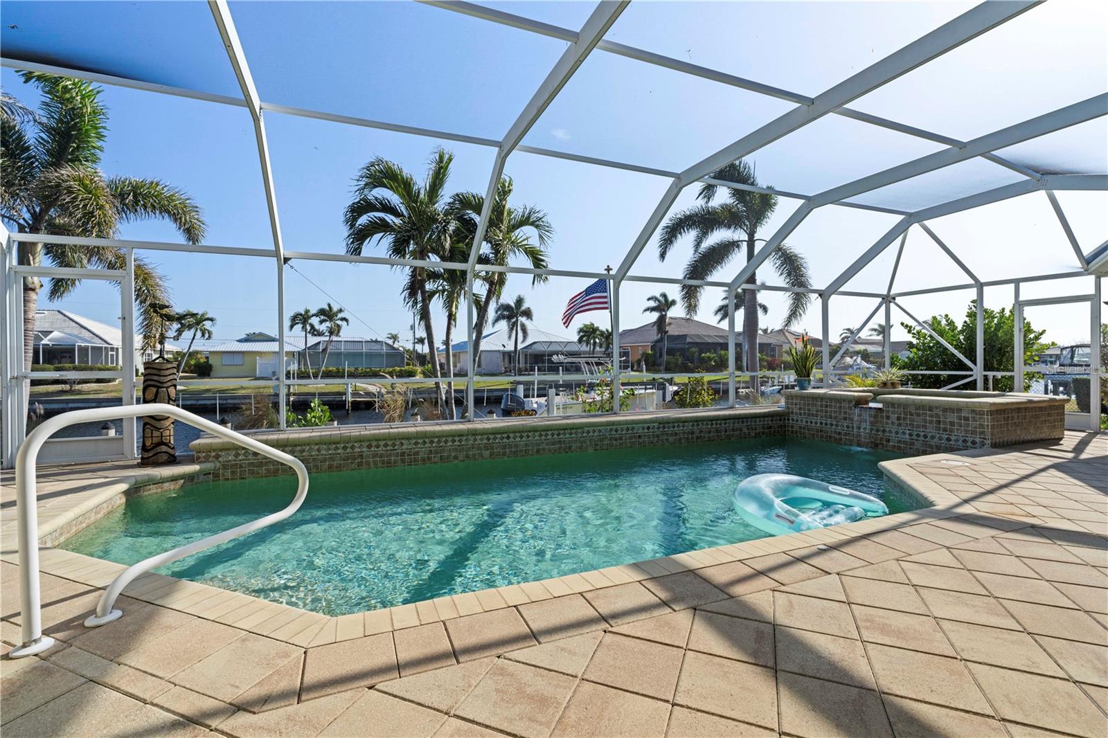 MOVE-IN READY, PGI WATERFRONT HOME W/OVERSIZED DOCK & QUICK BOATING ACCESS - Looking for a move-in ready, waterfront home? Consider this 3 bed/2 bath, waterfront home w/pool & attached 2-car garage. Inside, the home has a spacious, open floor plan w/soaring ceilings, updated kitchen & large bedrooms. Large picture windows, a wall of sliding glass doors & rectangular transom windows above the sliders flood the home w/natural light. Great room seamless blends indoor/outdoor living when sliding glass doors are open. Flex space that can be either a home office or formal dining area is just off the entry. Kitchen boasts quartz counters, stainless steel appliances, wood cabinetry w/ample cabinet & counter space. Tile flooring is found throughout the main living areas & bathrooms plus luxury vinyl wood-look plank flooring in the master bedroom as well as carpet in the guest bedrooms. The master suite has walk-out access to the lanai, pool & canal views, two walk-in closets & an en-suite master bath w/dual sinks, private WC, linen closet & glass-enclosed shower. One guest room is located at the front of the home & is currently used as a home office/gym. The 3rd bedroom is located on the opposite end of the home providing privacy for owners & guests. It features an oversized walk-in closet & walk-out access to the lanai. It is located across the hall from the guest bath. Outside, the lanai has a brick paver deck that surrounds the in-ground, heated (solar & electric) saltwater pool w/attached spa. The spa overflow is a waterfall feature that provides the sound of running water adding to the relaxing nature of this outdoor living space. Lanai offers a covered seating/dining area as well as a large sun deck area where you can lounge poolside to soak up some Florida sun. There is also an outdoor shower that lets you rinse off after a day on the boat or time spent in the pool. The back walkway leads to the oversized, 45 ft concrete dock w/10,000 lb boat lift. Water & electric hook-ups are available dockside. Reach open water in under 15 minutes from your backyard & start enjoying some of the best fishing & boating SW Florida has to offer. Other amenities include whole-house water softener, whole-house hurricane protection, an attached oversized 2-car garage w/workshop bump-out & an exterior storage closet (the fisherman's equipment nook) where you can store fishing, boating & lawn care items without taking up valuable space in the garage. Furniture is negotiable. Make an appointment today! You won't be disappointed.