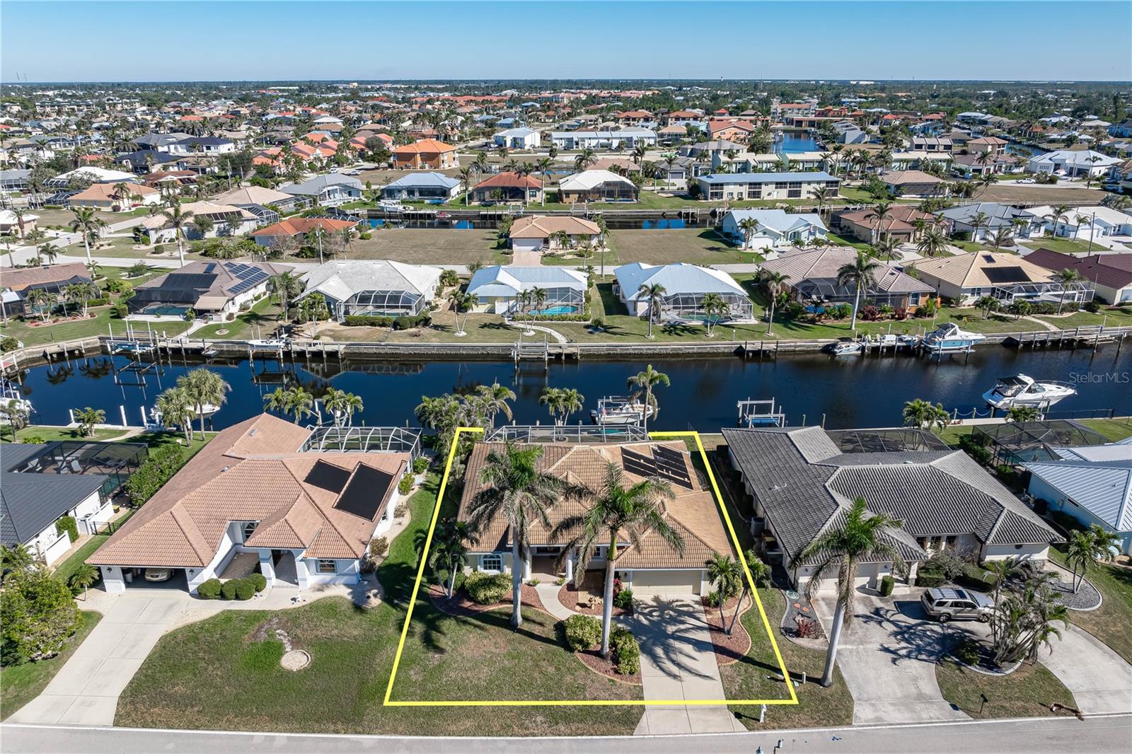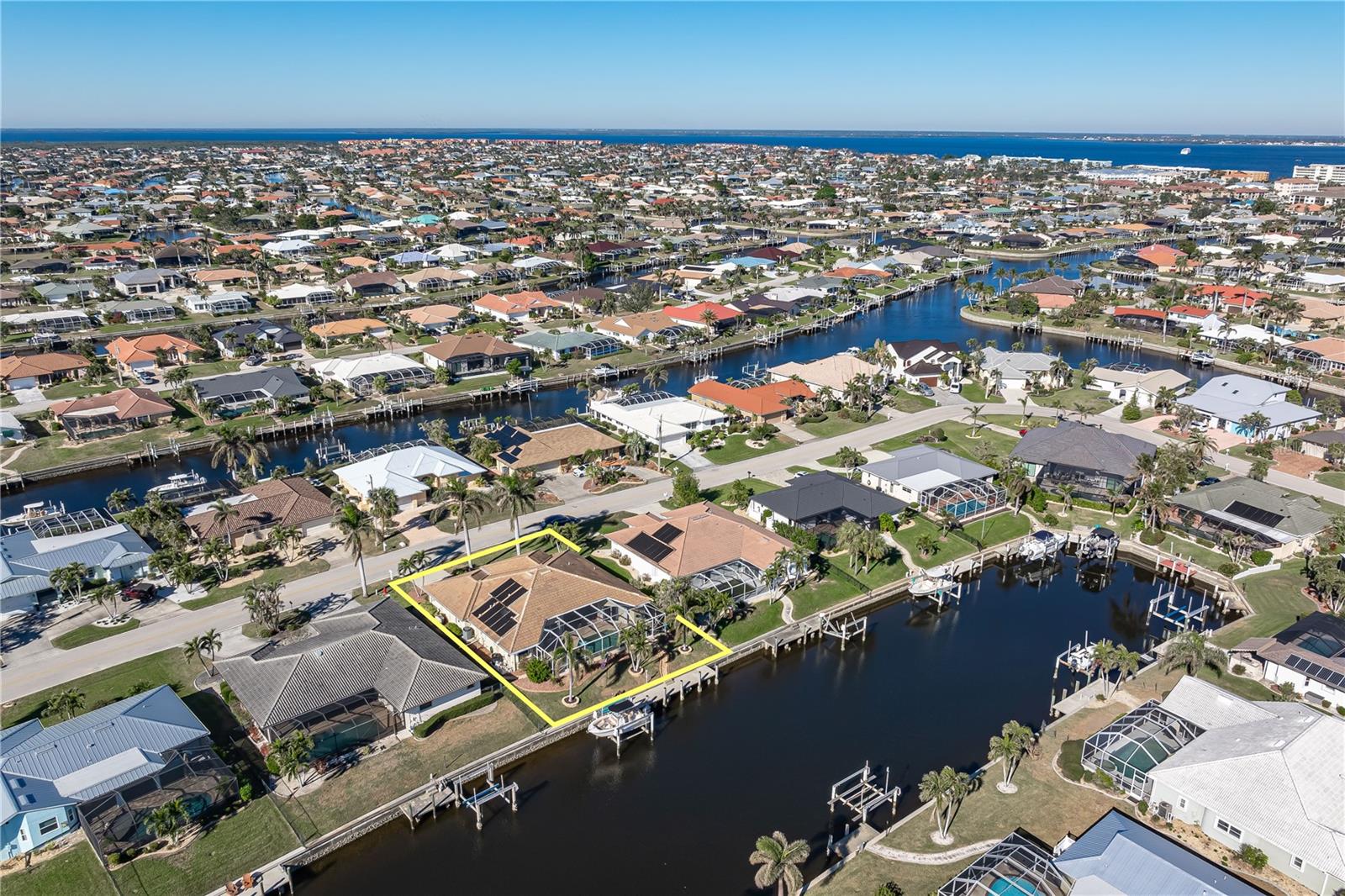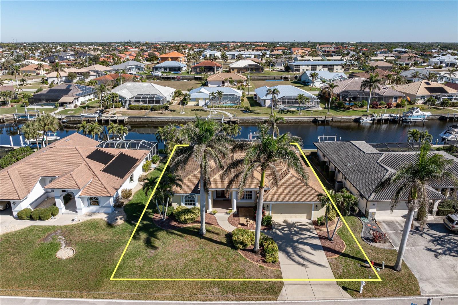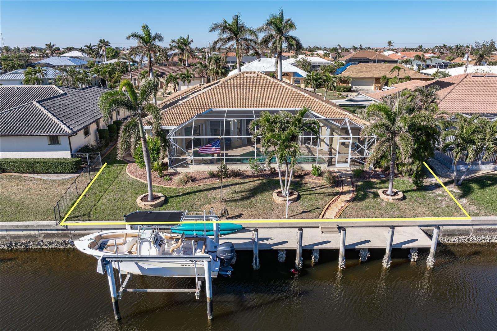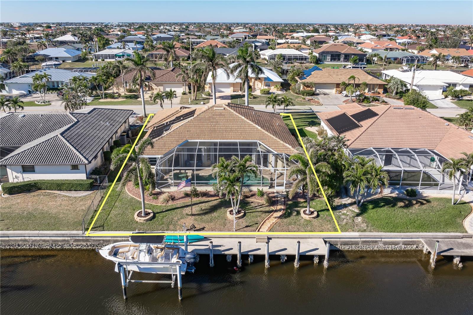 MOVE-IN READY, PGI WATERFRONT HOME W/OVERSIZED DOCK & QUICK BOATING ACCESS - Looking for a move-in ready, waterfront home? Consider this 3 bed/2 bath, waterfront home w/pool & attached 2-car garage. Inside, the home has a spacious, open floor plan w/soaring ceilings, updated kitchen & large bedrooms. Large picture windows, a wall of sliding glass doors & rectangular transom windows above the sliders flood the home w/natural light. Great room seamless blends indoor/outdoor living when sliding glass doors are open. Flex space that can be either a home office or formal dining area is just off the entry. Kitchen boasts quartz counters, stainless steel appliances, wood cabinetry w/ample cabinet & counter space. Tile flooring is found throughout the main living areas & bathrooms plus luxury vinyl wood-look plank flooring in the master bedroom as well as carpet in the guest bedrooms. The master suite has walk-out access to the lanai, pool & canal views, two walk-in closets & an en-suite master bath w/dual sinks, private WC, linen closet & glass-enclosed shower. One guest room is located at the front of the home & is currently used as a home office/gym. The 3rd bedroom is located on the opposite end of the home providing privacy for owners & guests. It features an oversized walk-in closet & walk-out access to the lanai. It is located across the hall from the guest bath. Outside, the lanai has a brick paver deck that surrounds the in-ground, heated (solar & electric) saltwater pool w/attached spa. The spa overflow is a waterfall feature that provides the sound of running water adding to the relaxing nature of this outdoor living space. Lanai offers a covered seating/dining area as well as a large sun deck area where you can lounge poolside to soak up some Florida sun. There is also an outdoor shower that lets you rinse off after a day on the boat or time spent in the pool. The back walkway leads to the oversized, 45 ft concrete dock w/10,000 lb boat lift. Water & electric hook-ups are available dockside. Reach open water in under 15 minutes from your backyard & start enjoying some of the best fishing & boating SW Florida has to offer. Other amenities include whole-house water softener, whole-house hurricane protection, an attached oversized 2-car garage w/workshop bump-out & an exterior storage closet (the fisherman's equipment nook) where you can store fishing, boating & lawn care items without taking up valuable space in the garage. Furniture is negotiable. Make an appointment today! You won't be disappointed.